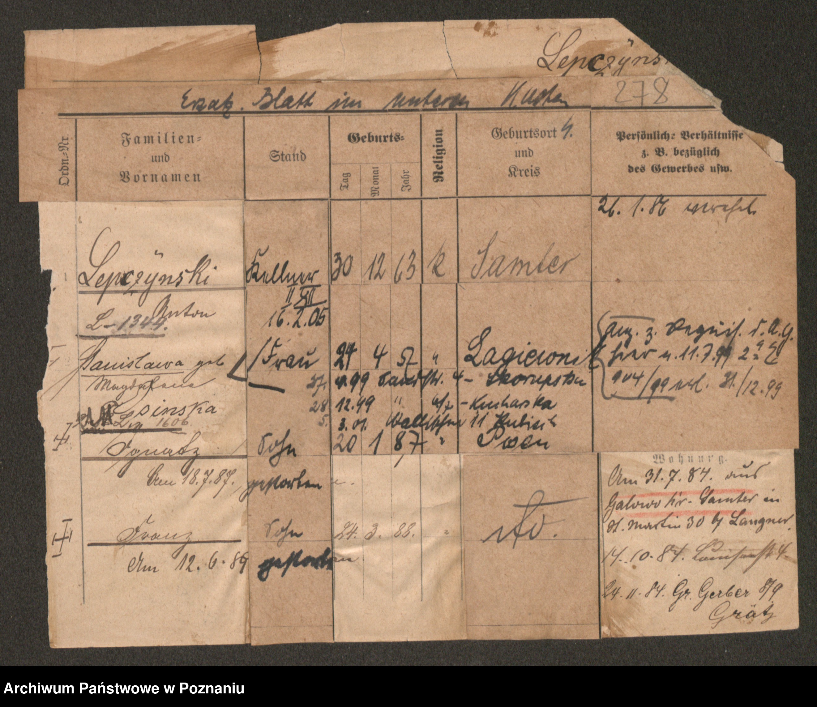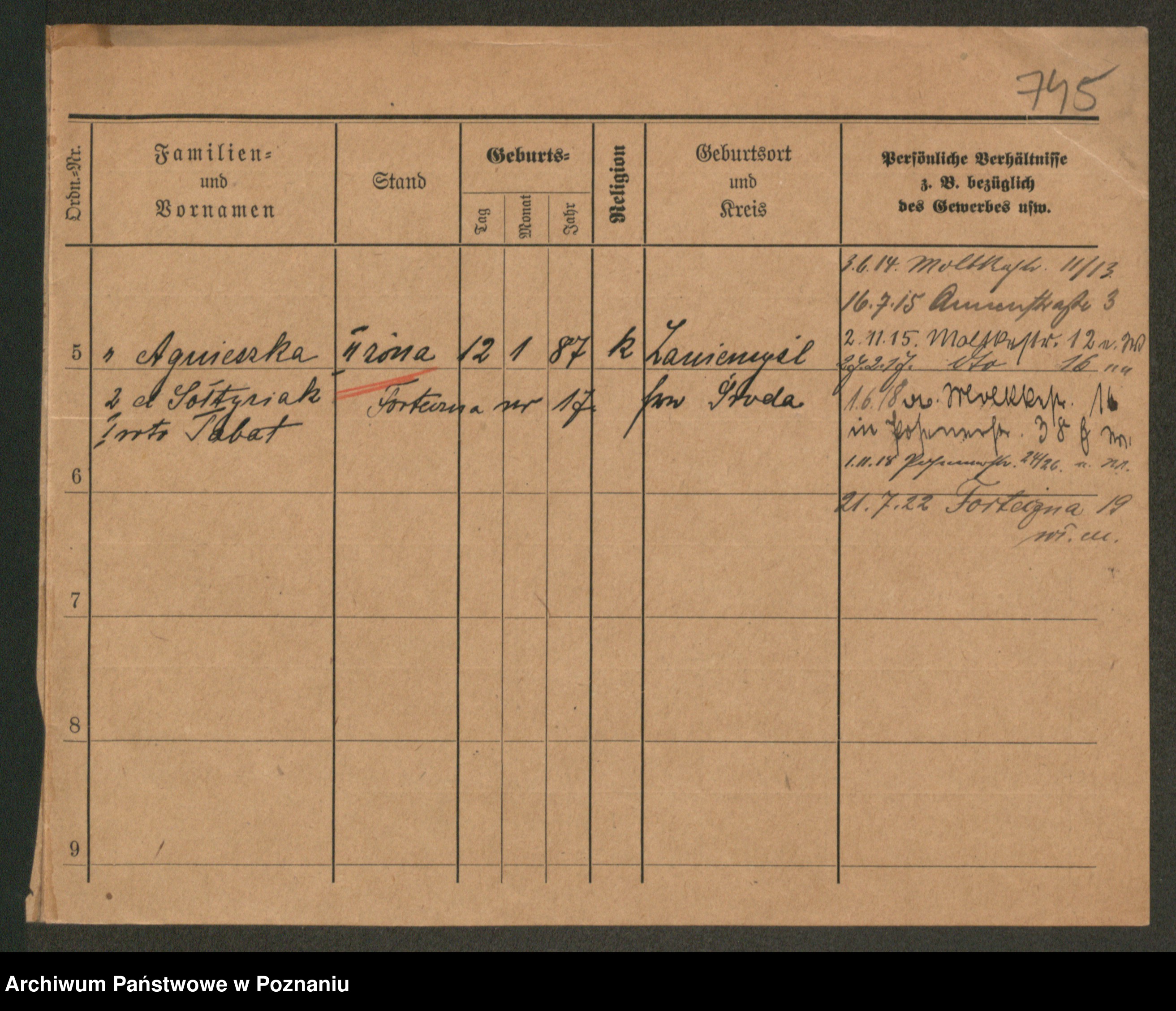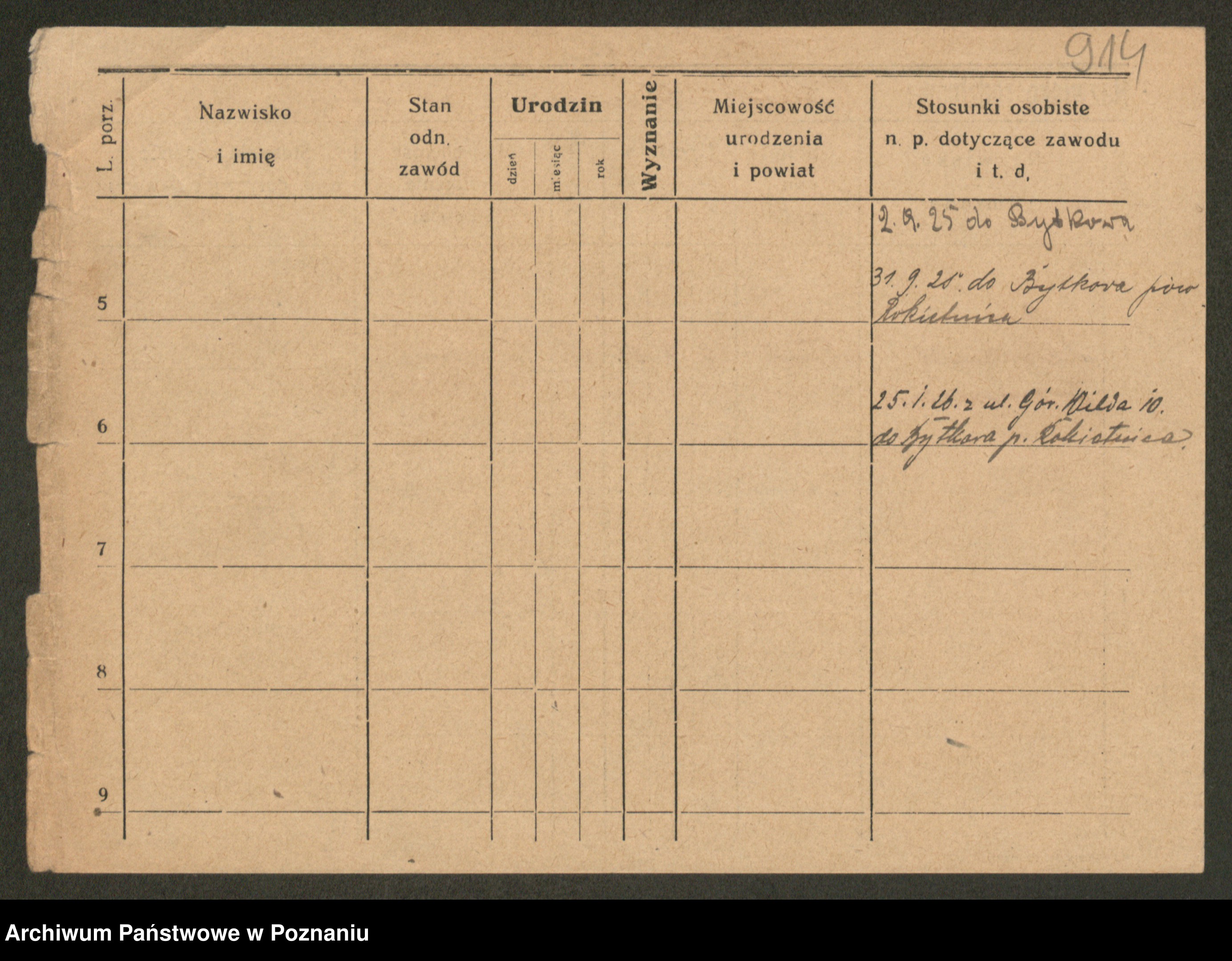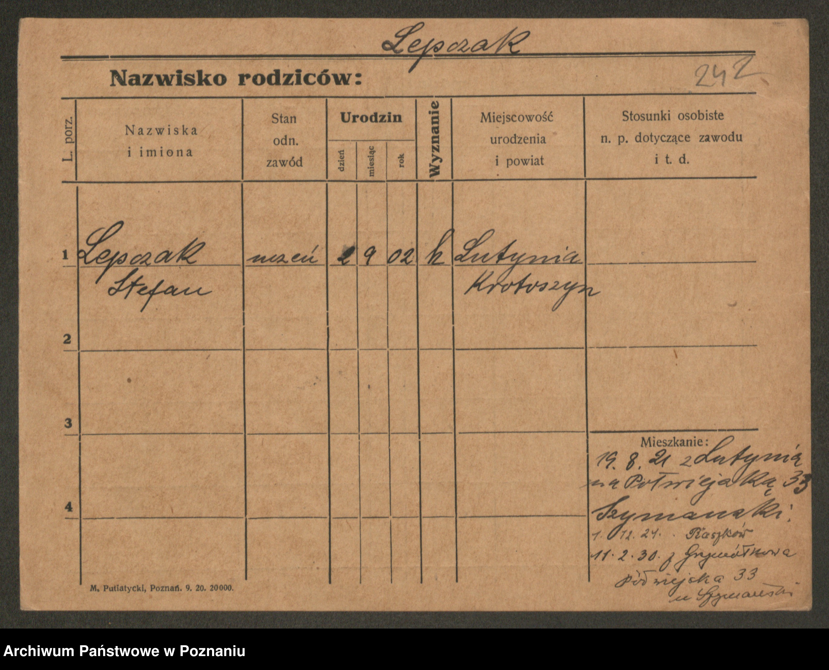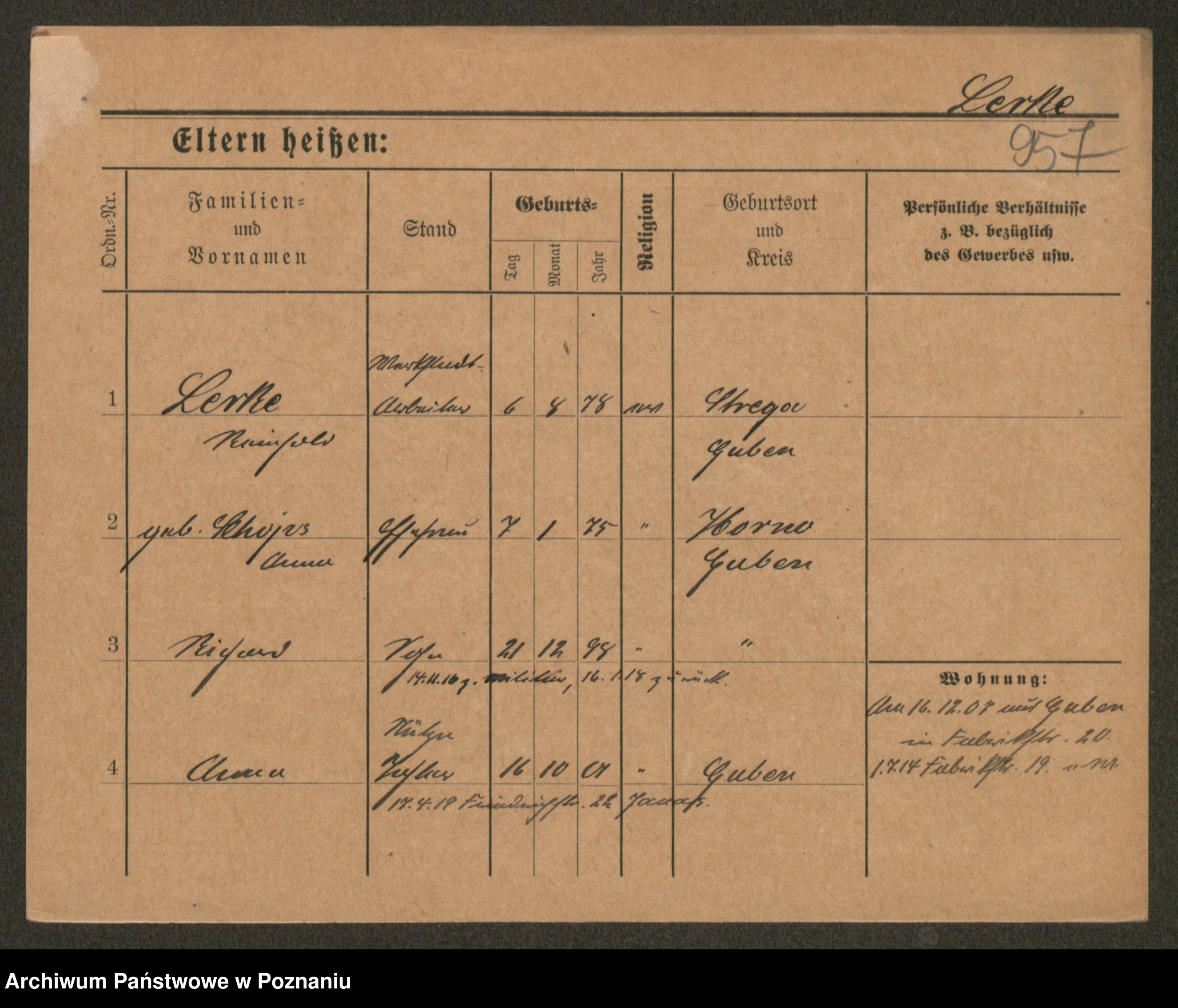 Podgląd karty osobowej dostępny jest po kliknięciu na nazwisko lub ikonkę karty. Można dokonywać powiększenia (ikony na górze) lub przechodzić między kolejnymi skanami (strzałki po bokach).