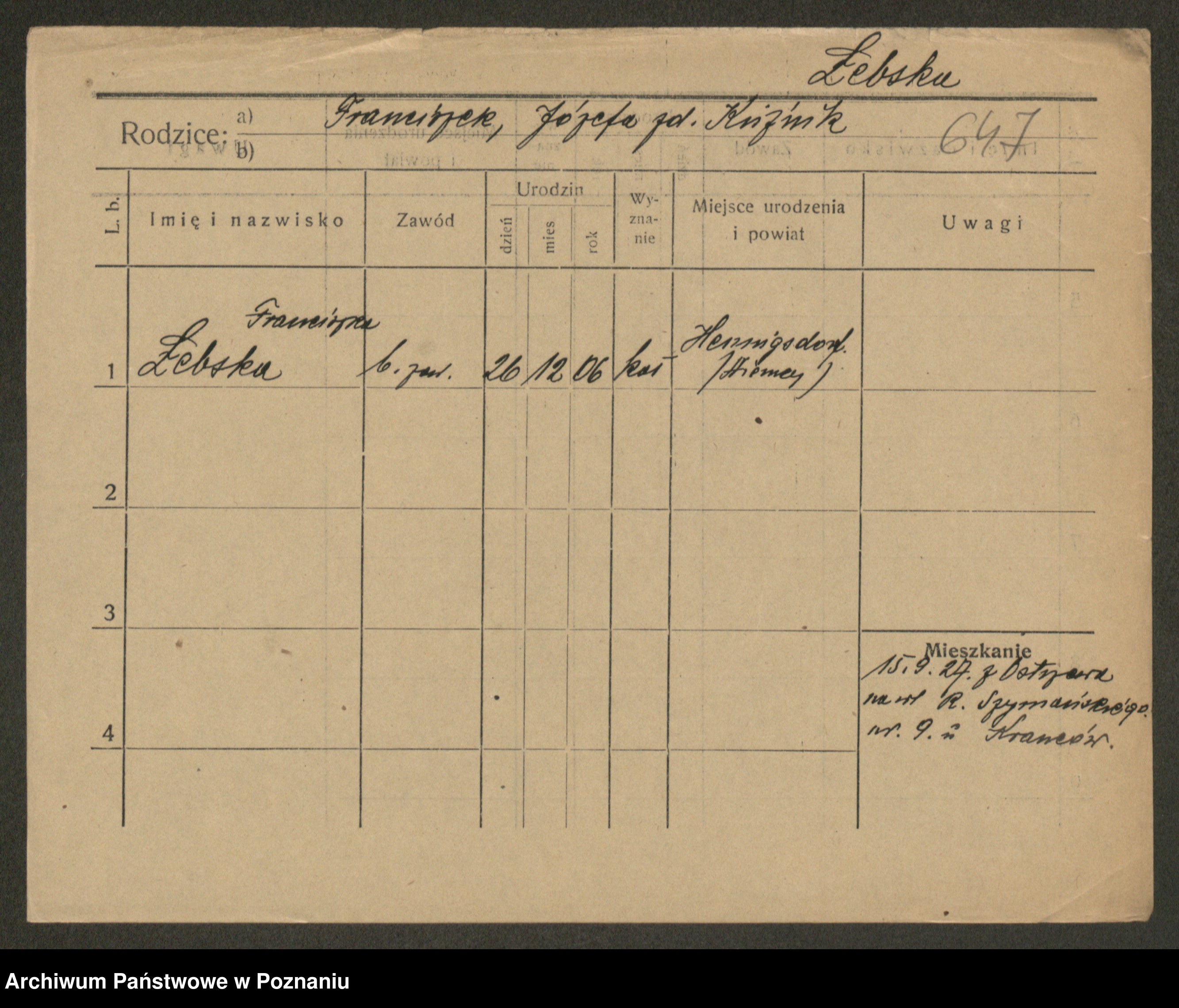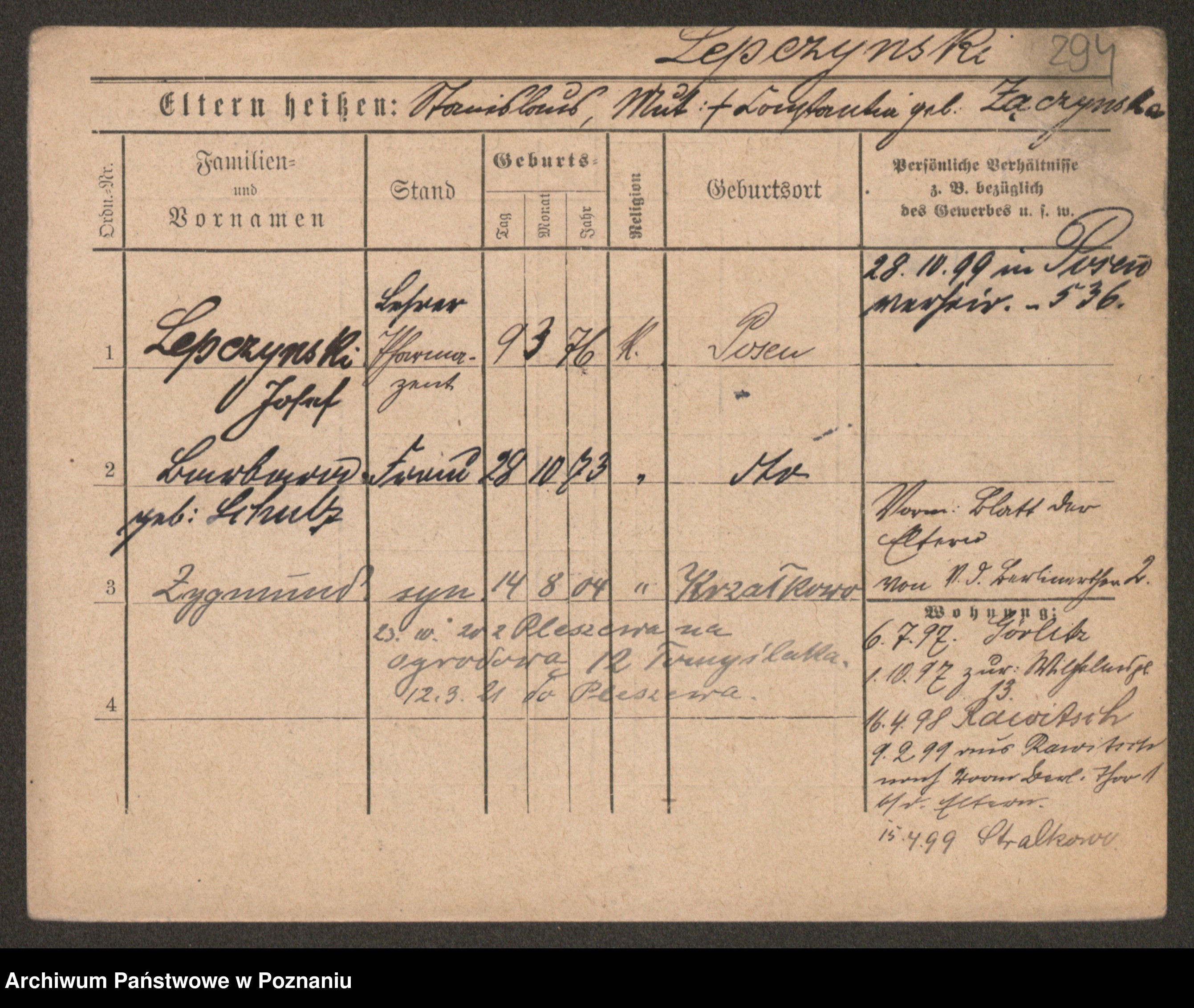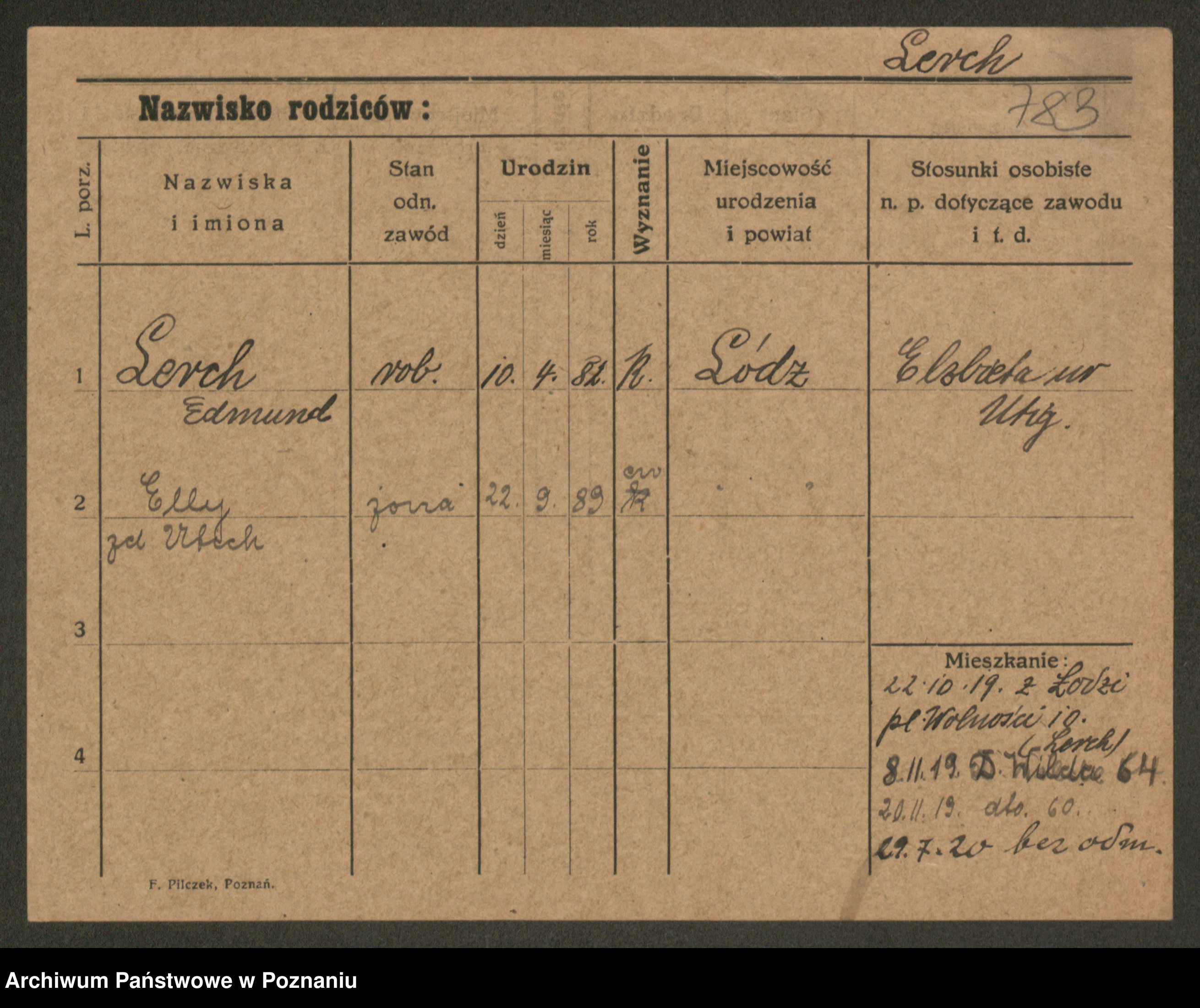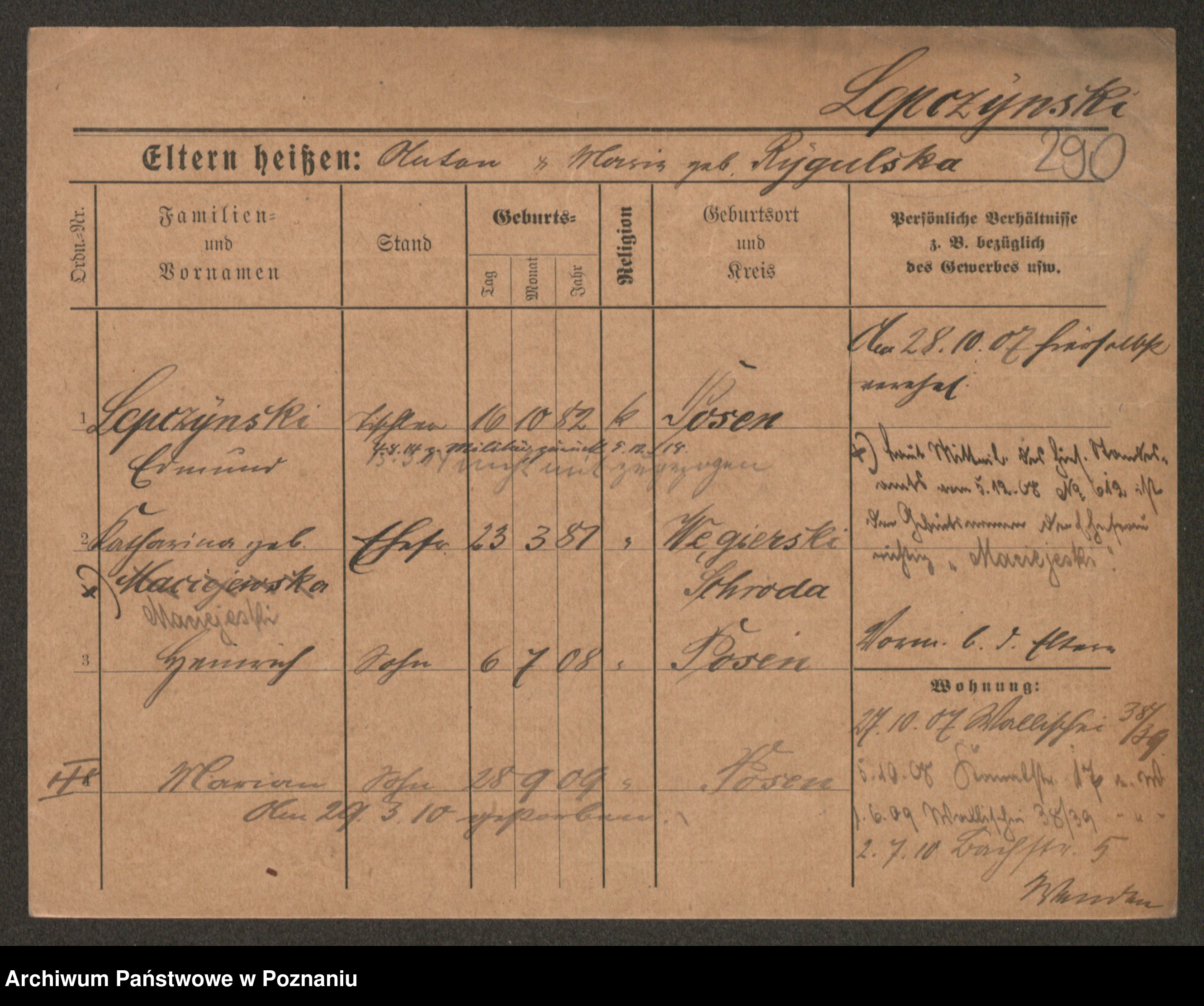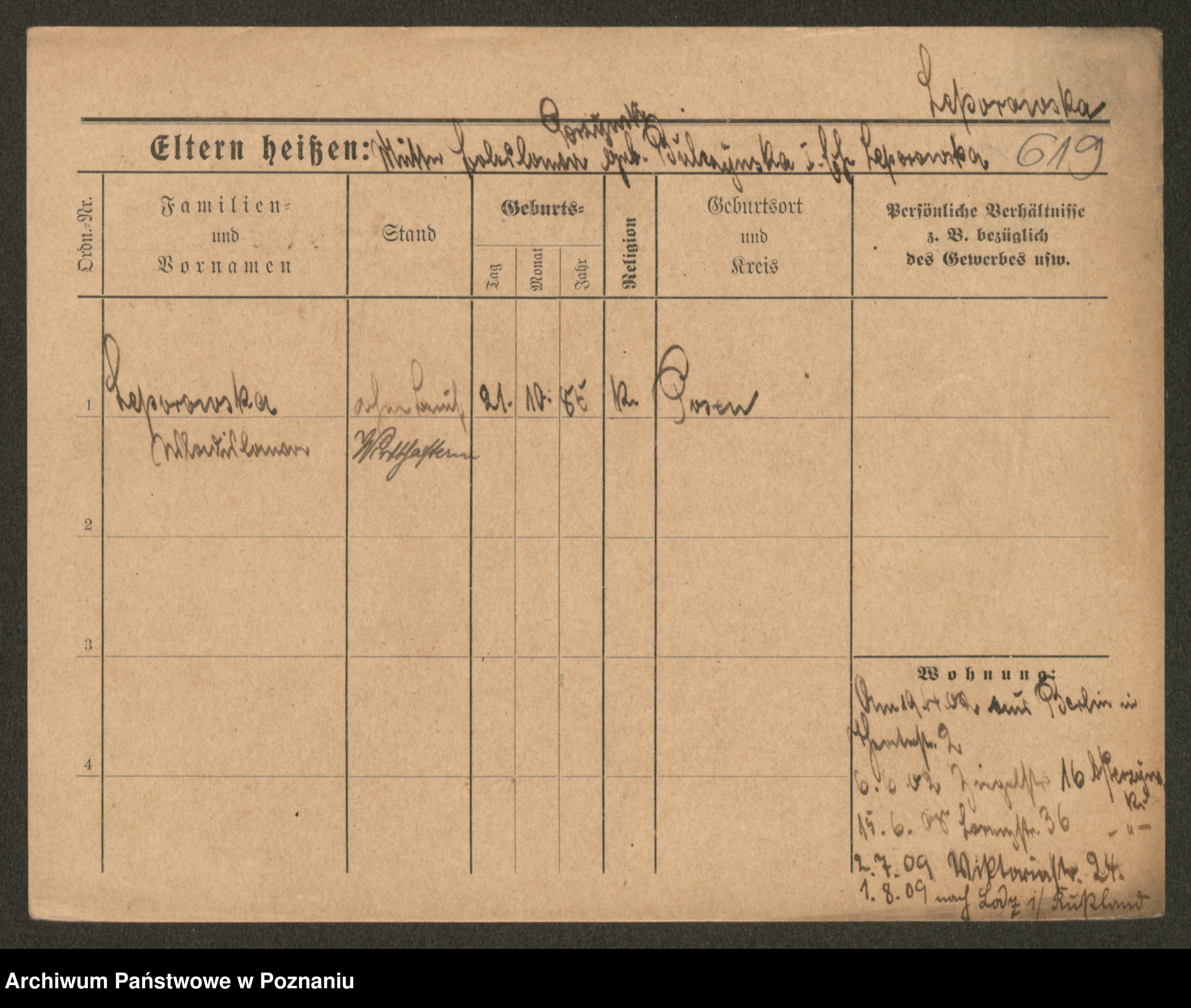 Podgląd karty osobowej dostępny jest po kliknięciu na nazwisko lub ikonkę karty. Można dokonywać powiększenia (ikony na górze) lub przechodzić między kolejnymi skanami (strzałki po bokach).