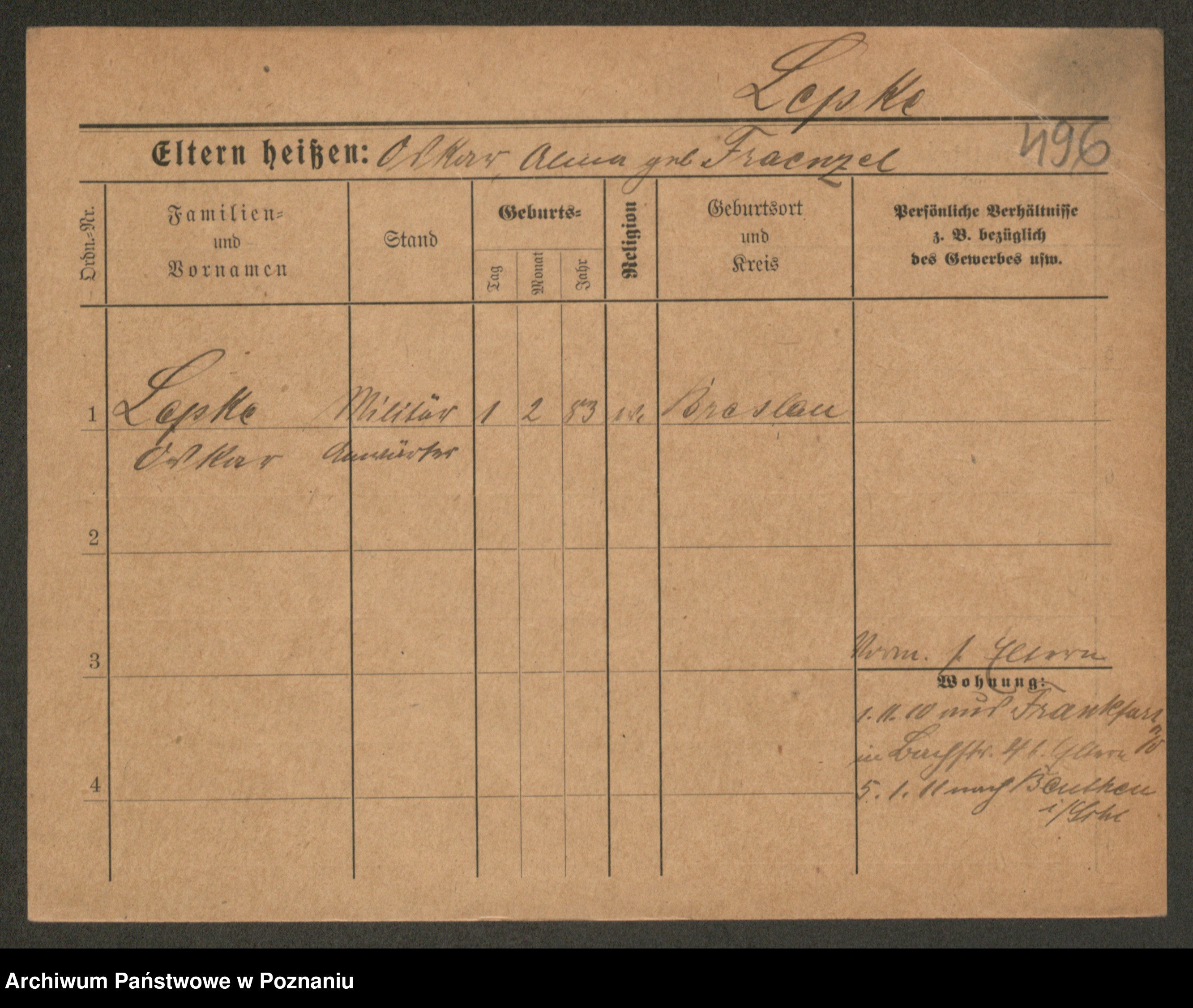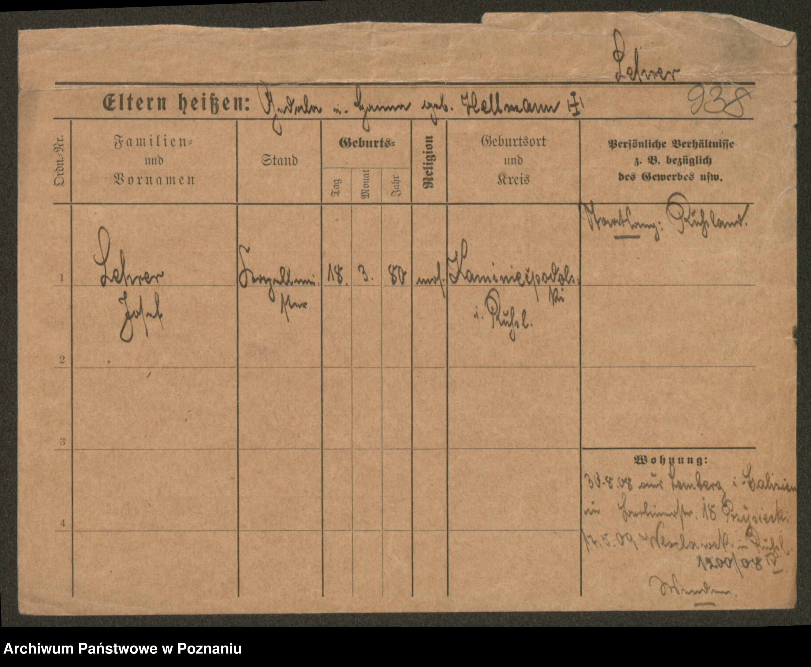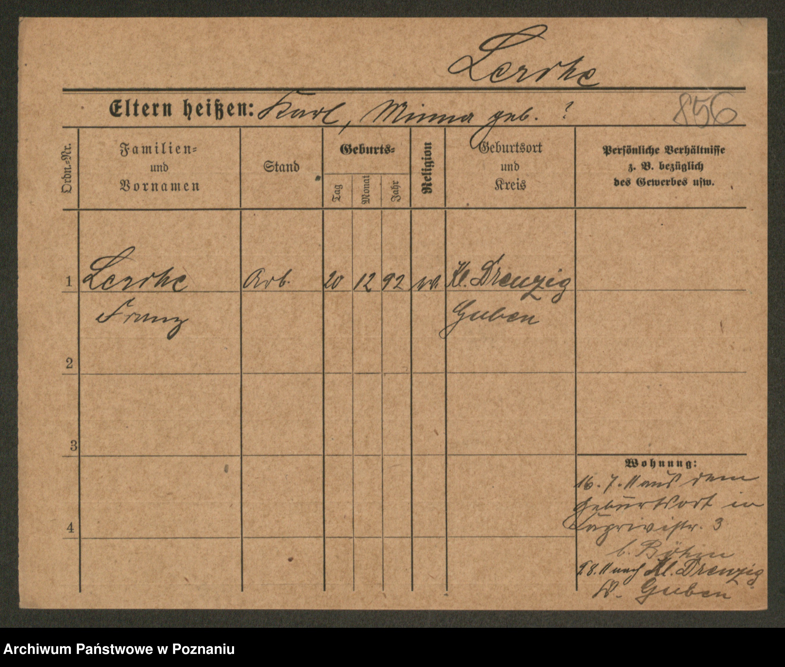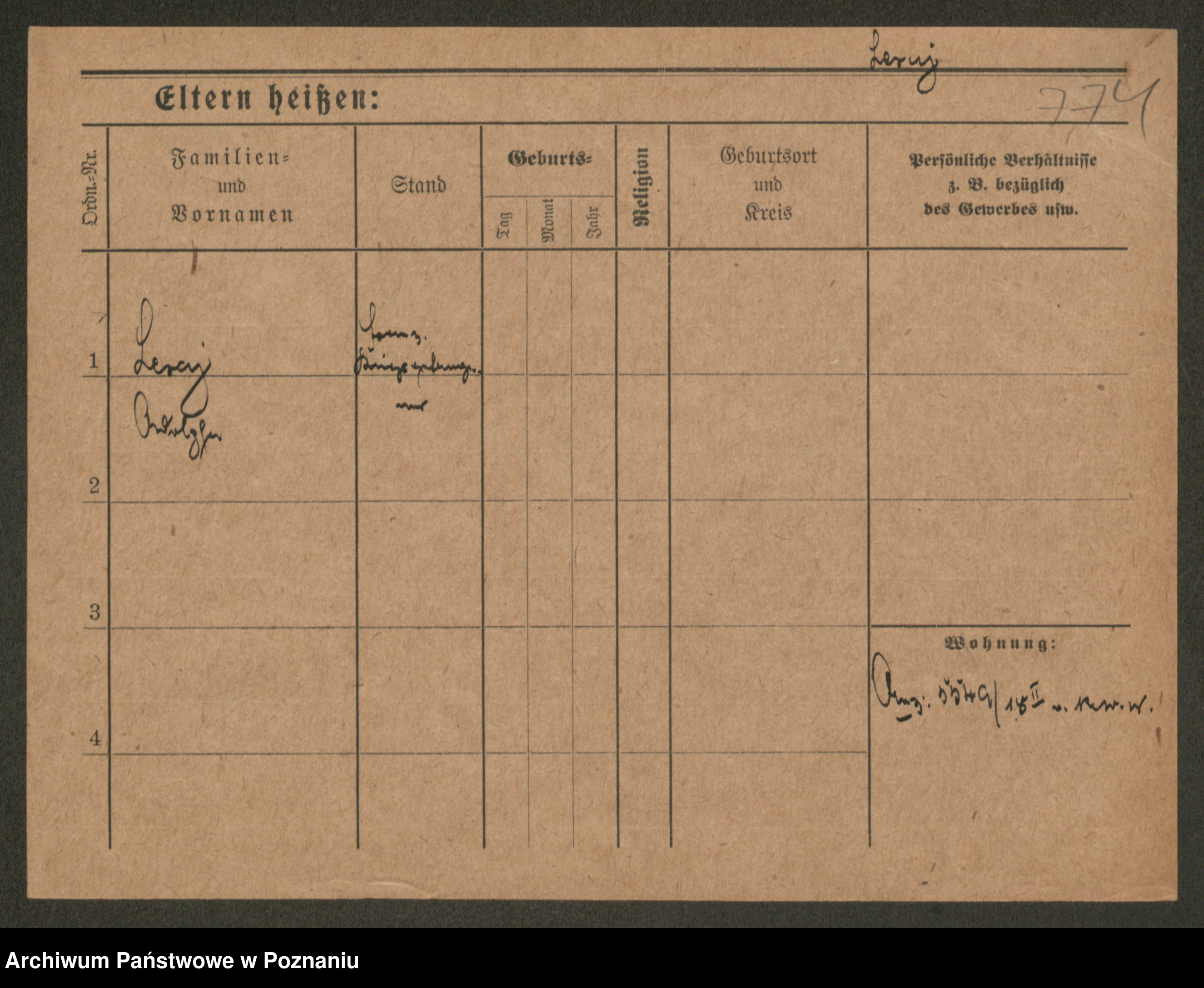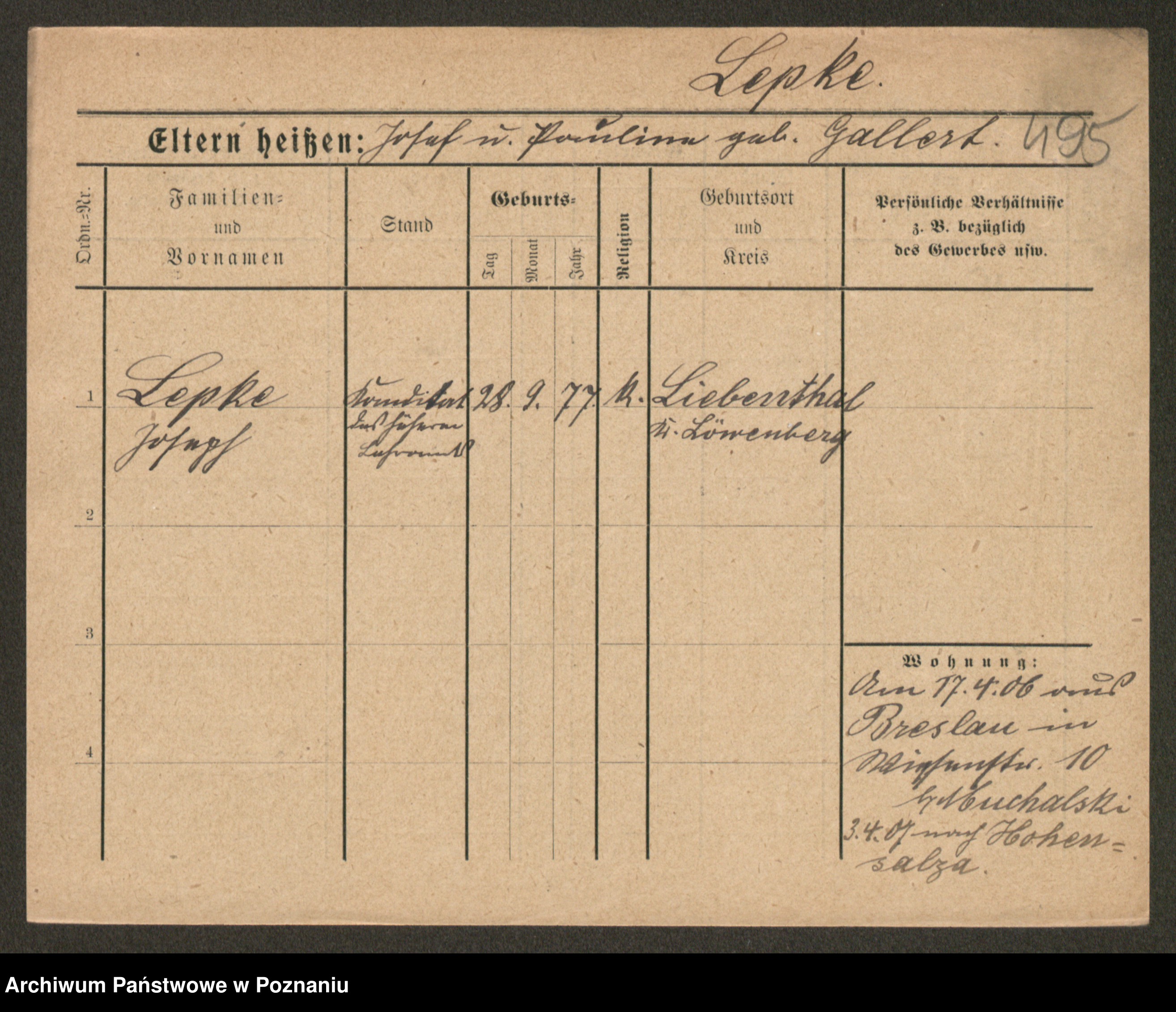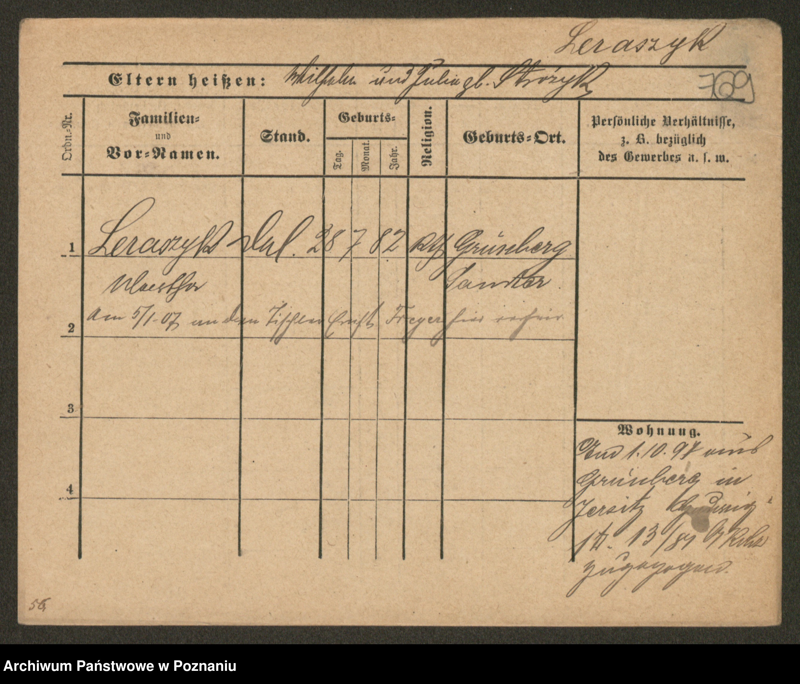Podgląd karty osobowej dostępny jest po kliknięciu na nazwisko lub ikonkę karty. Można dokonywać powiększenia (ikony na górze) lub przechodzić między kolejnymi skanami (strzałki po bokach).