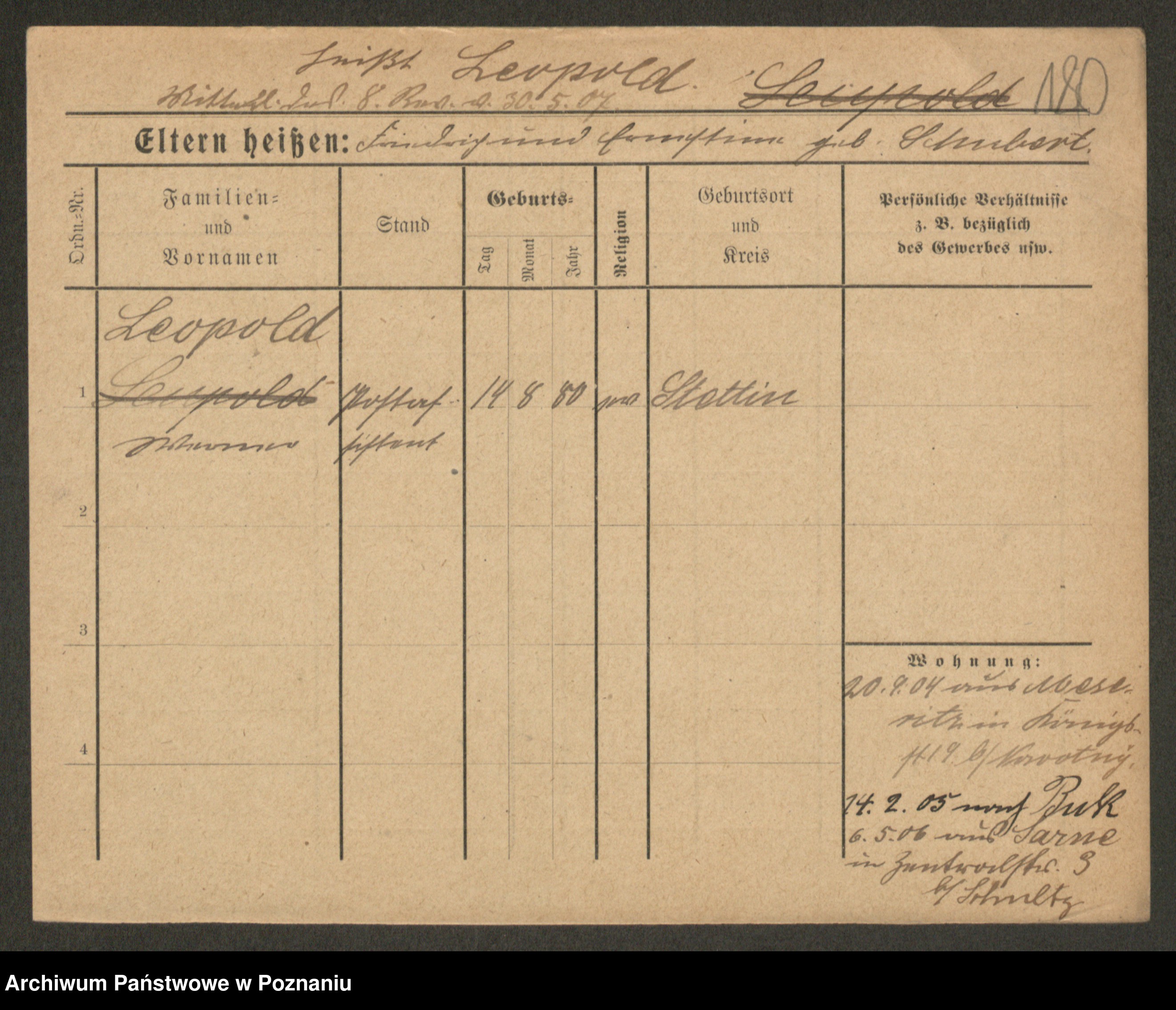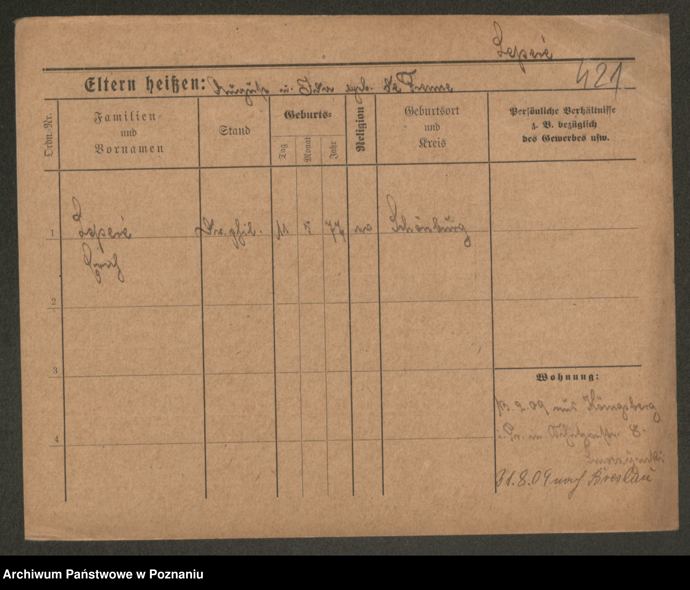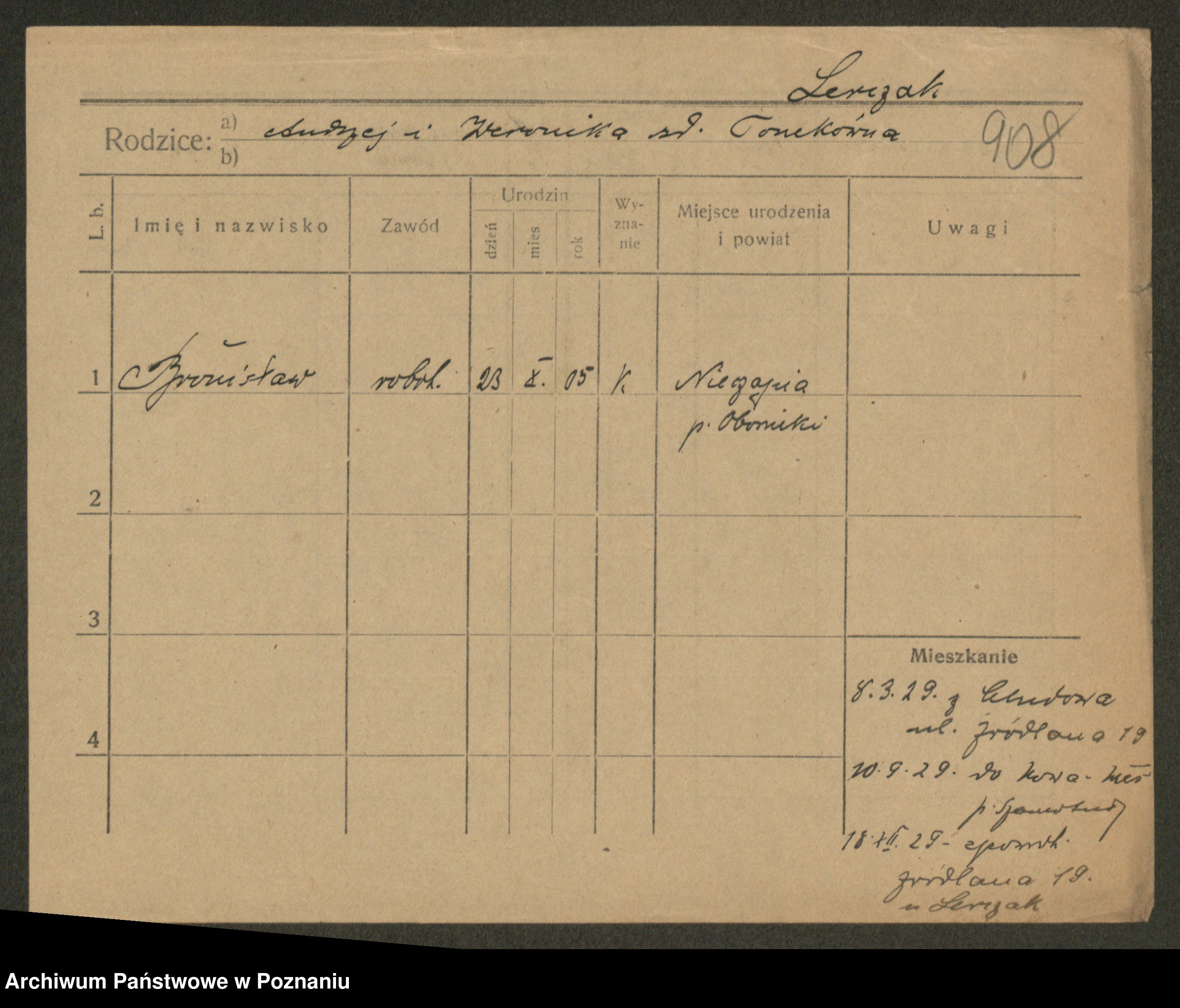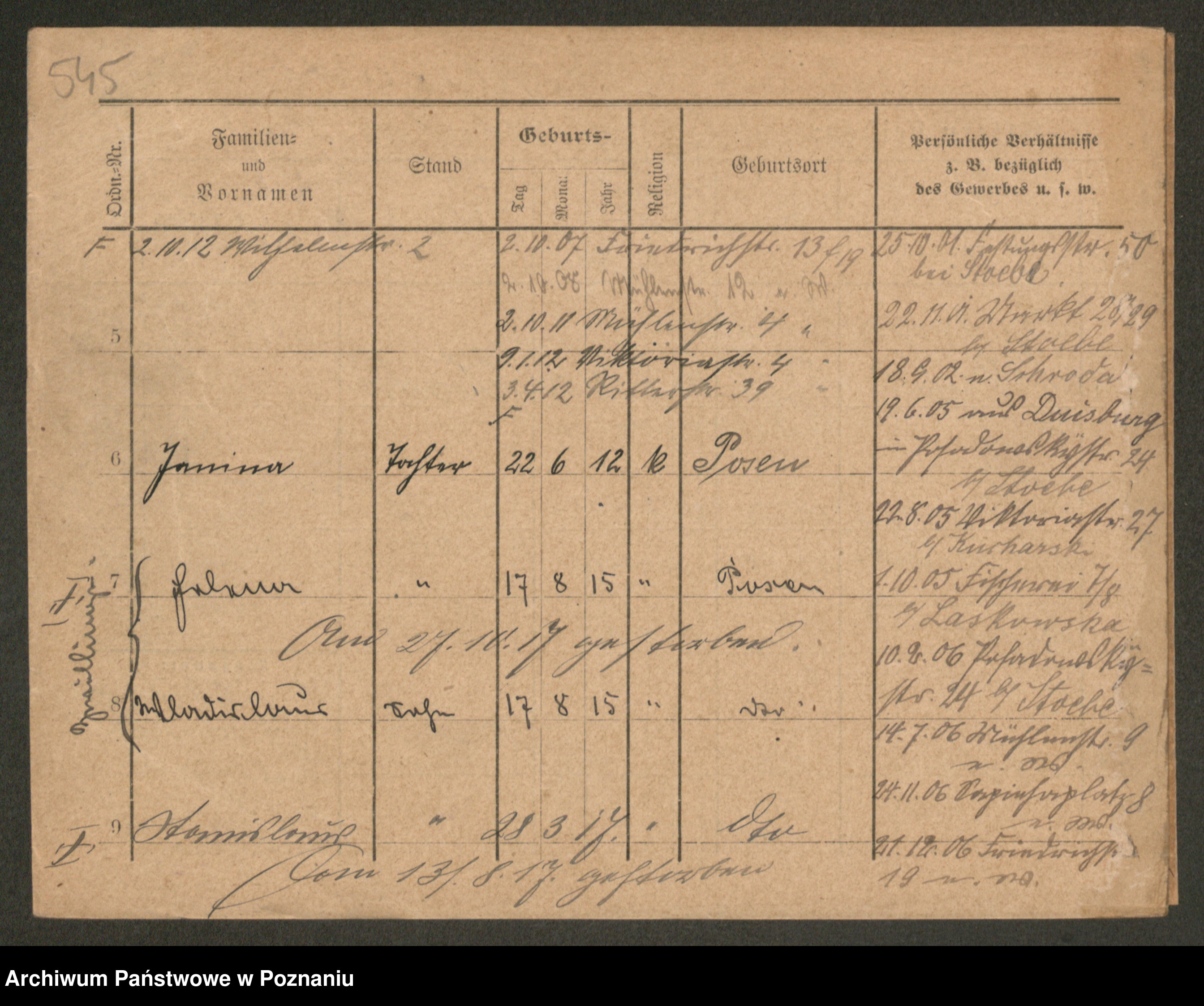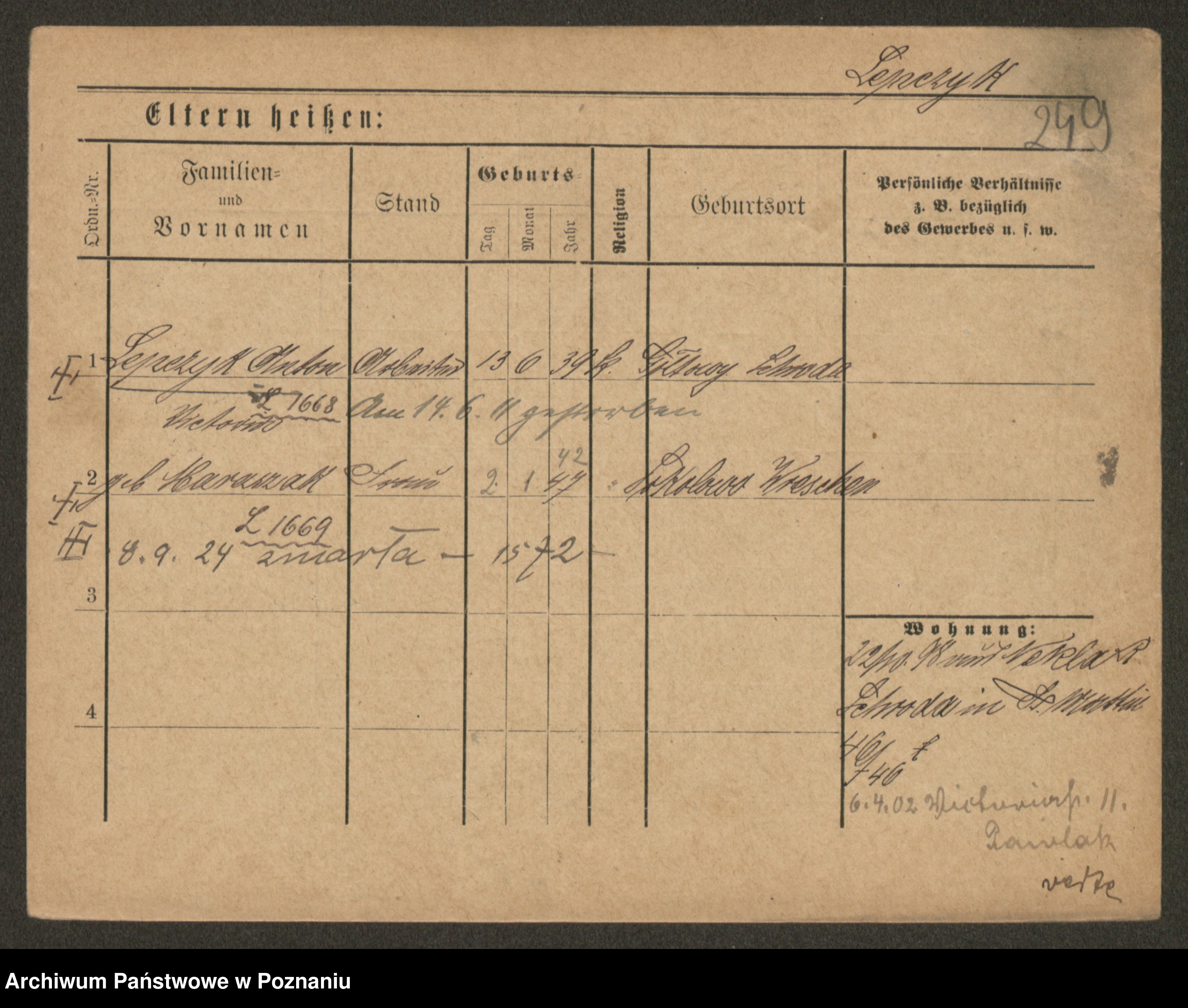 Podgląd karty osobowej dostępny jest po kliknięciu na nazwisko lub ikonkę karty. Można dokonywać powiększenia (ikony na górze) lub przechodzić między kolejnymi skanami (strzałki po bokach).