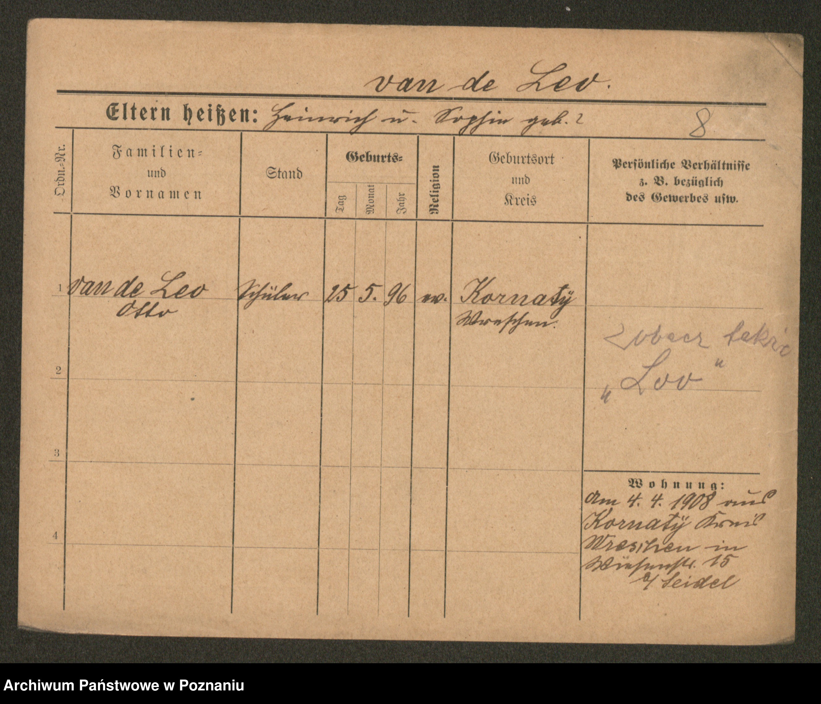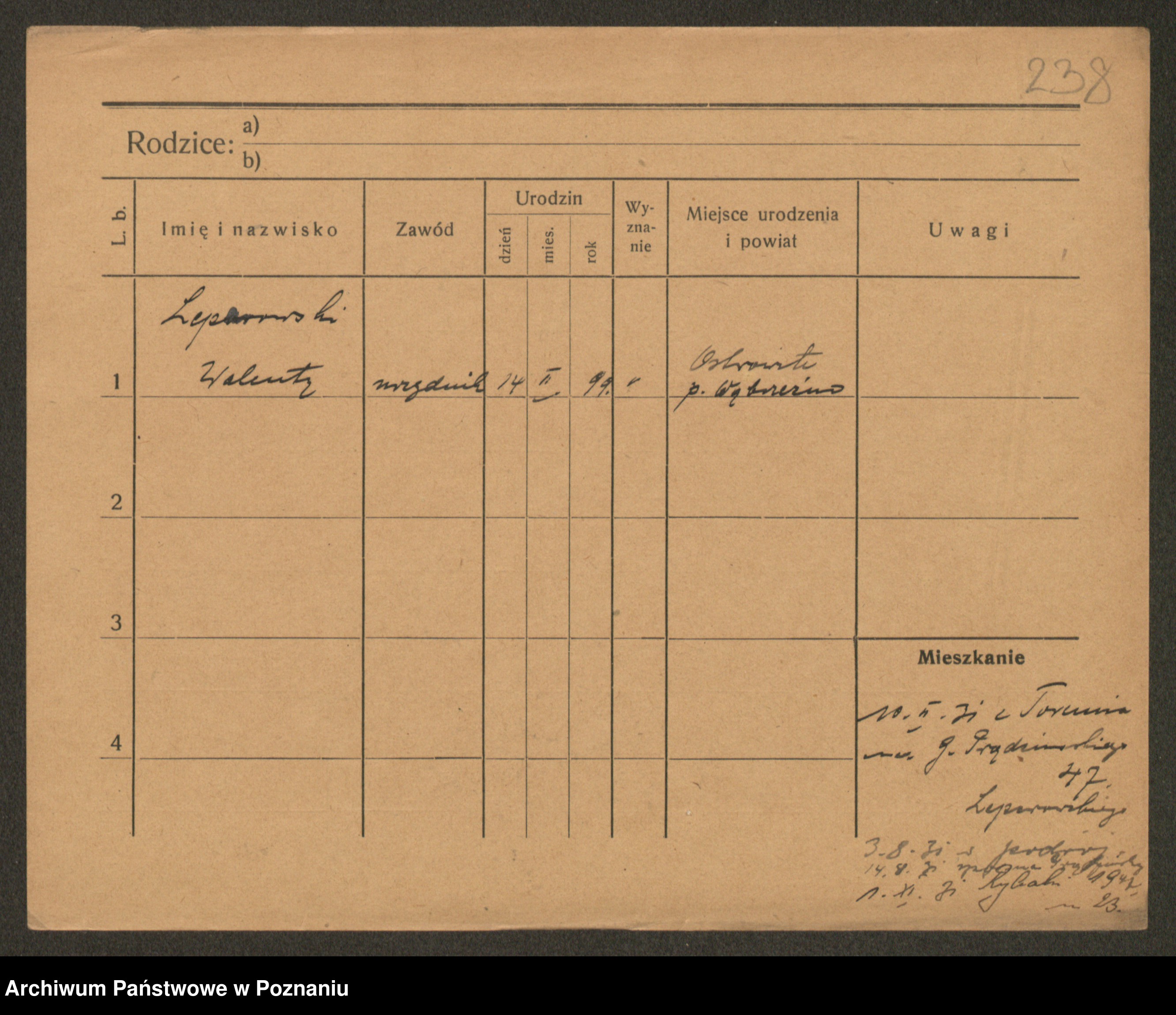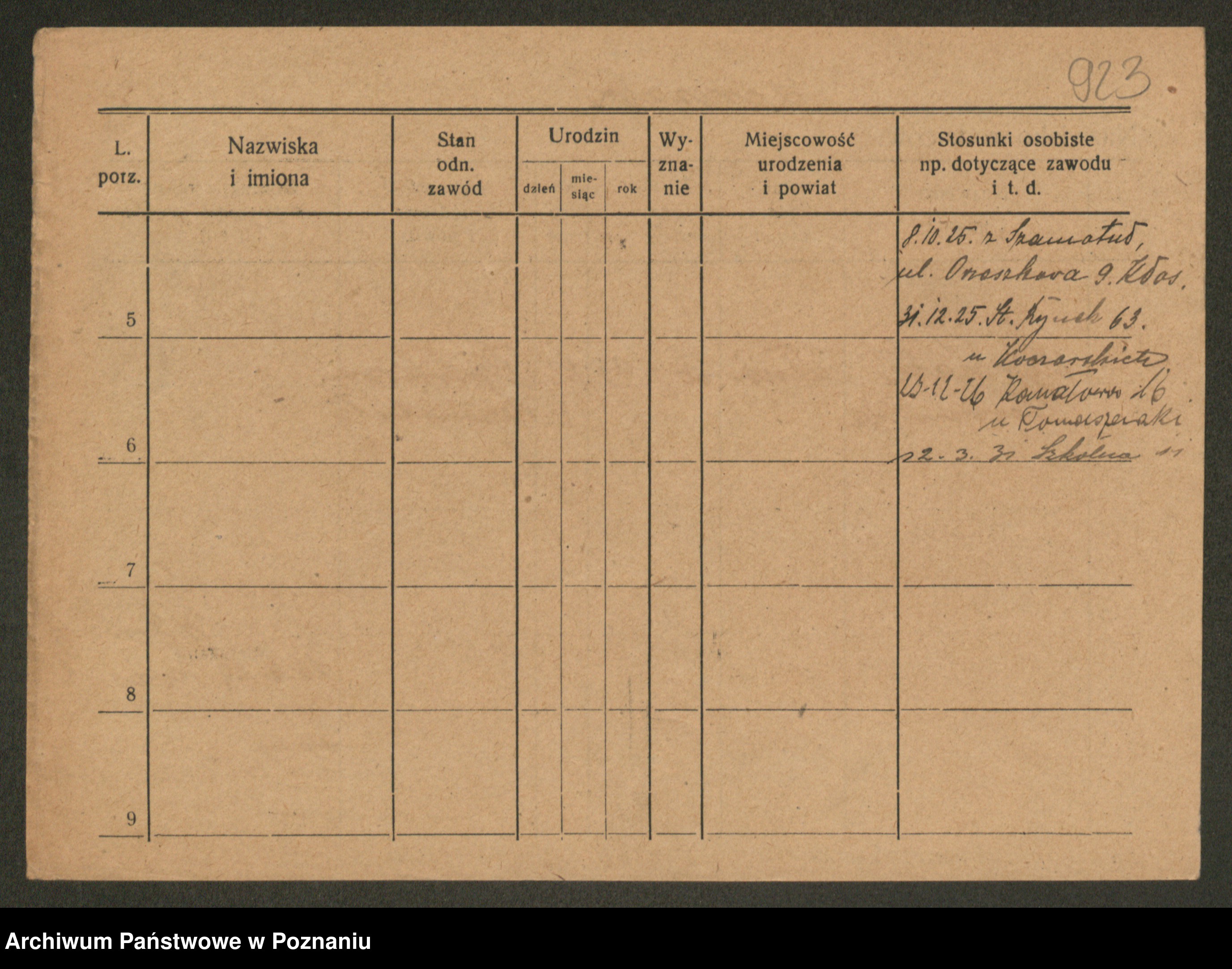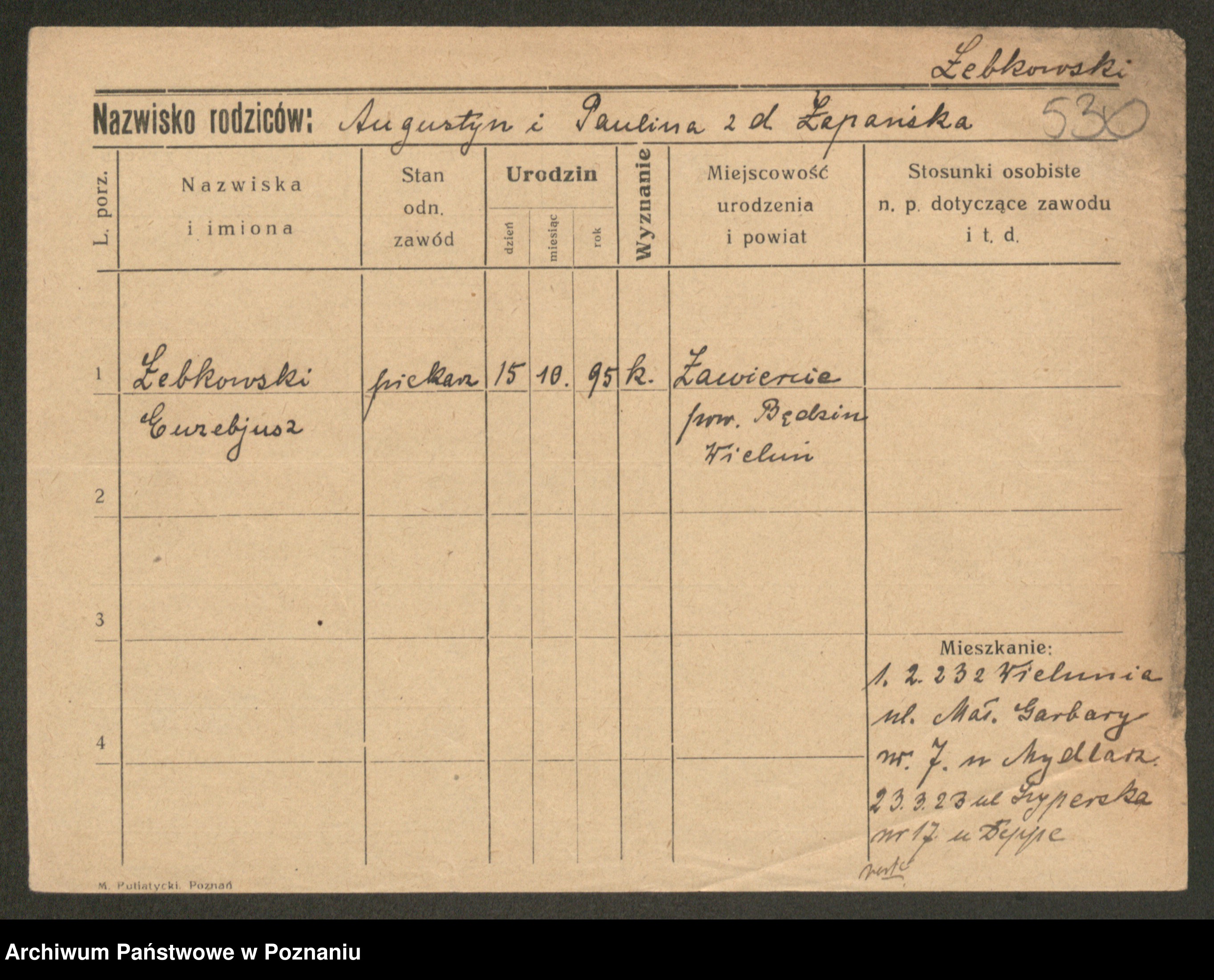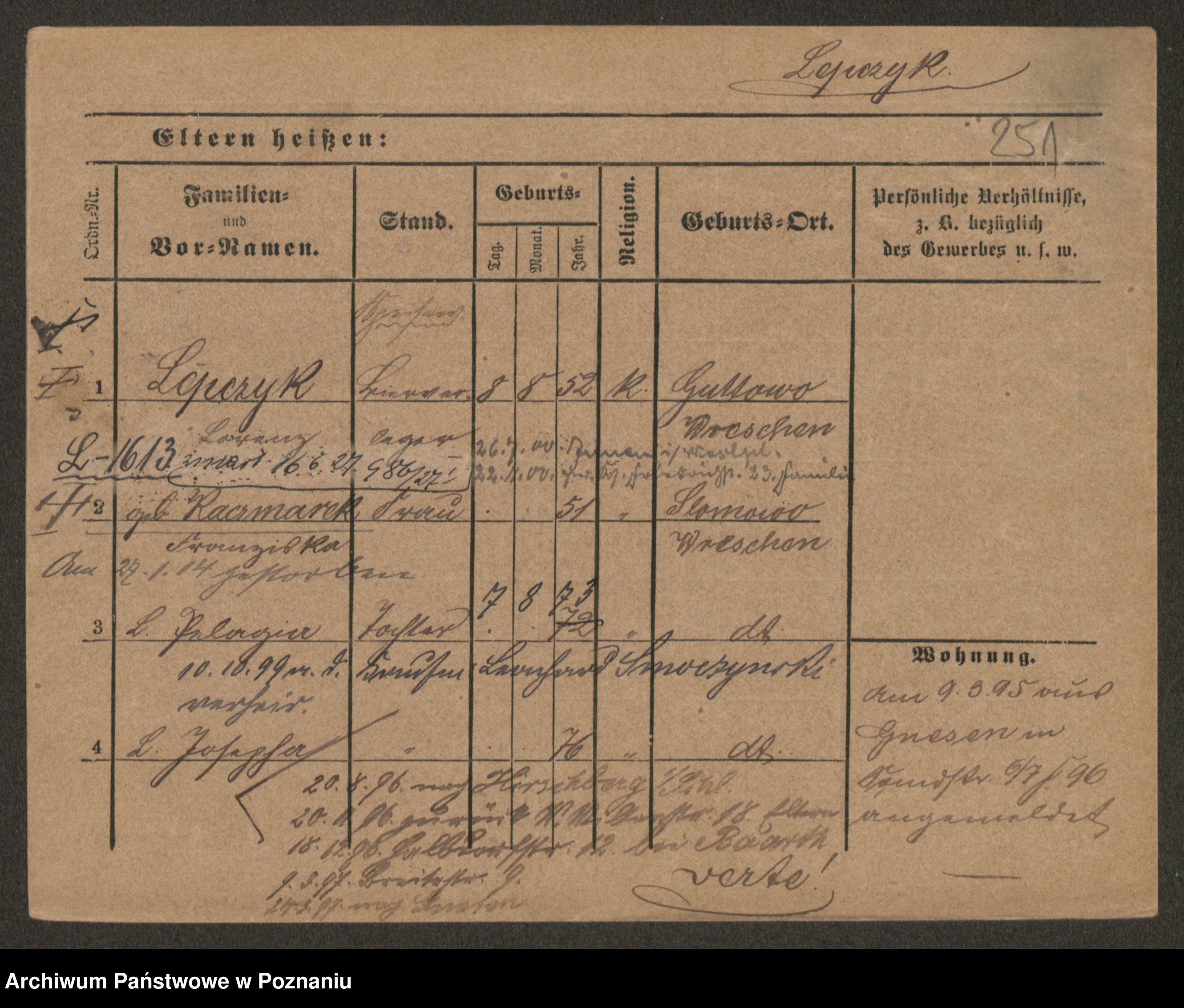 Podgląd karty osobowej dostępny jest po kliknięciu na nazwisko lub ikonkę karty. Można dokonywać powiększenia (ikony na górze) lub przechodzić między kolejnymi skanami (strzałki po bokach).