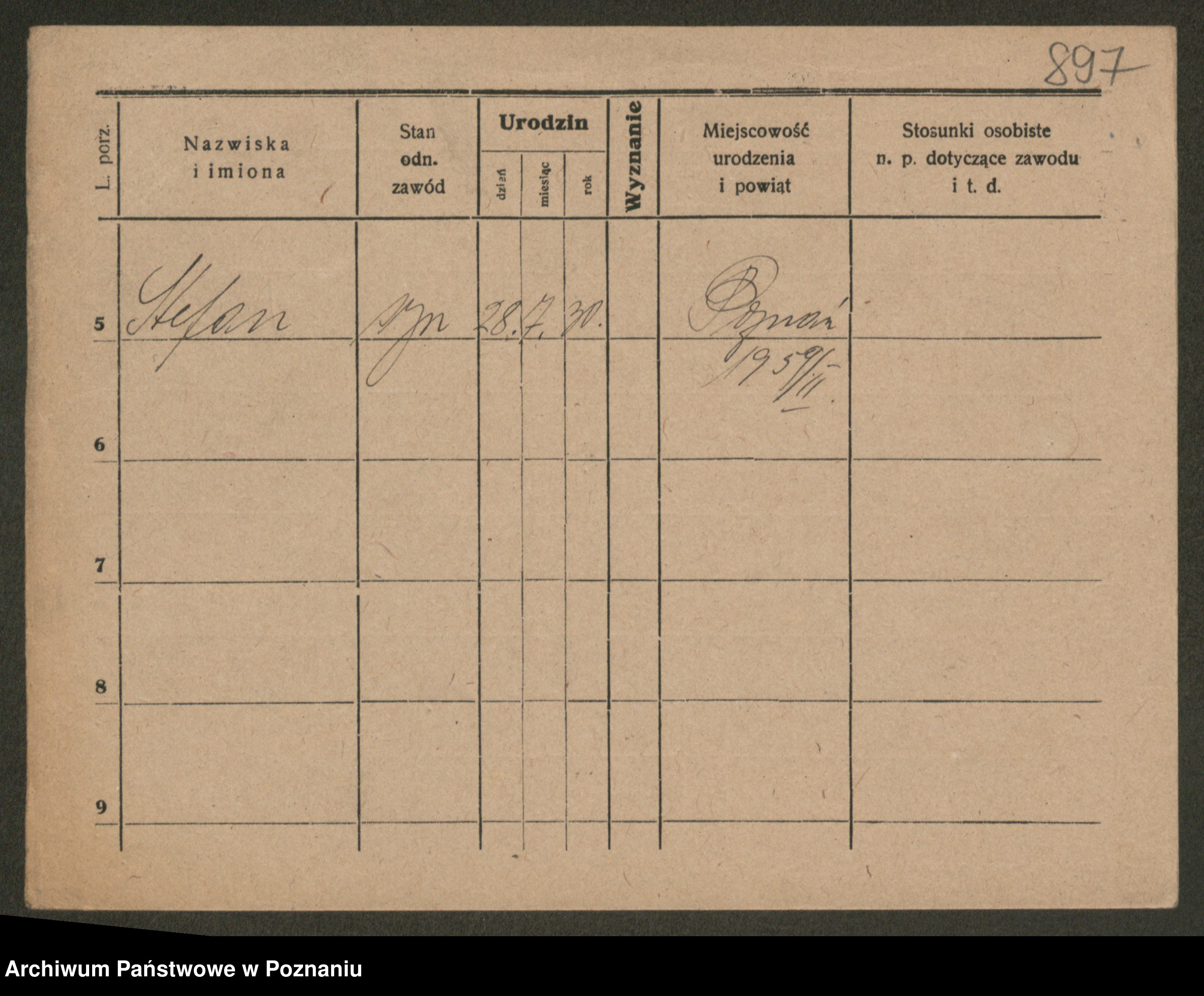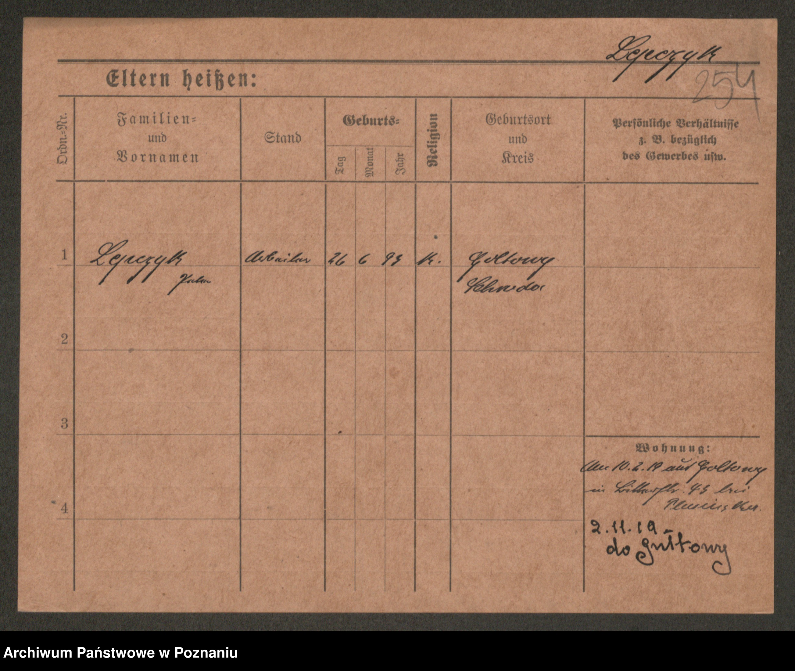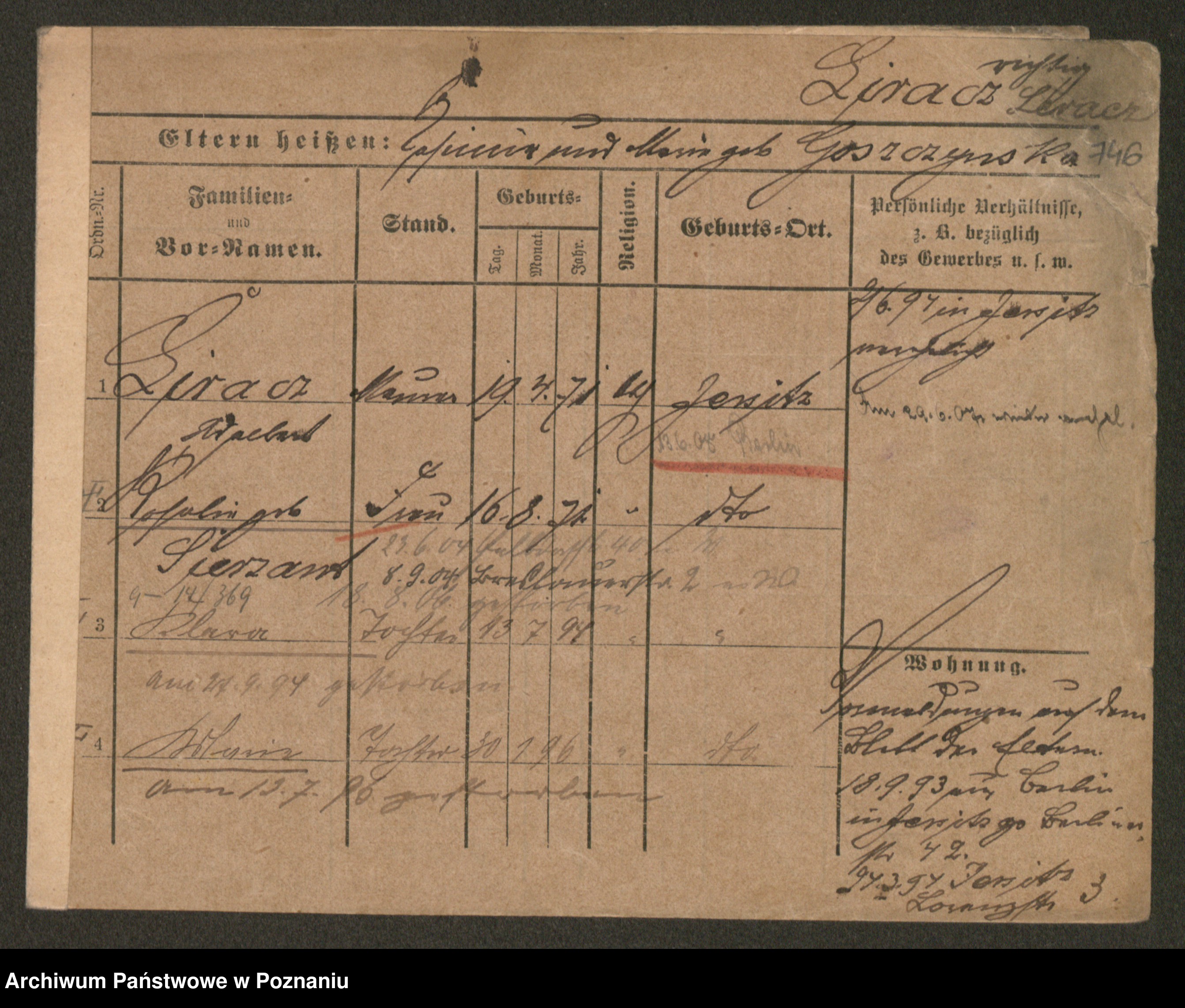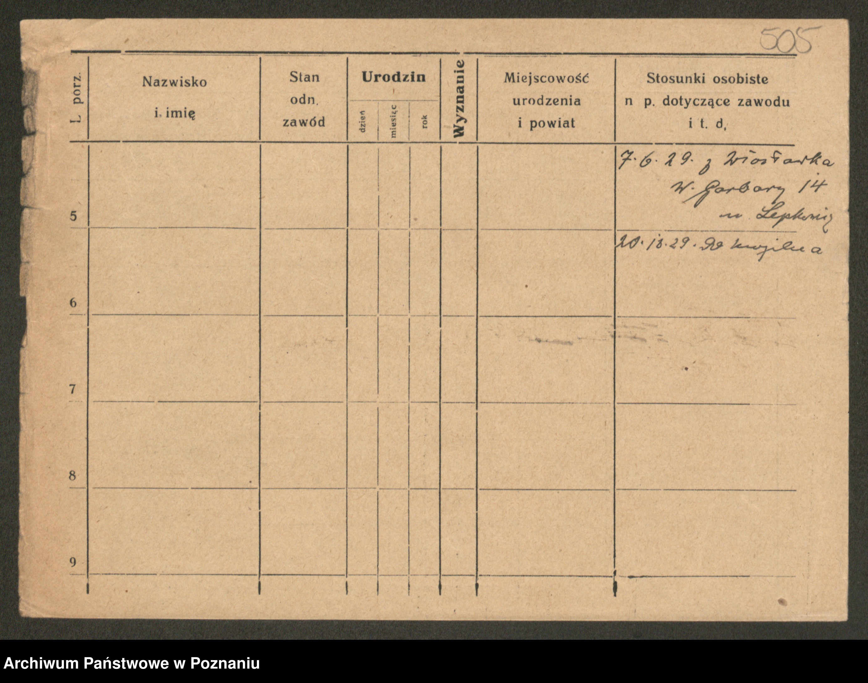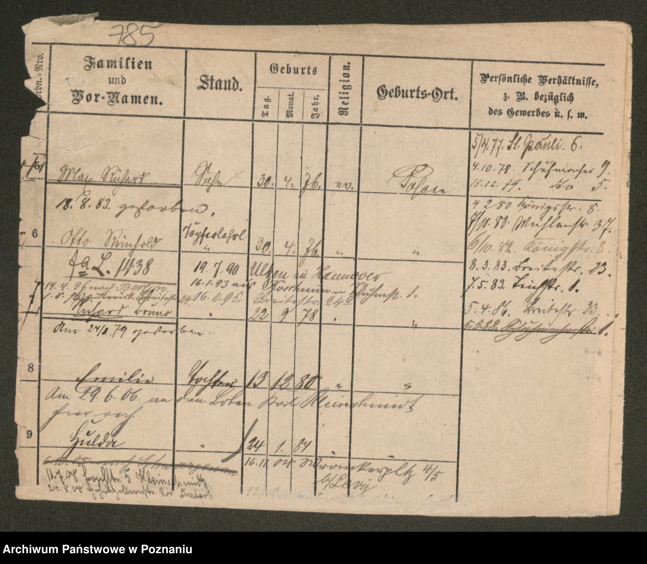 Podgląd karty osobowej dostępny jest po kliknięciu na nazwisko lub ikonkę karty. Można dokonywać powiększenia (ikony na górze) lub przechodzić między kolejnymi skanami (strzałki po bokach).