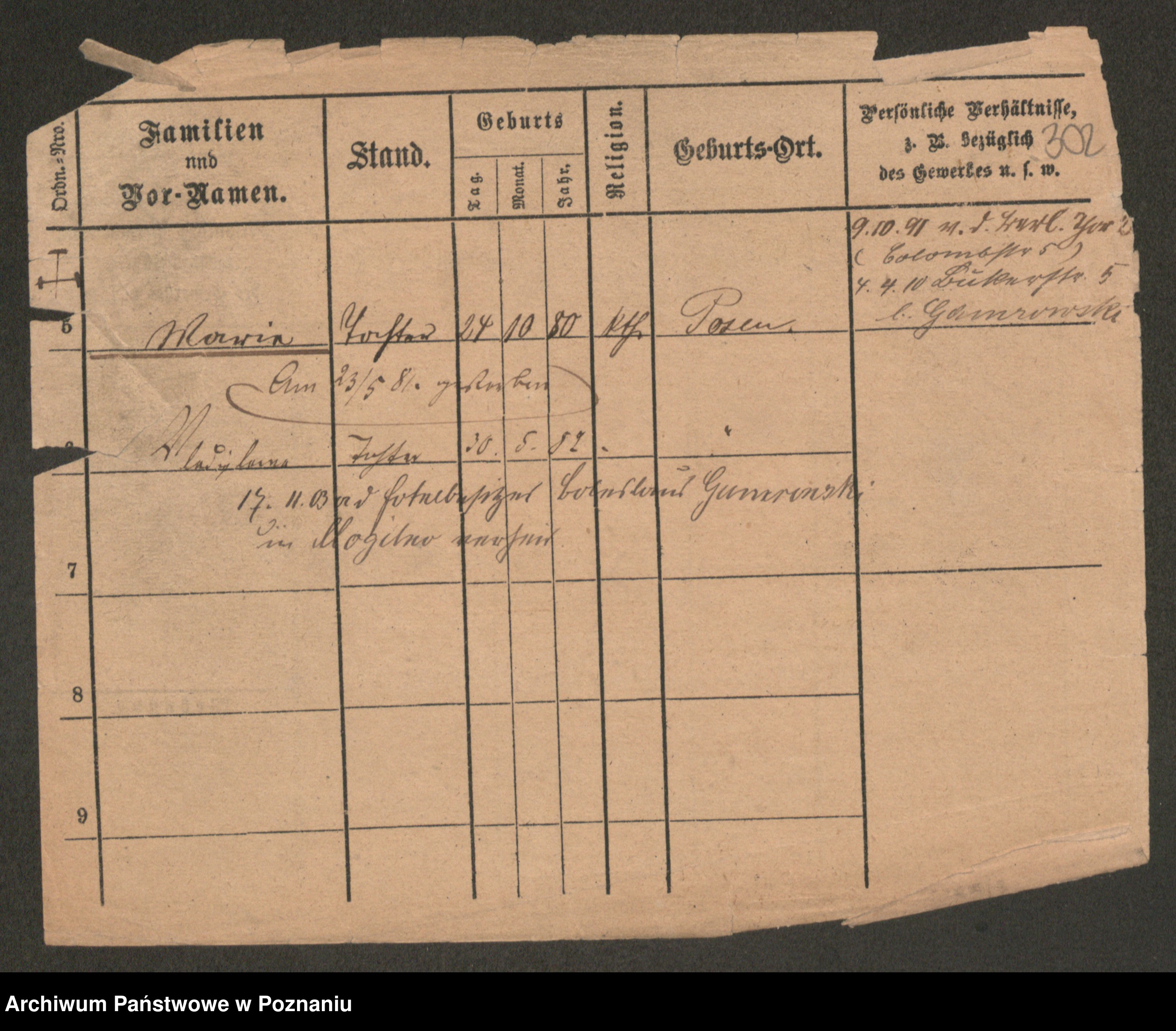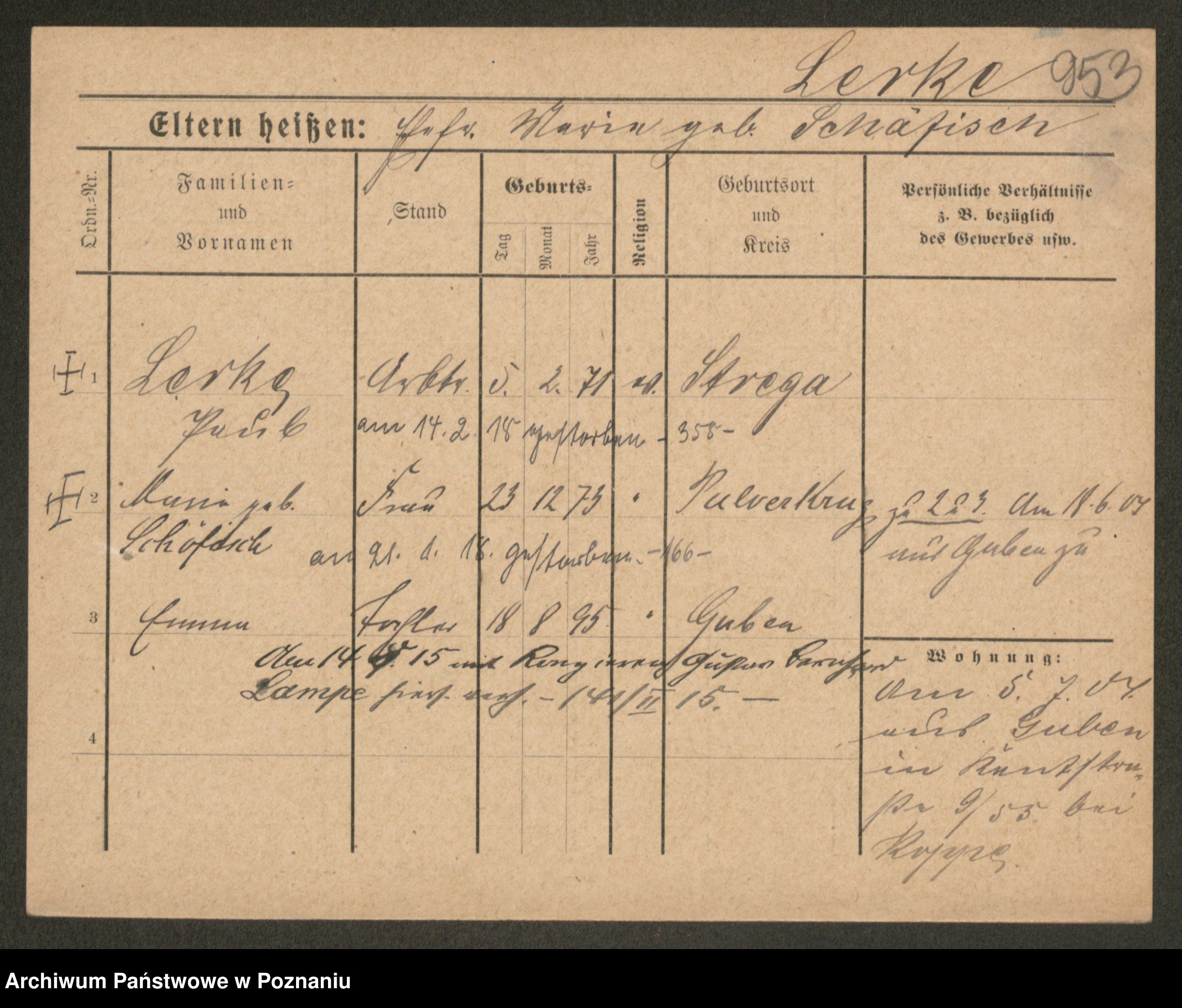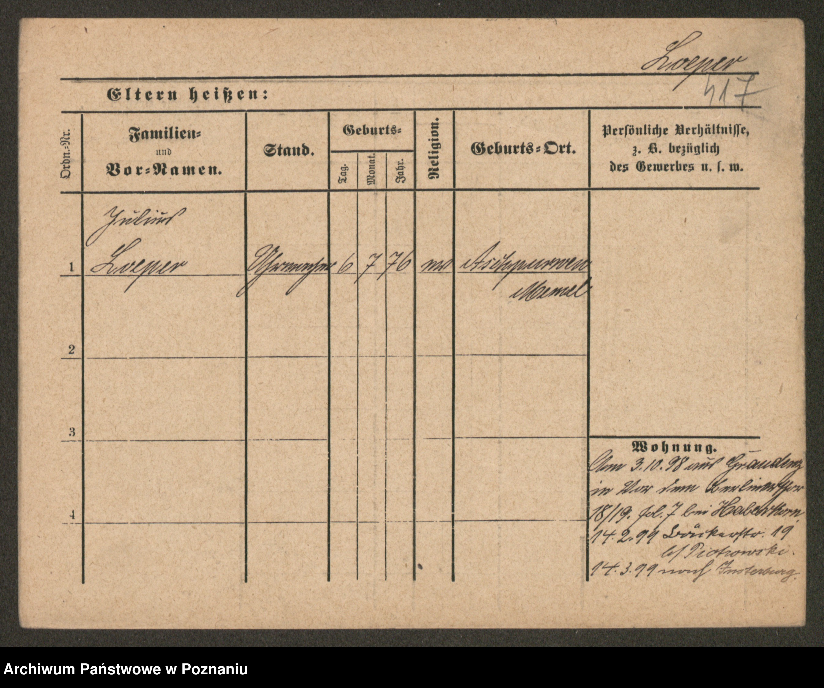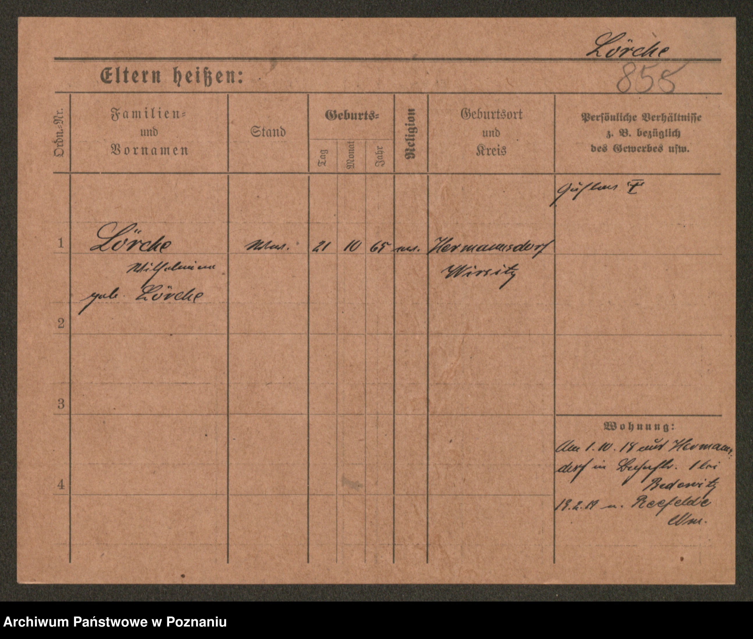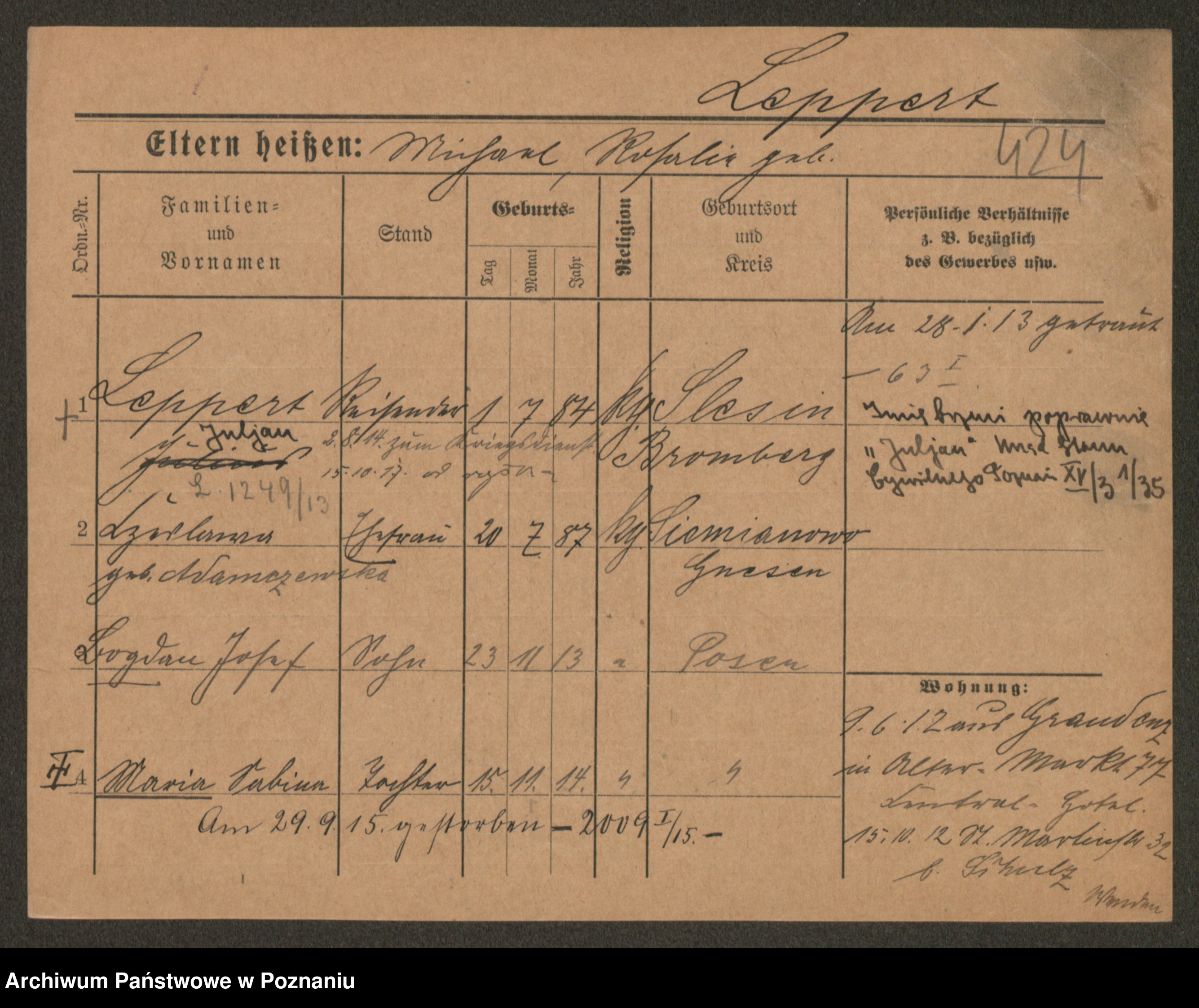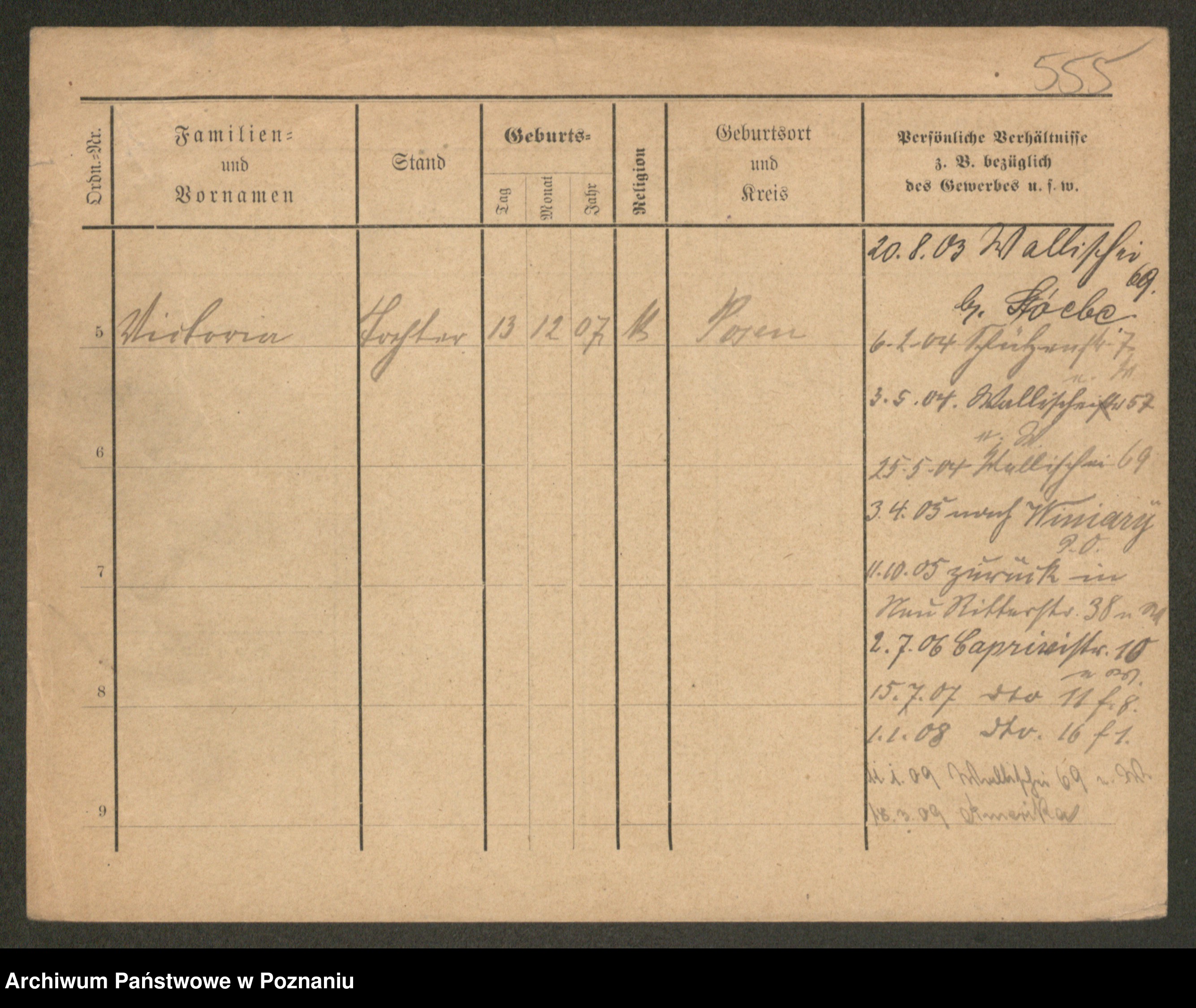 Podgląd karty osobowej dostępny jest po kliknięciu na nazwisko lub ikonkę karty. Można dokonywać powiększenia (ikony na górze) lub przechodzić między kolejnymi skanami (strzałki po bokach).