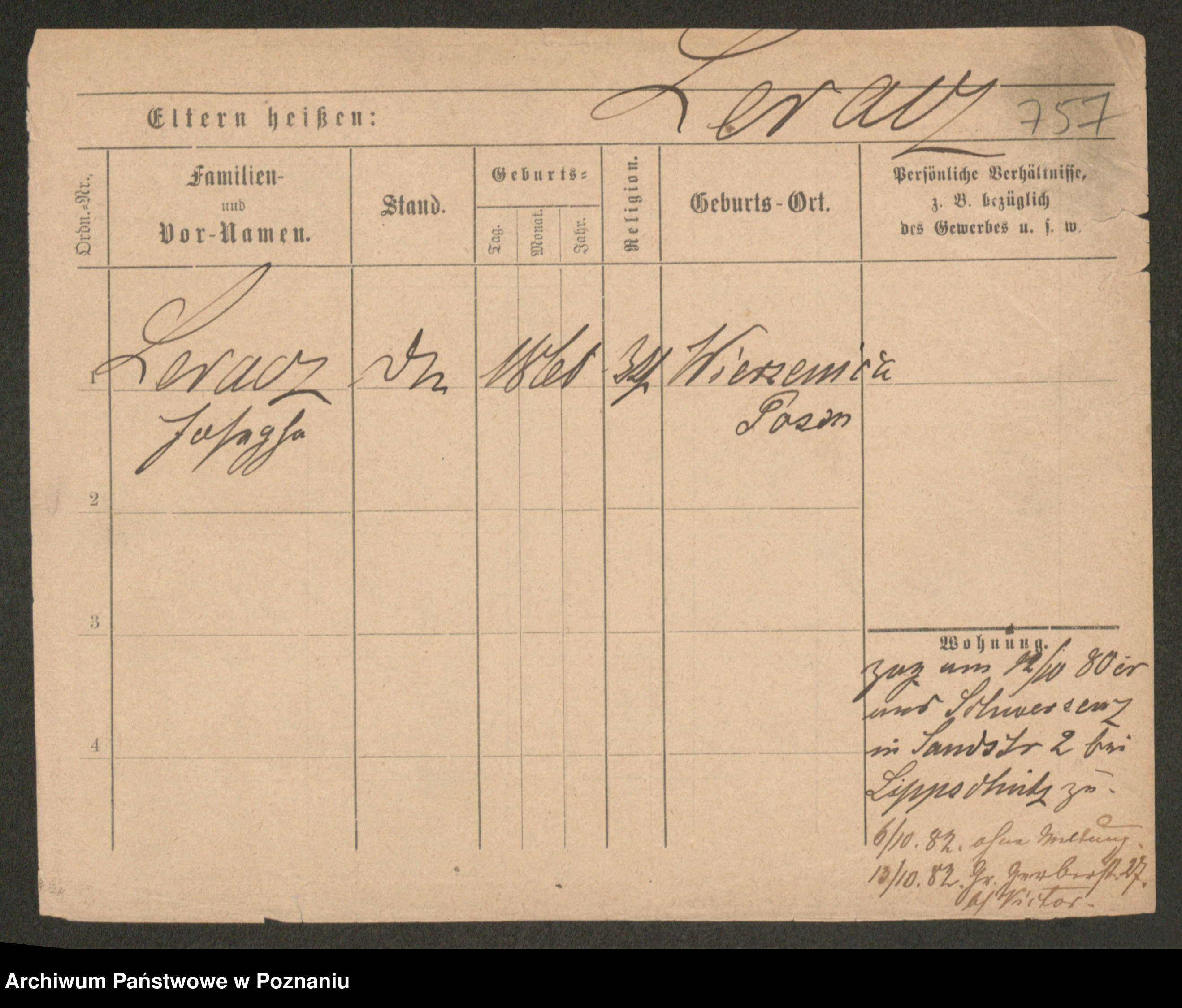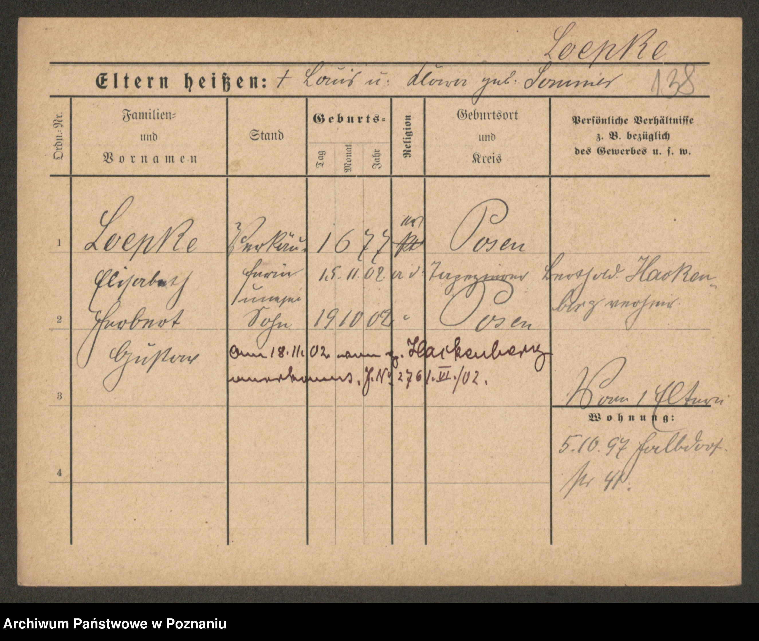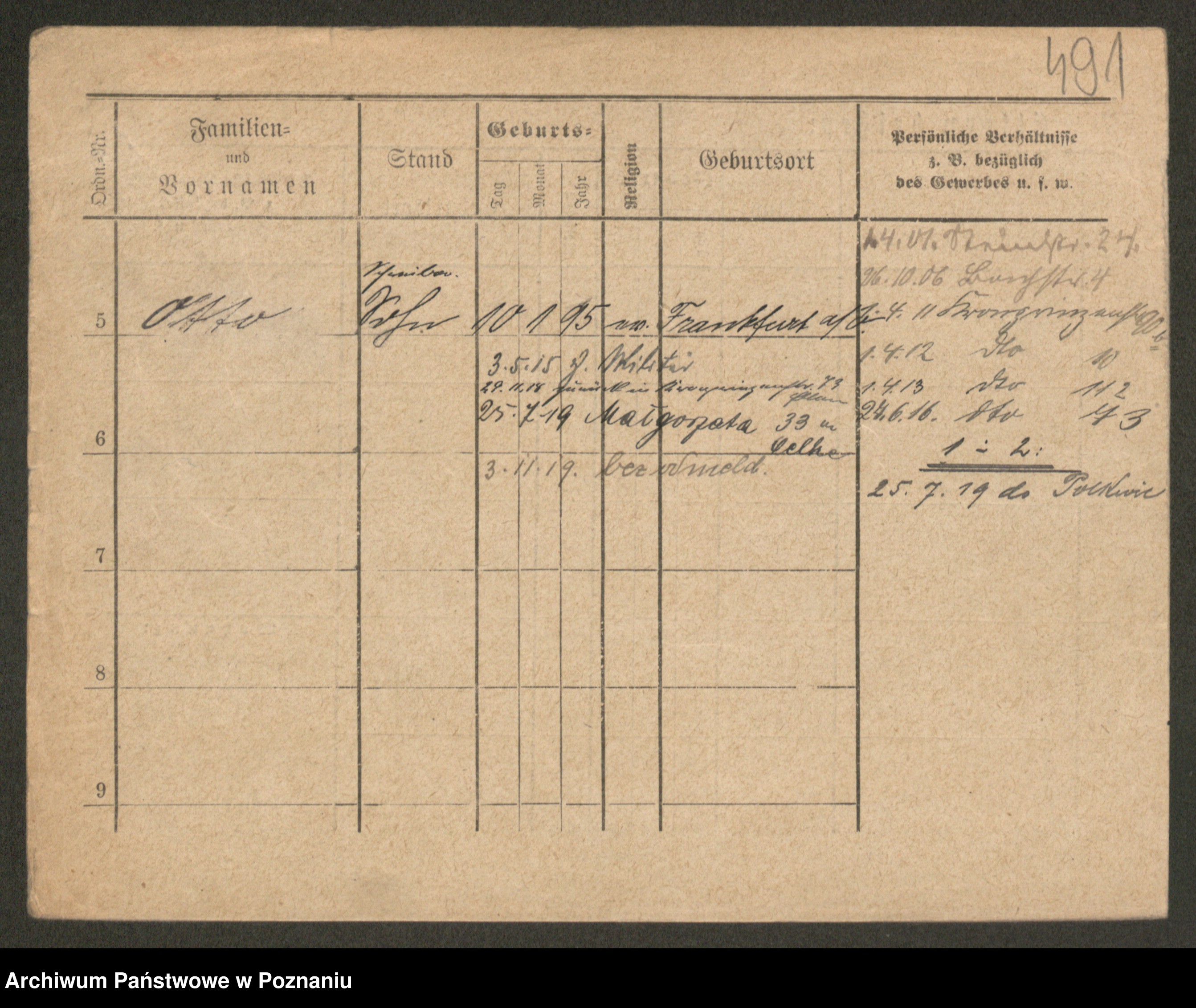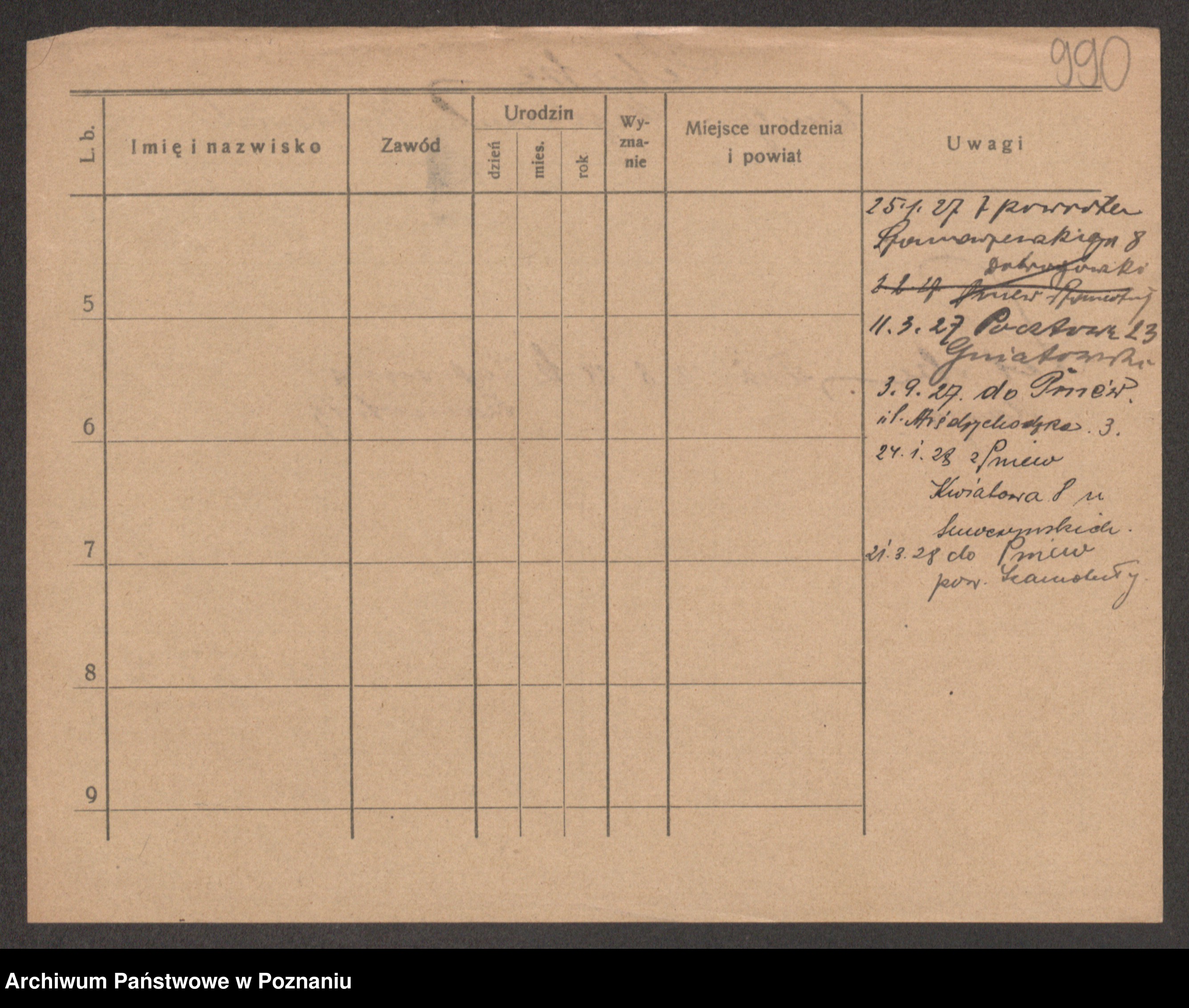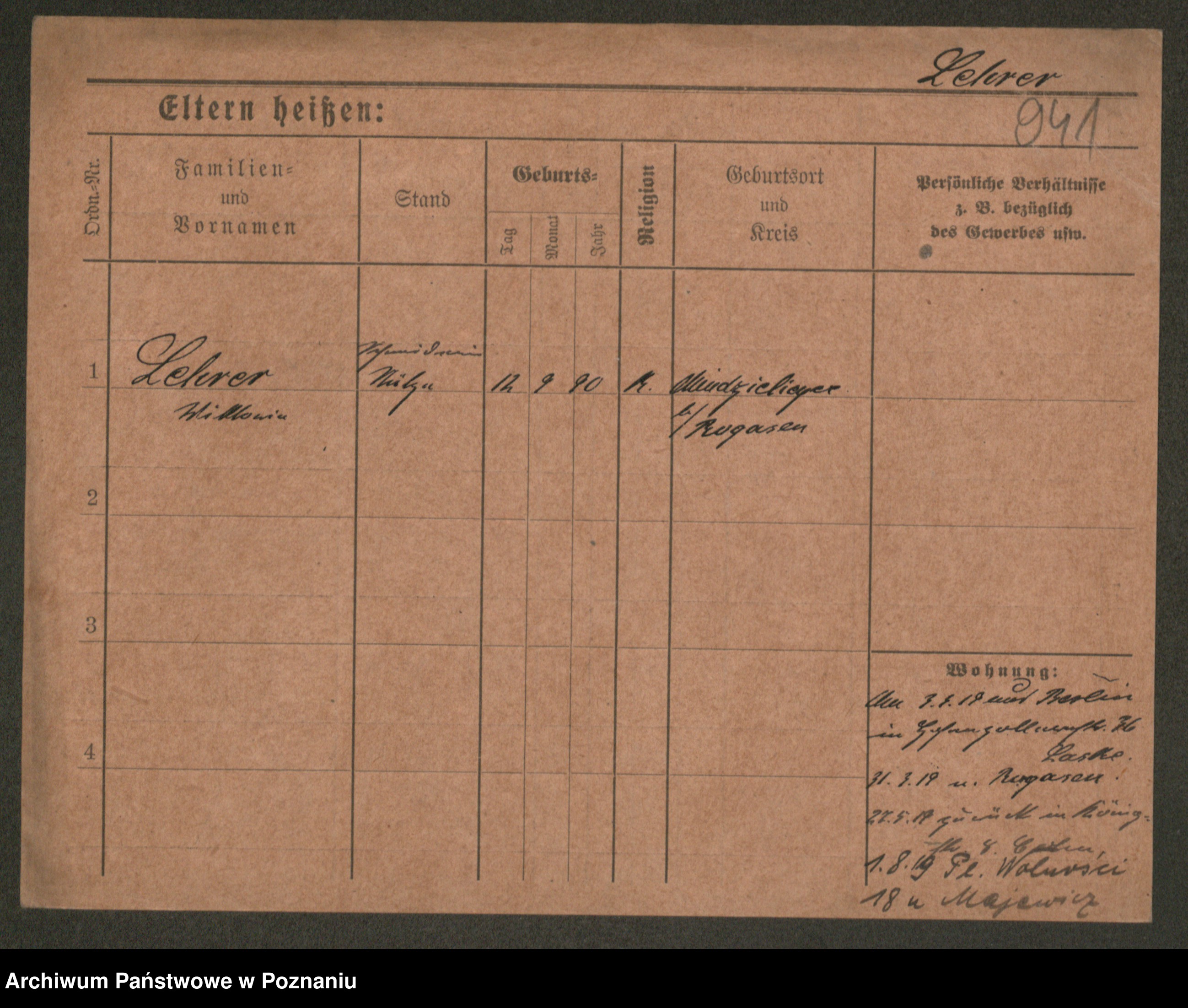 Podgląd karty osobowej dostępny jest po kliknięciu na nazwisko lub ikonkę karty. Można dokonywać powiększenia (ikony na górze) lub przechodzić między kolejnymi skanami (strzałki po bokach).