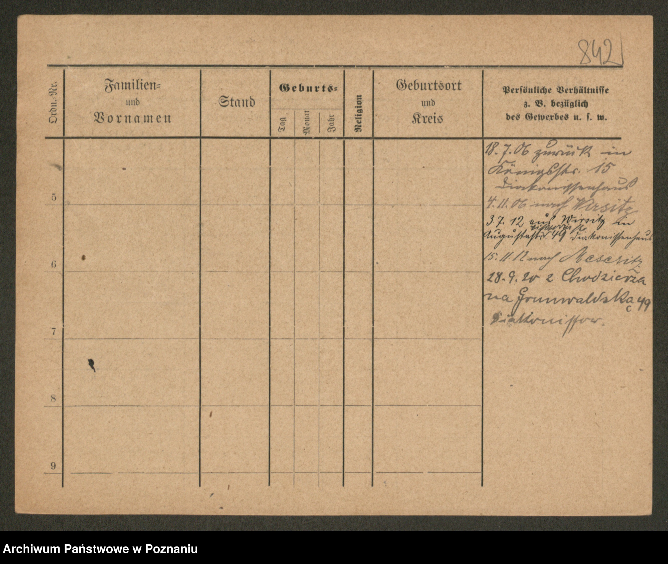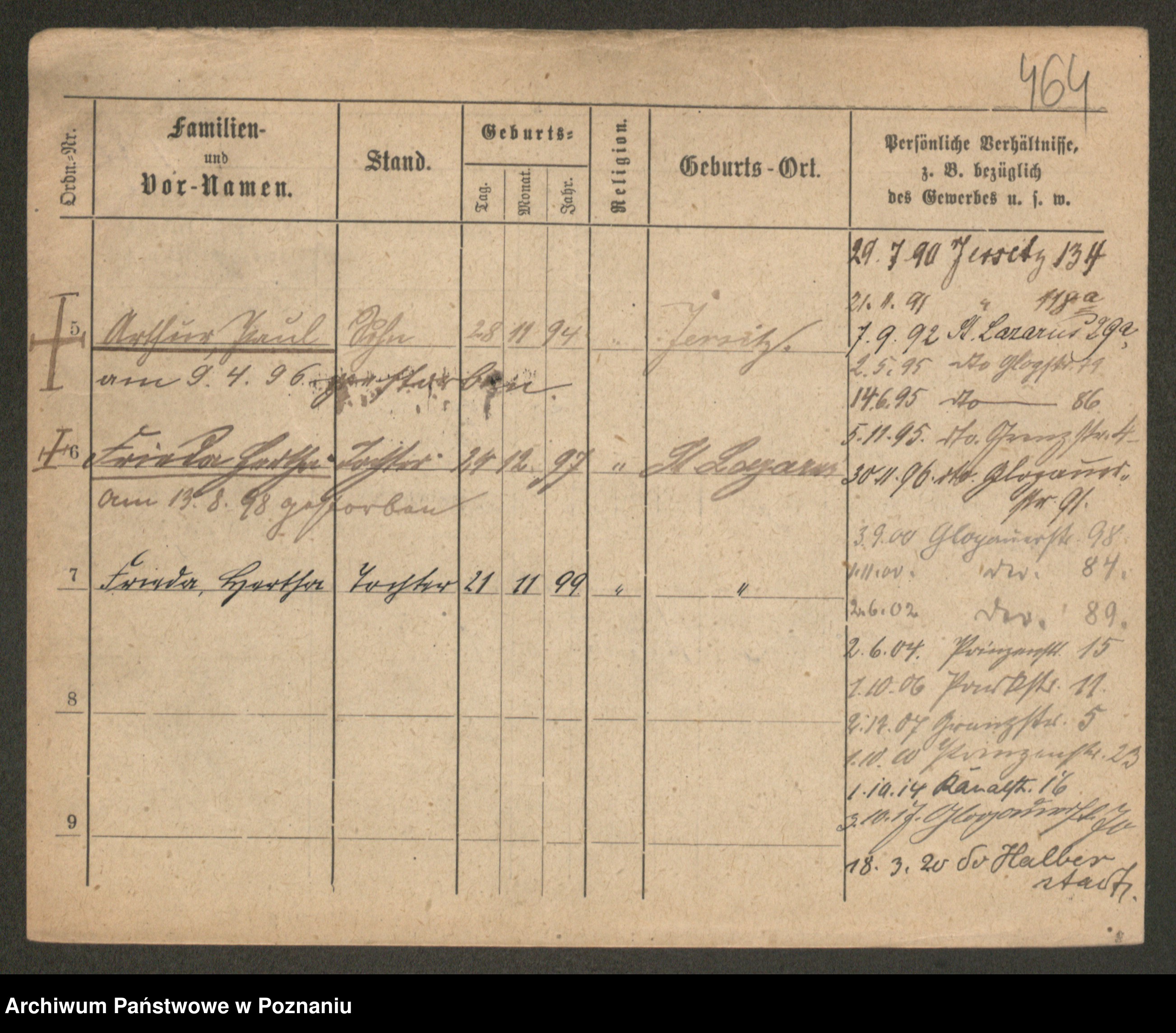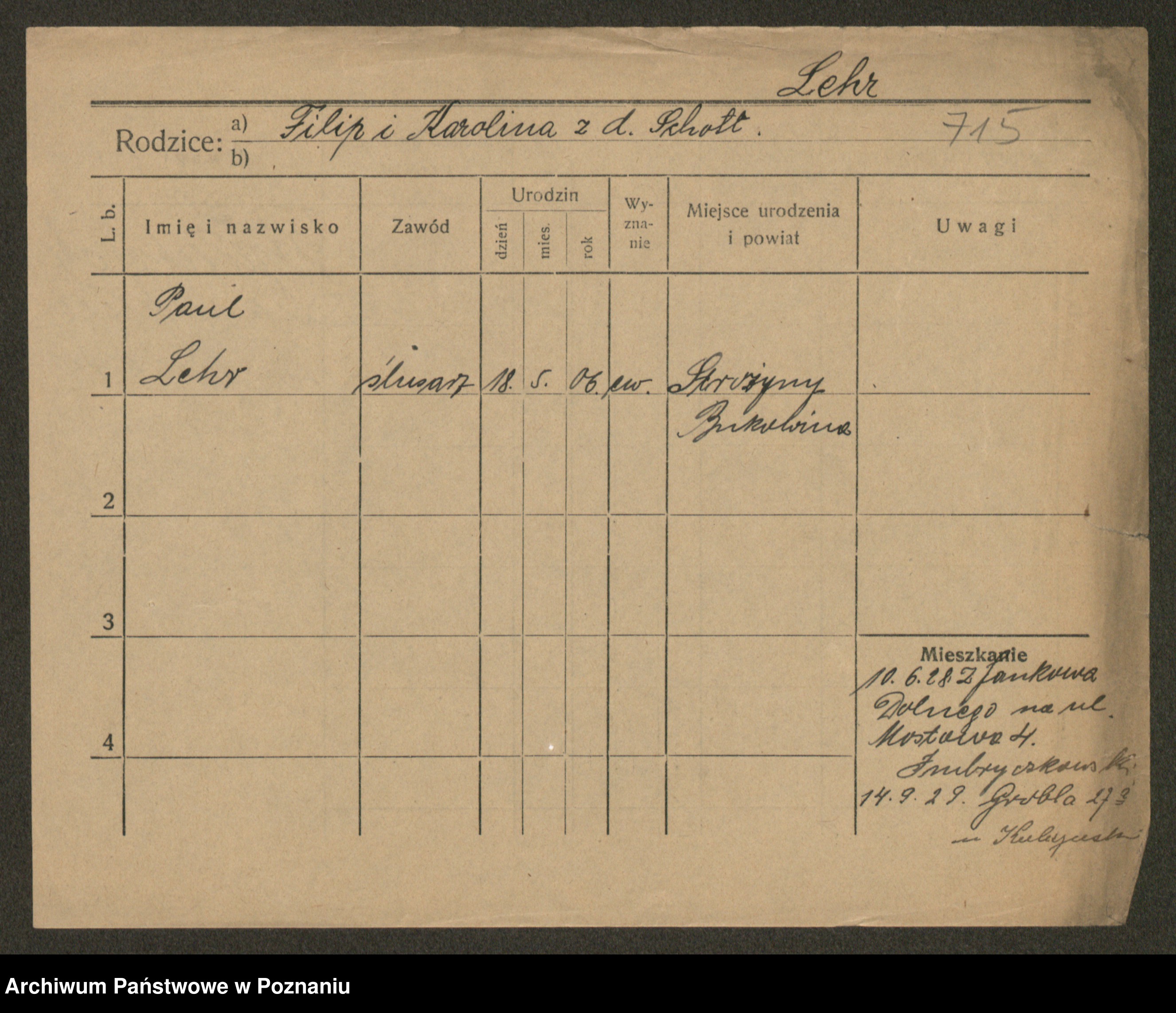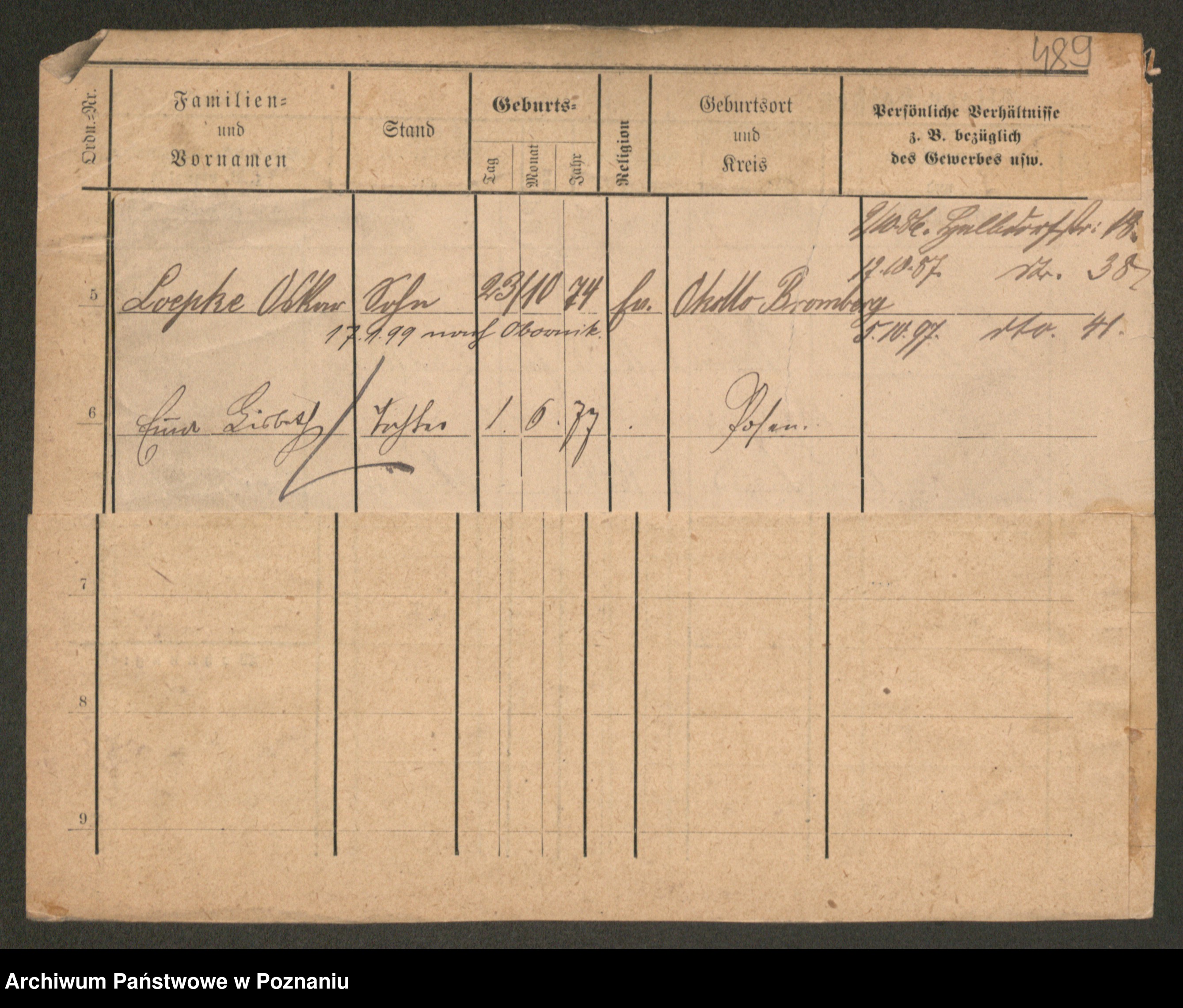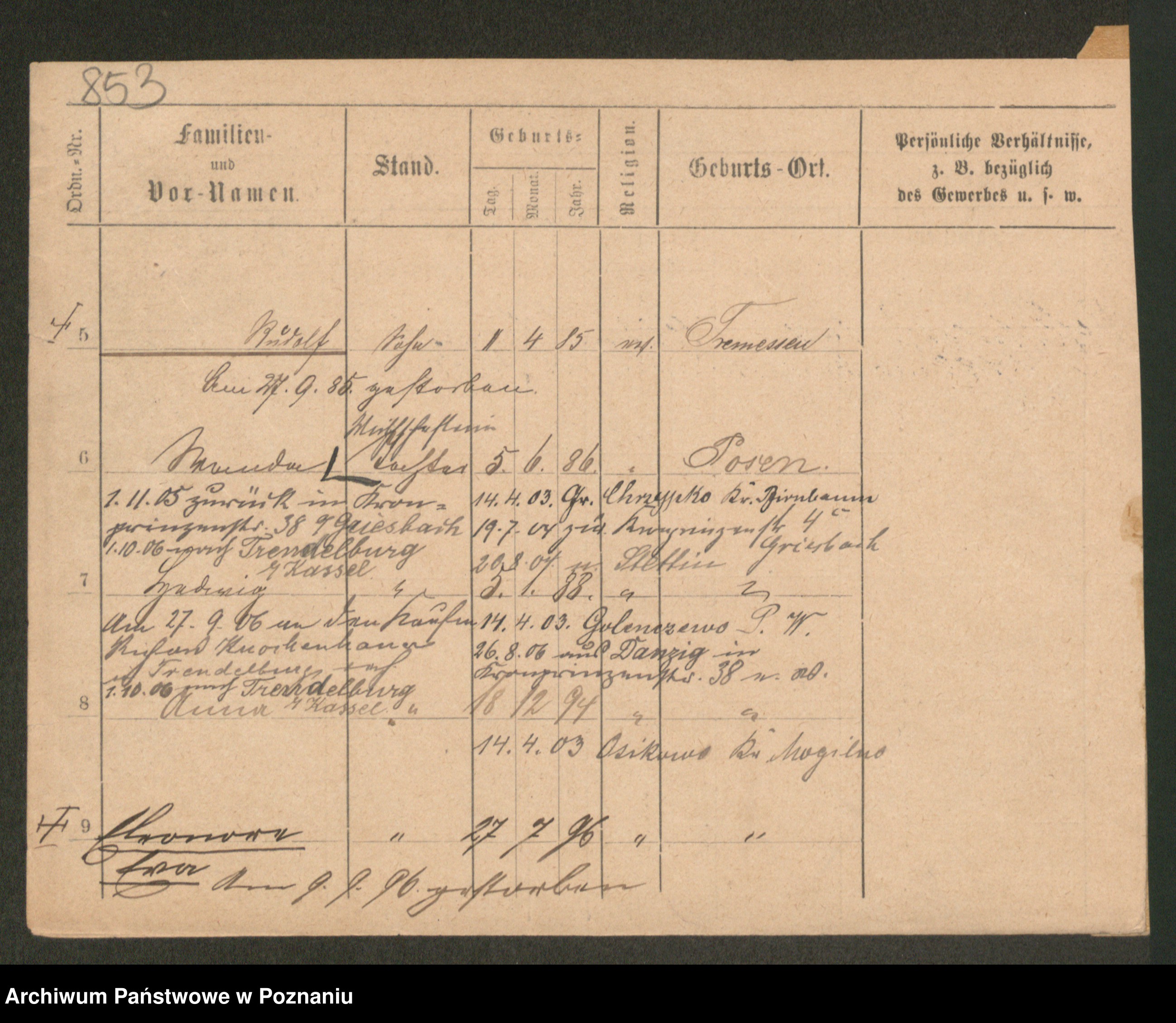 Podgląd karty osobowej dostępny jest po kliknięciu na nazwisko lub ikonkę karty. Można dokonywać powiększenia (ikony na górze) lub przechodzić między kolejnymi skanami (strzałki po bokach).