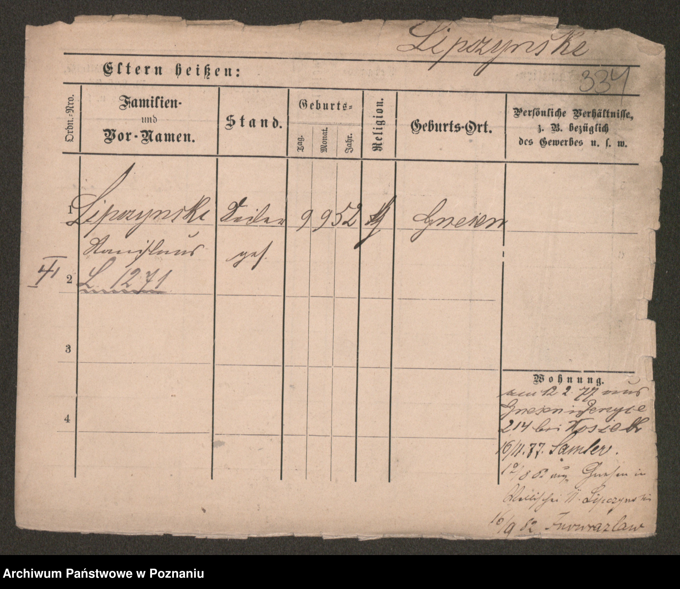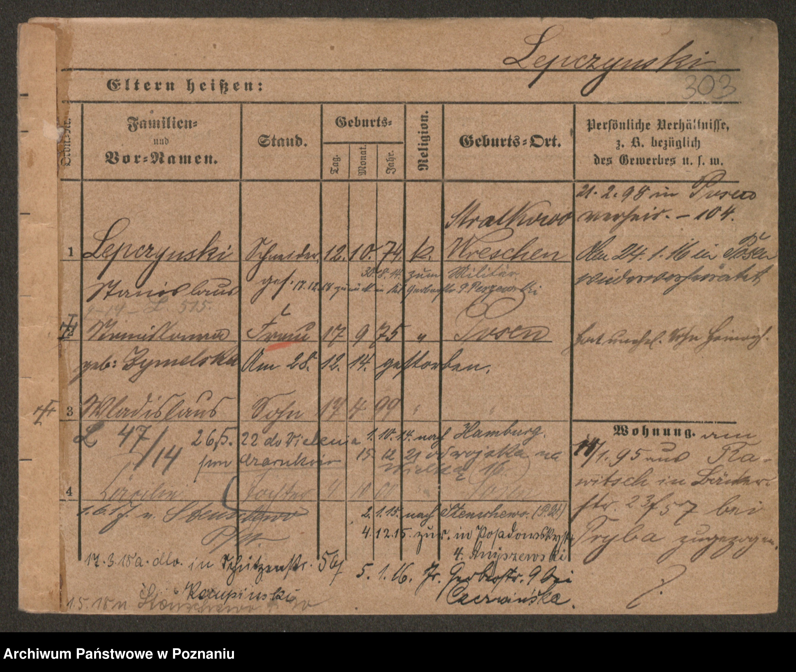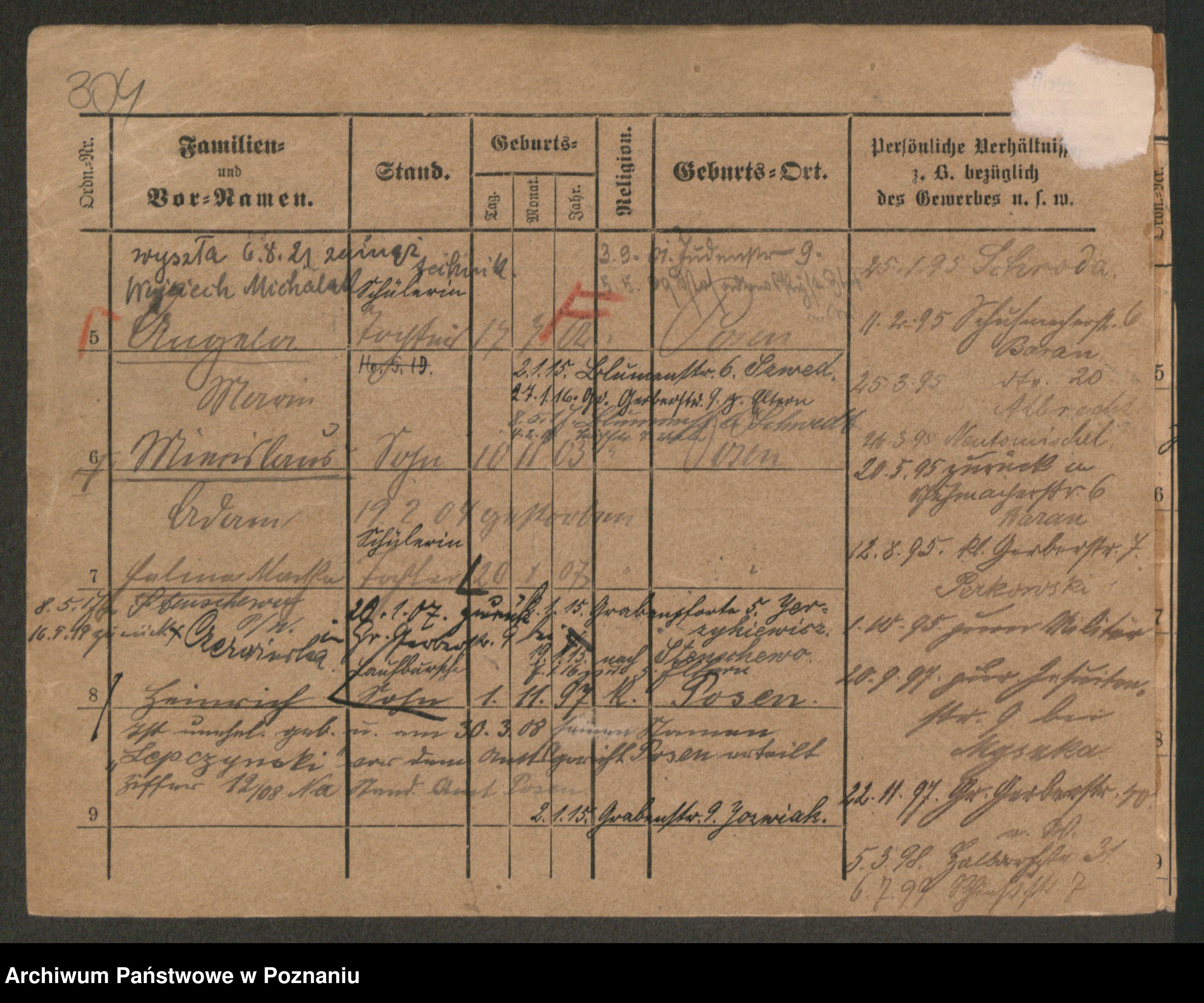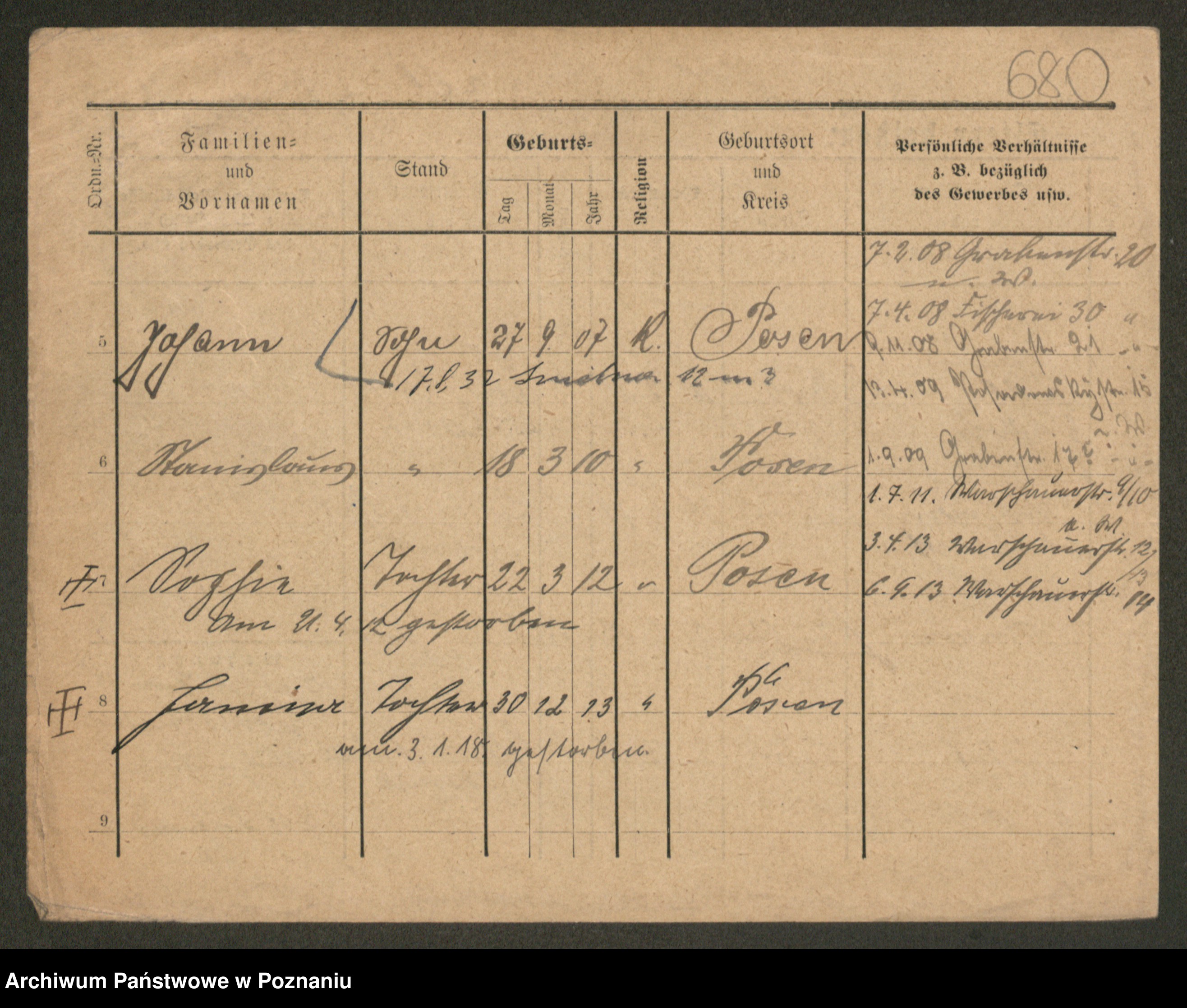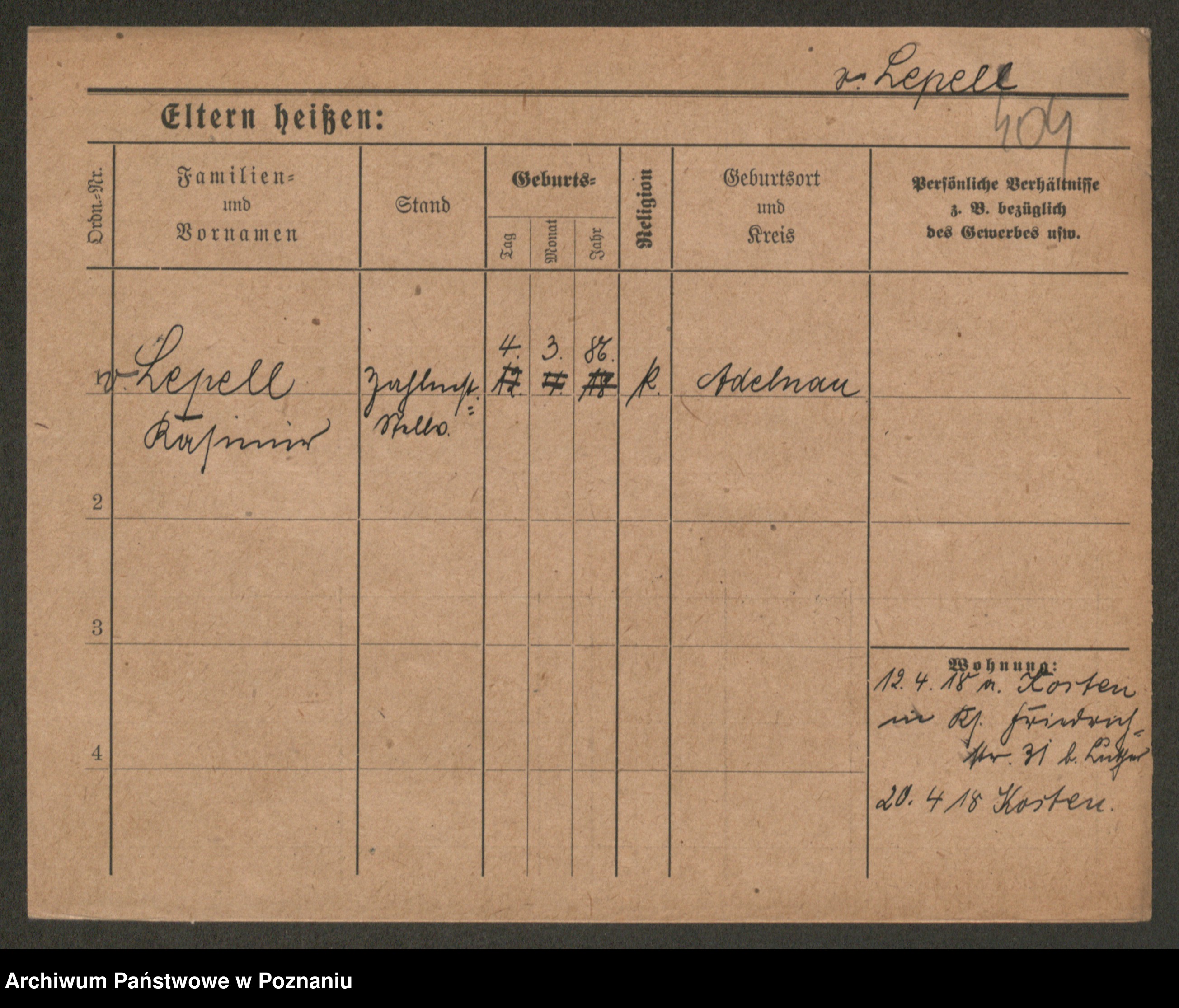 Podgląd karty osobowej dostępny jest po kliknięciu na nazwisko lub ikonkę karty. Można dokonywać powiększenia (ikony na górze) lub przechodzić między kolejnymi skanami (strzałki po bokach).