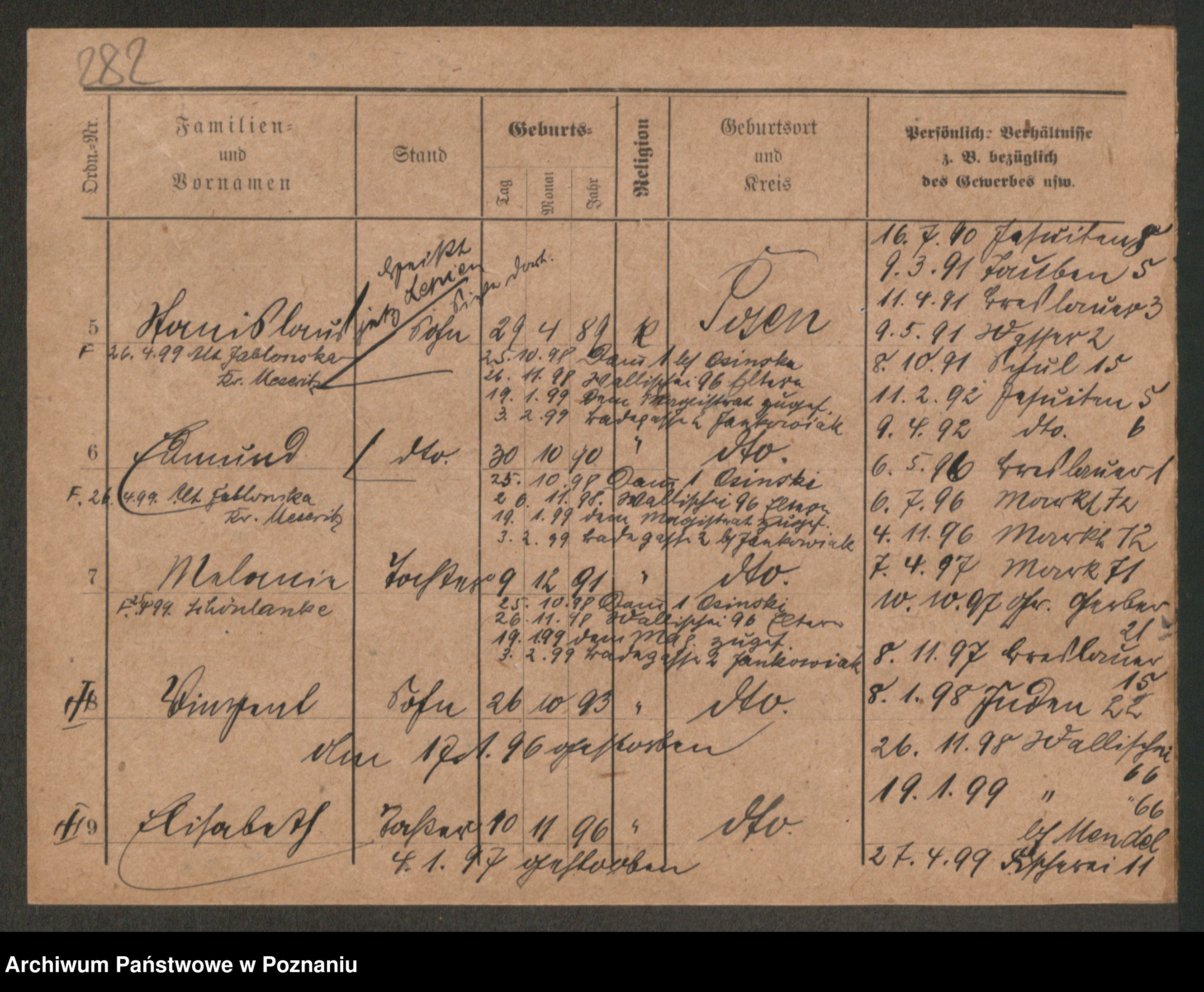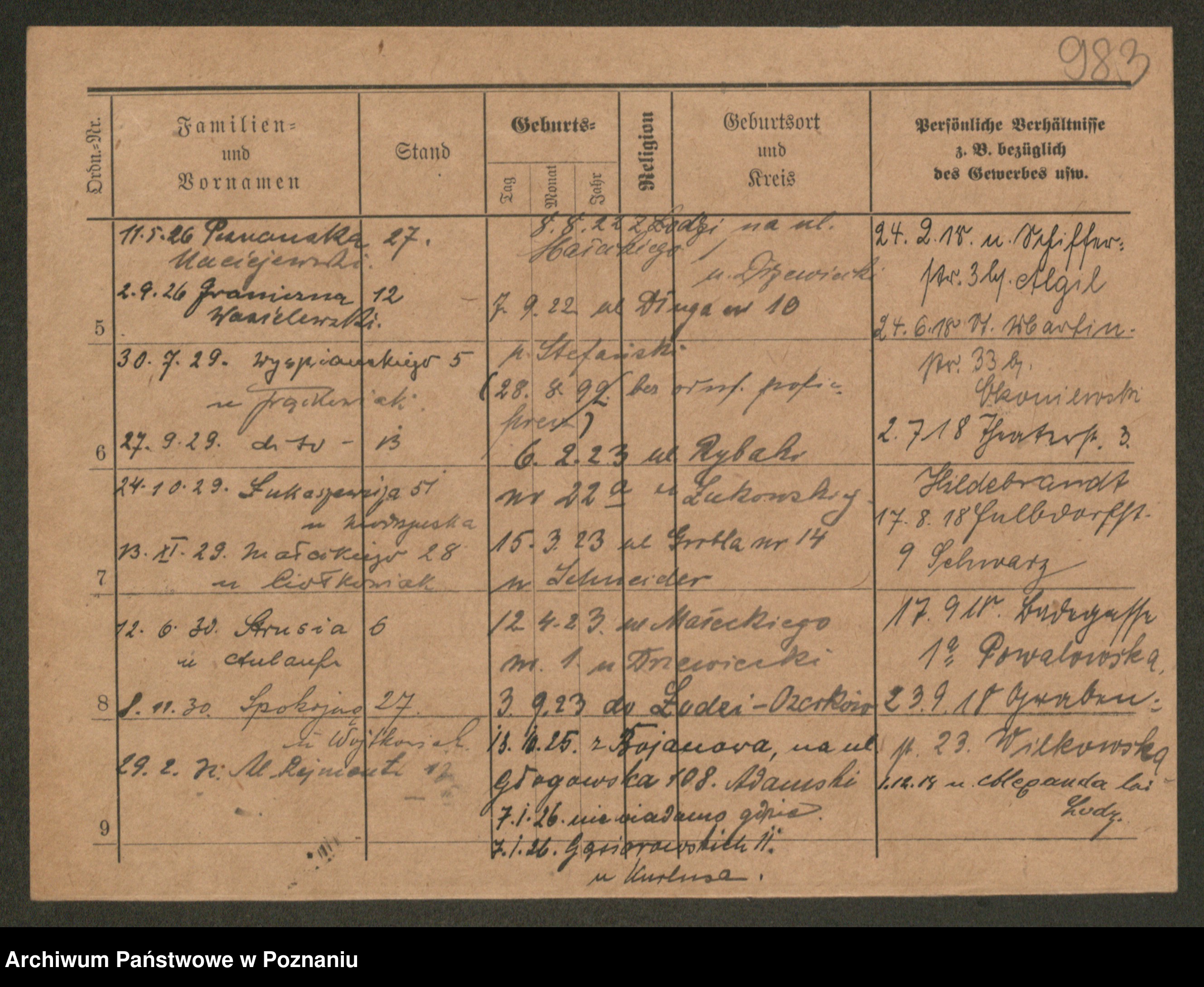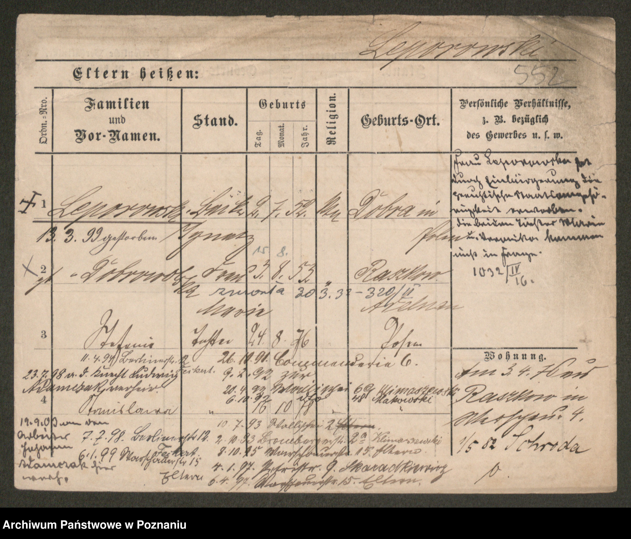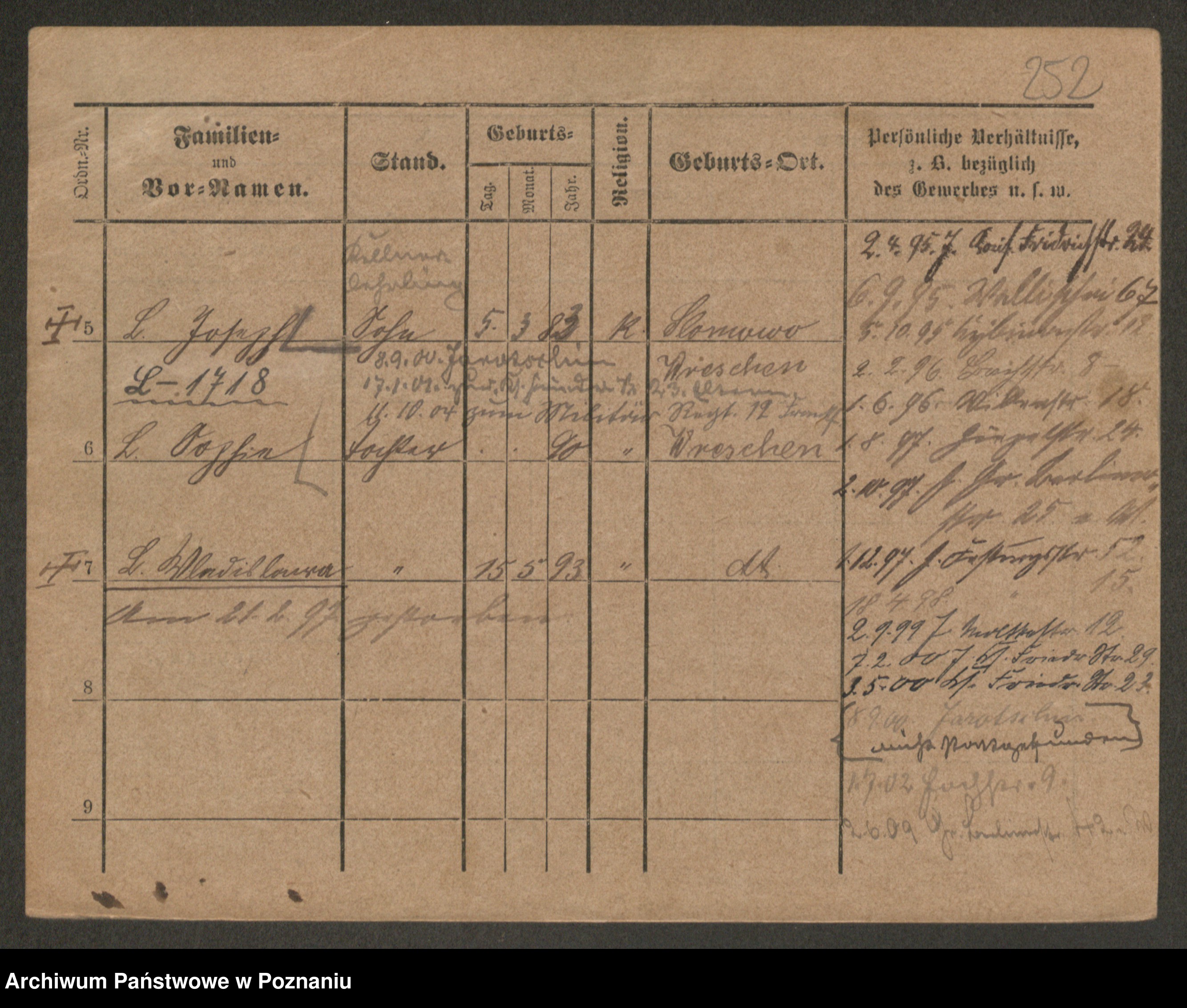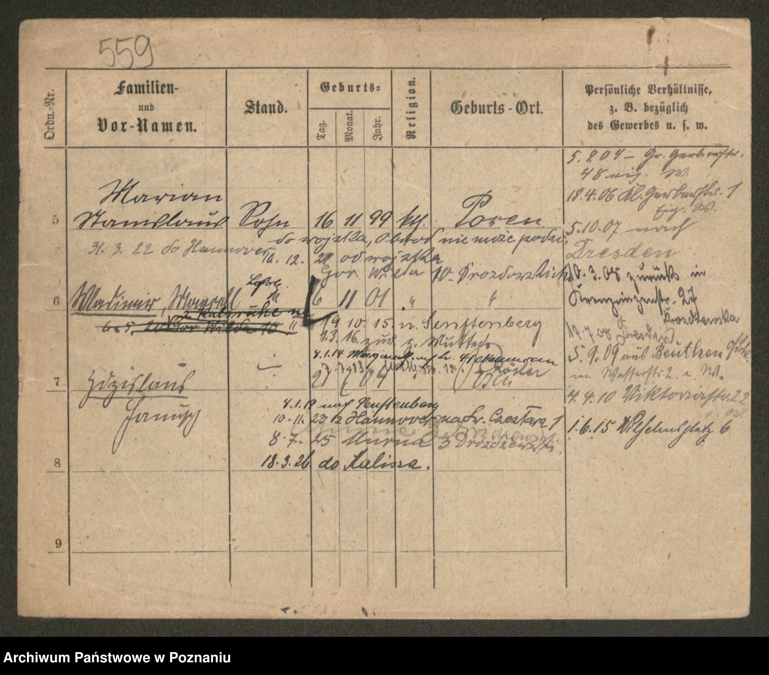 Podgląd karty osobowej dostępny jest po kliknięciu na nazwisko lub ikonkę karty. Można dokonywać powiększenia (ikony na górze) lub przechodzić między kolejnymi skanami (strzałki po bokach).