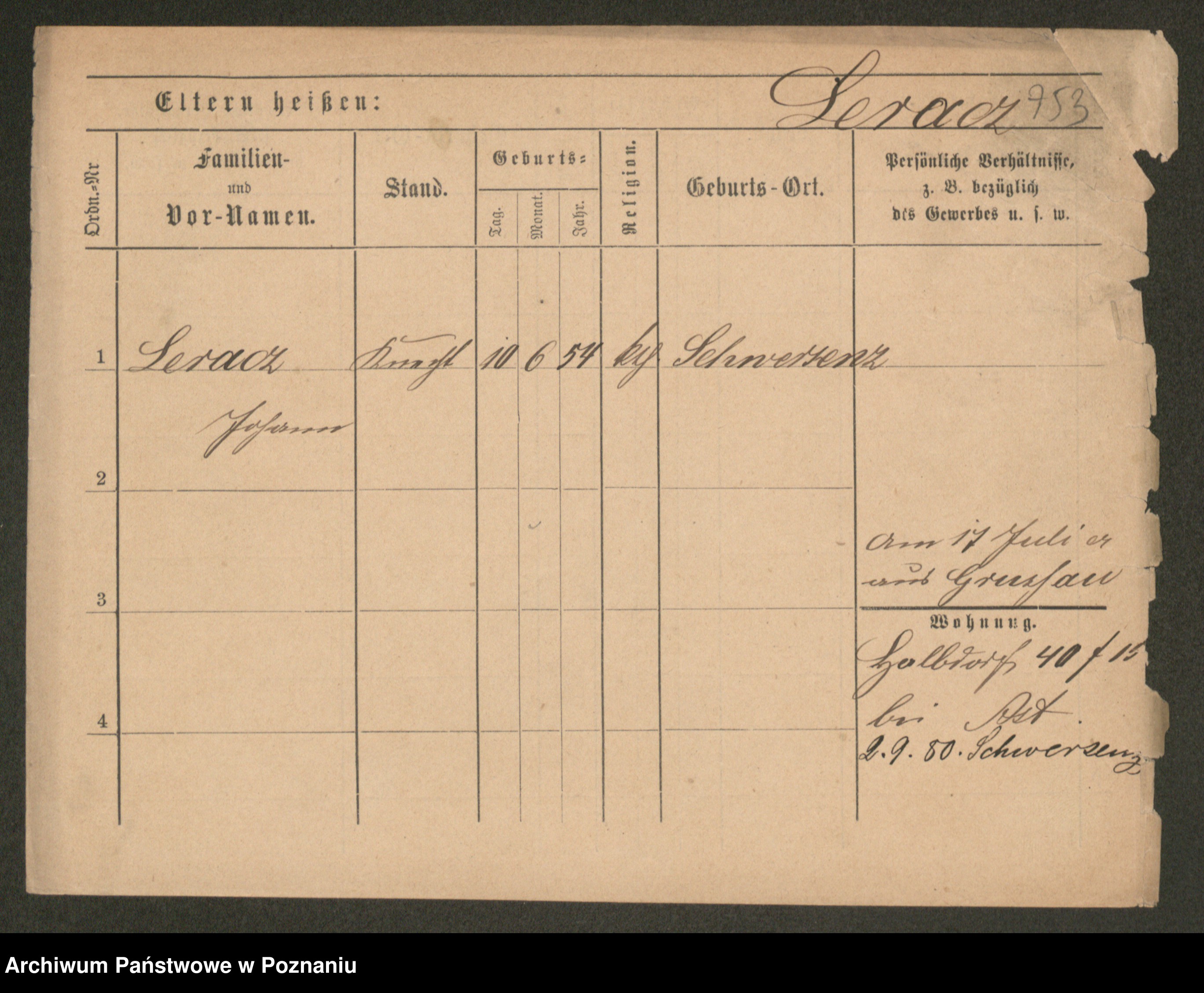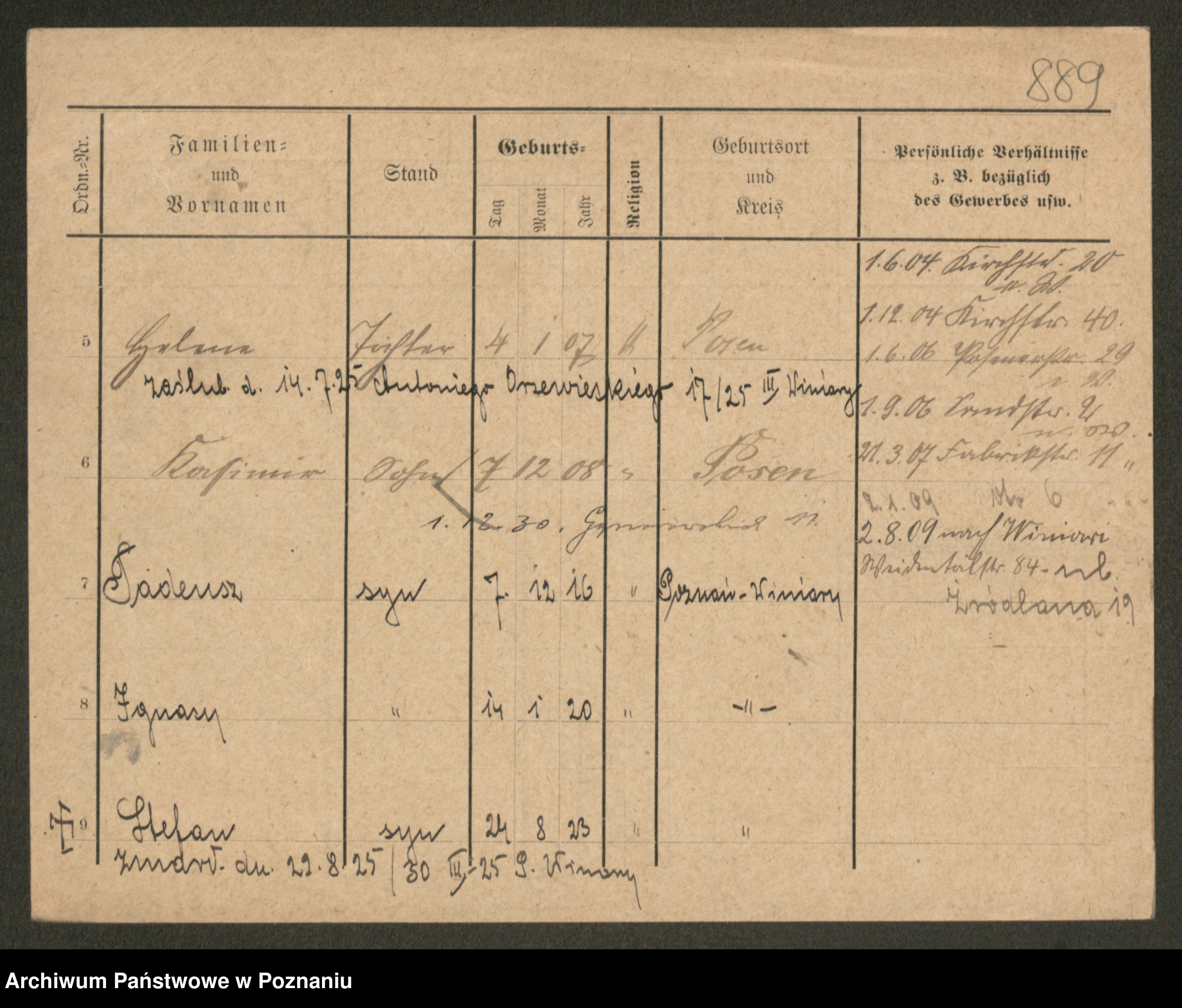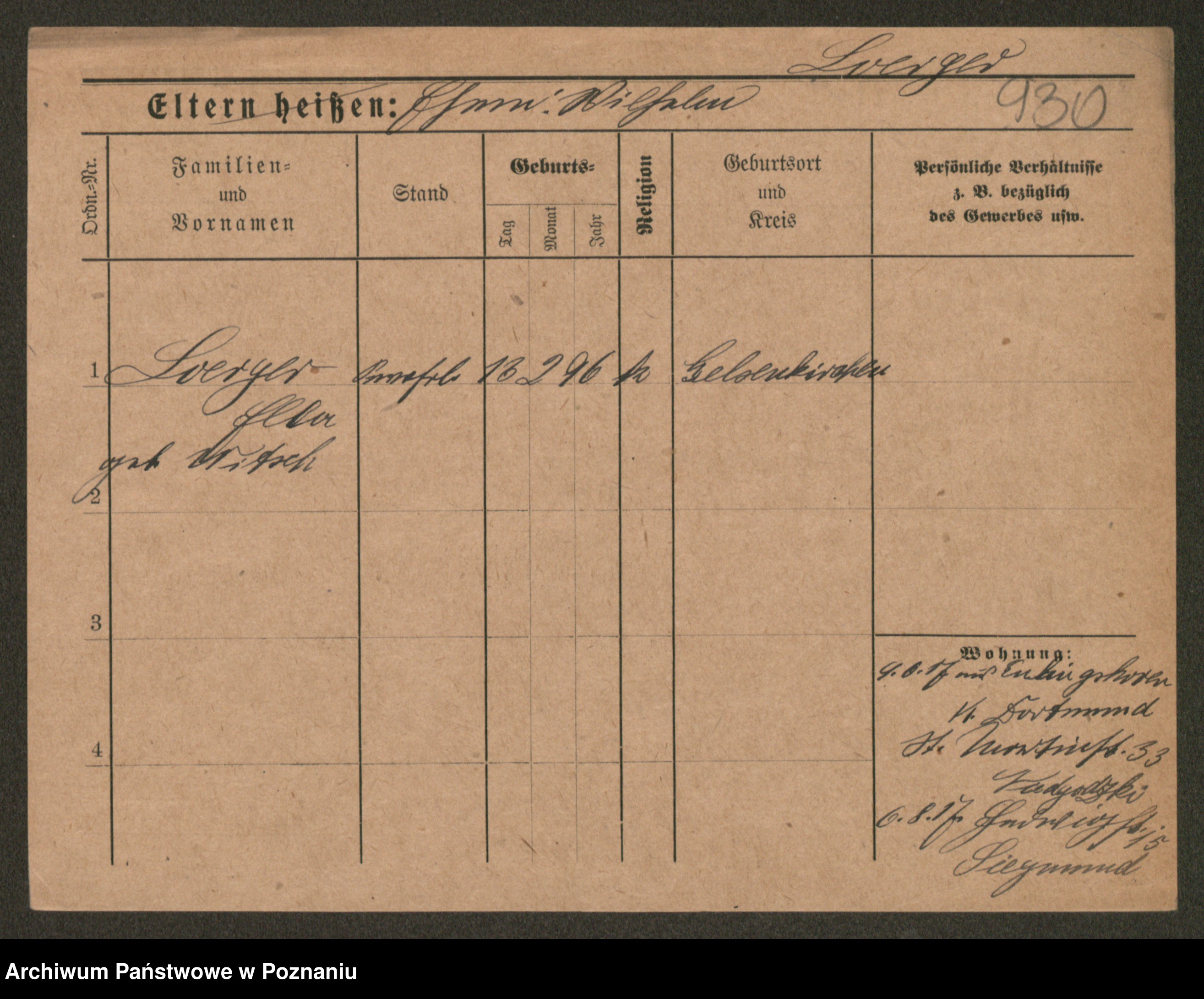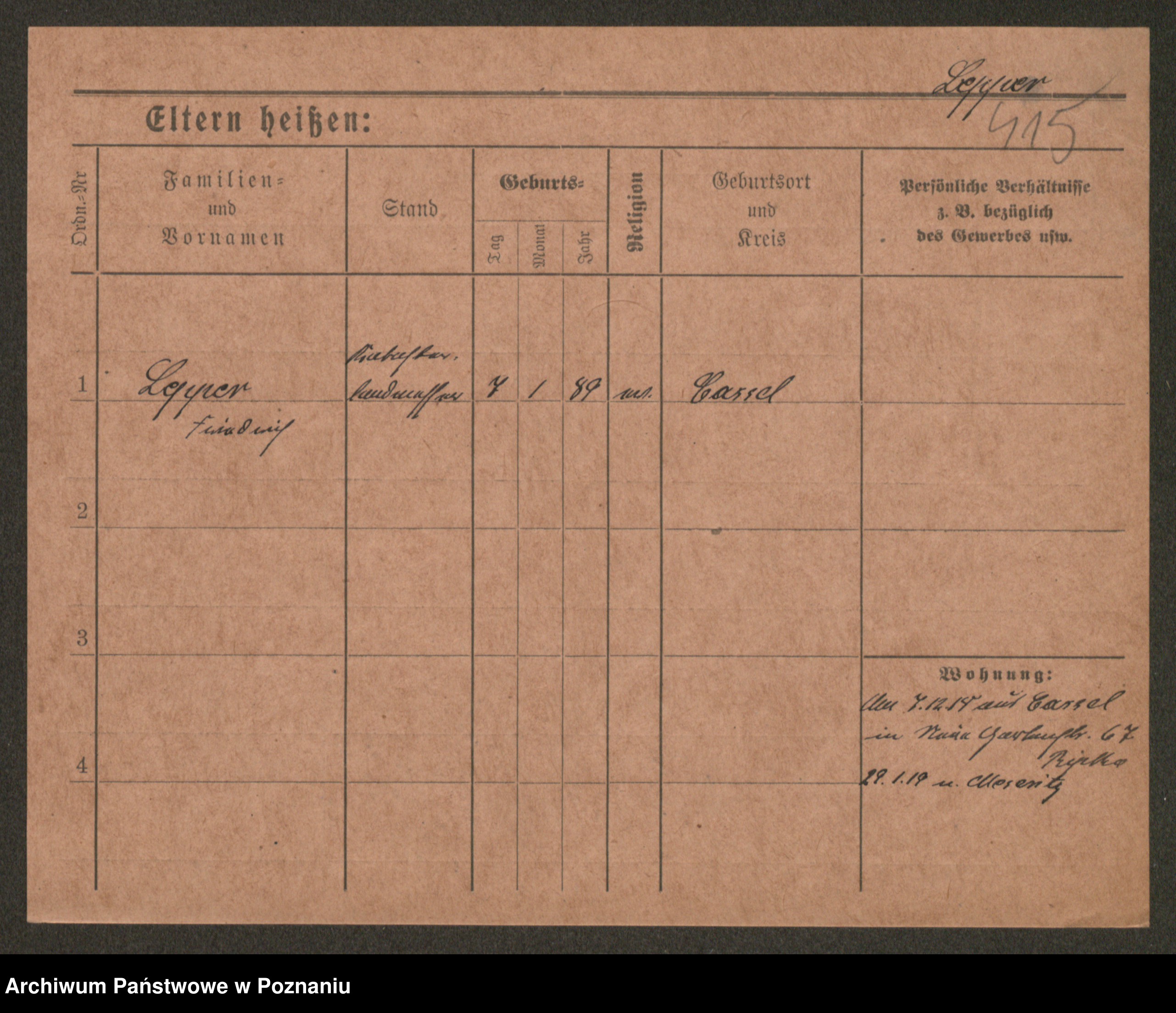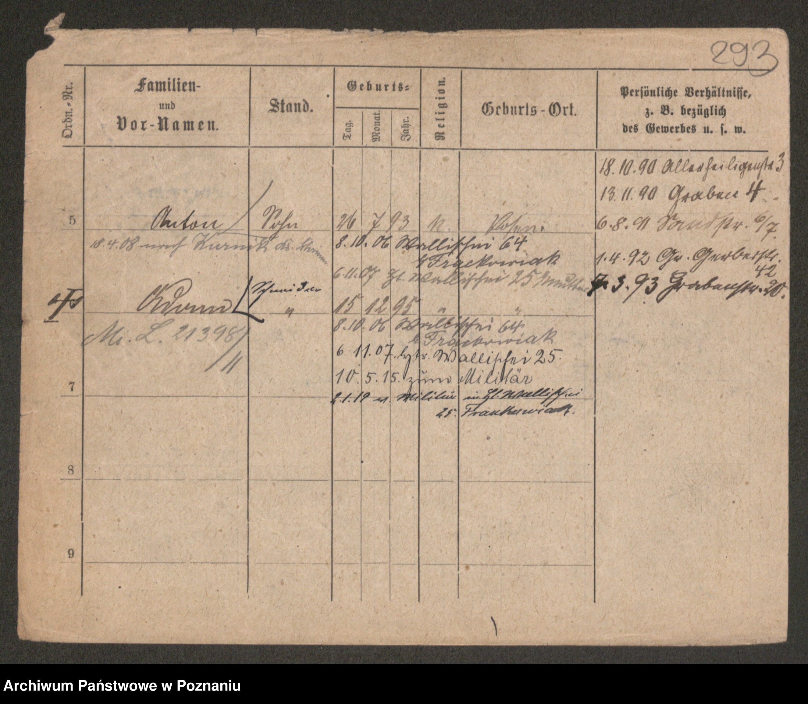 Podgląd karty osobowej dostępny jest po kliknięciu na nazwisko lub ikonkę karty. Można dokonywać powiększenia (ikony na górze) lub przechodzić między kolejnymi skanami (strzałki po bokach).