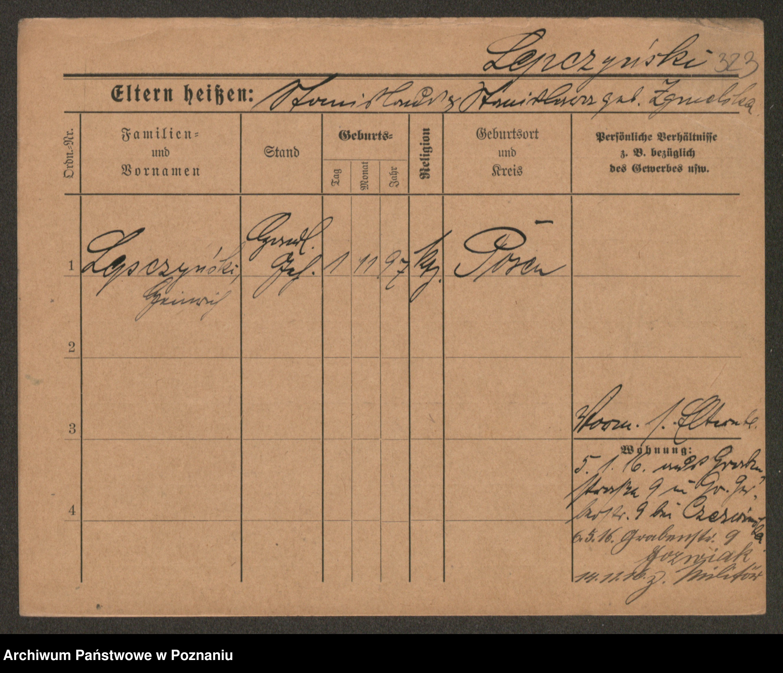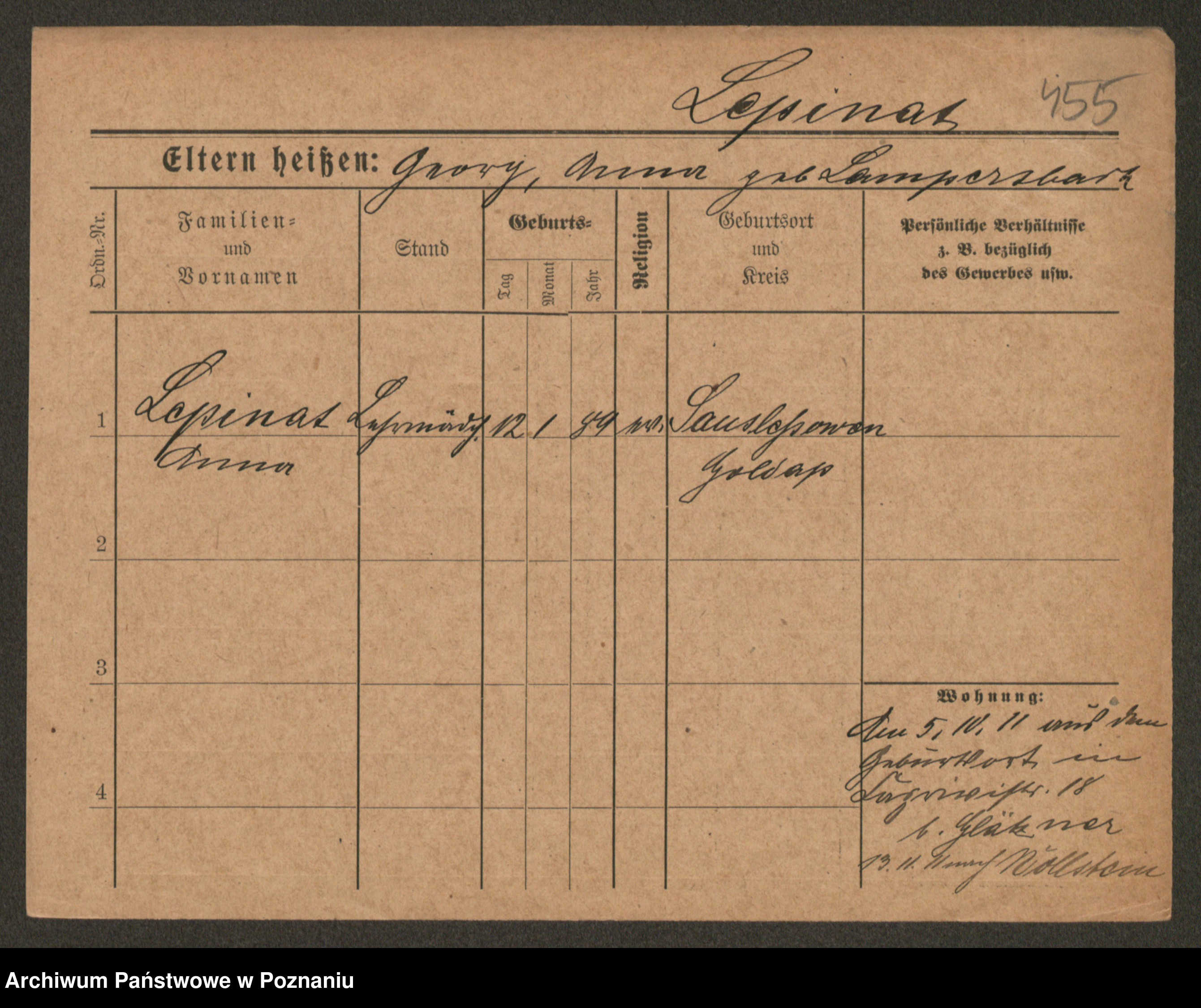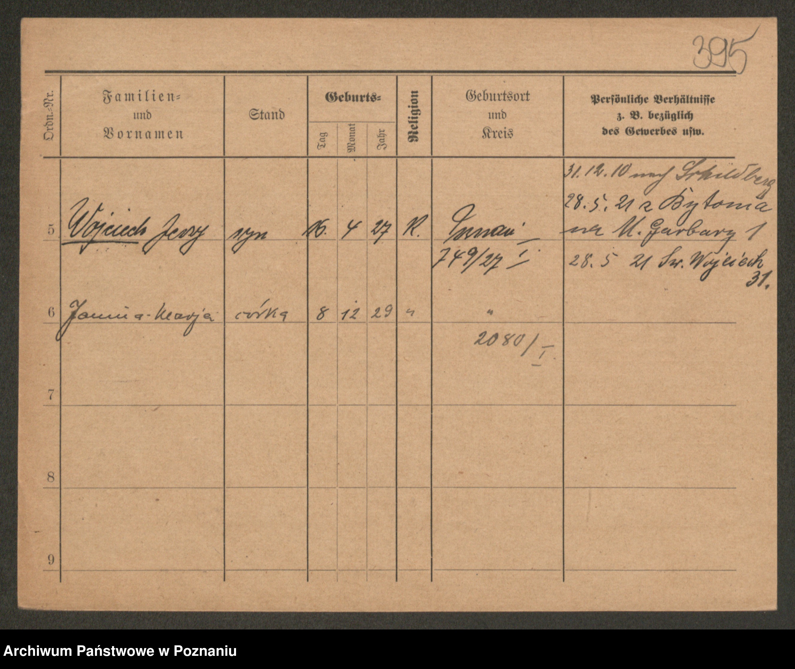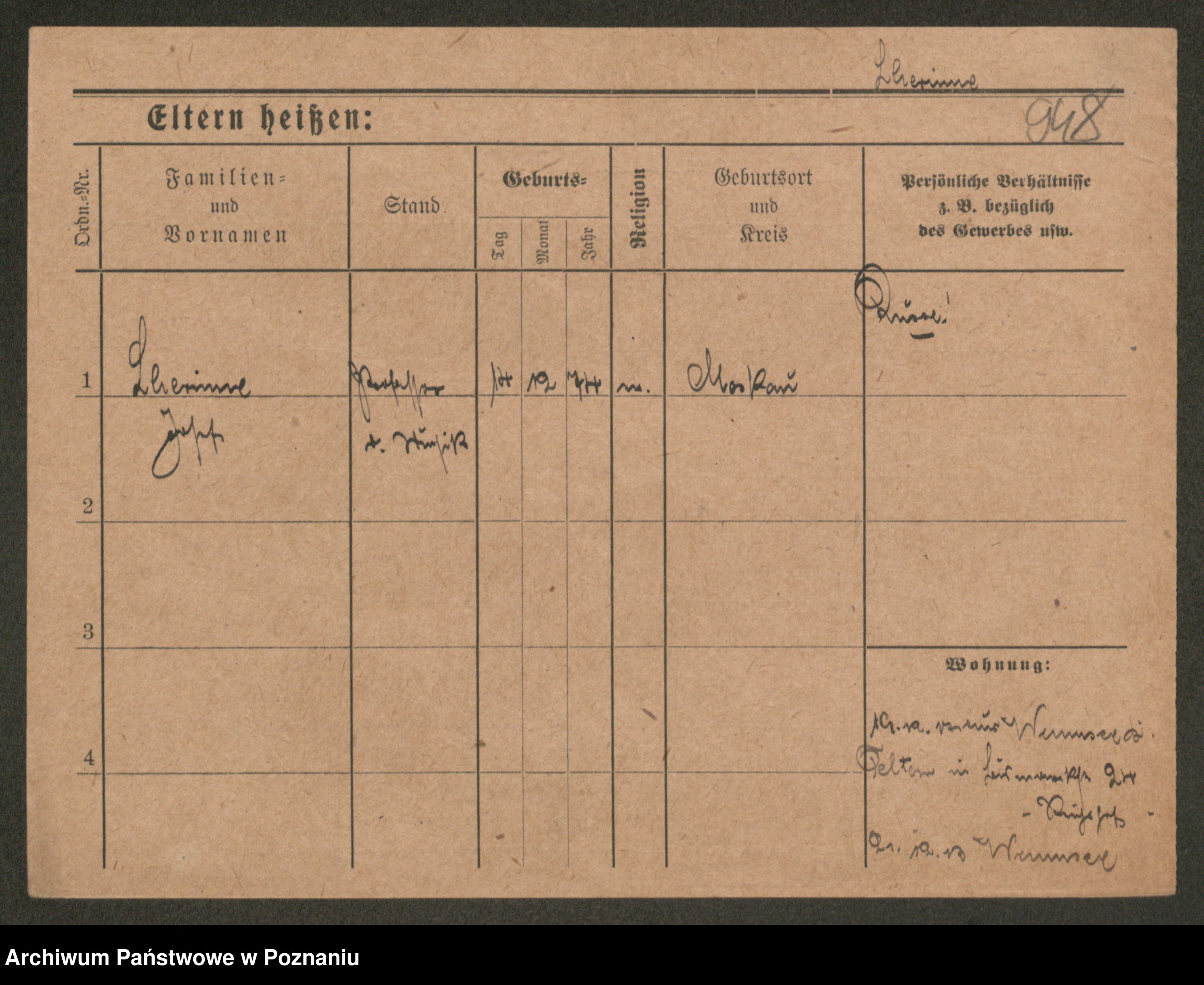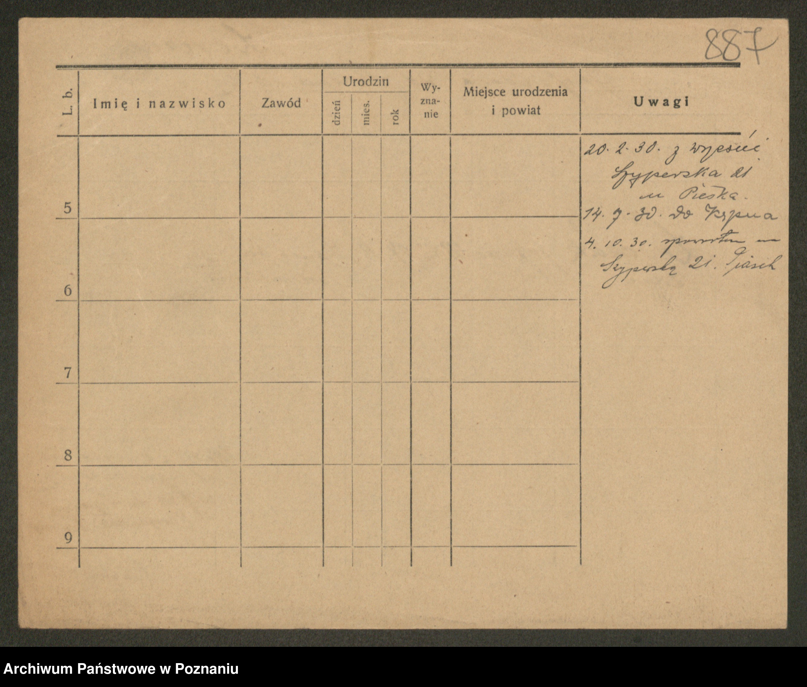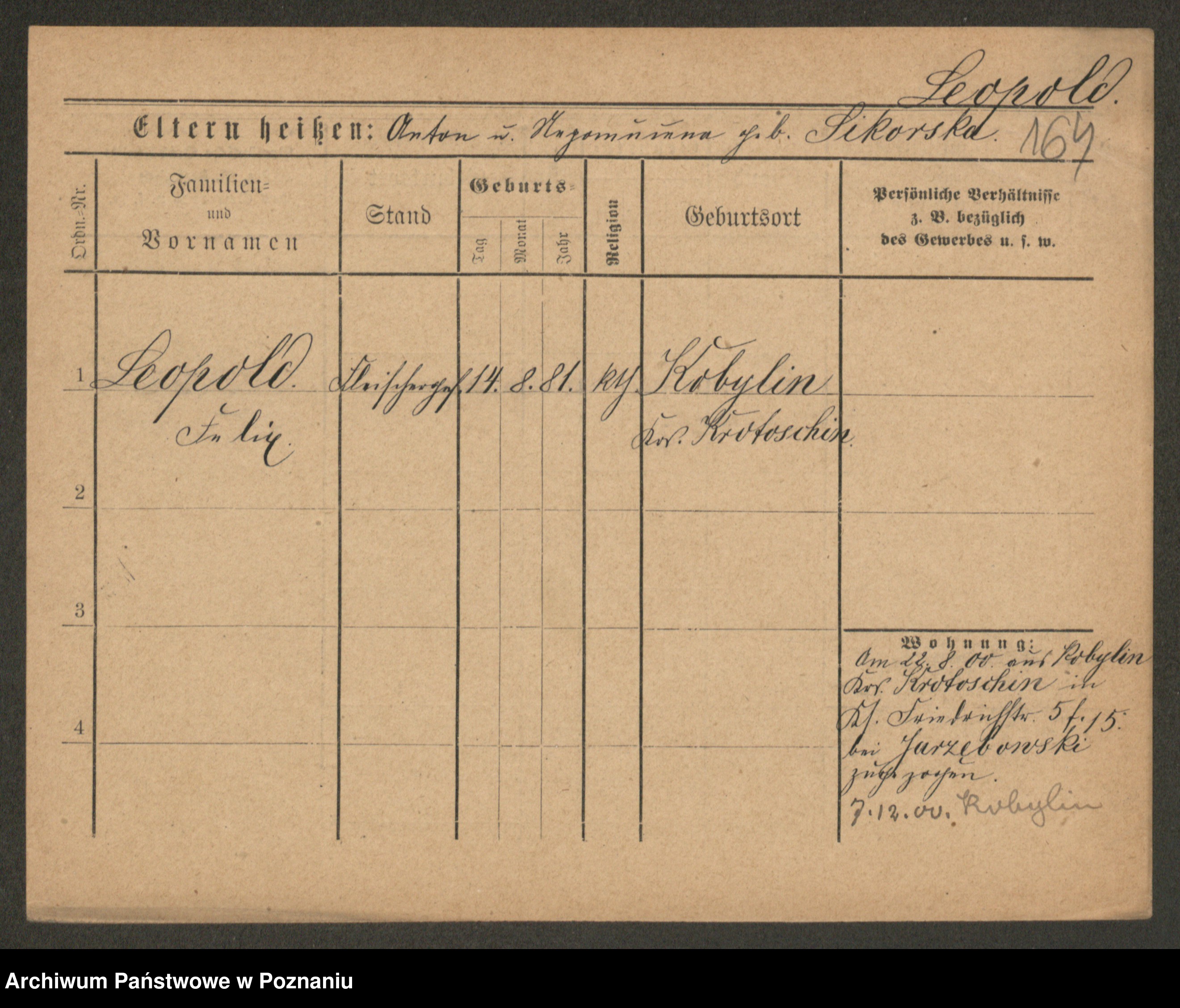 Podgląd karty osobowej dostępny jest po kliknięciu na nazwisko lub ikonkę karty. Można dokonywać powiększenia (ikony na górze) lub przechodzić między kolejnymi skanami (strzałki po bokach).