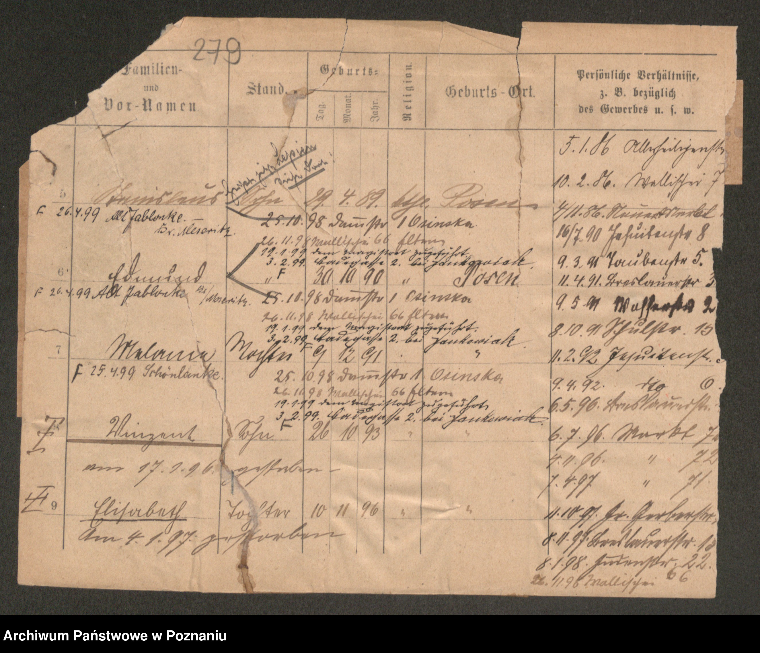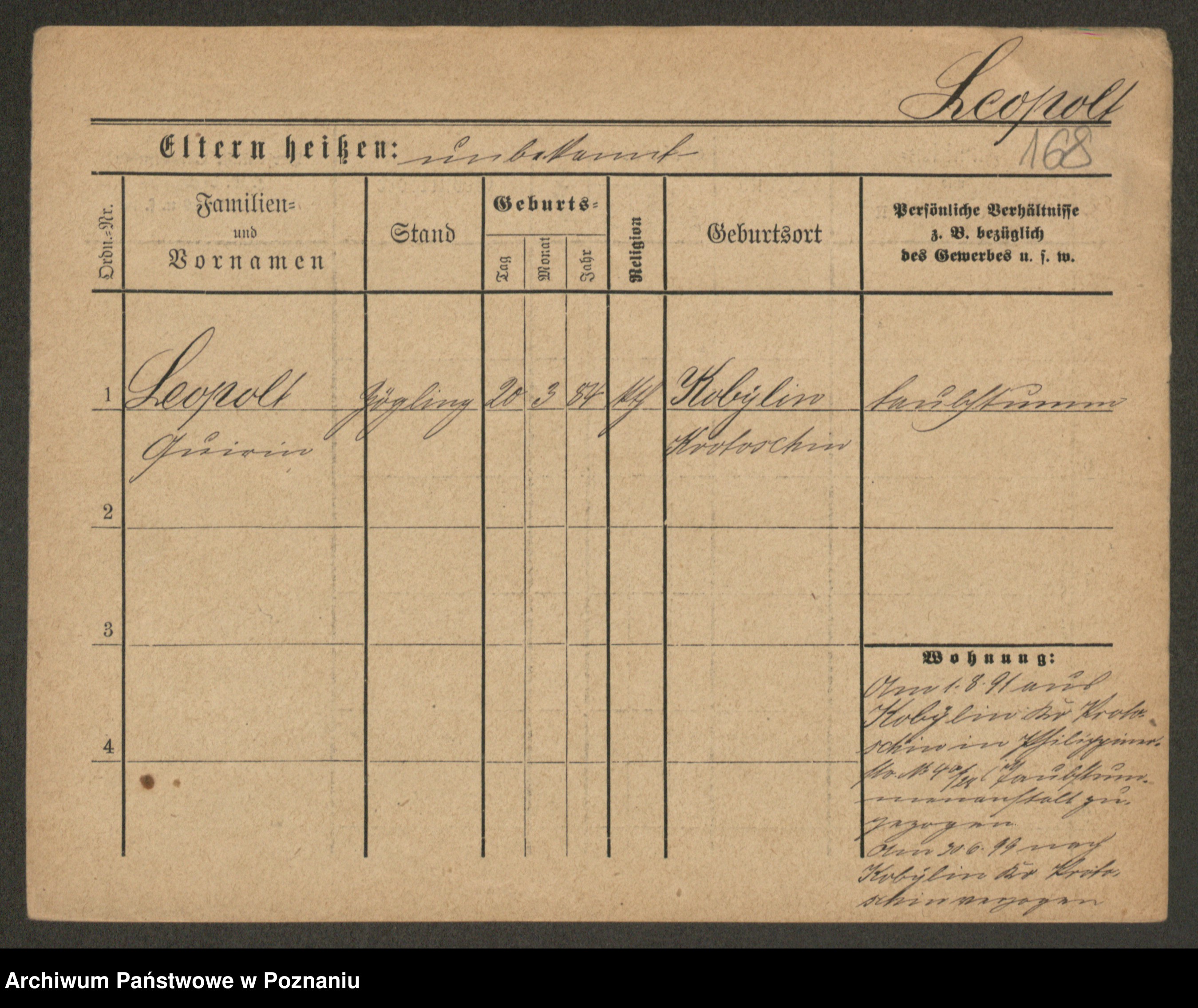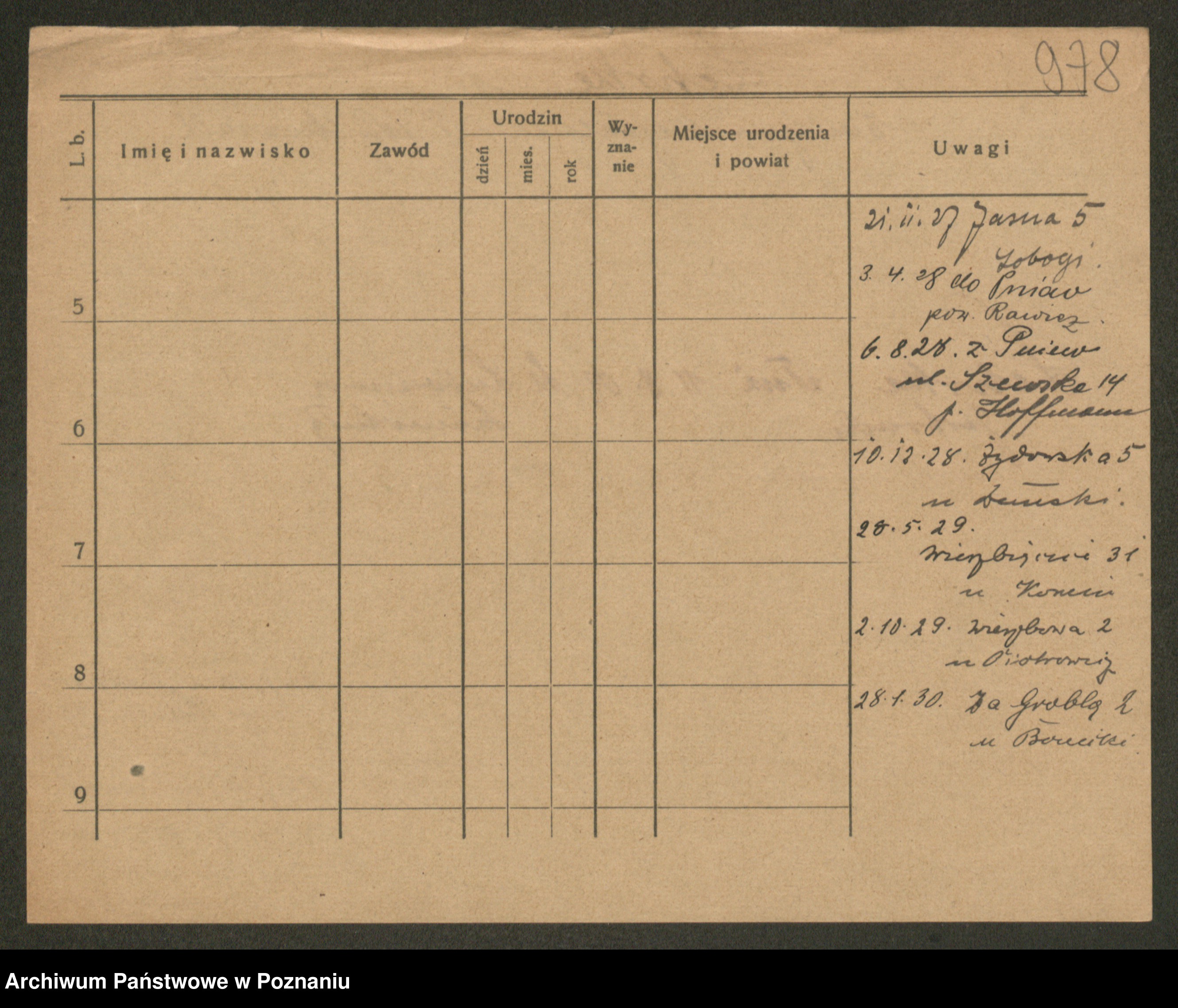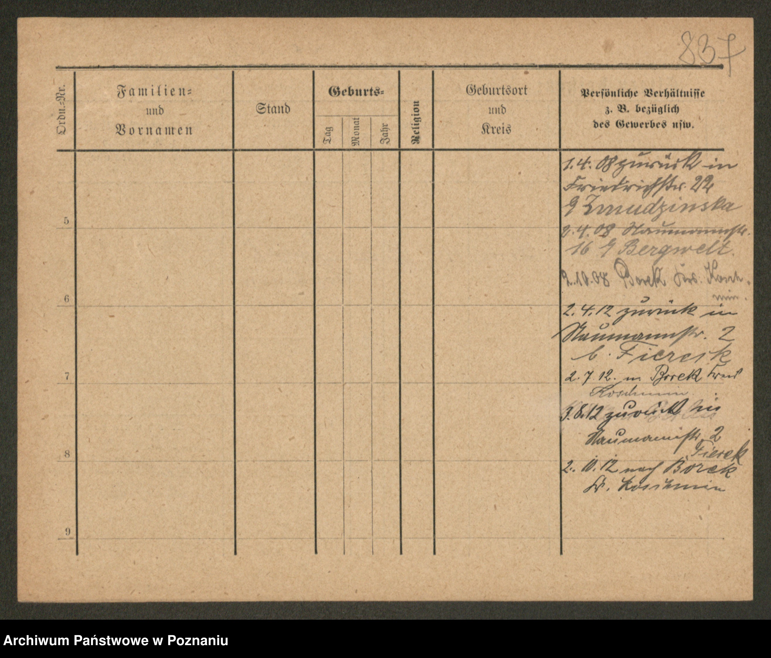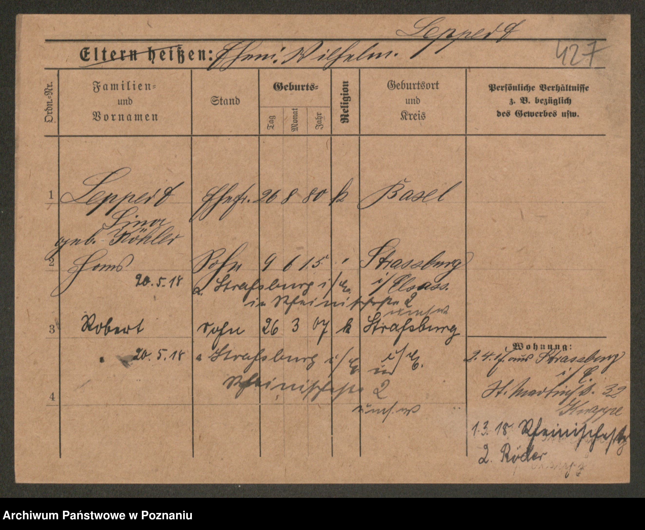 Podgląd karty osobowej dostępny jest po kliknięciu na nazwisko lub ikonkę karty. Można dokonywać powiększenia (ikony na górze) lub przechodzić między kolejnymi skanami (strzałki po bokach).
