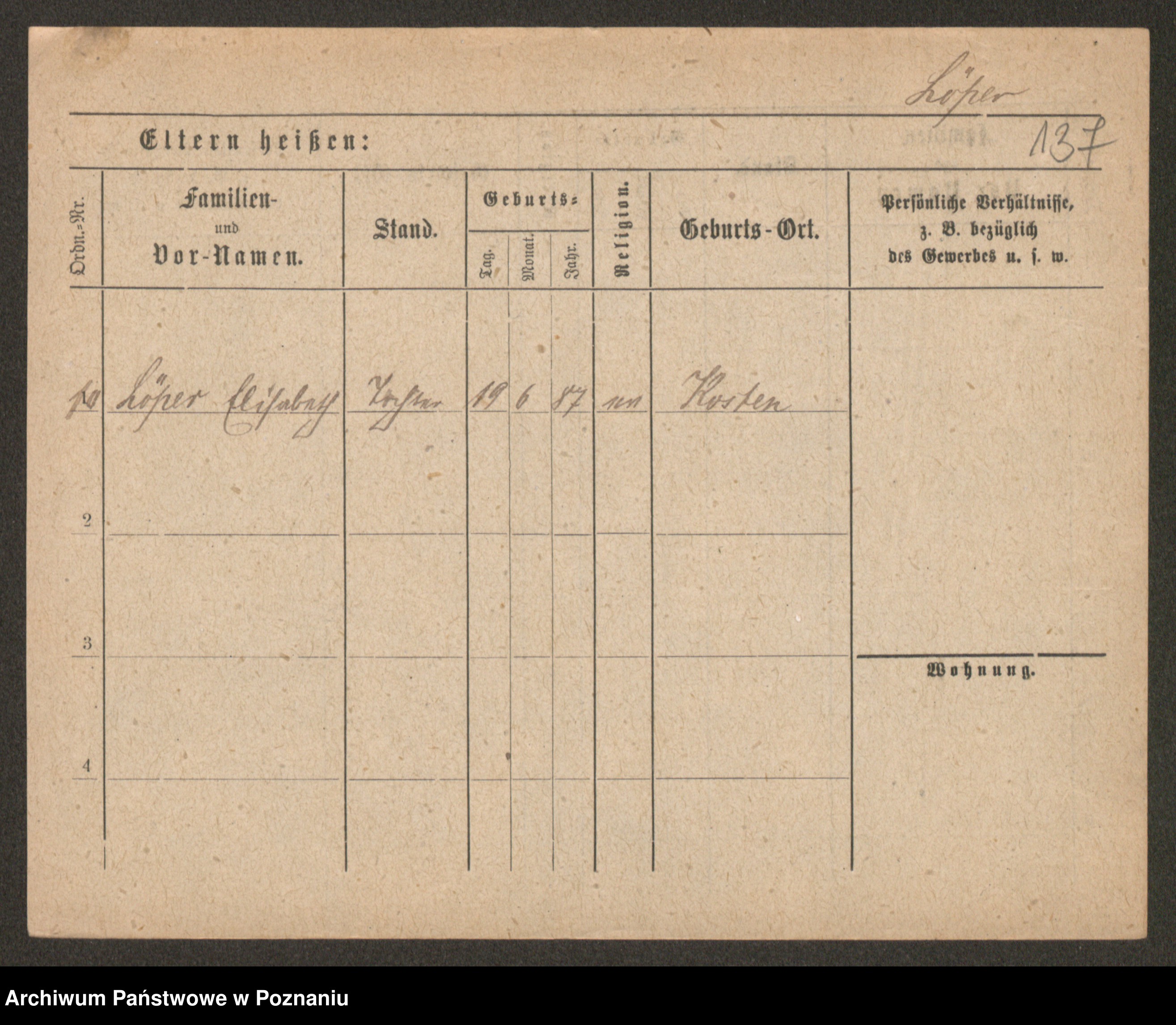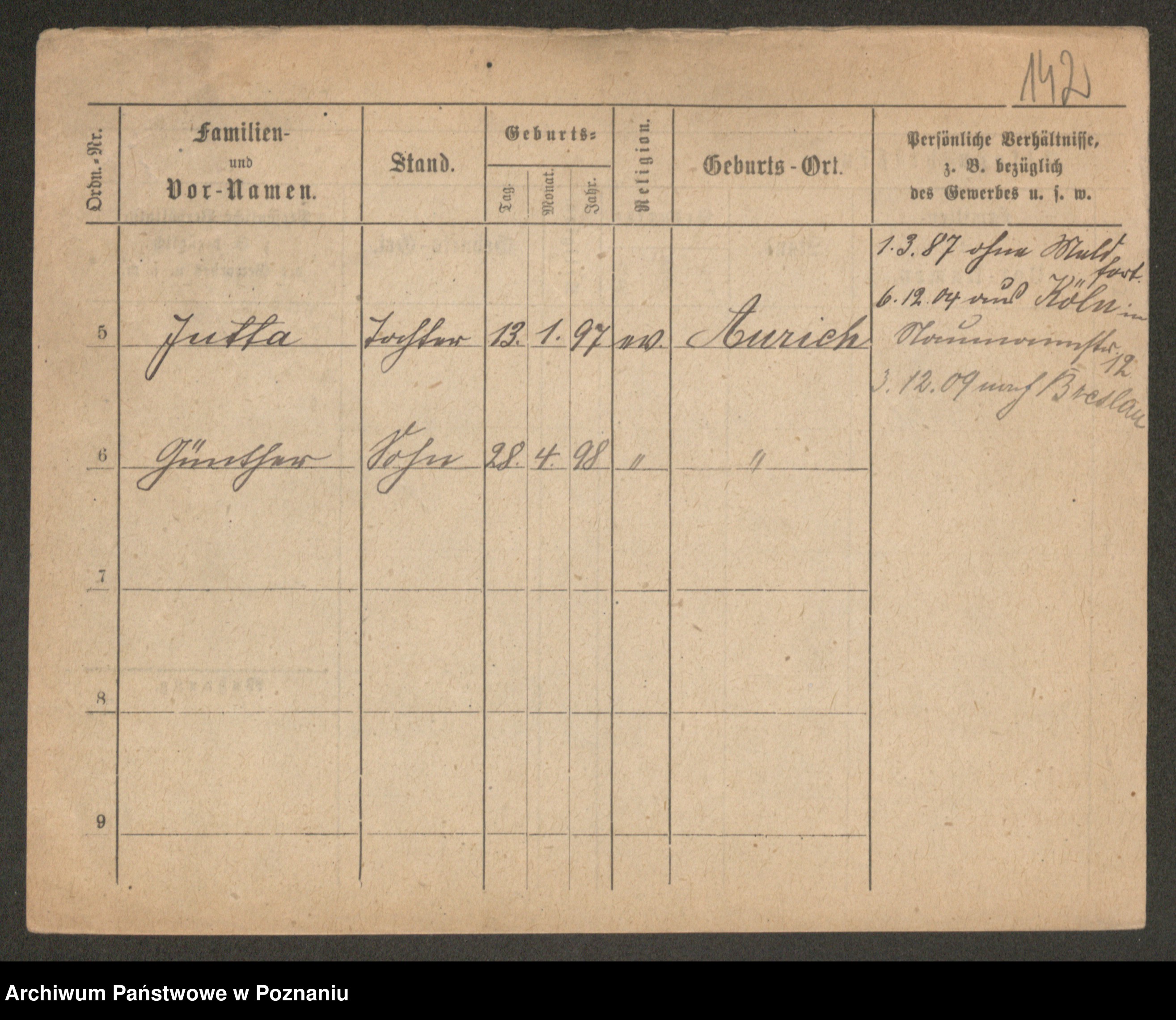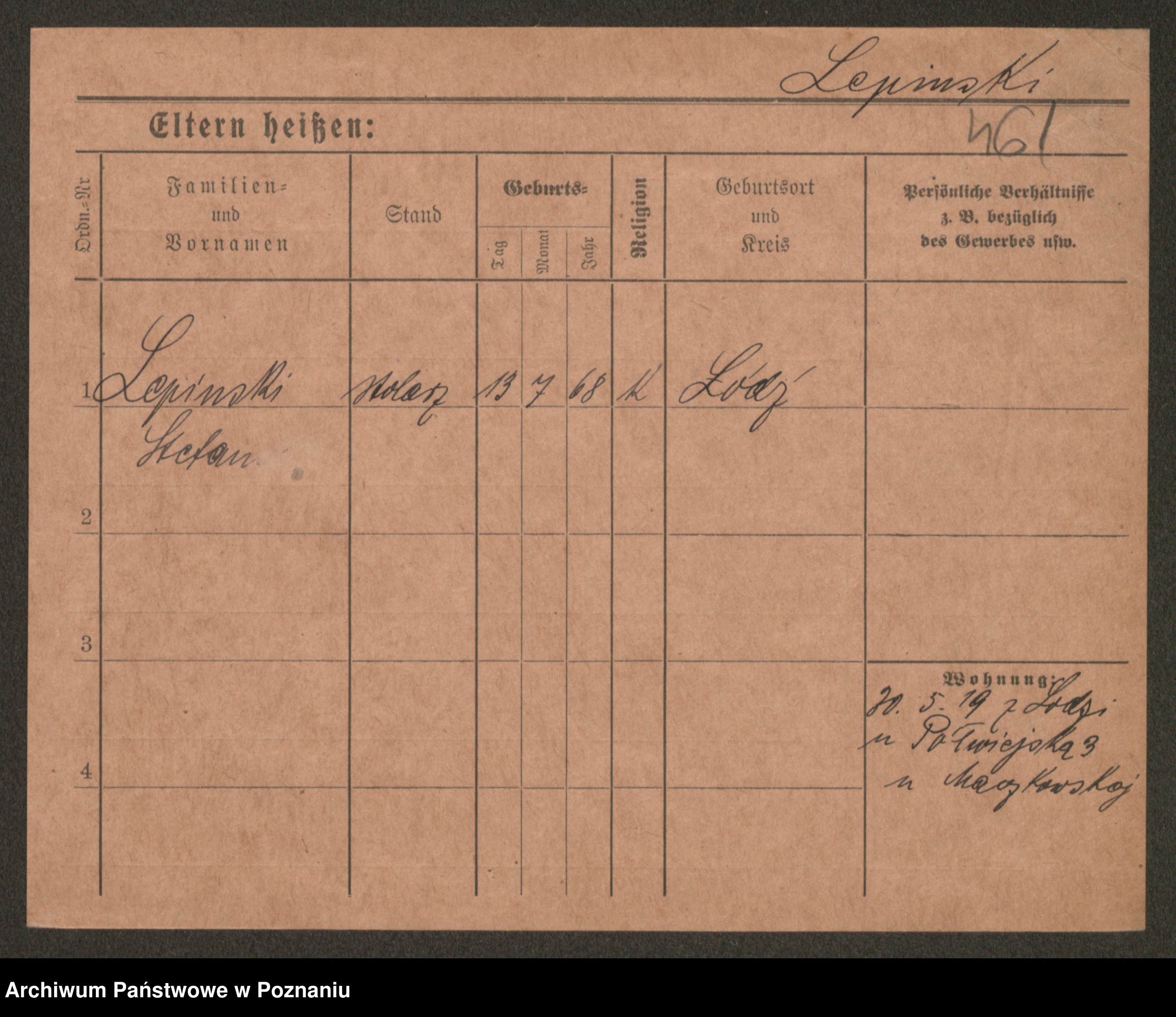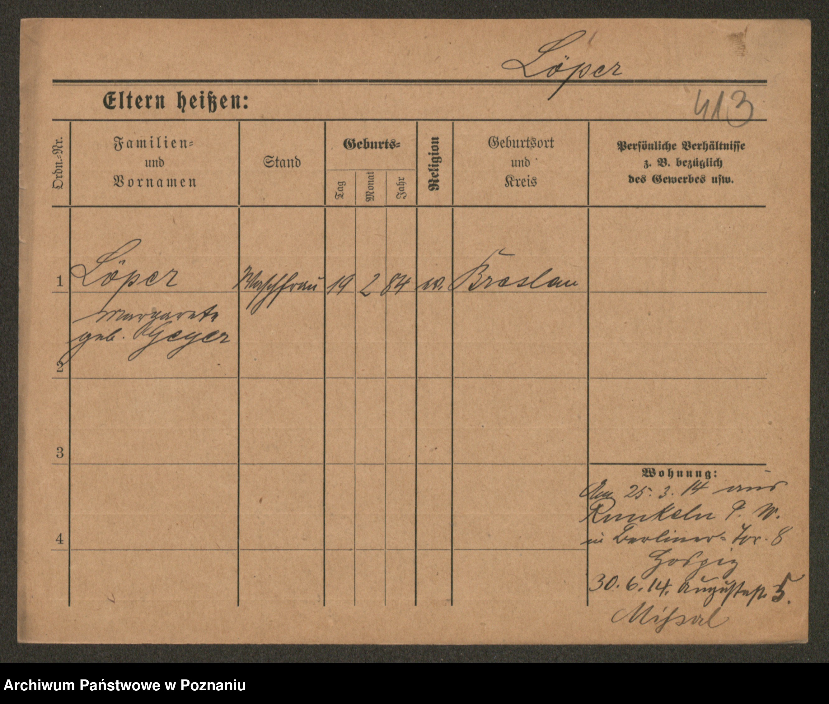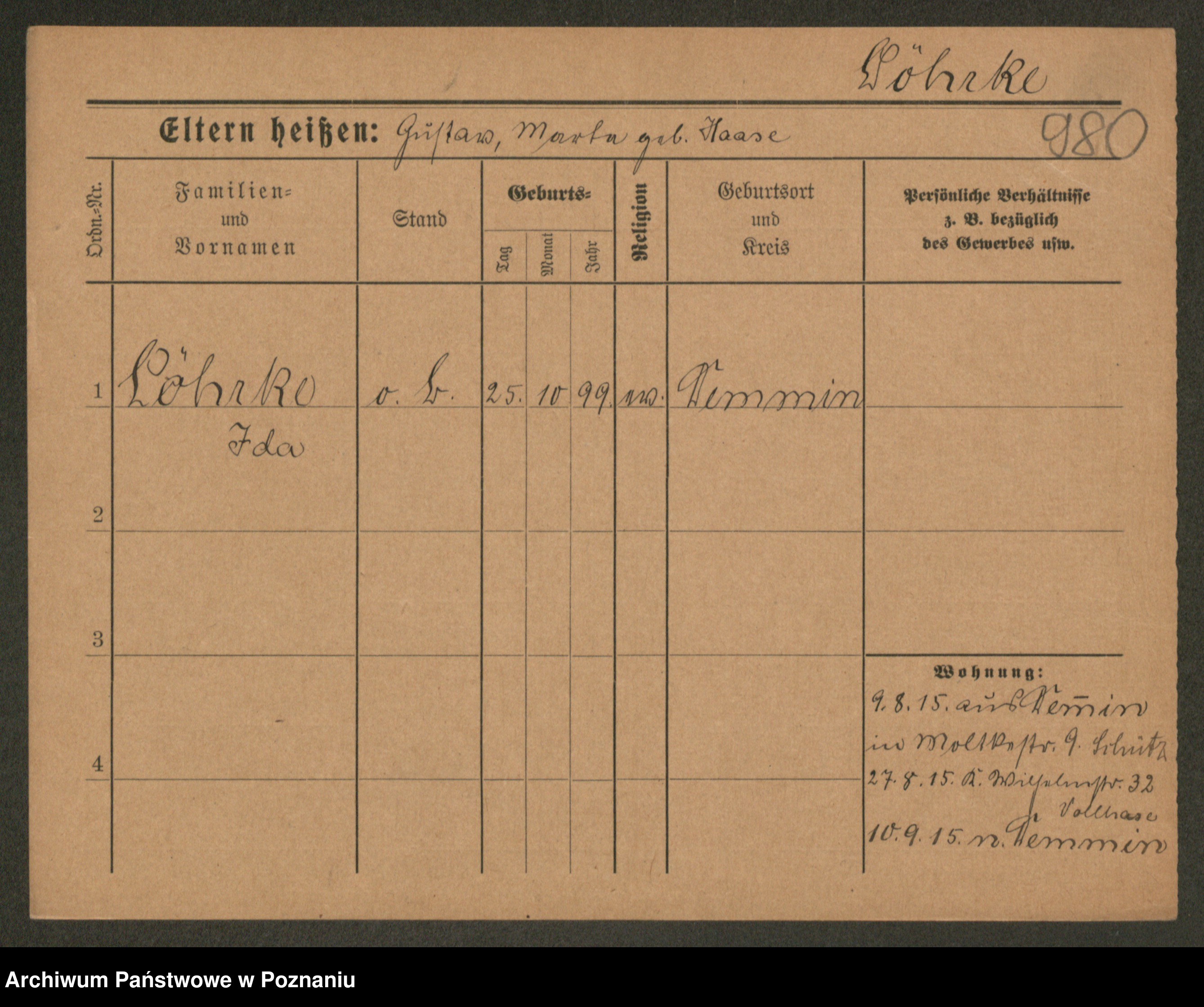 Podgląd karty osobowej dostępny jest po kliknięciu na nazwisko lub ikonkę karty. Można dokonywać powiększenia (ikony na górze) lub przechodzić między kolejnymi skanami (strzałki po bokach).
