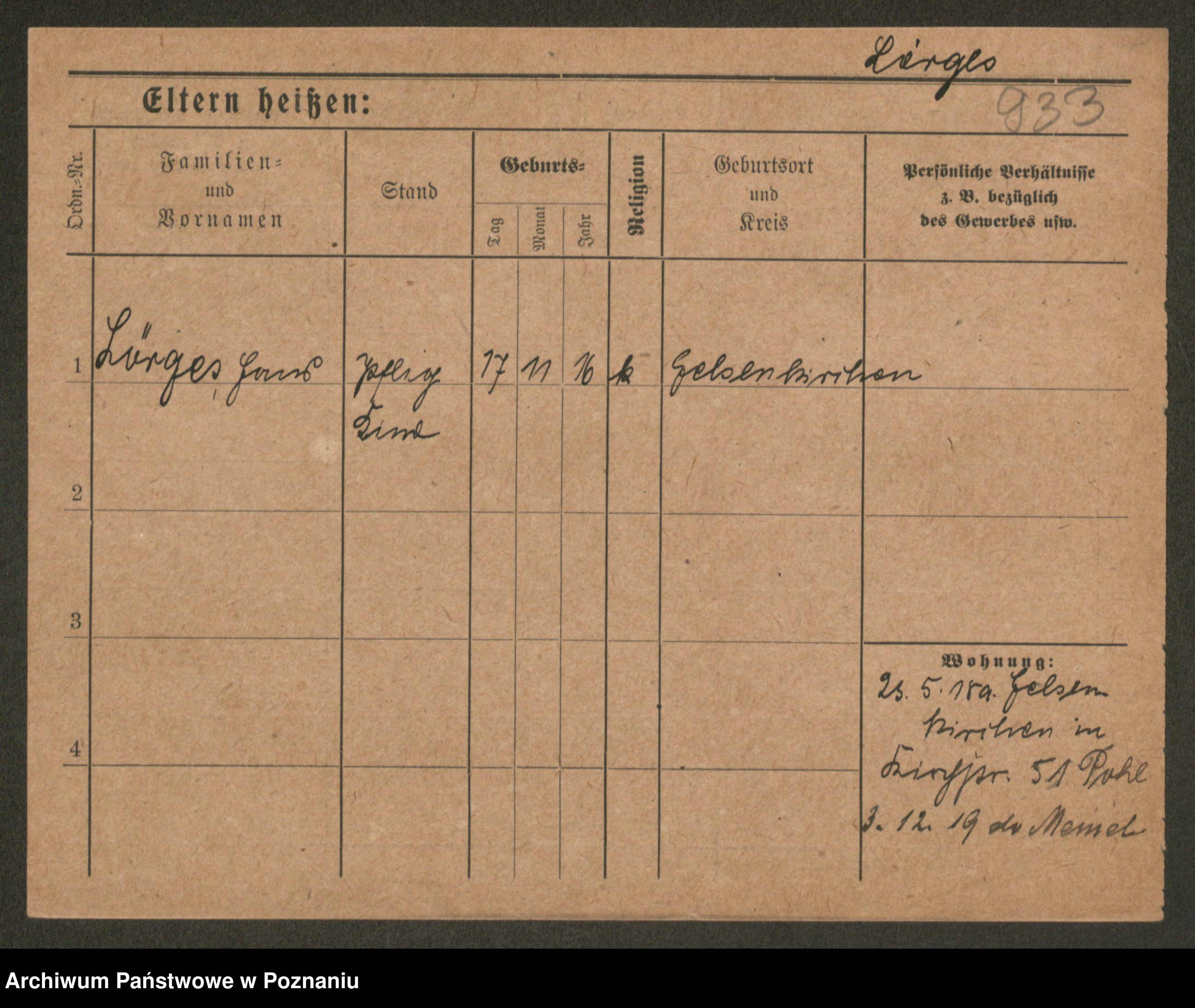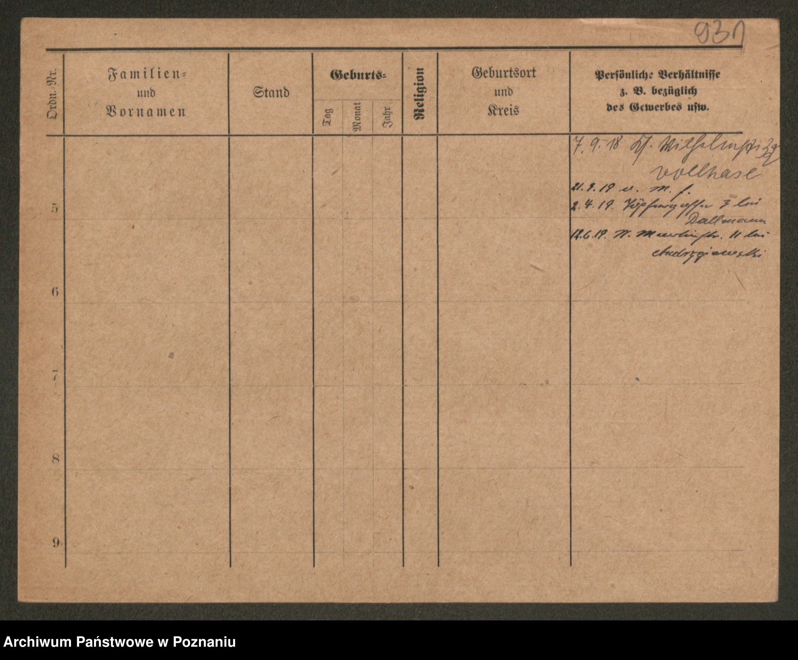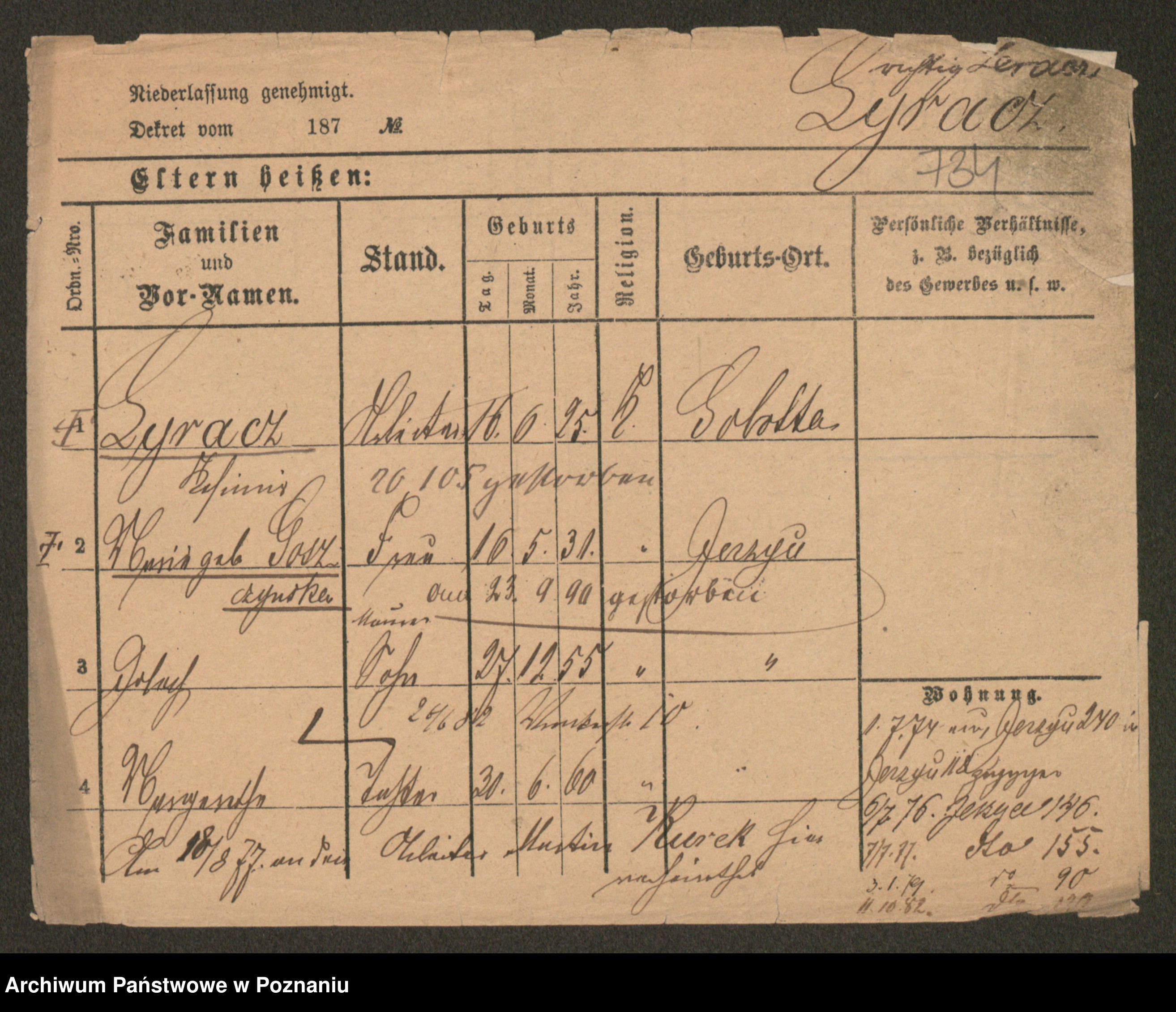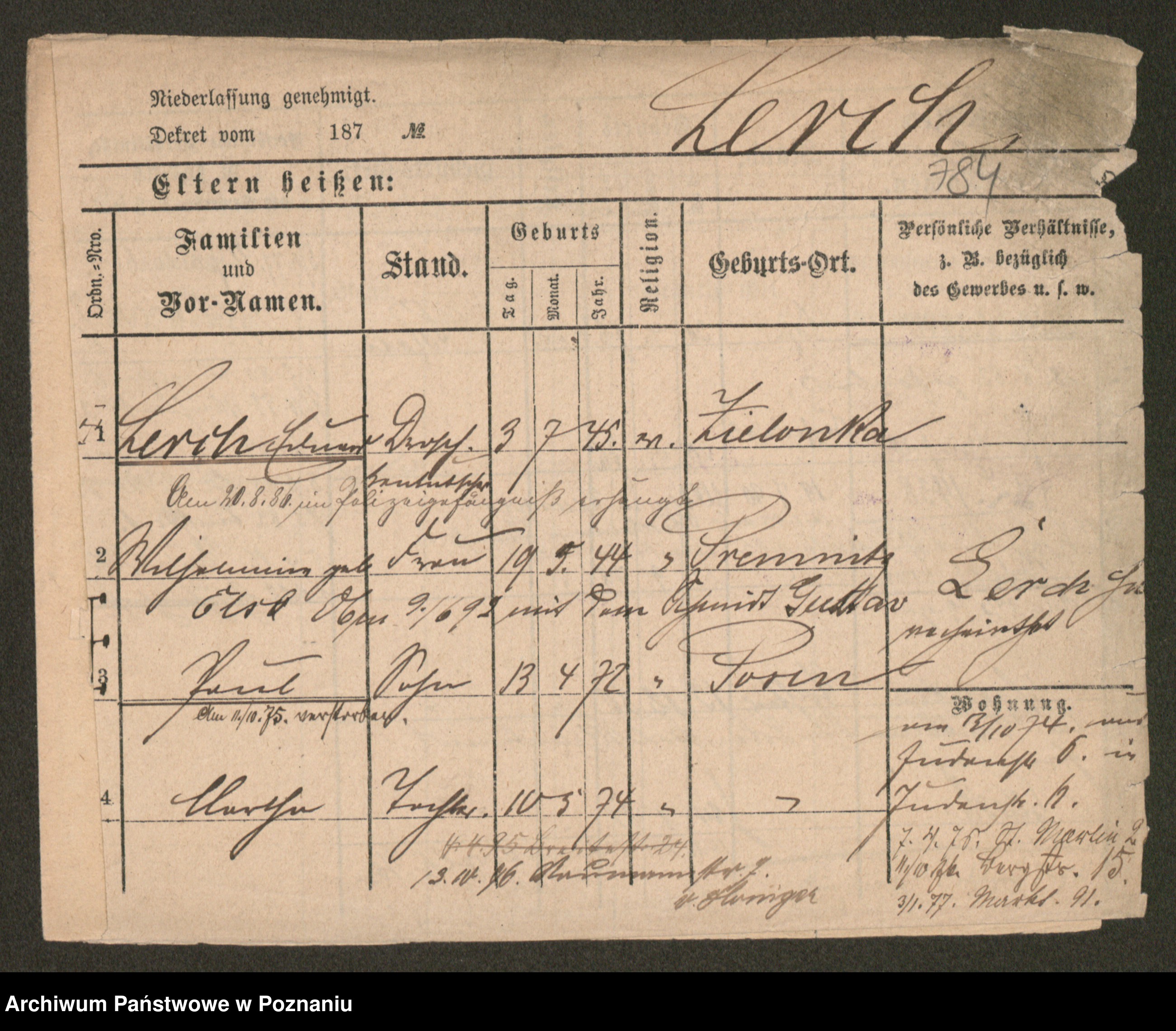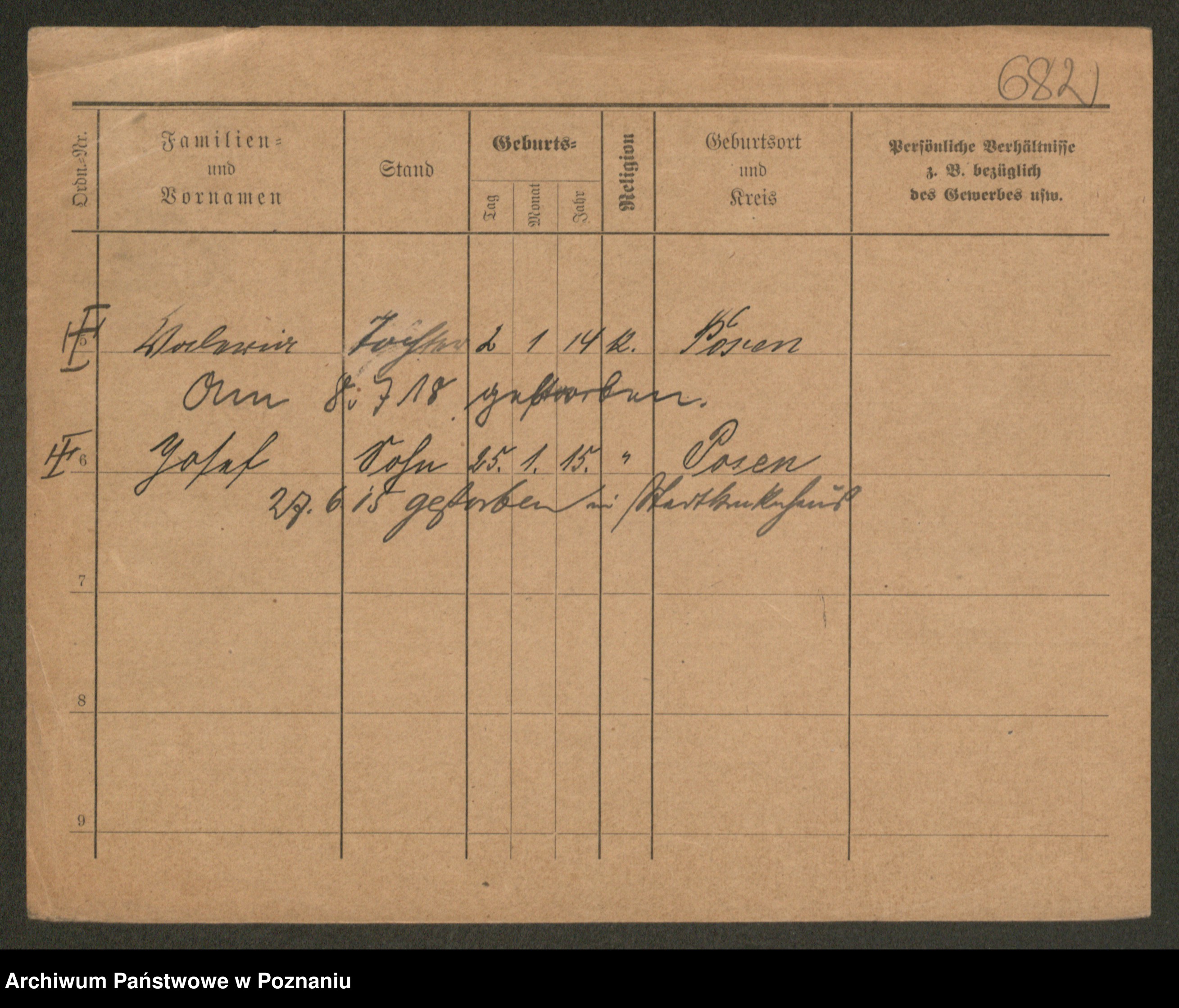 Podgląd karty osobowej dostępny jest po kliknięciu na nazwisko lub ikonkę karty. Można dokonywać powiększenia (ikony na górze) lub przechodzić między kolejnymi skanami (strzałki po bokach).