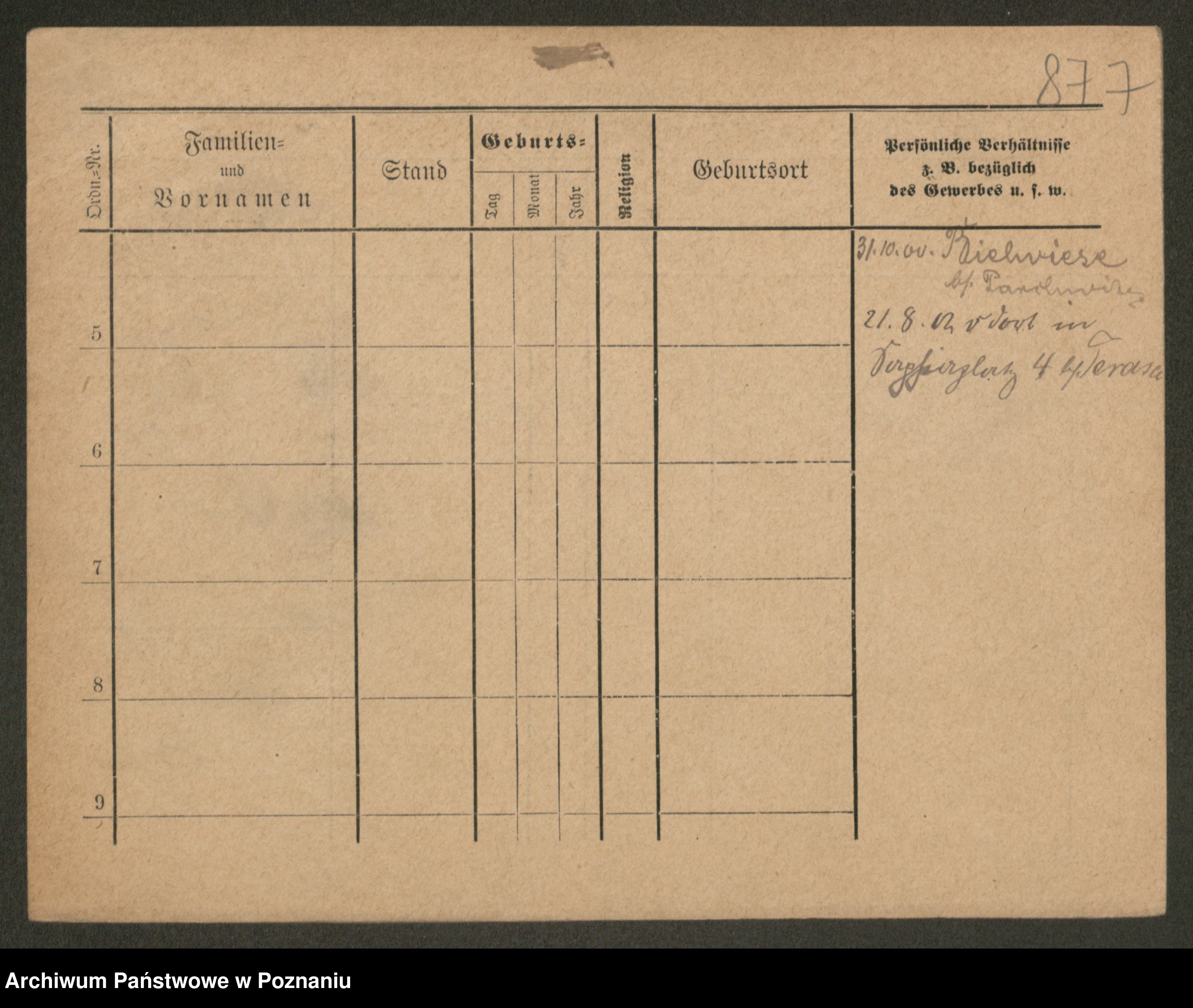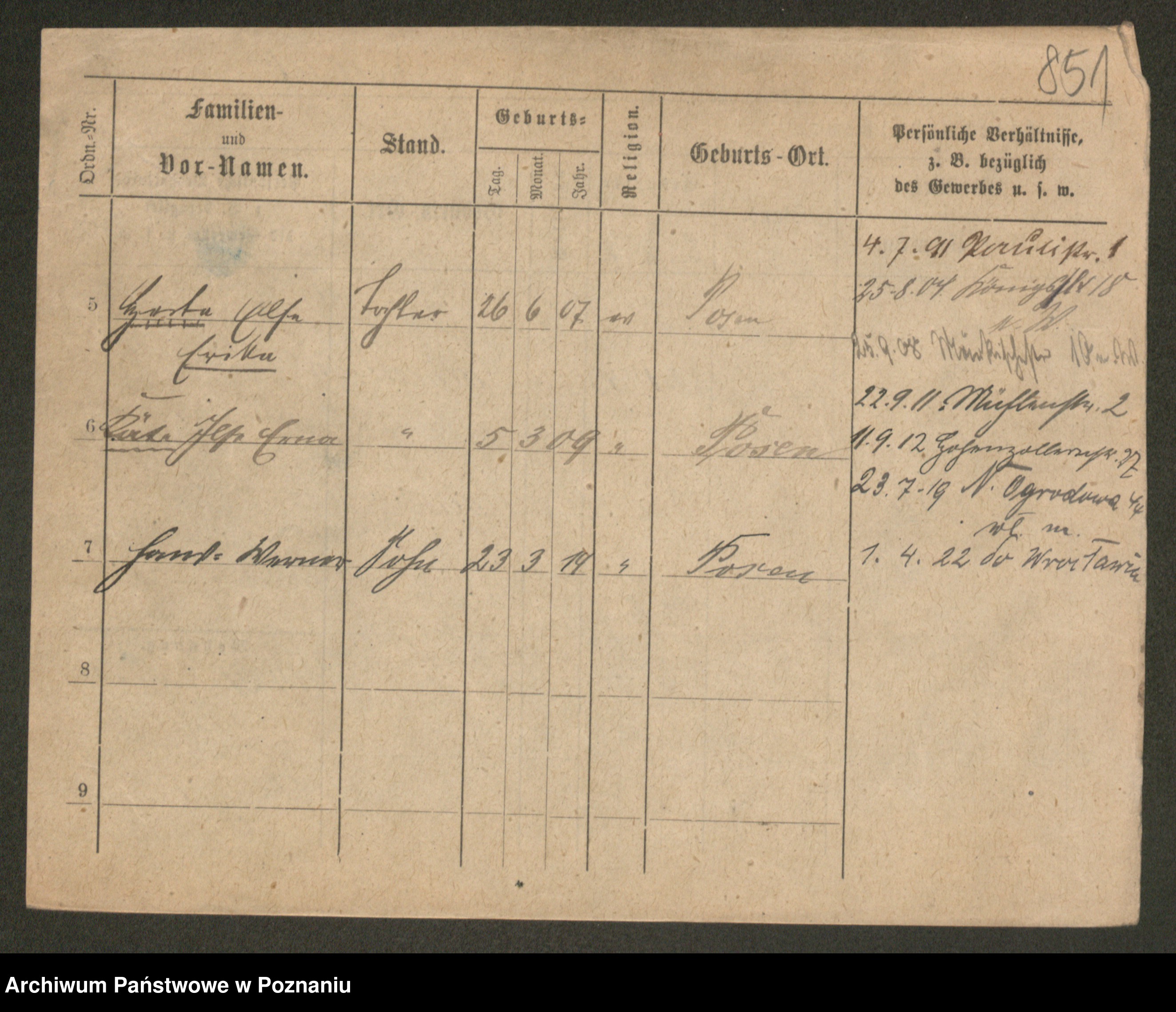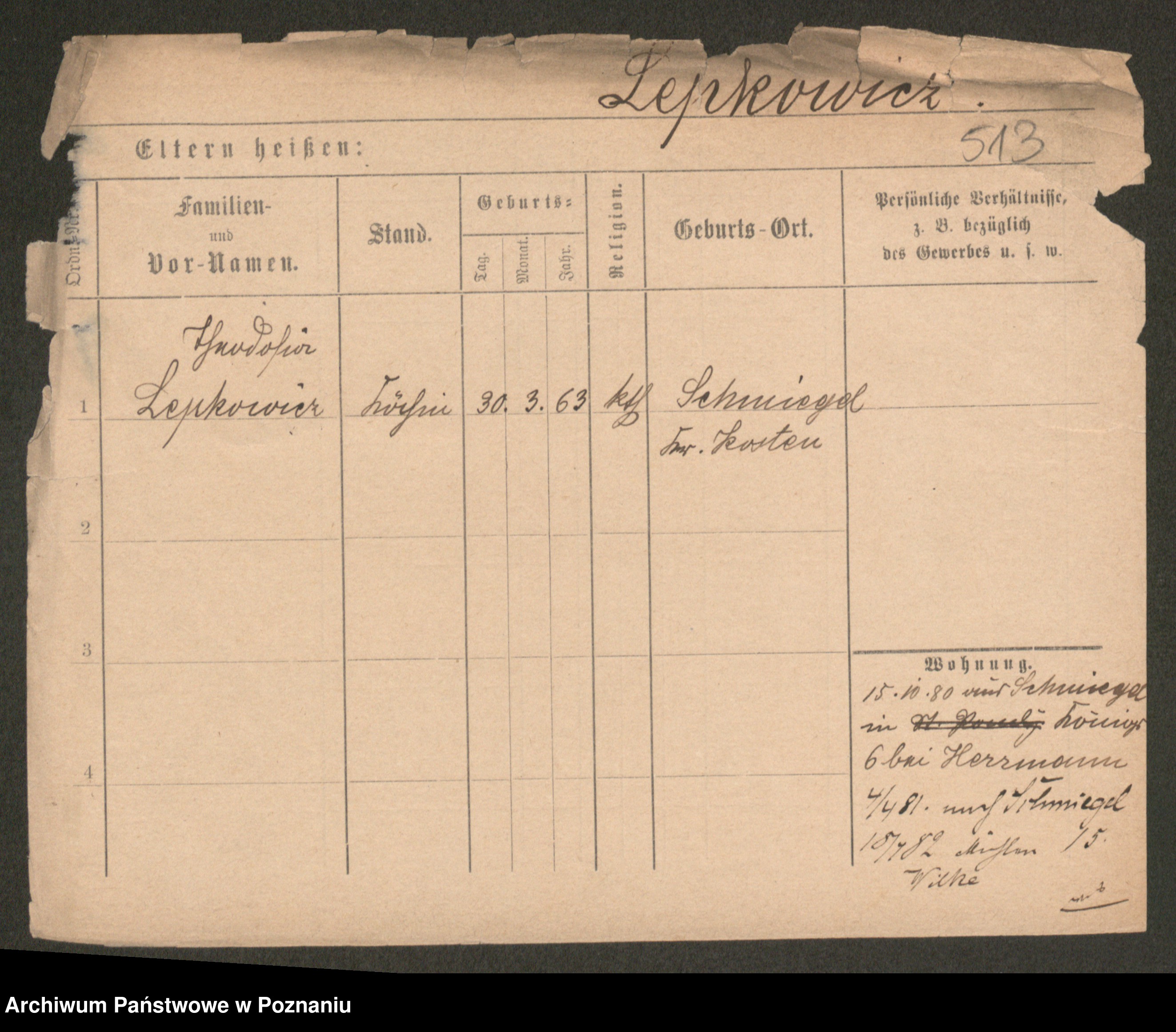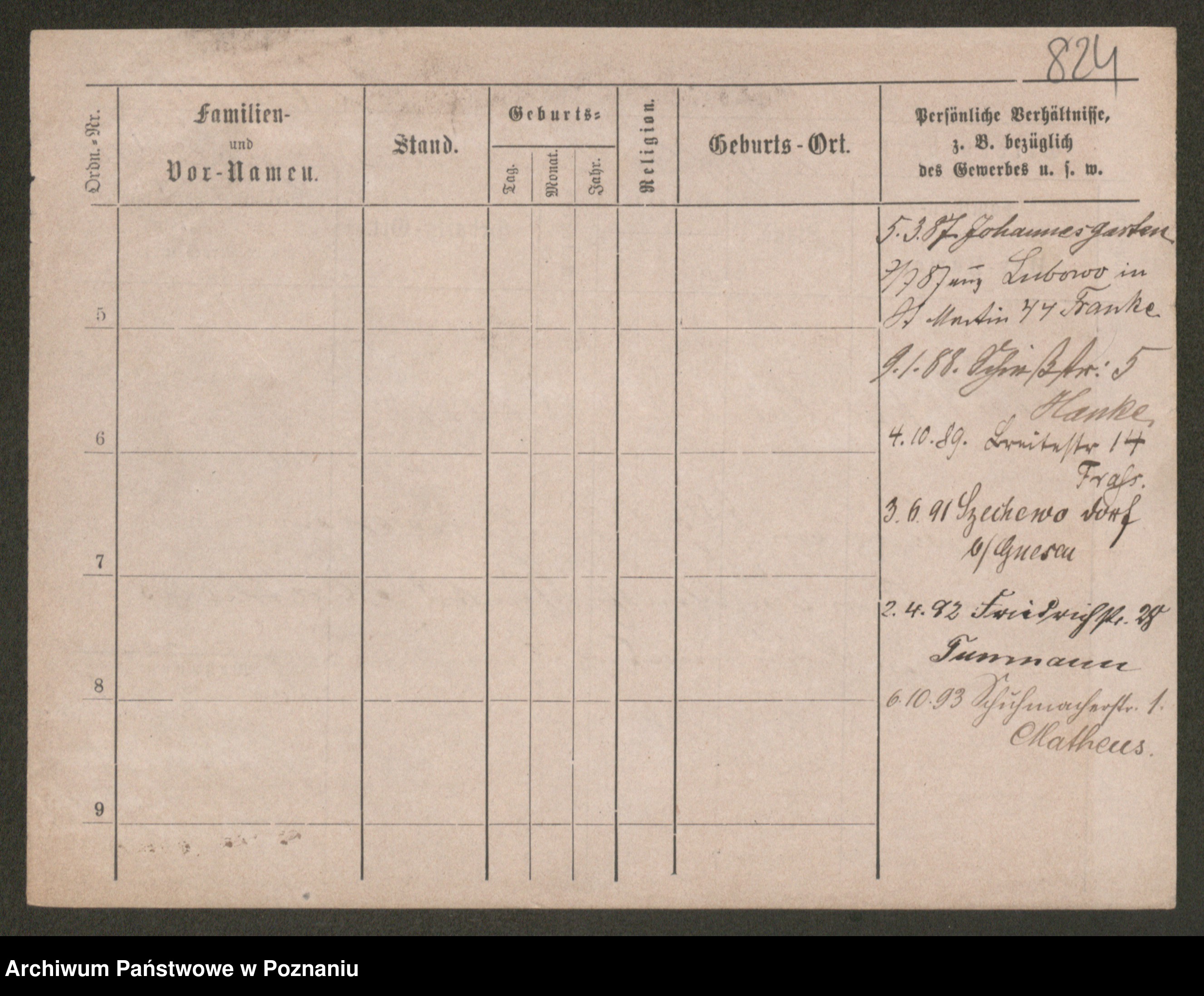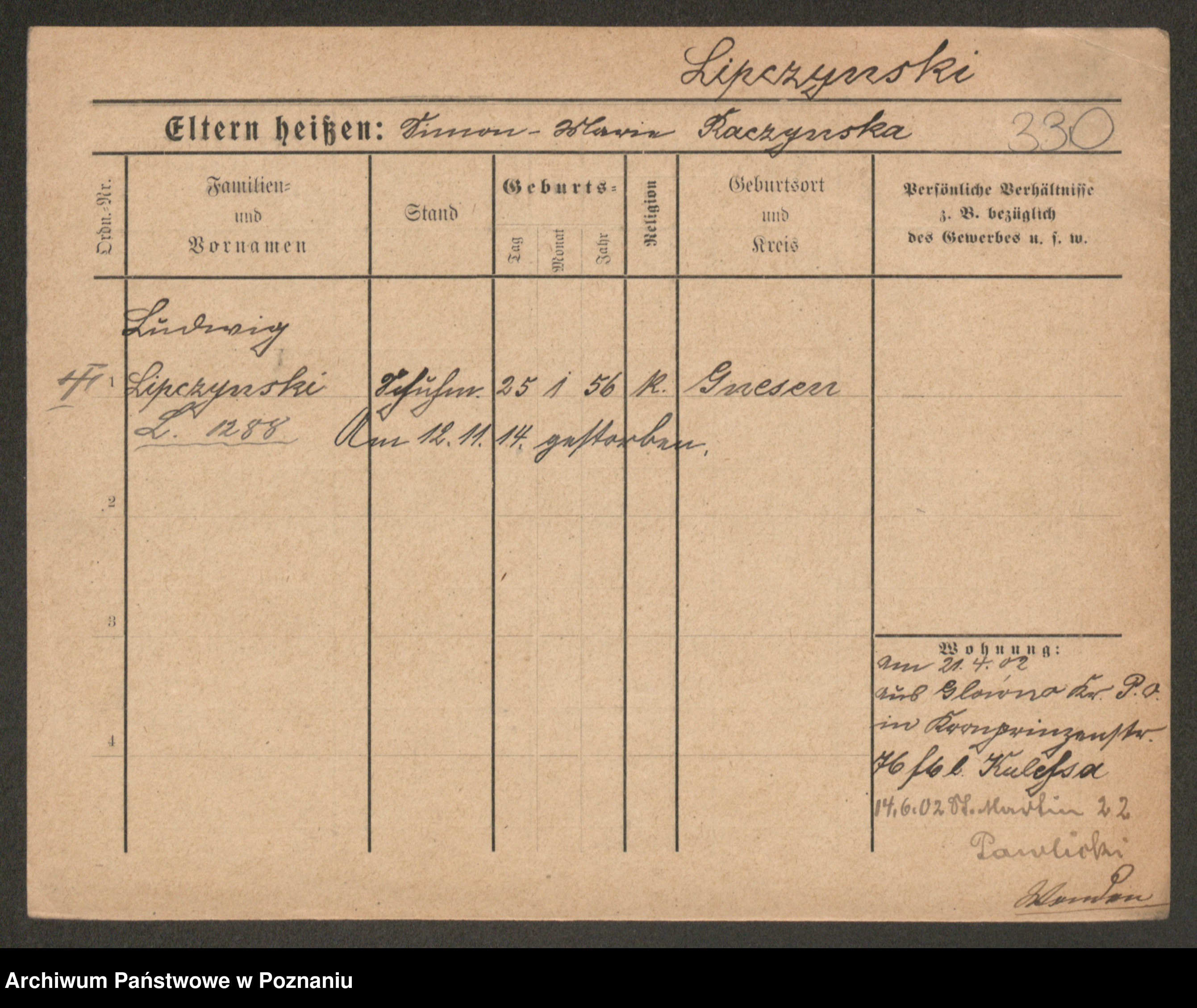 Podgląd karty osobowej dostępny jest po kliknięciu na nazwisko lub ikonkę karty. Można dokonywać powiększenia (ikony na górze) lub przechodzić między kolejnymi skanami (strzałki po bokach).
