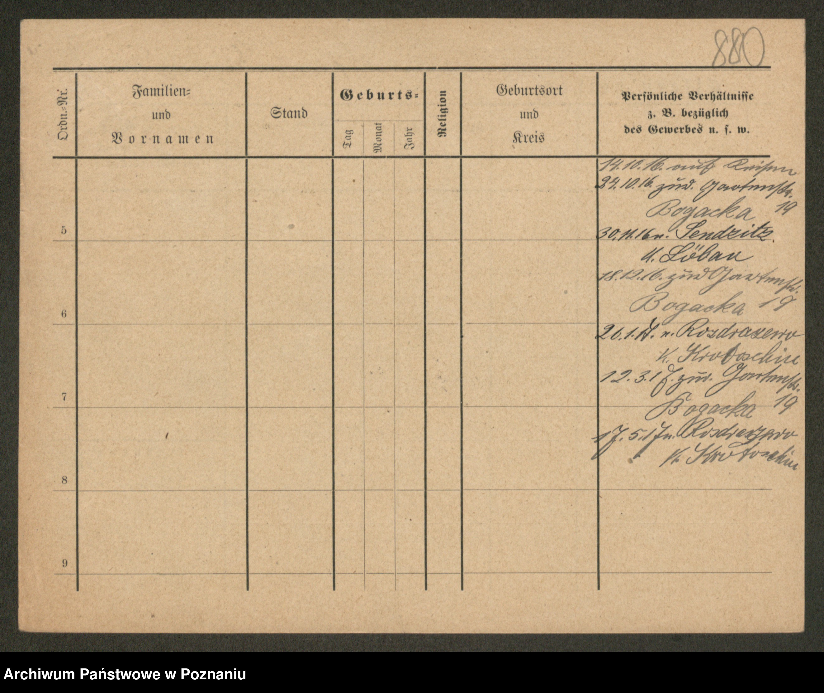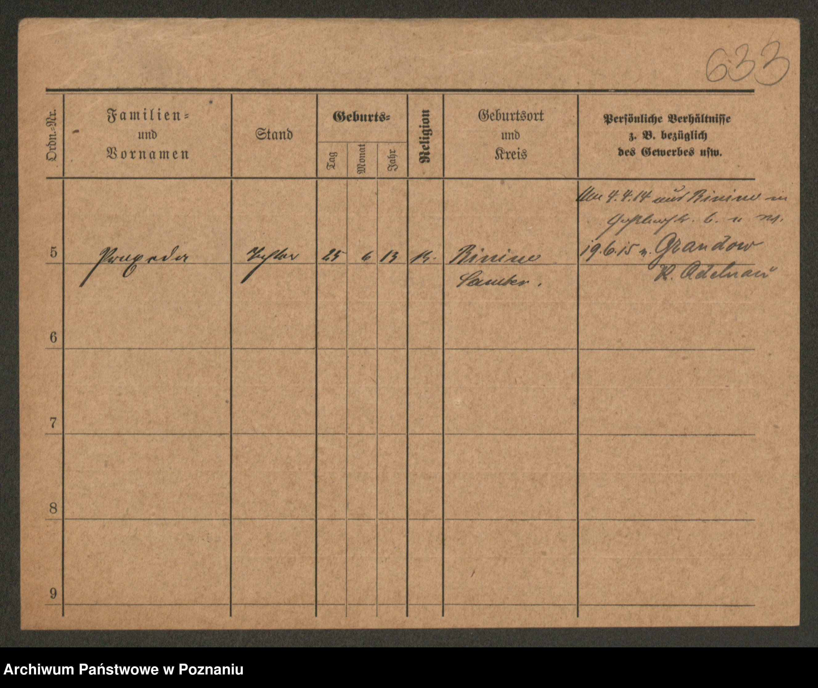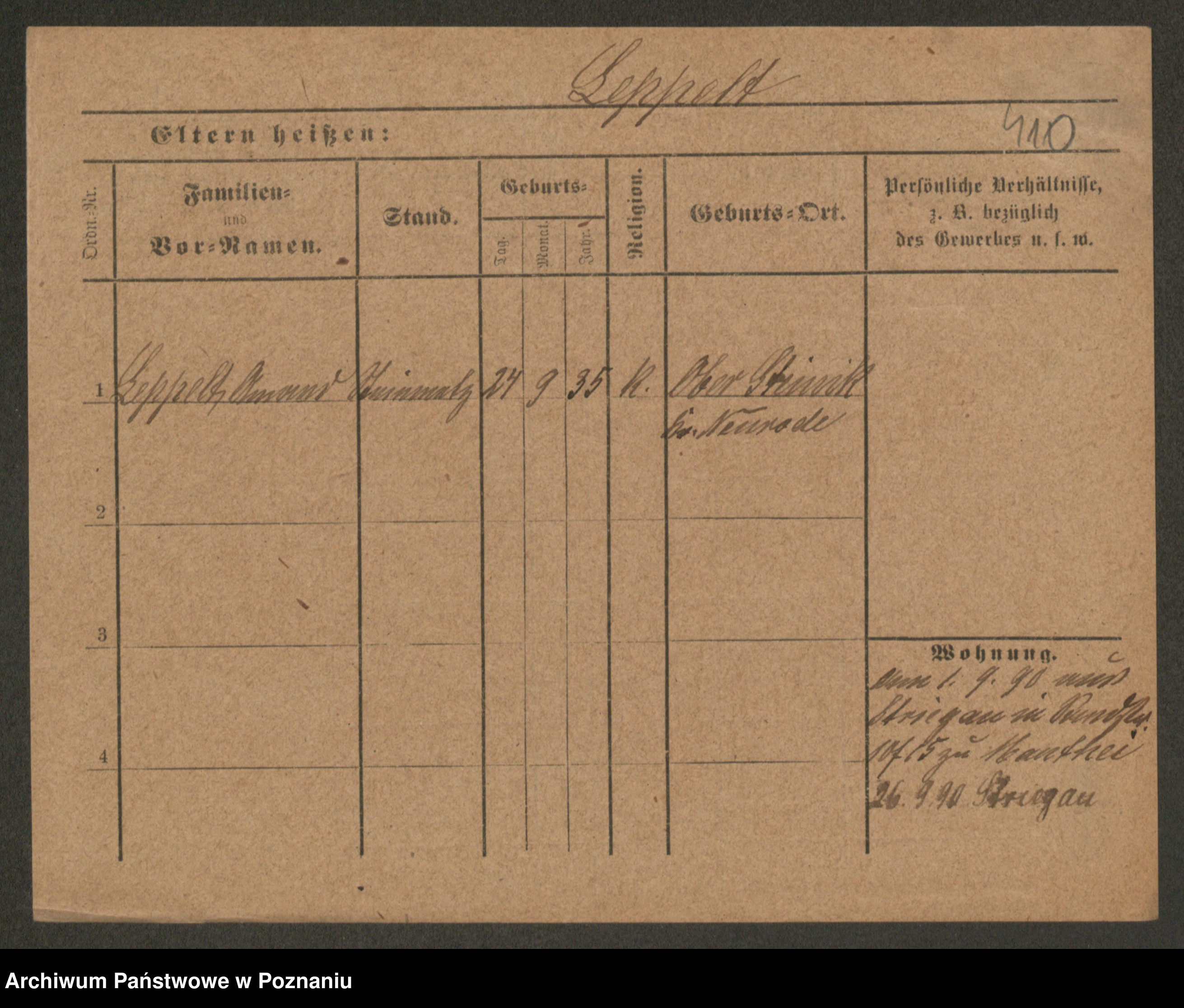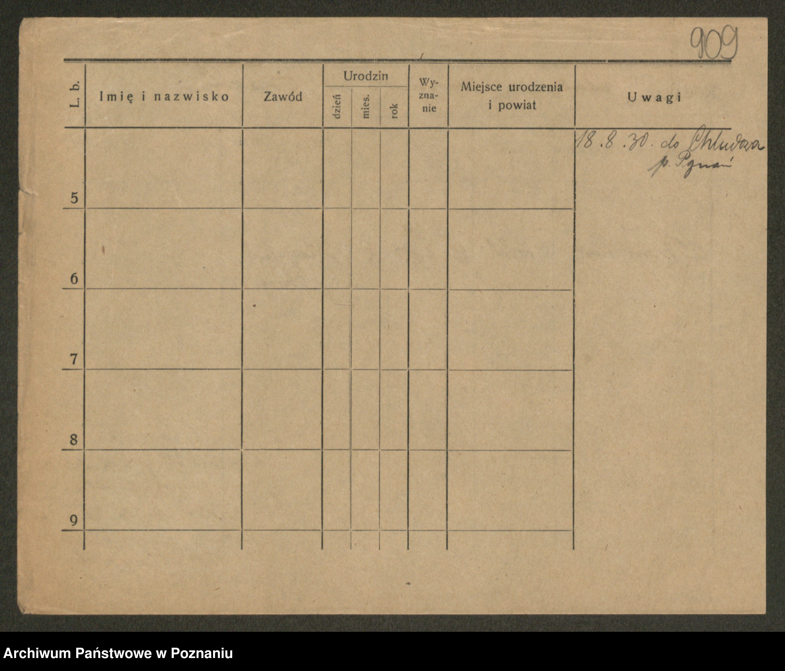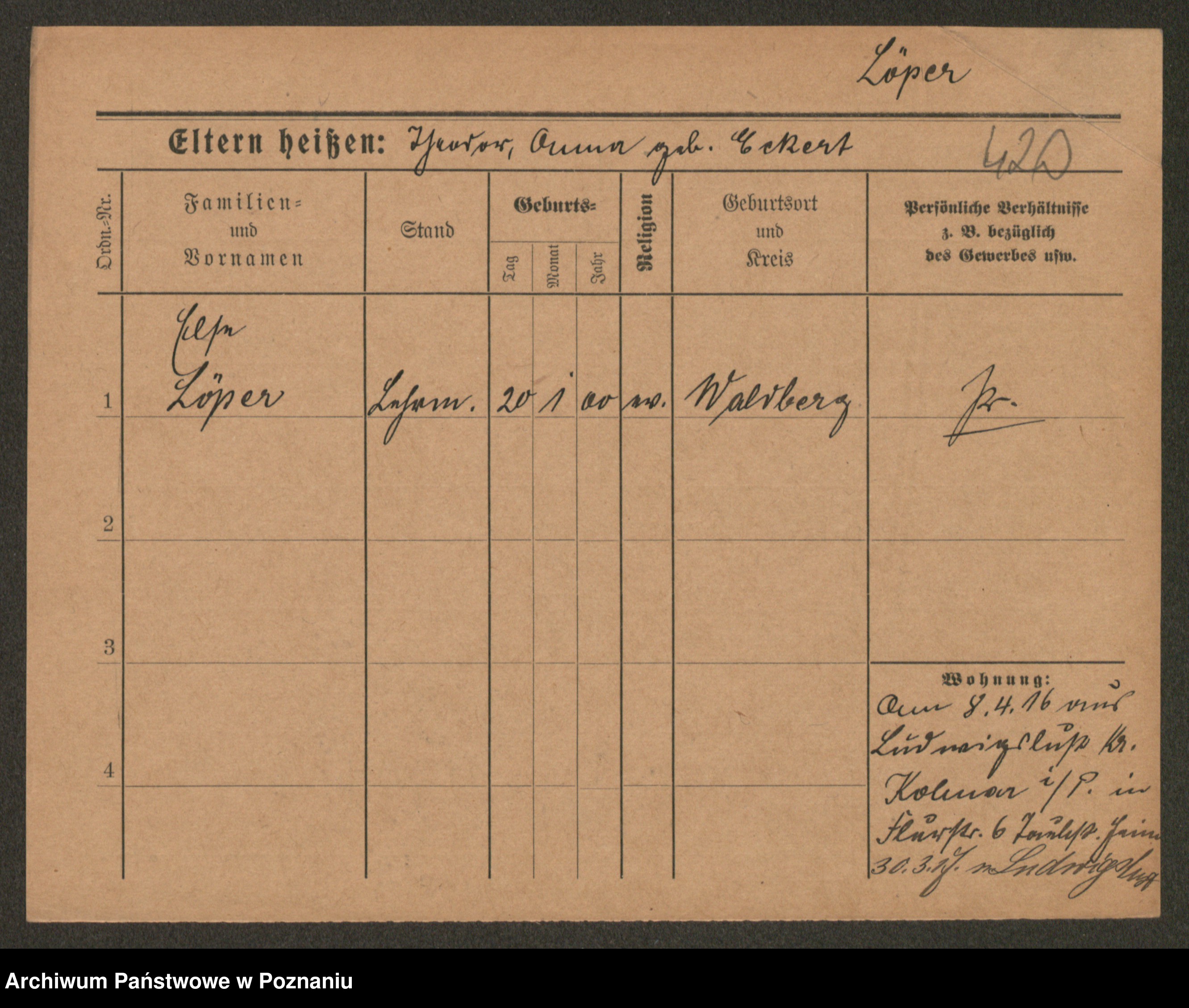 Podgląd karty osobowej dostępny jest po kliknięciu na nazwisko lub ikonkę karty. Można dokonywać powiększenia (ikony na górze) lub przechodzić między kolejnymi skanami (strzałki po bokach).