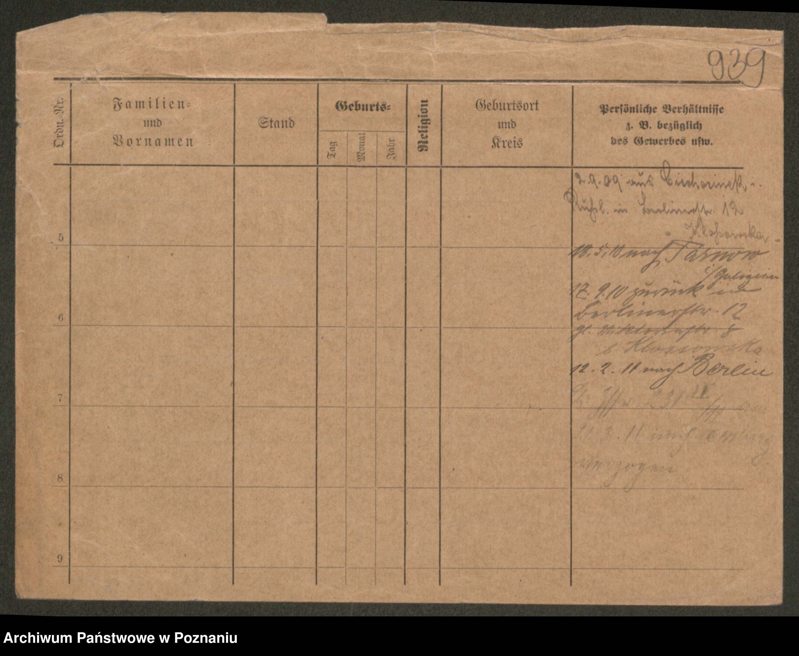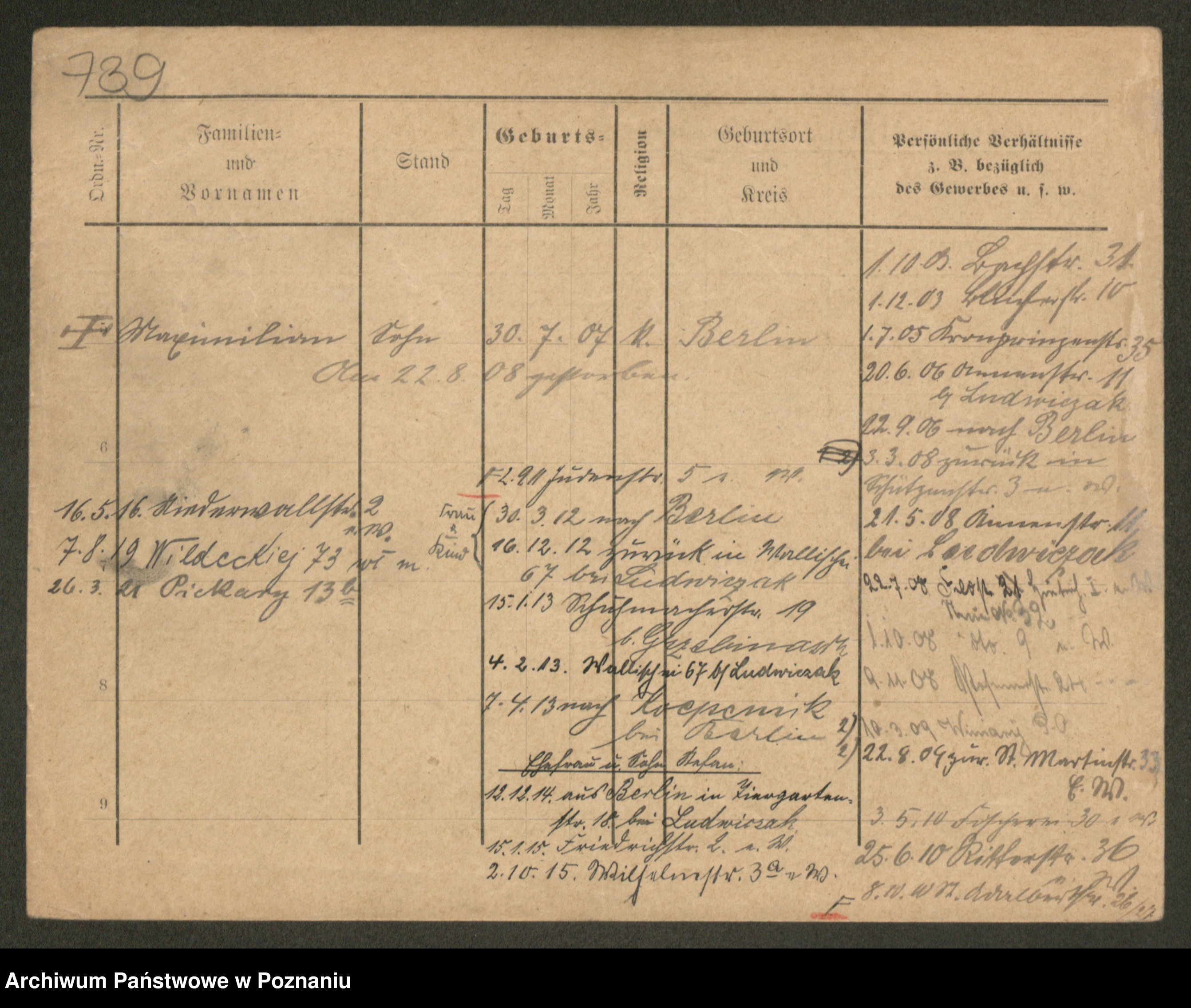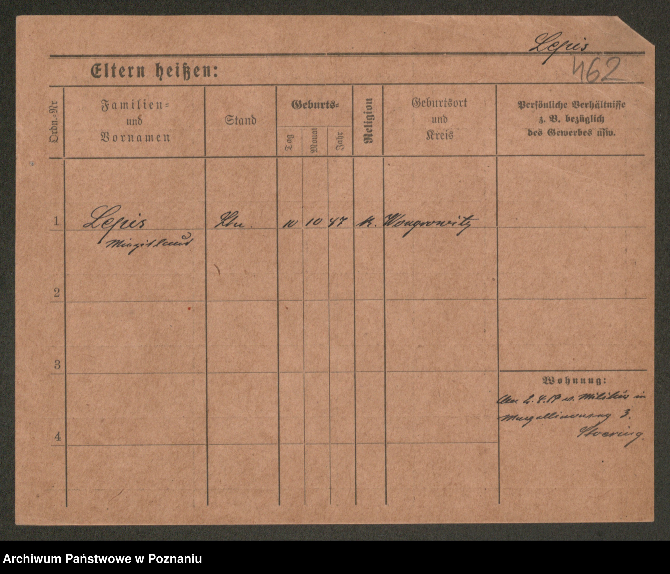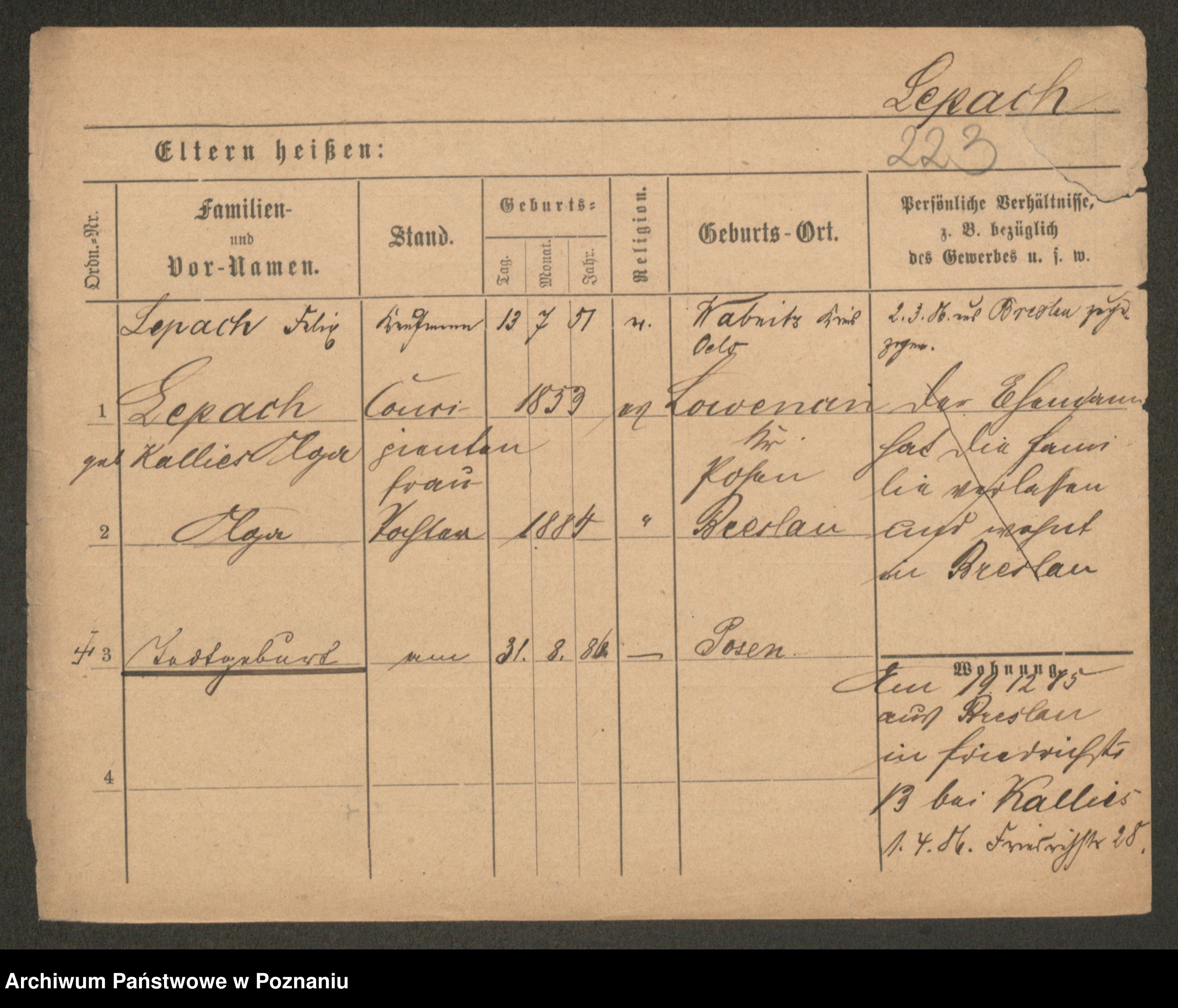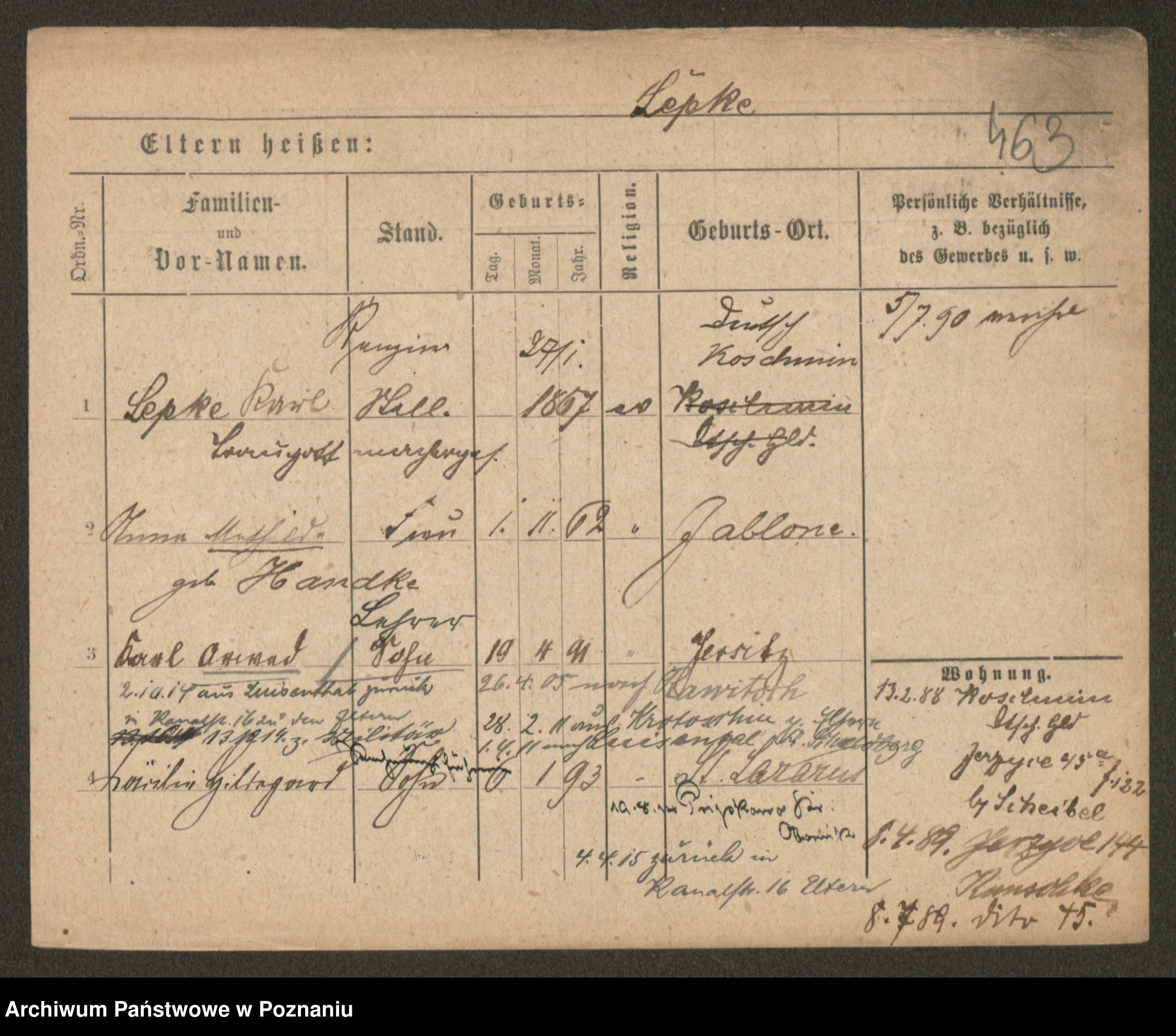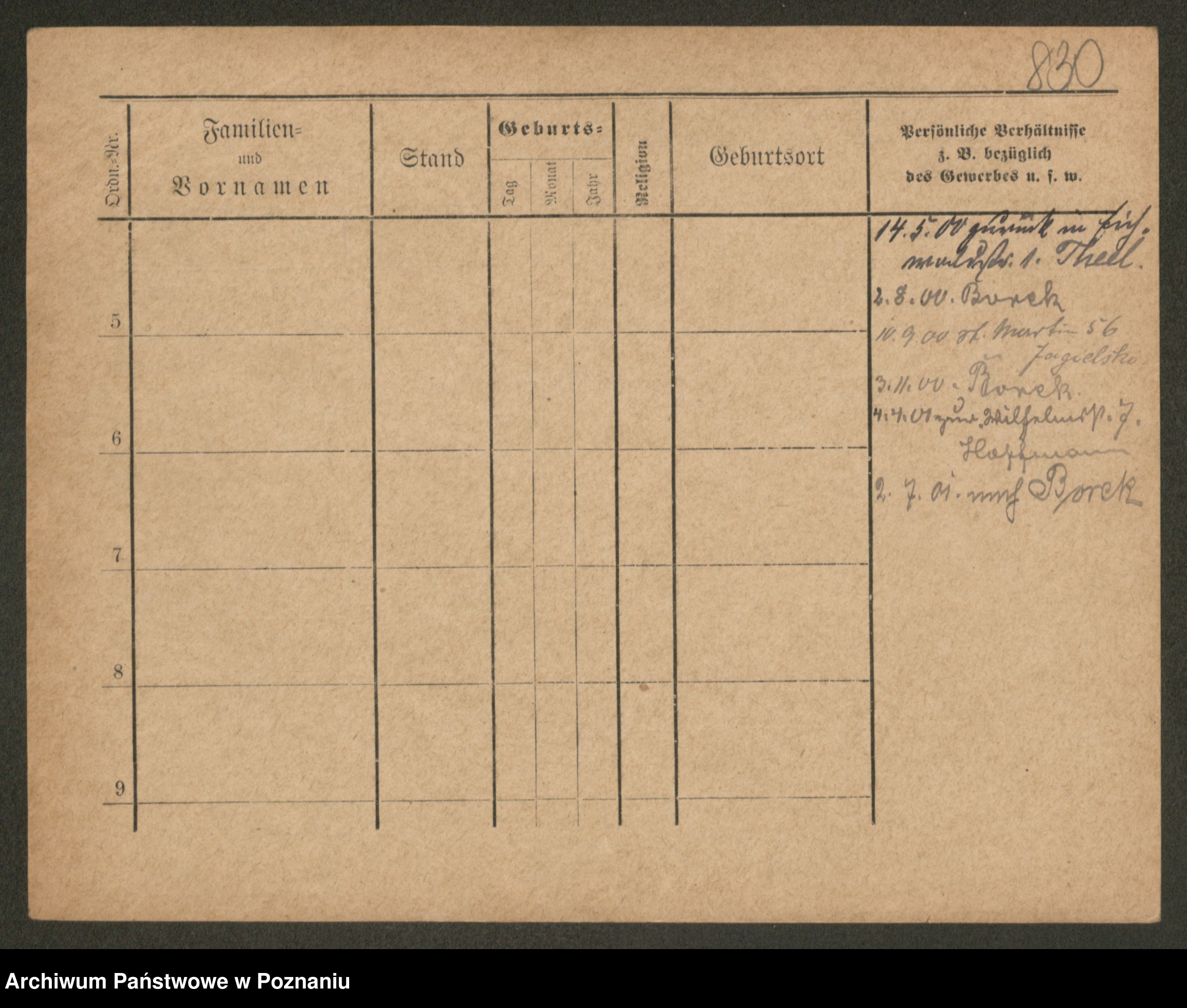 Podgląd karty osobowej dostępny jest po kliknięciu na nazwisko lub ikonkę karty. Można dokonywać powiększenia (ikony na górze) lub przechodzić między kolejnymi skanami (strzałki po bokach).