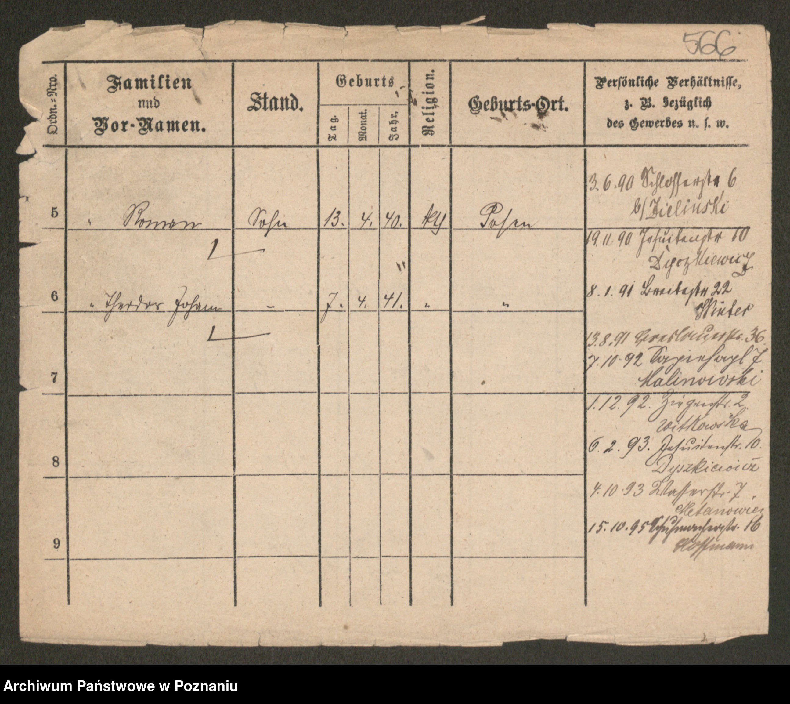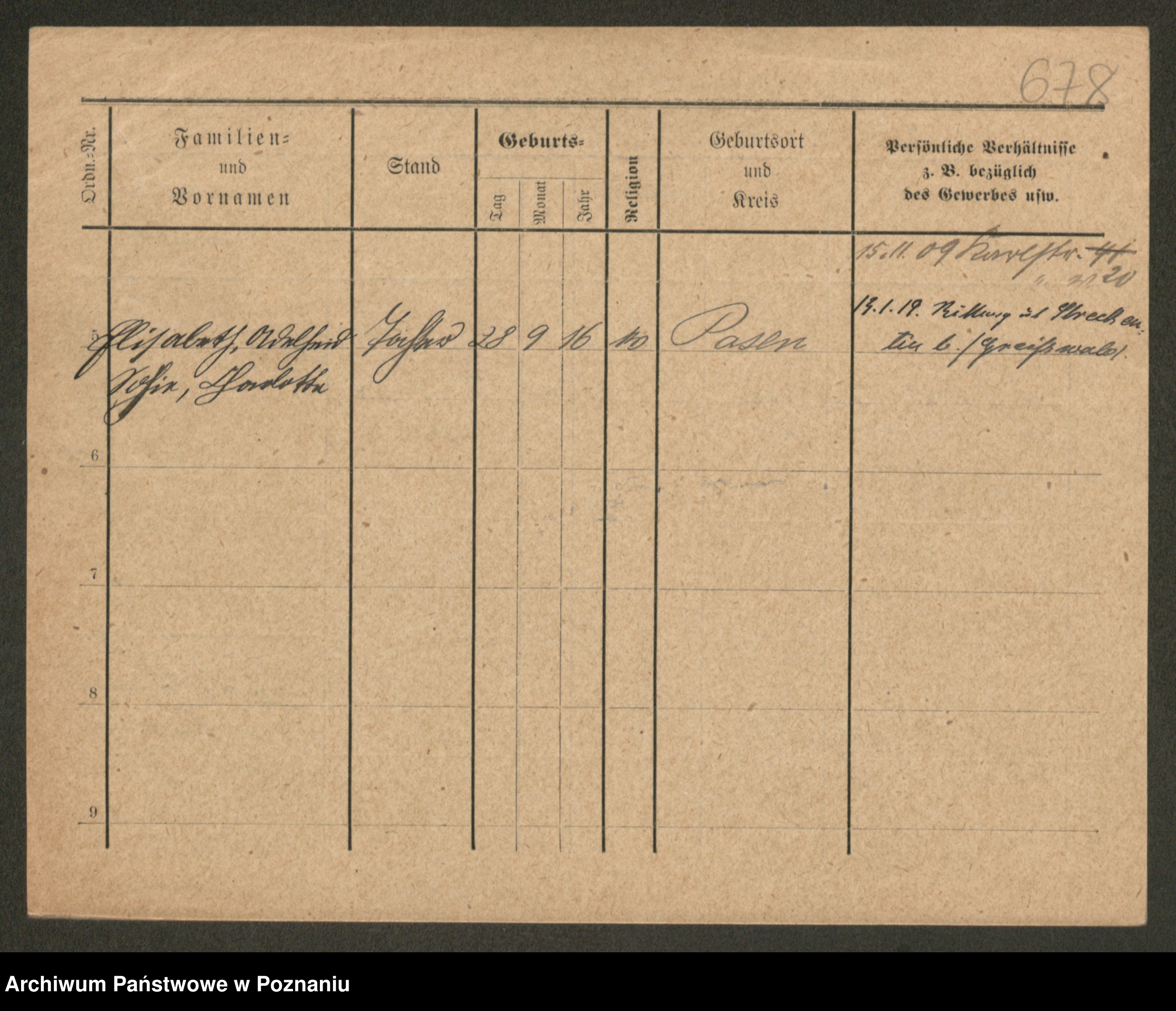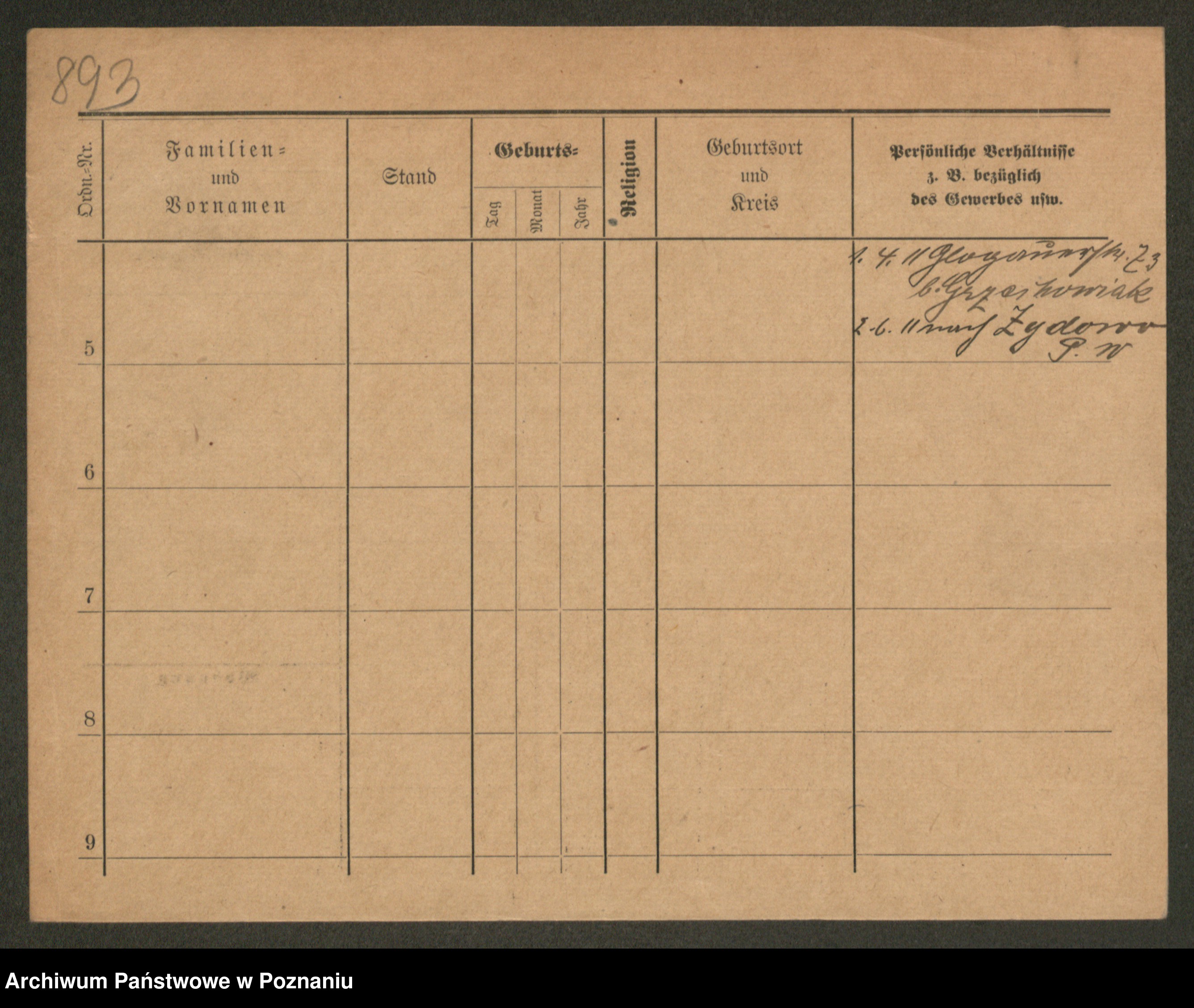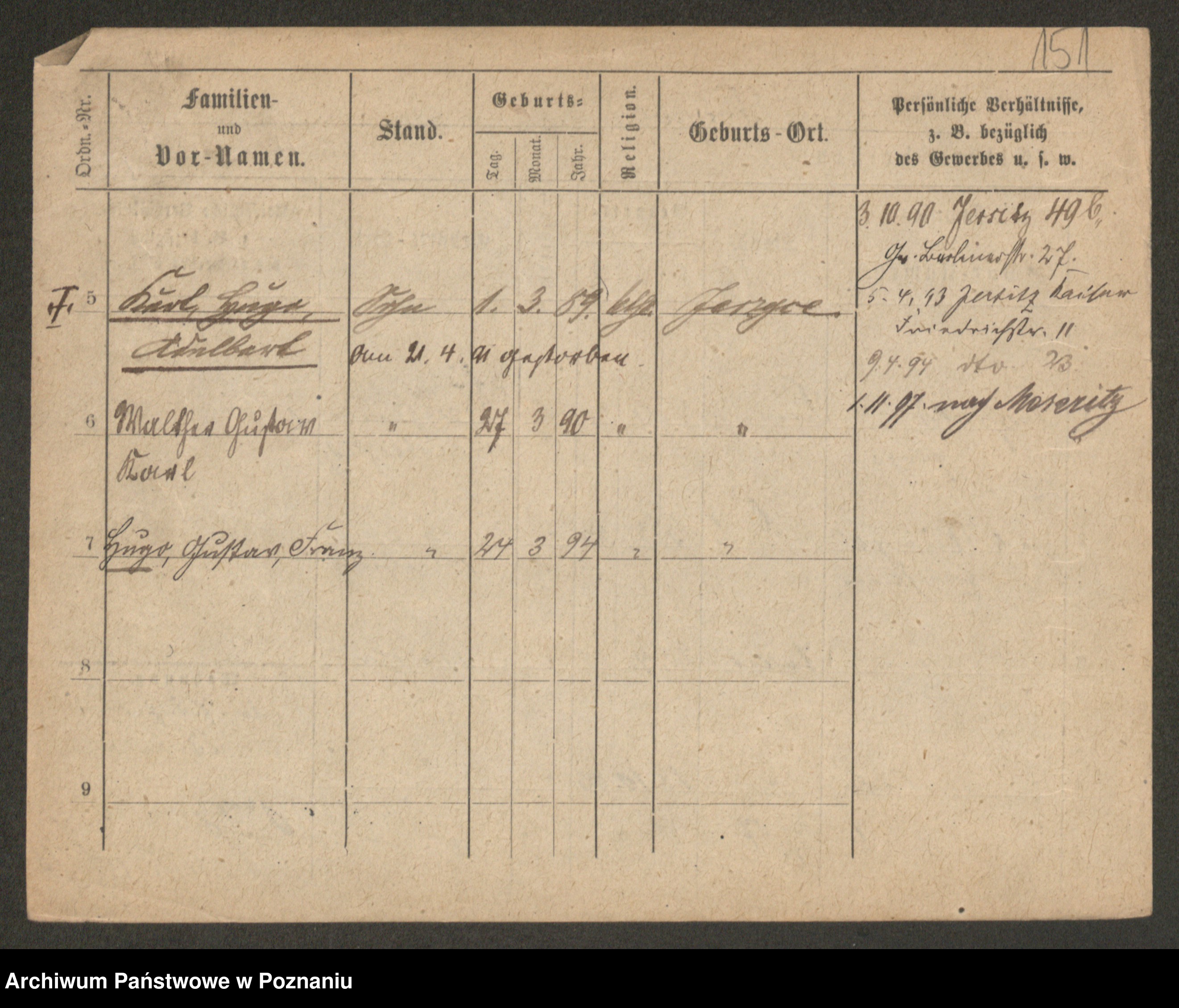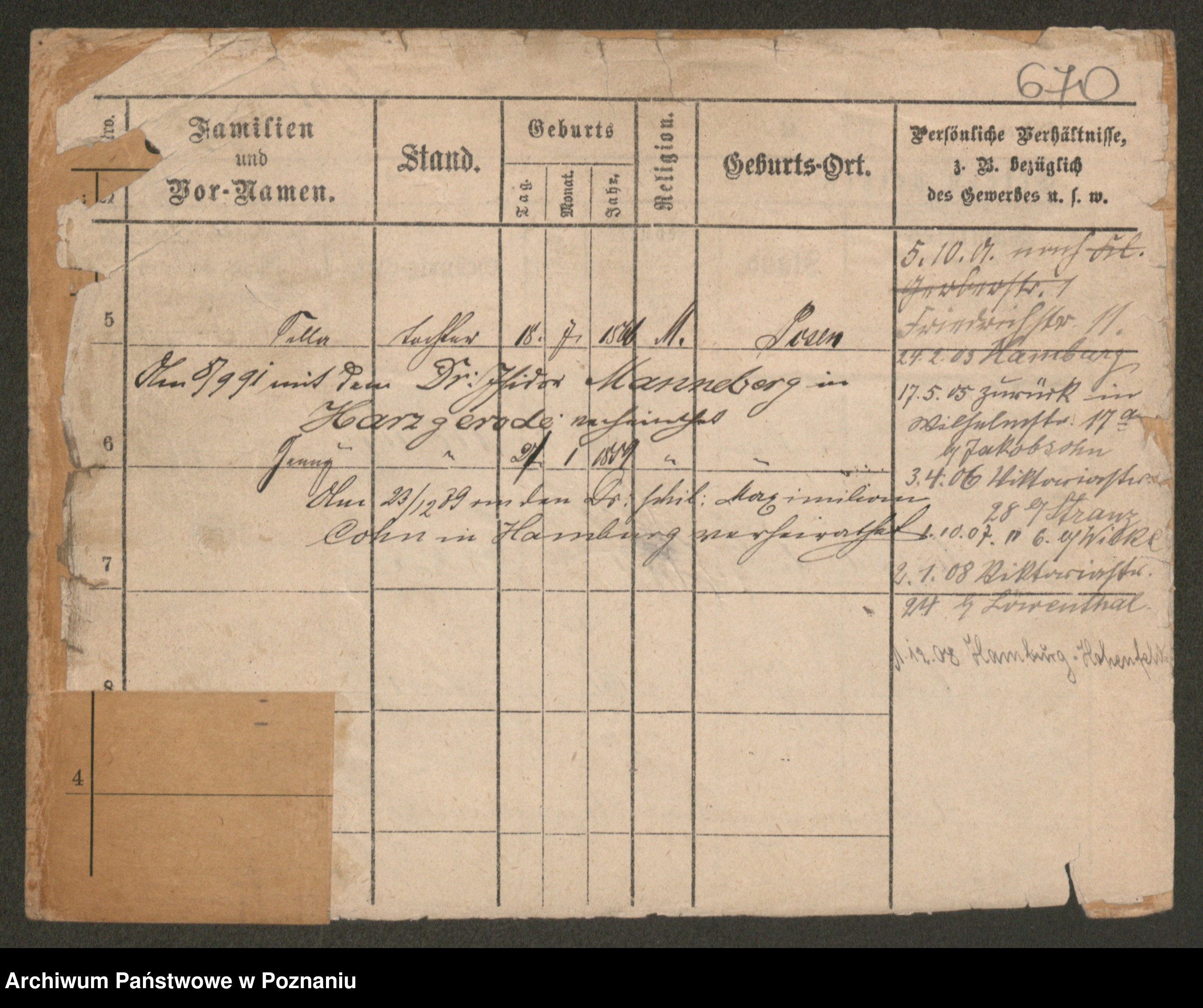 Podgląd karty osobowej dostępny jest po kliknięciu na nazwisko lub ikonkę karty. Można dokonywać powiększenia (ikony na górze) lub przechodzić między kolejnymi skanami (strzałki po bokach).