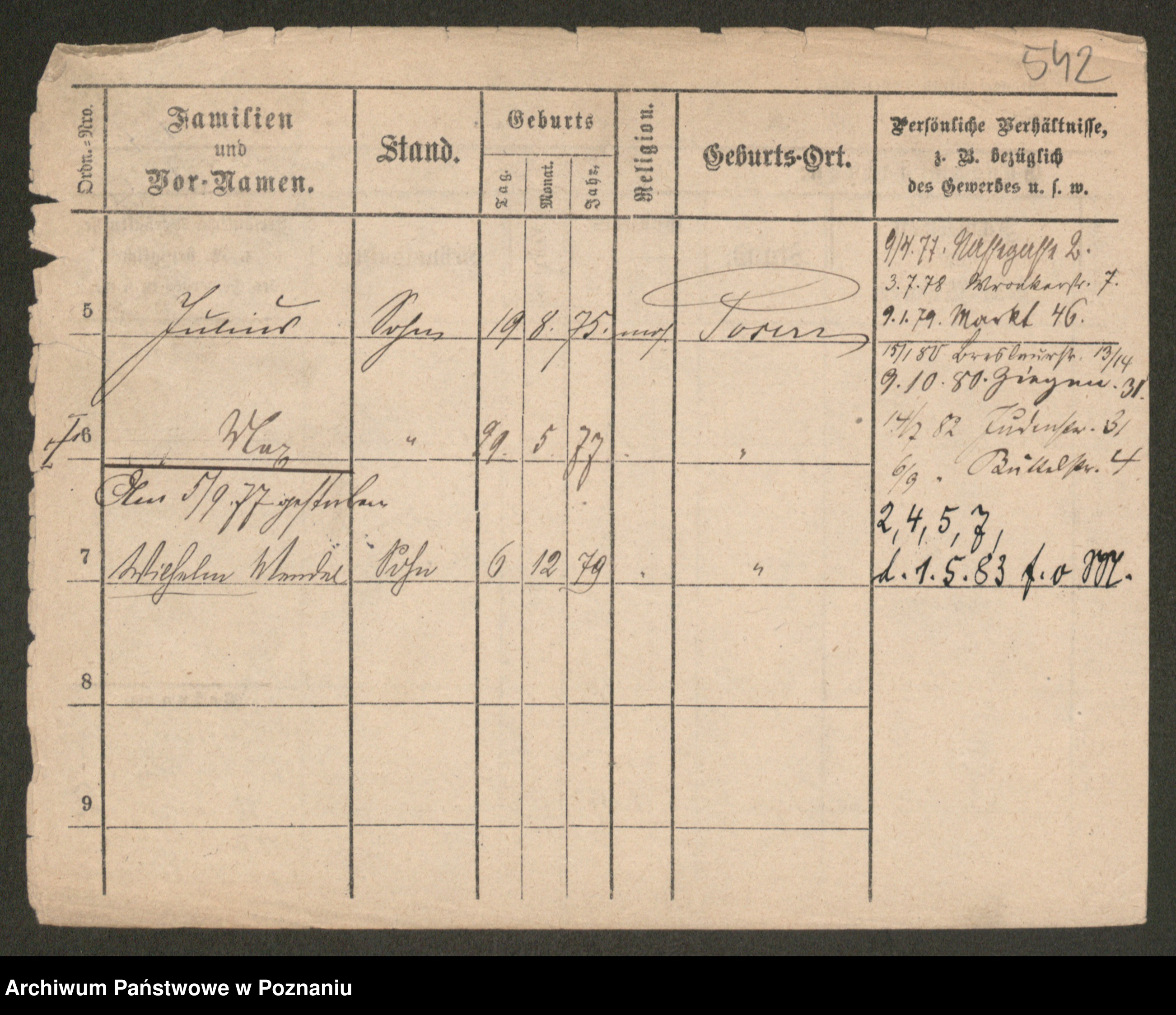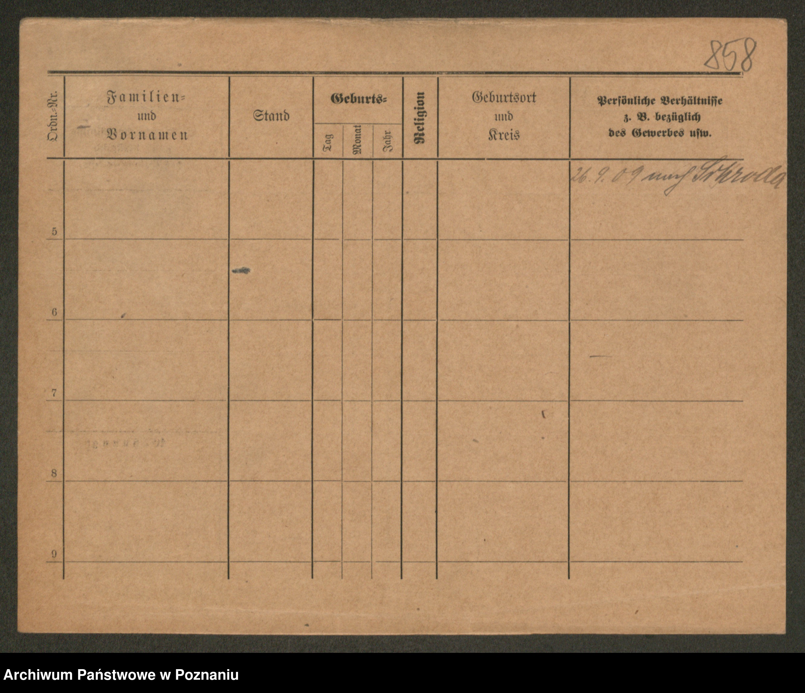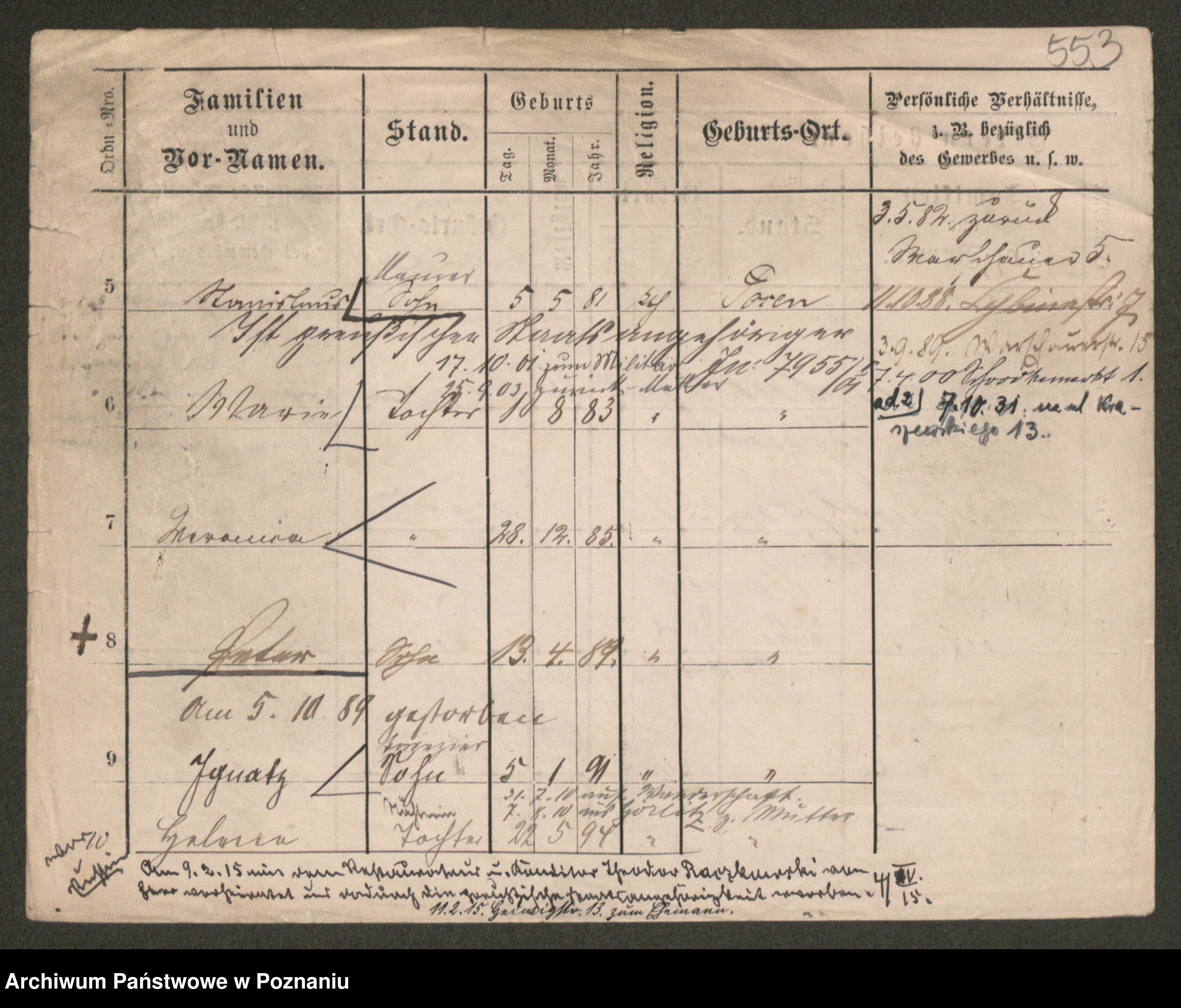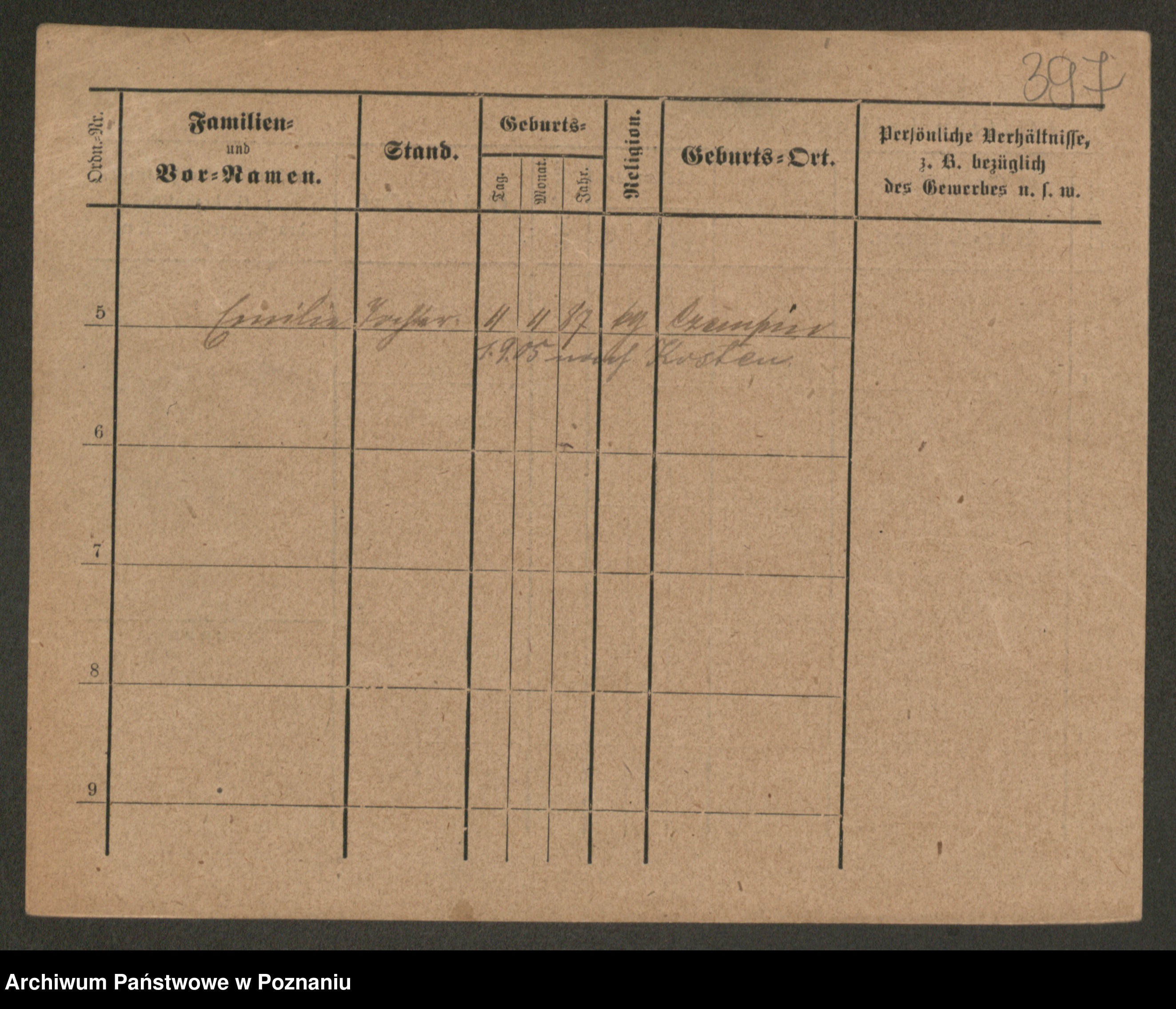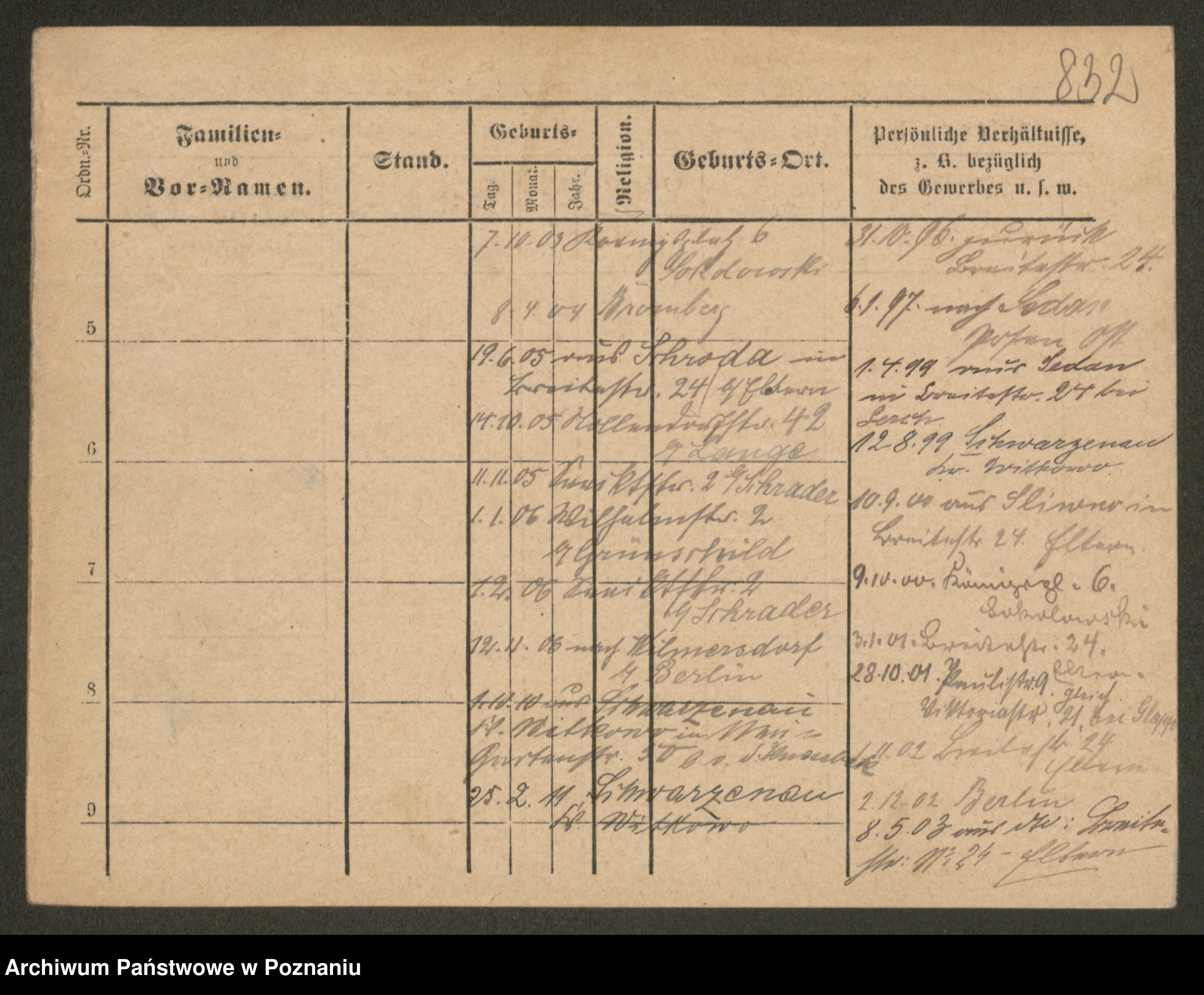 Podgląd karty osobowej dostępny jest po kliknięciu na nazwisko lub ikonkę karty. Można dokonywać powiększenia (ikony na górze) lub przechodzić między kolejnymi skanami (strzałki po bokach).