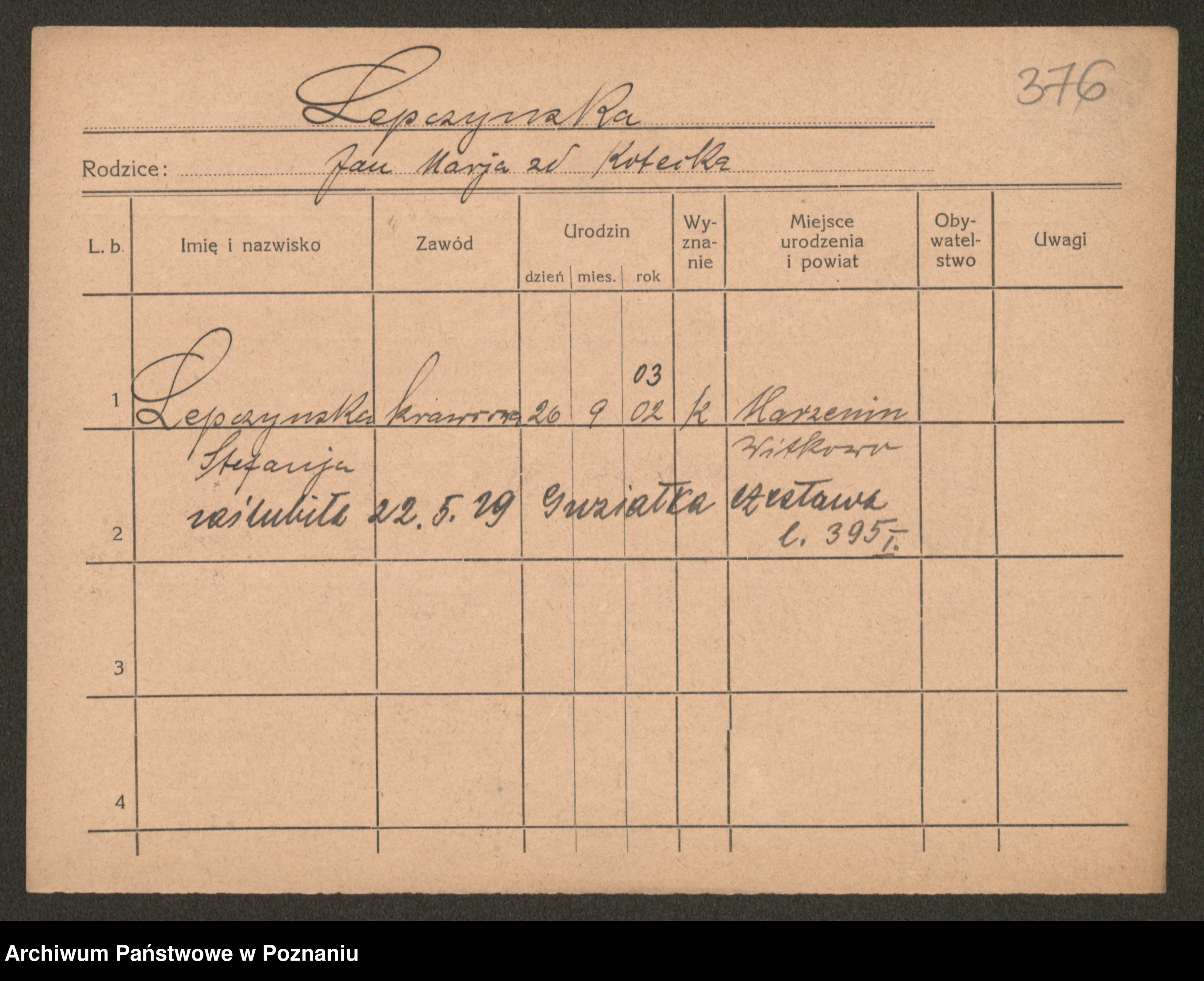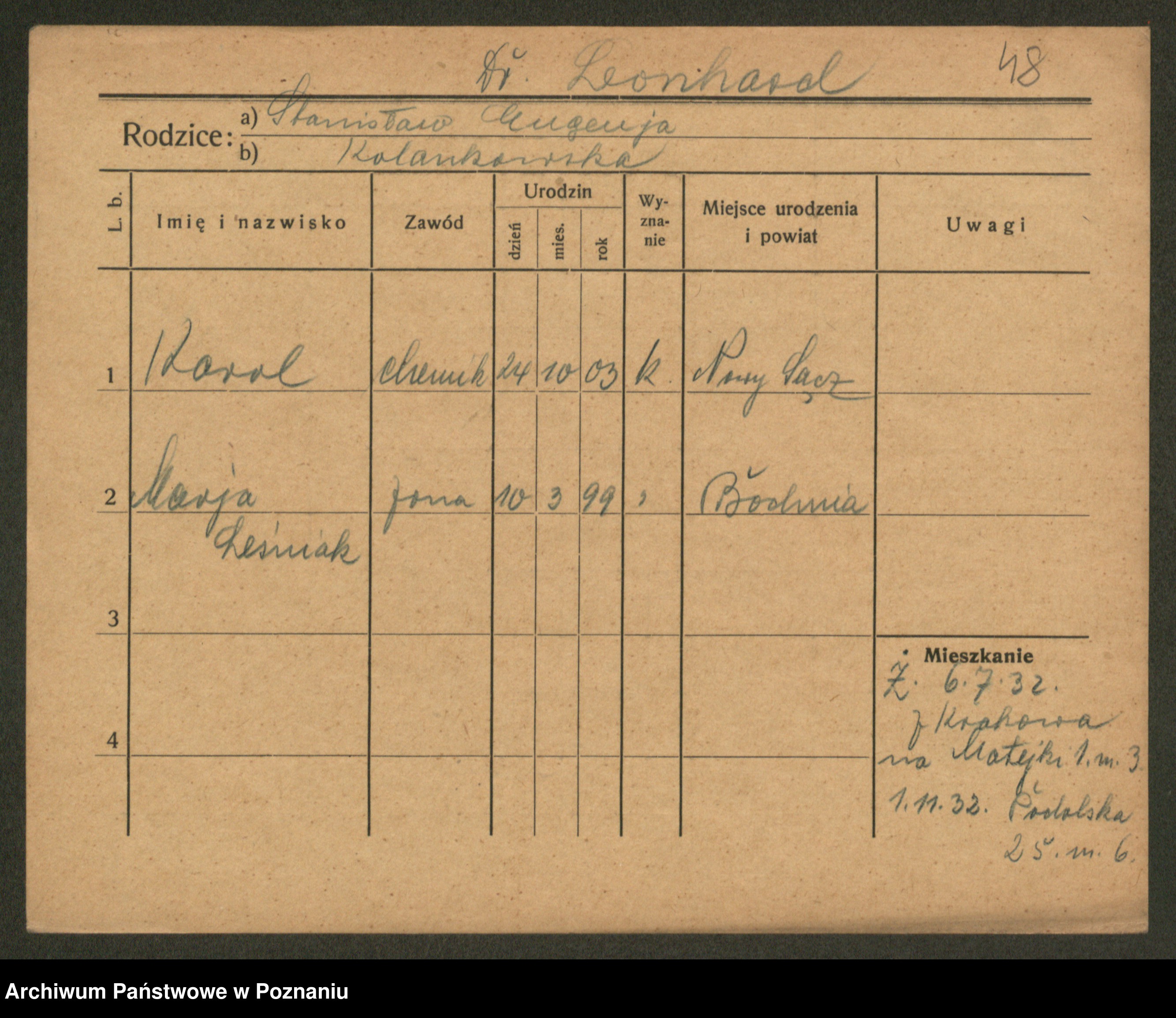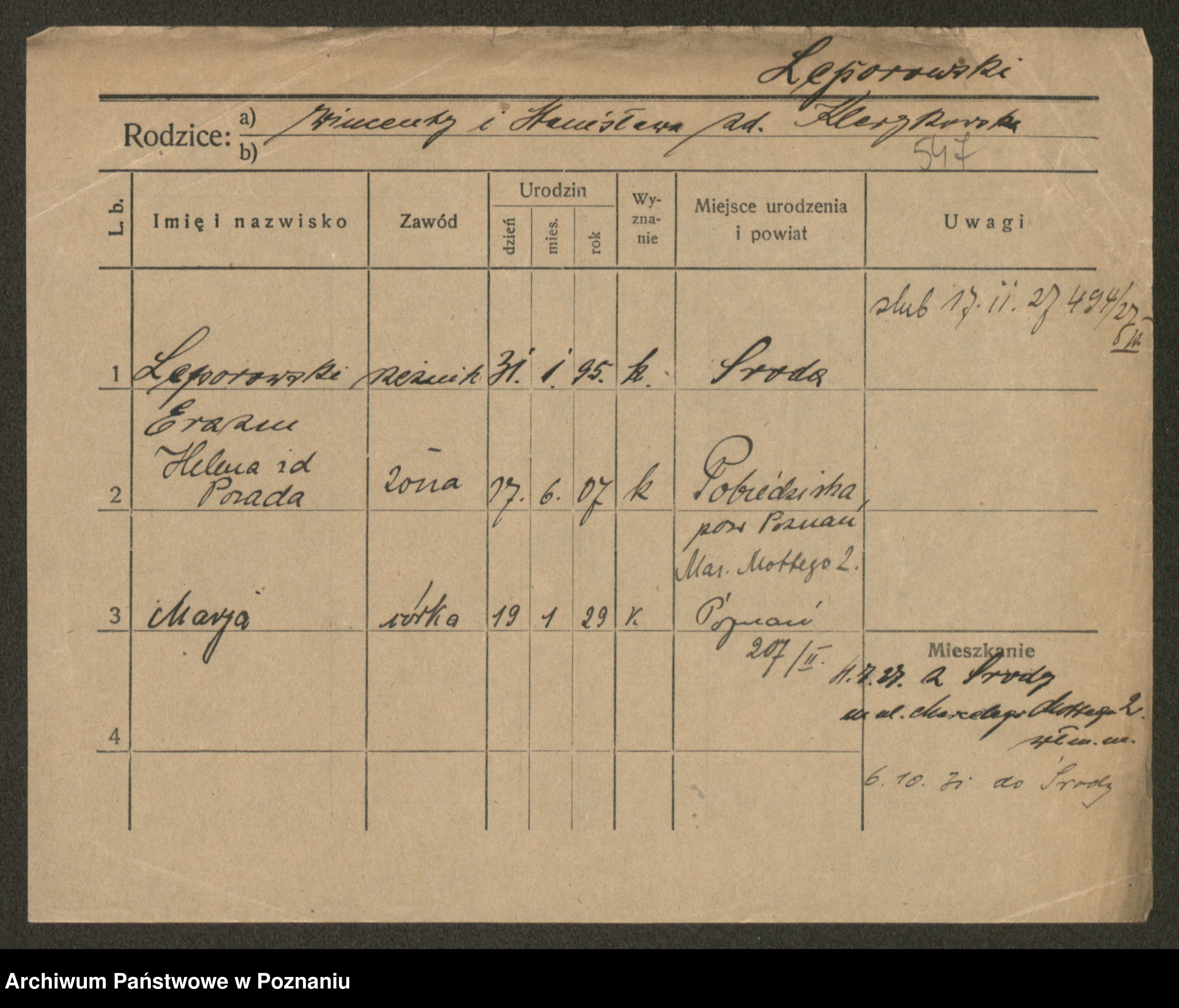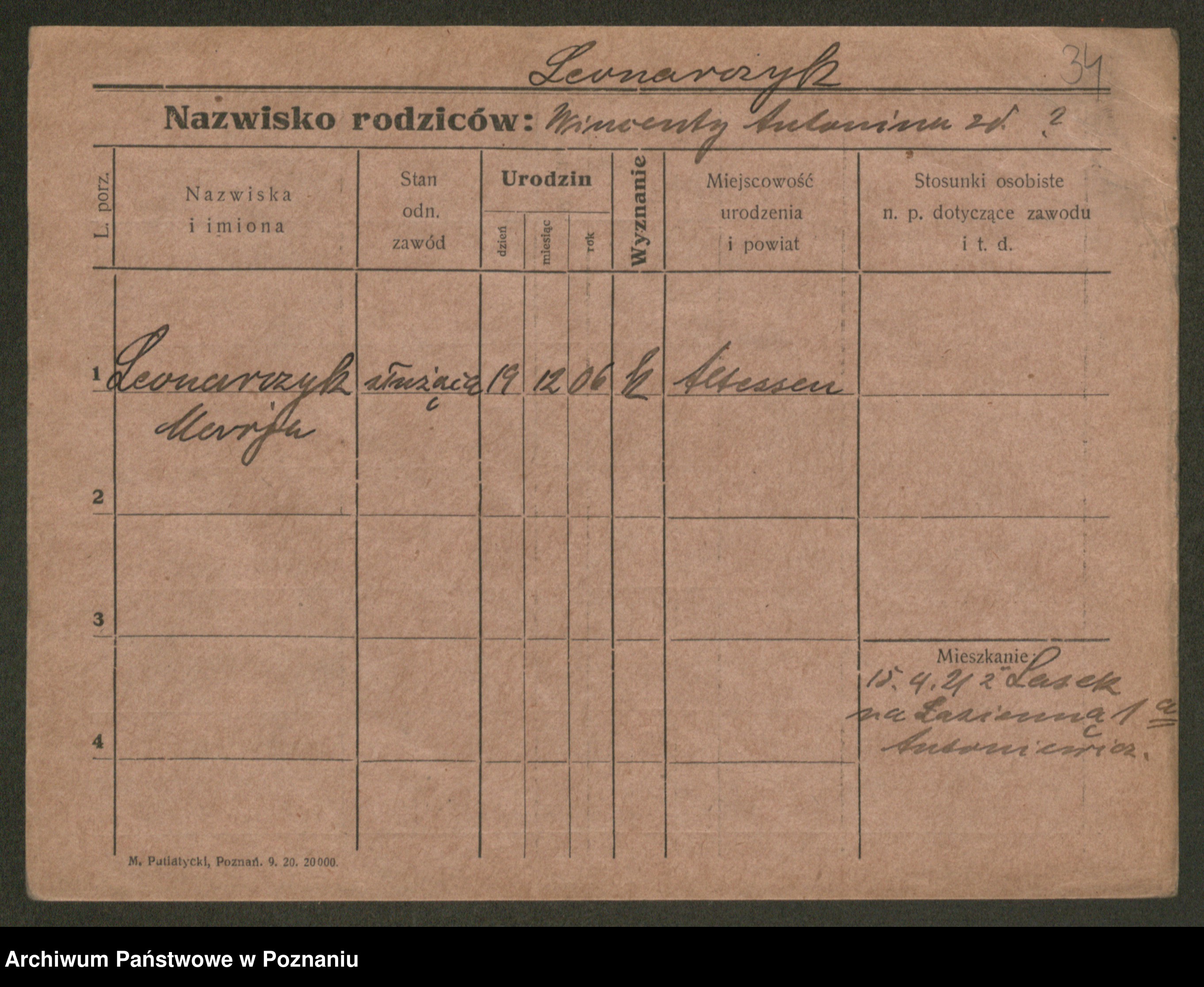 Leonarczyk z.d. Pawlak I voto Kubiak, Marie