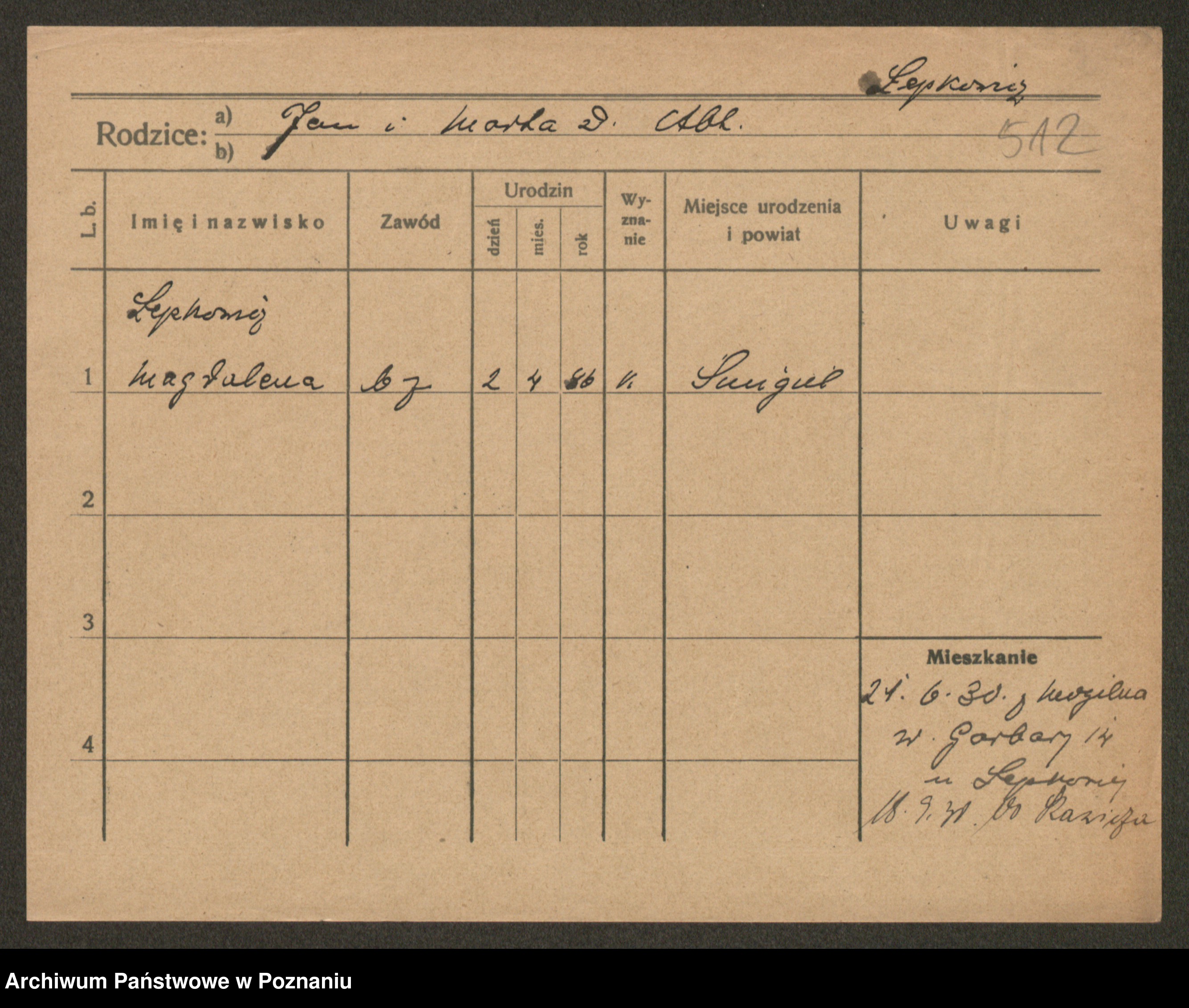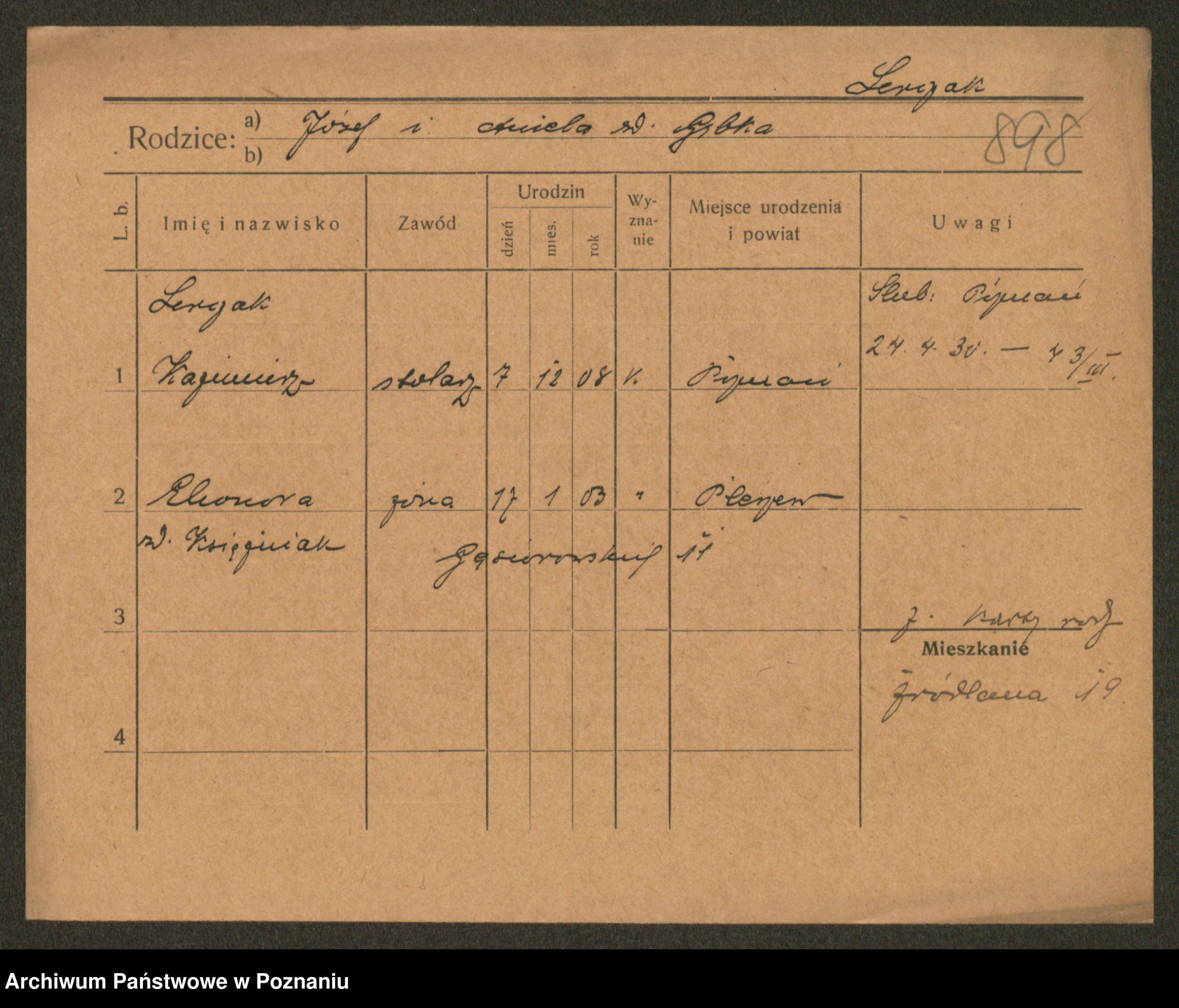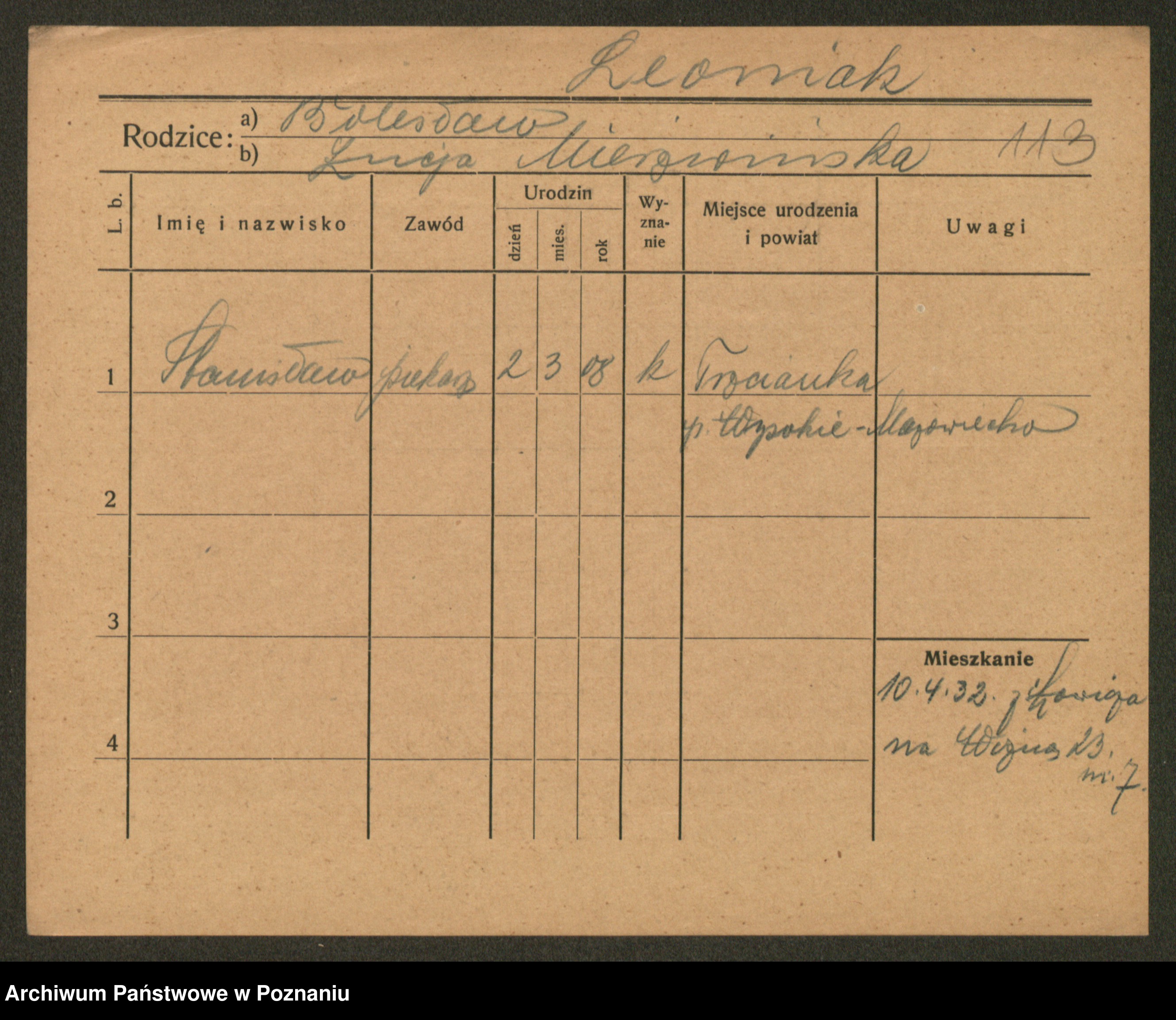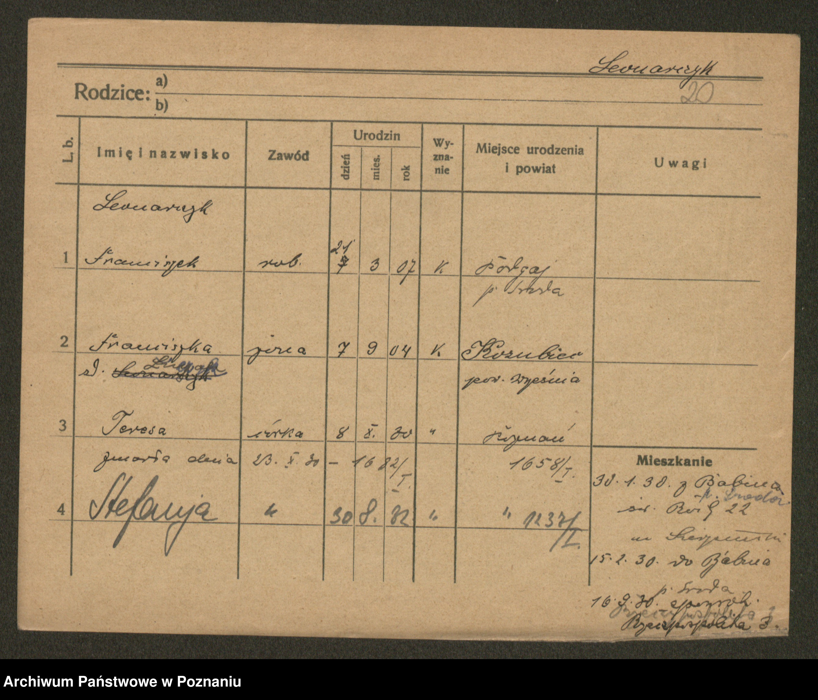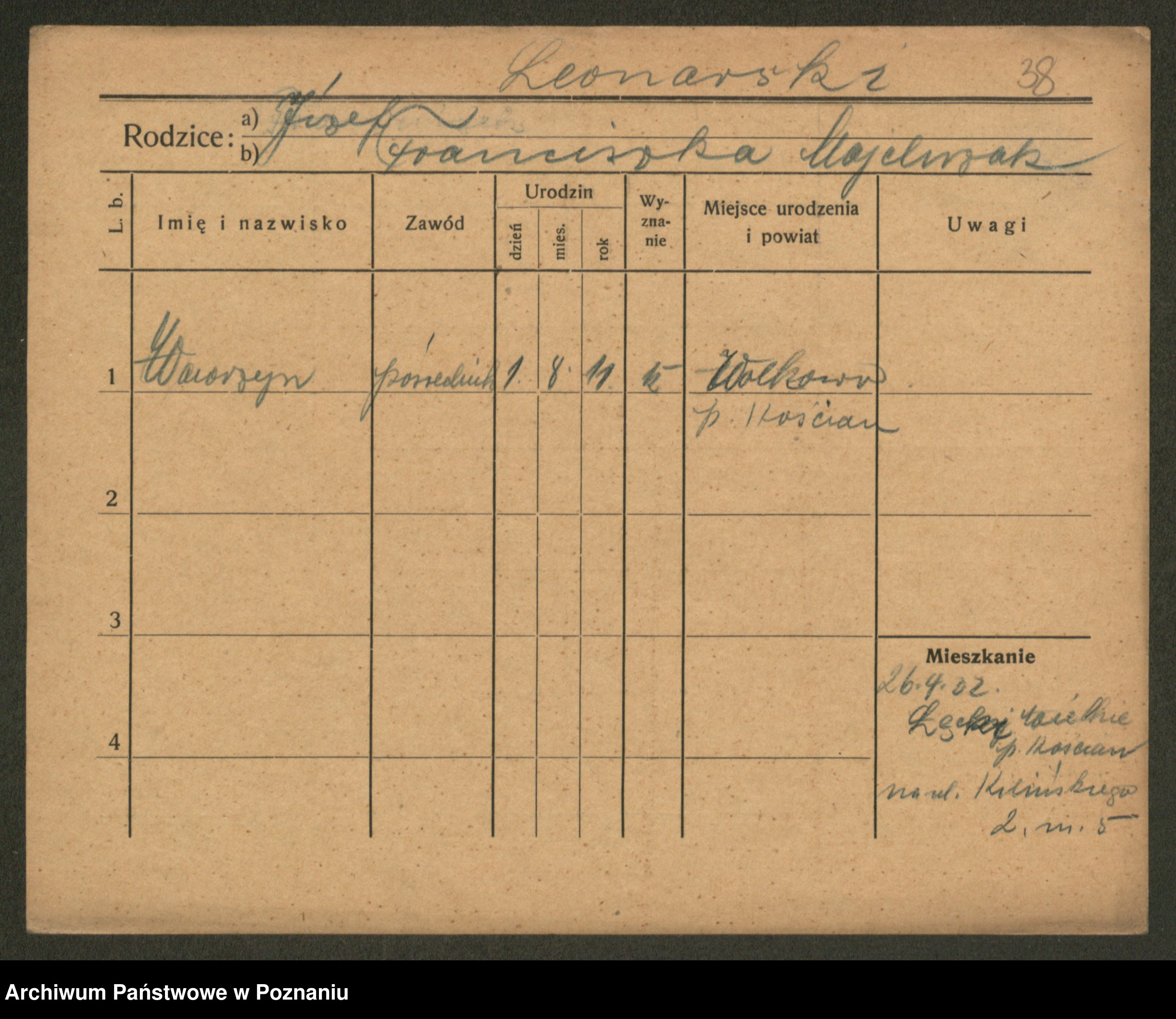 Leonarczyk z.d. Pawlak I voto Kubiak, Marie