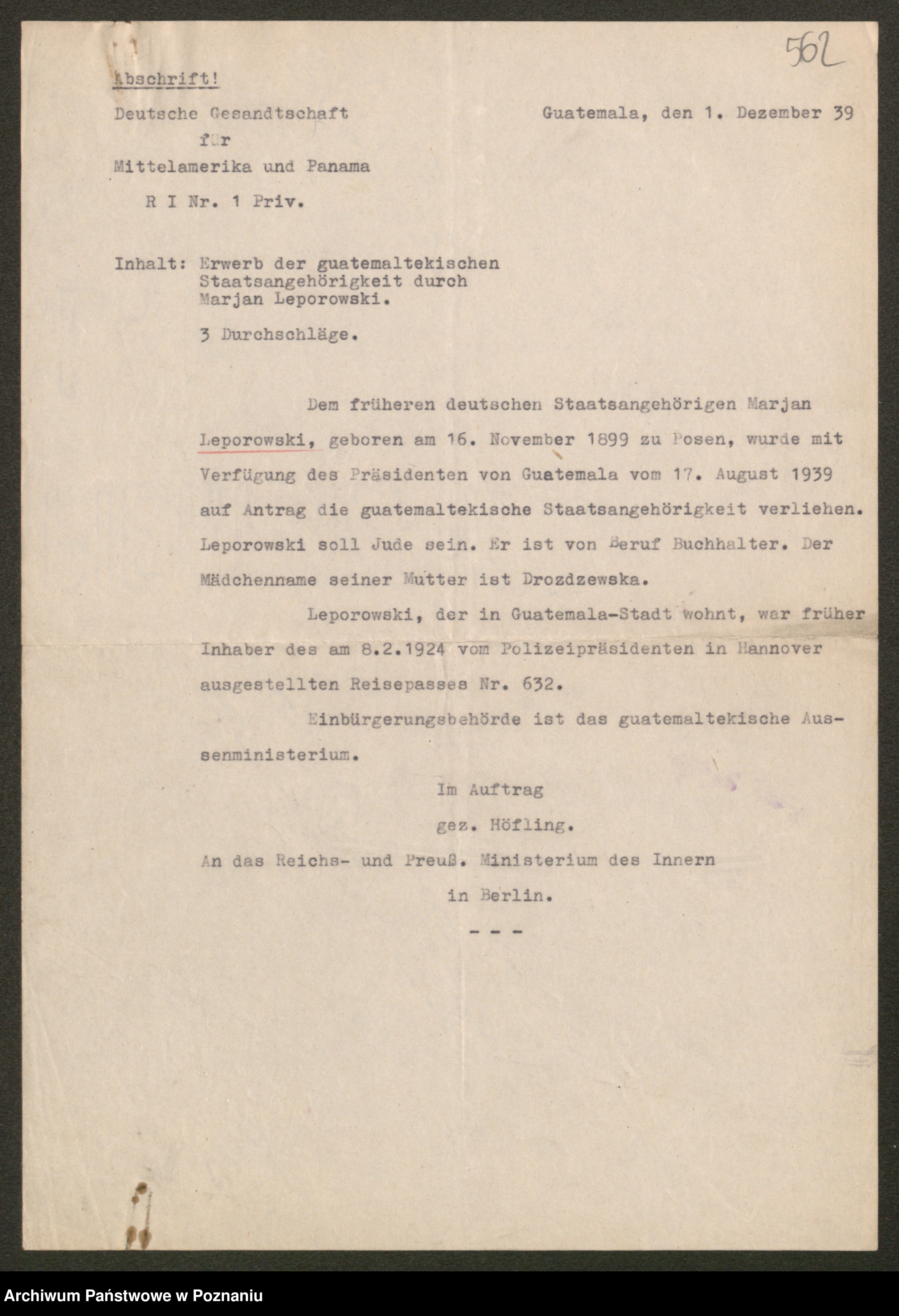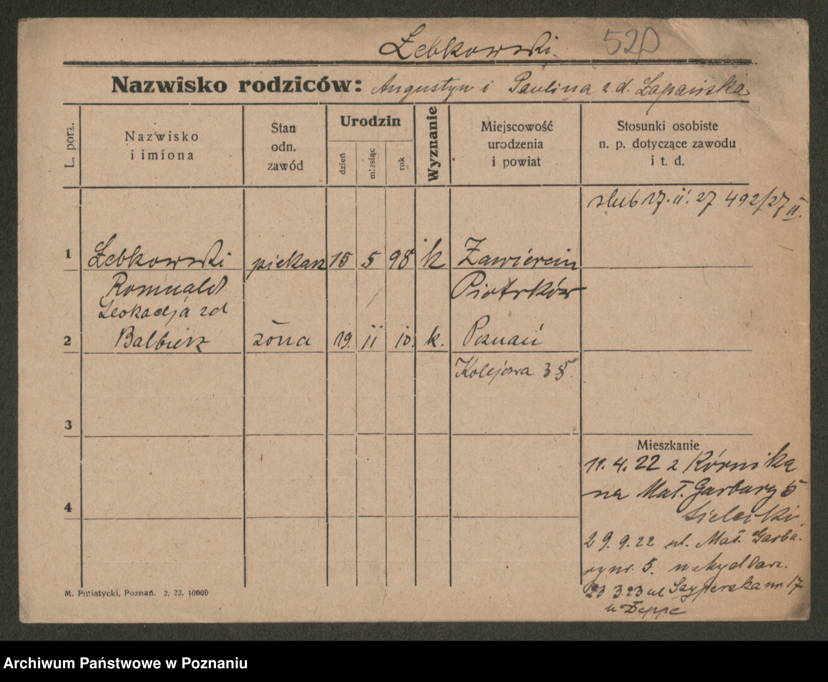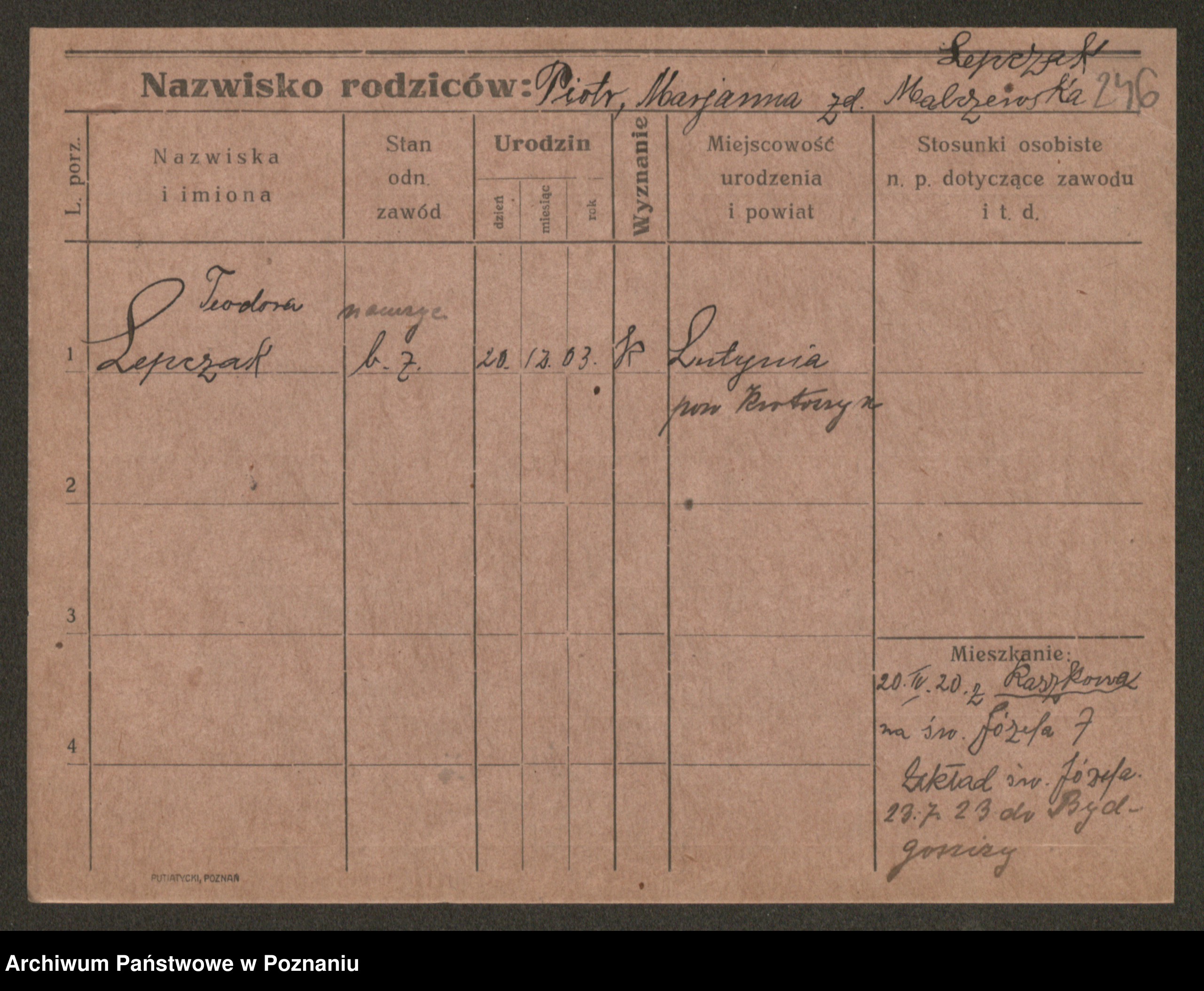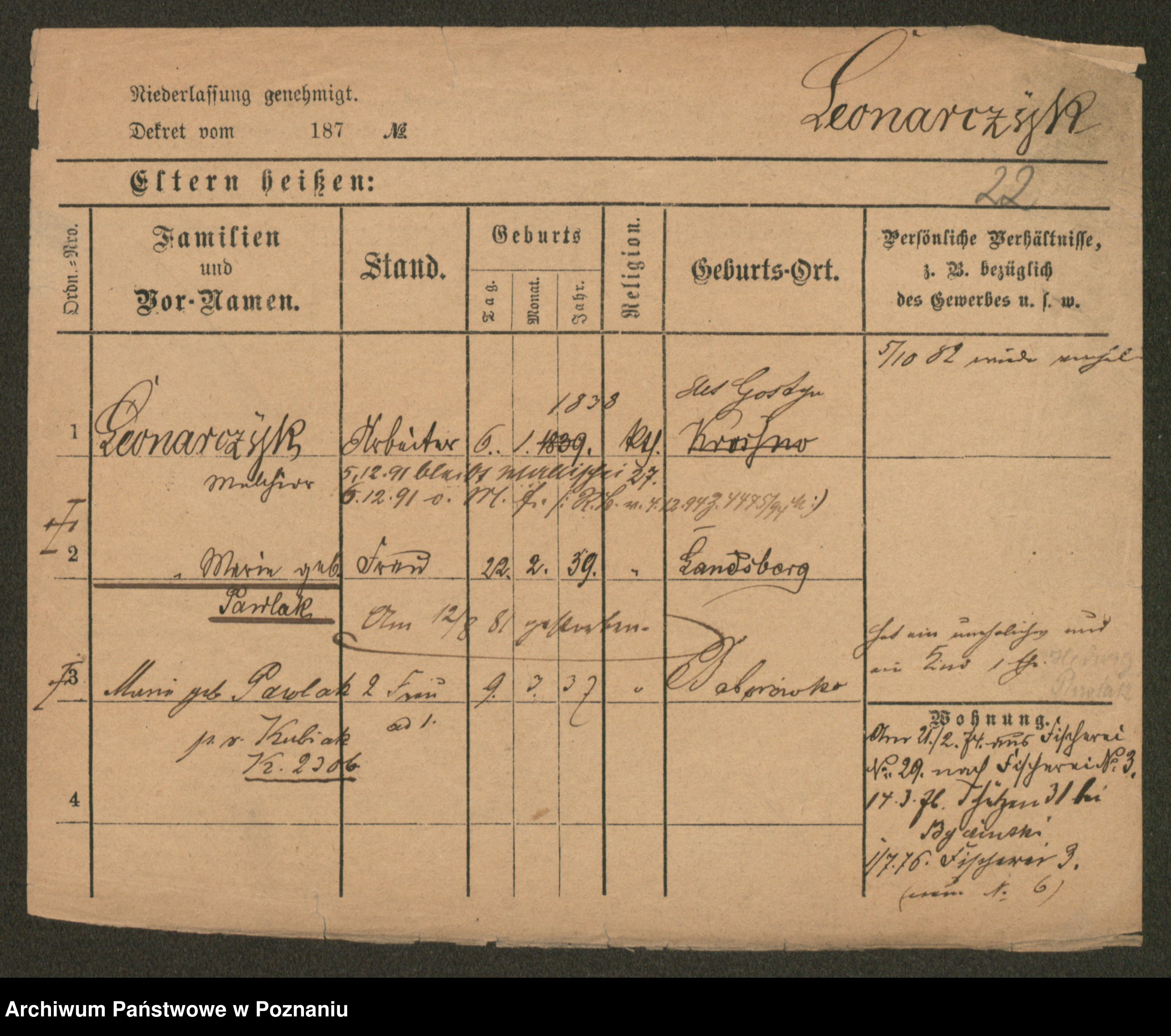 Leonarczyk z.d. Pawlak I voto Kubiak, Marie