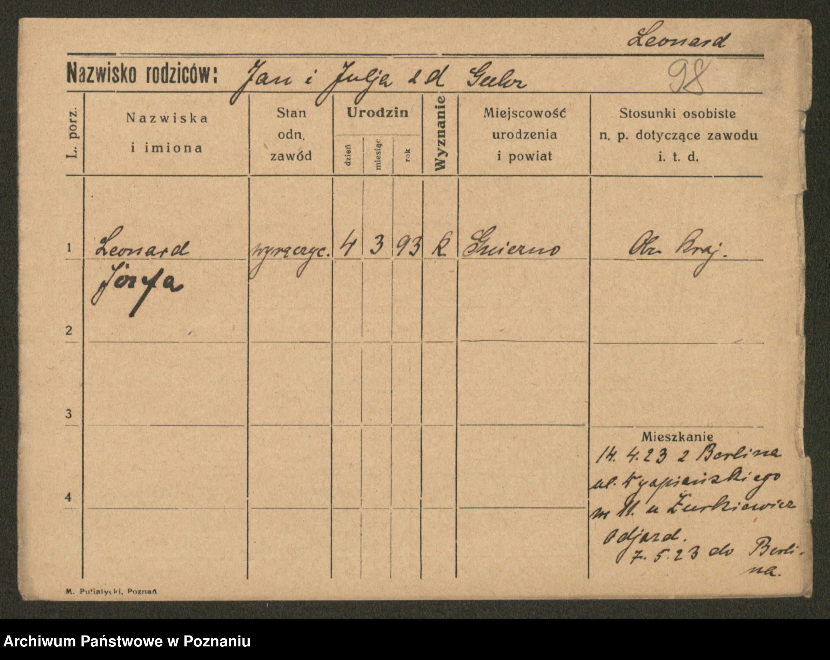 Leonhard, Karol Jan