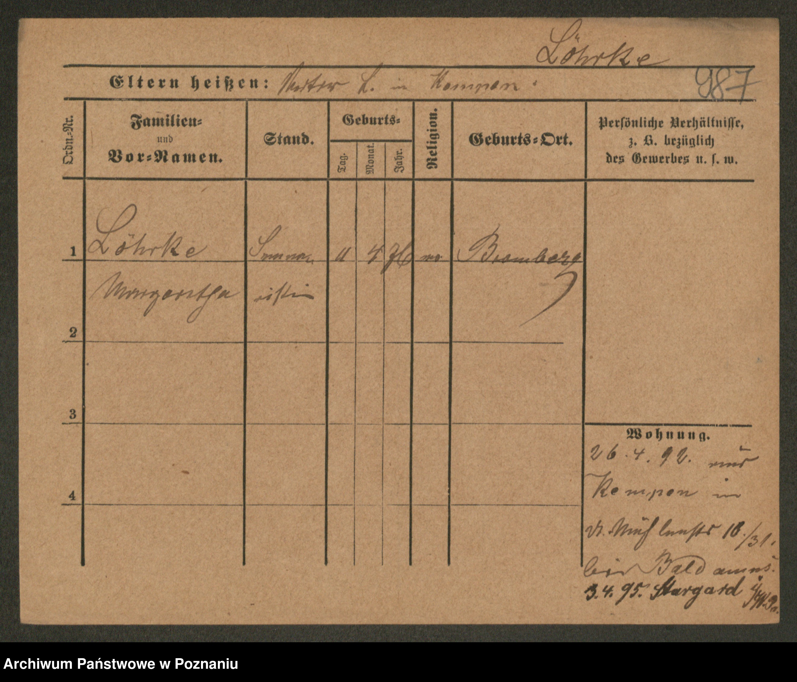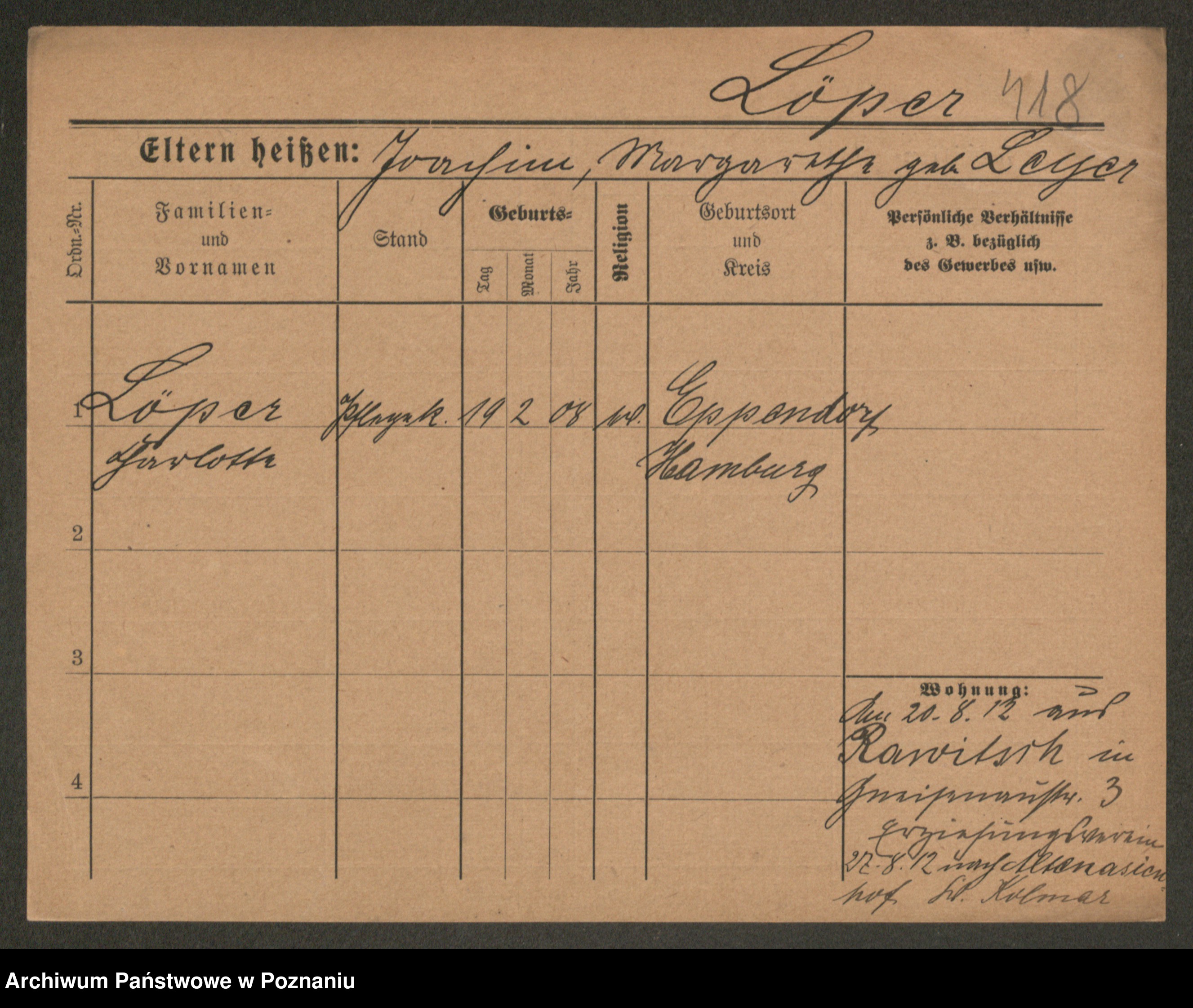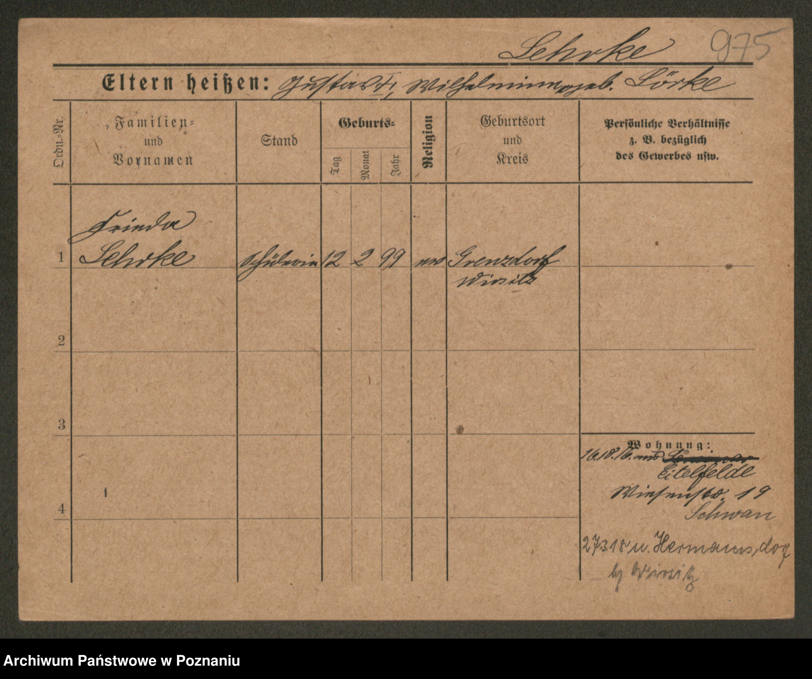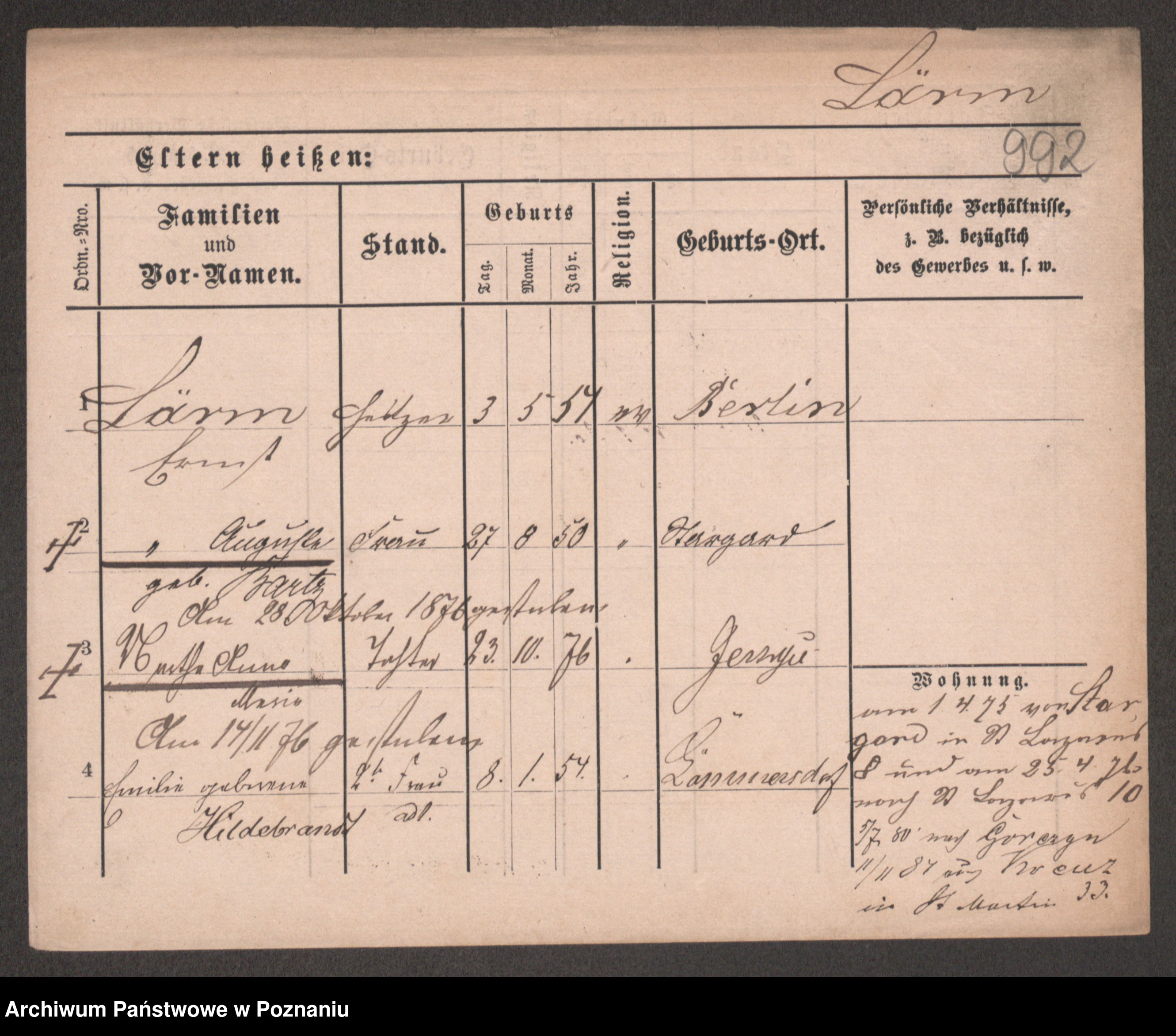 Lärm z.d. Bartz, Auguste