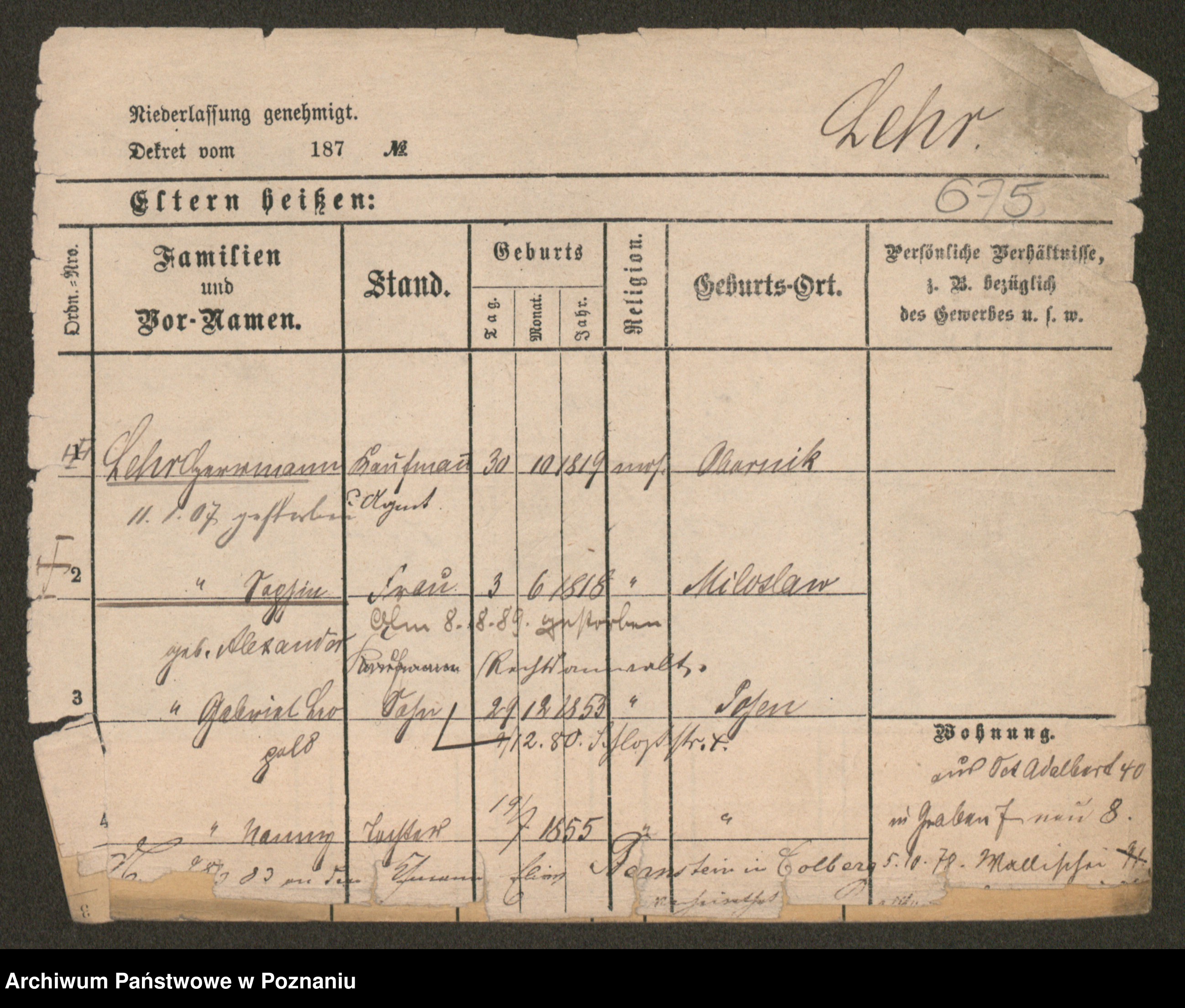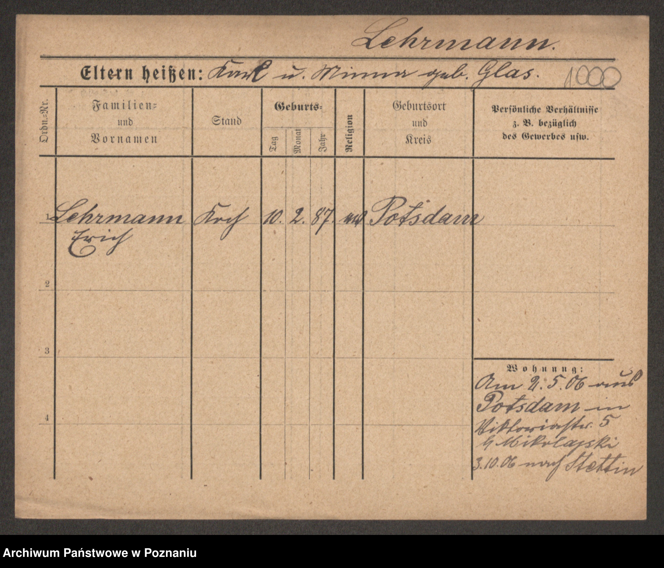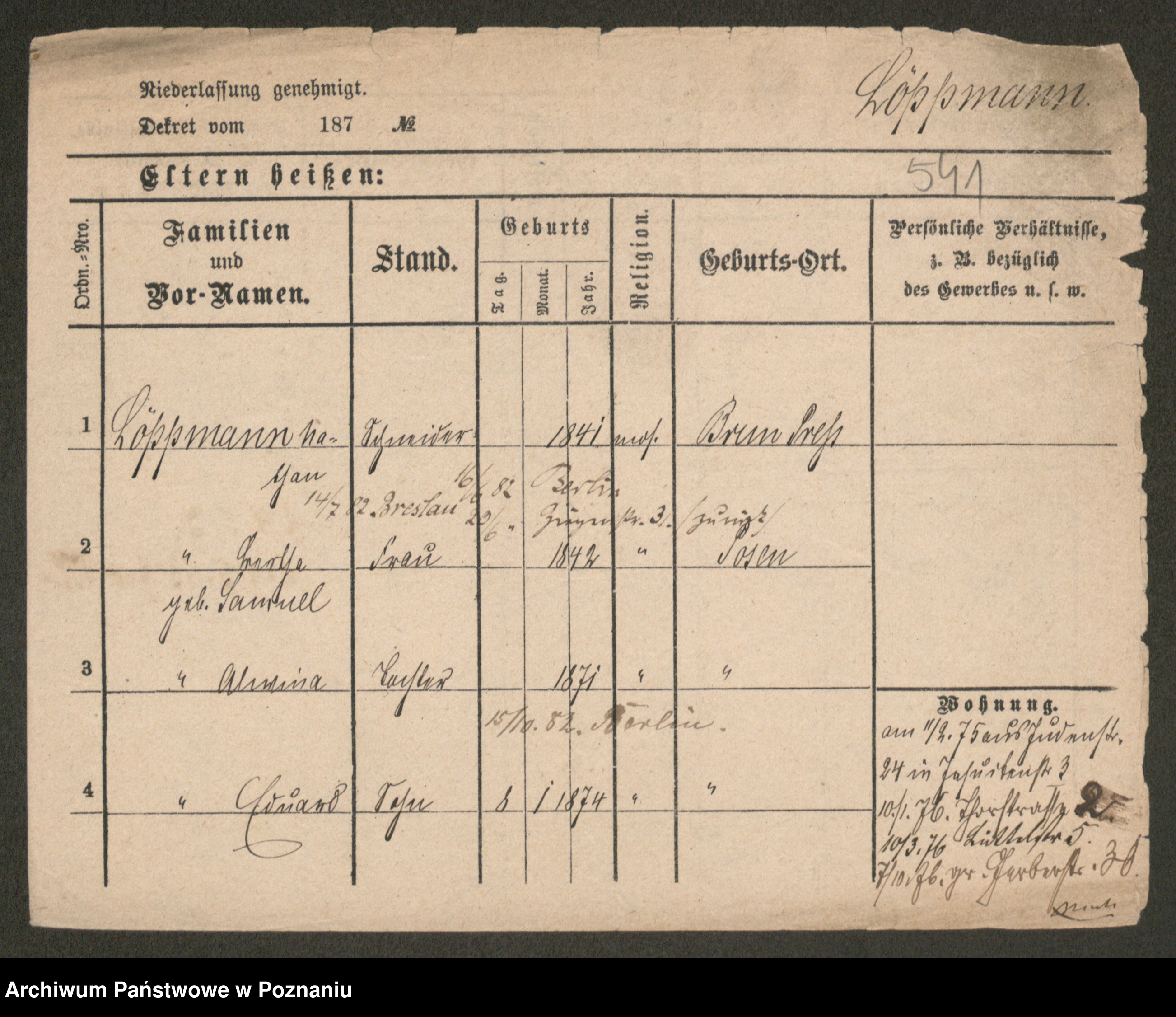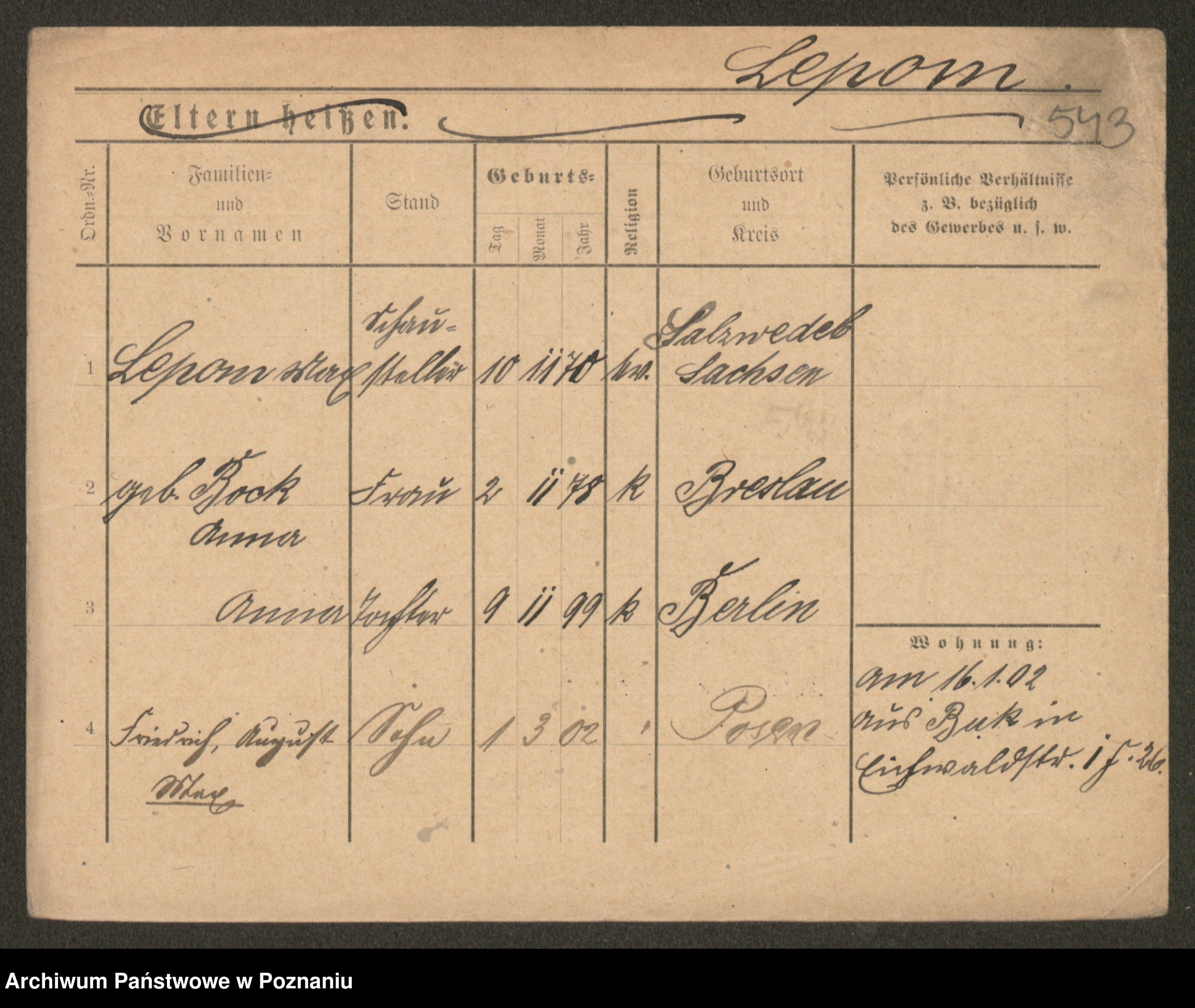 Lärm z.d. Bartz, Auguste