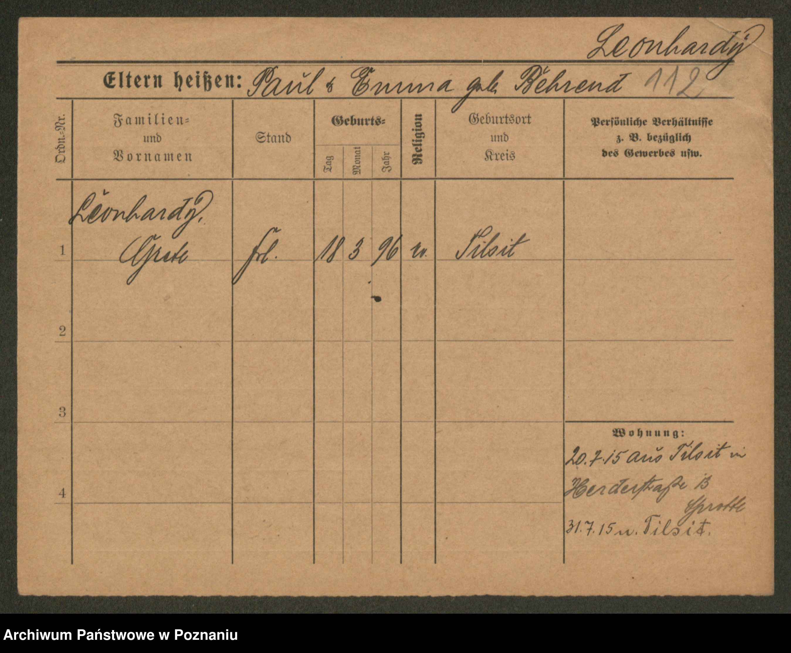 Leonhardt z.d. Fittig, Auguste
