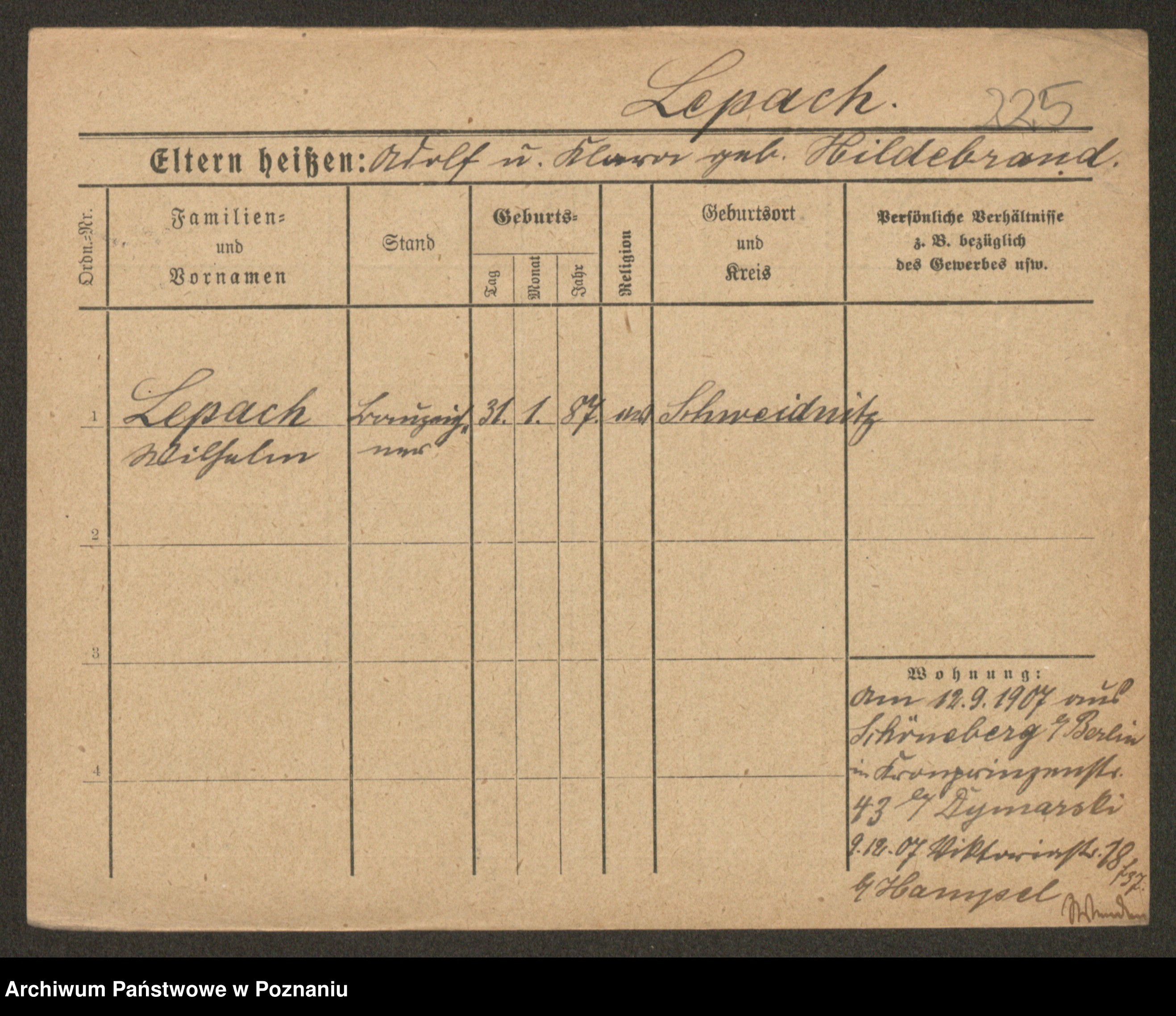 Lärm z.d. Hildebrandt, Emilie