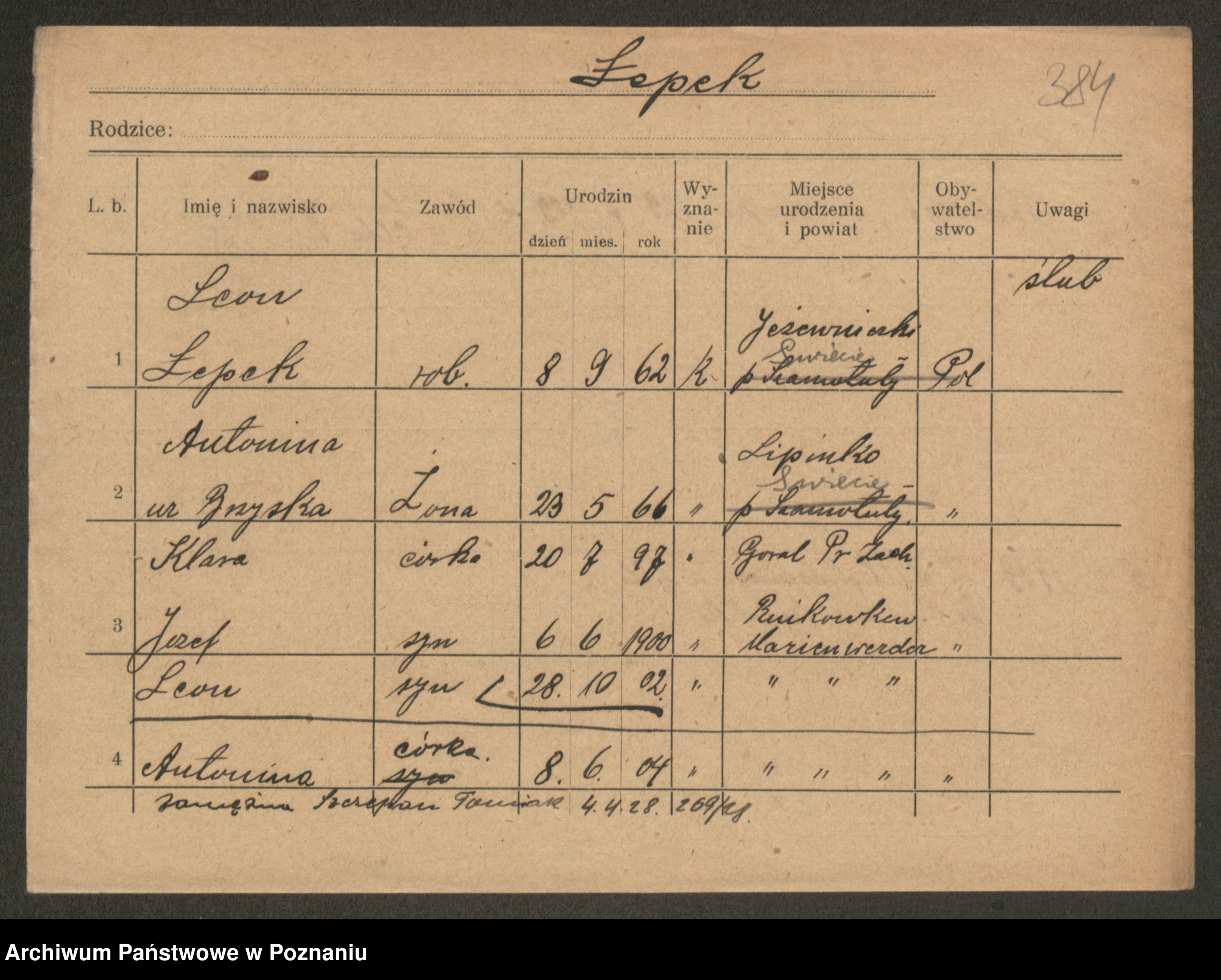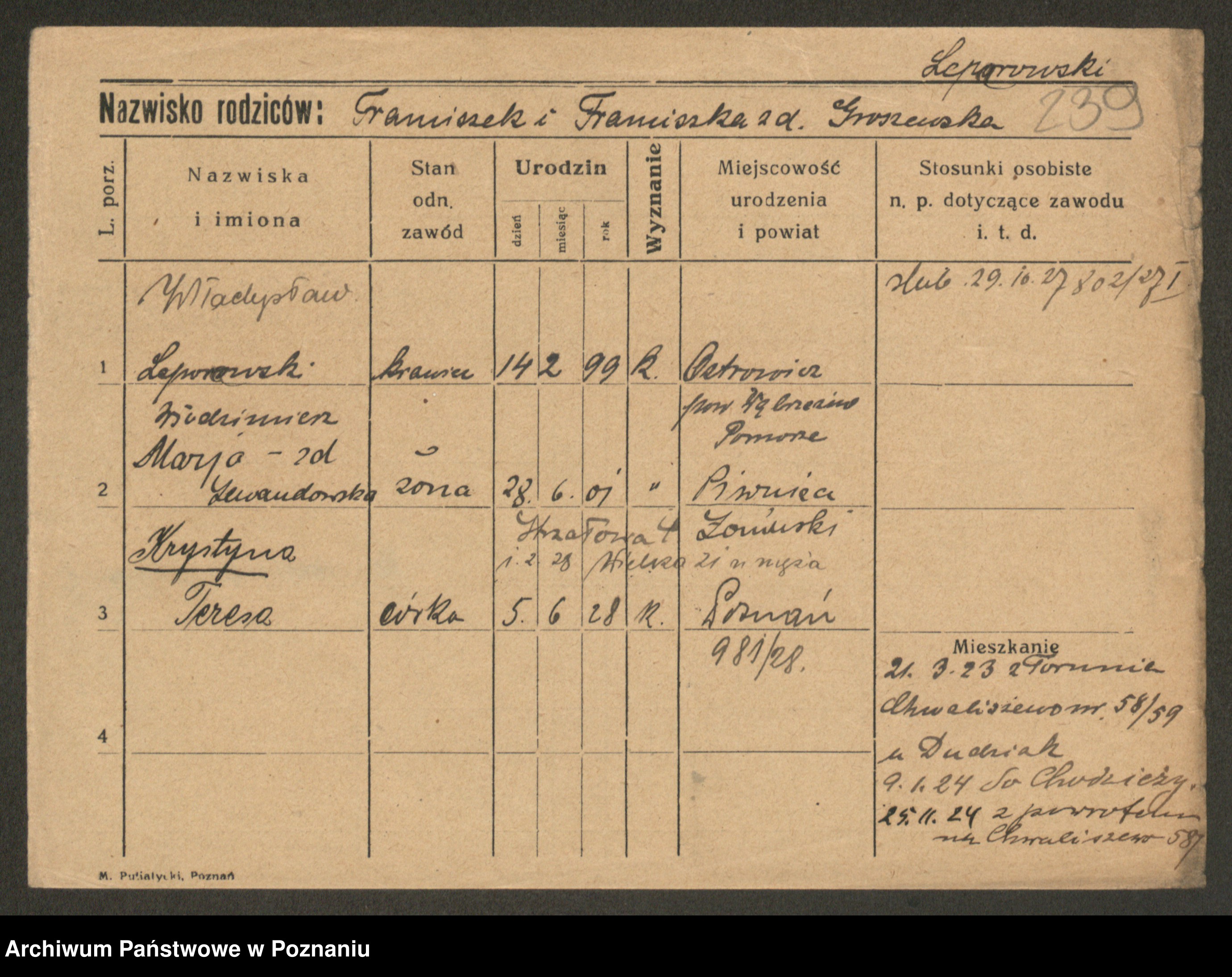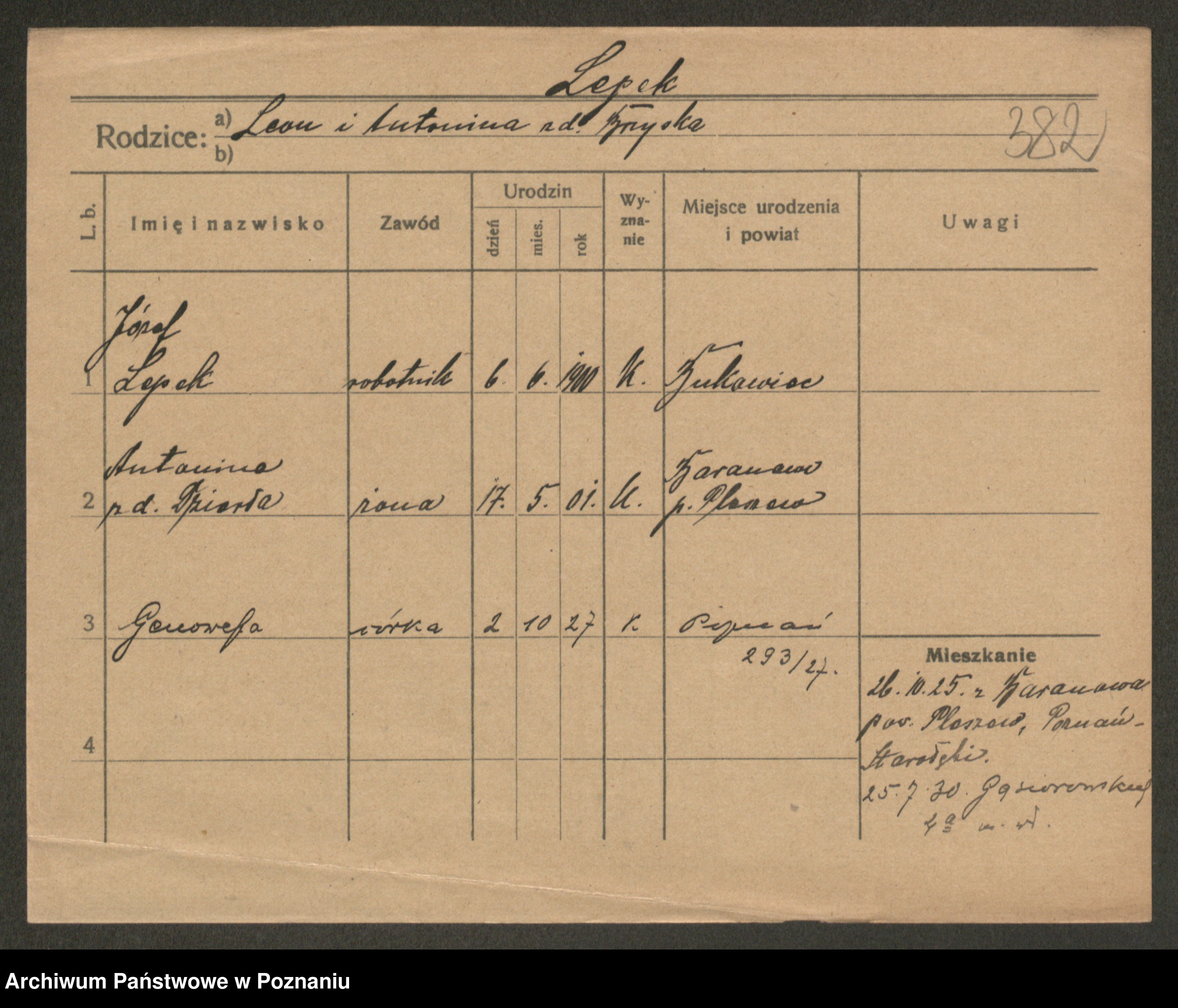 Lernacinski z.d. Szewczyk, Leokadja