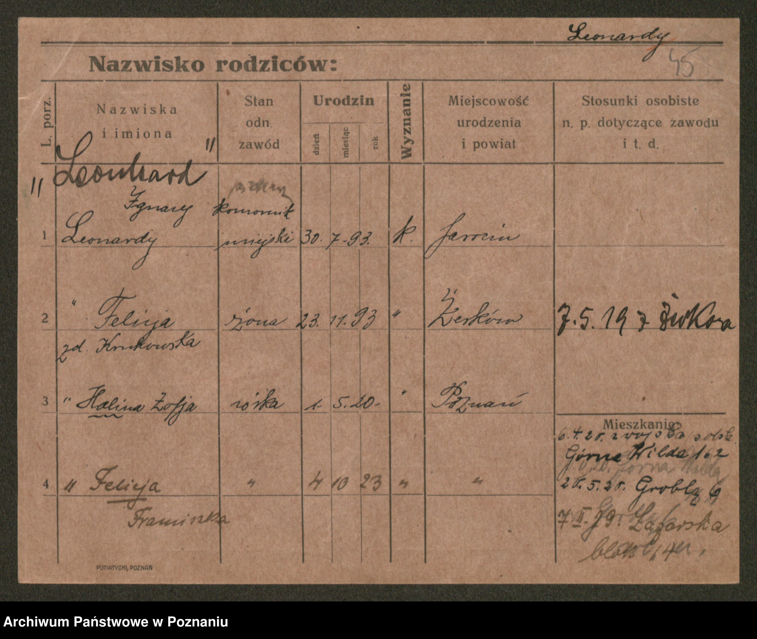 Leonardy, Felicja Franciszka