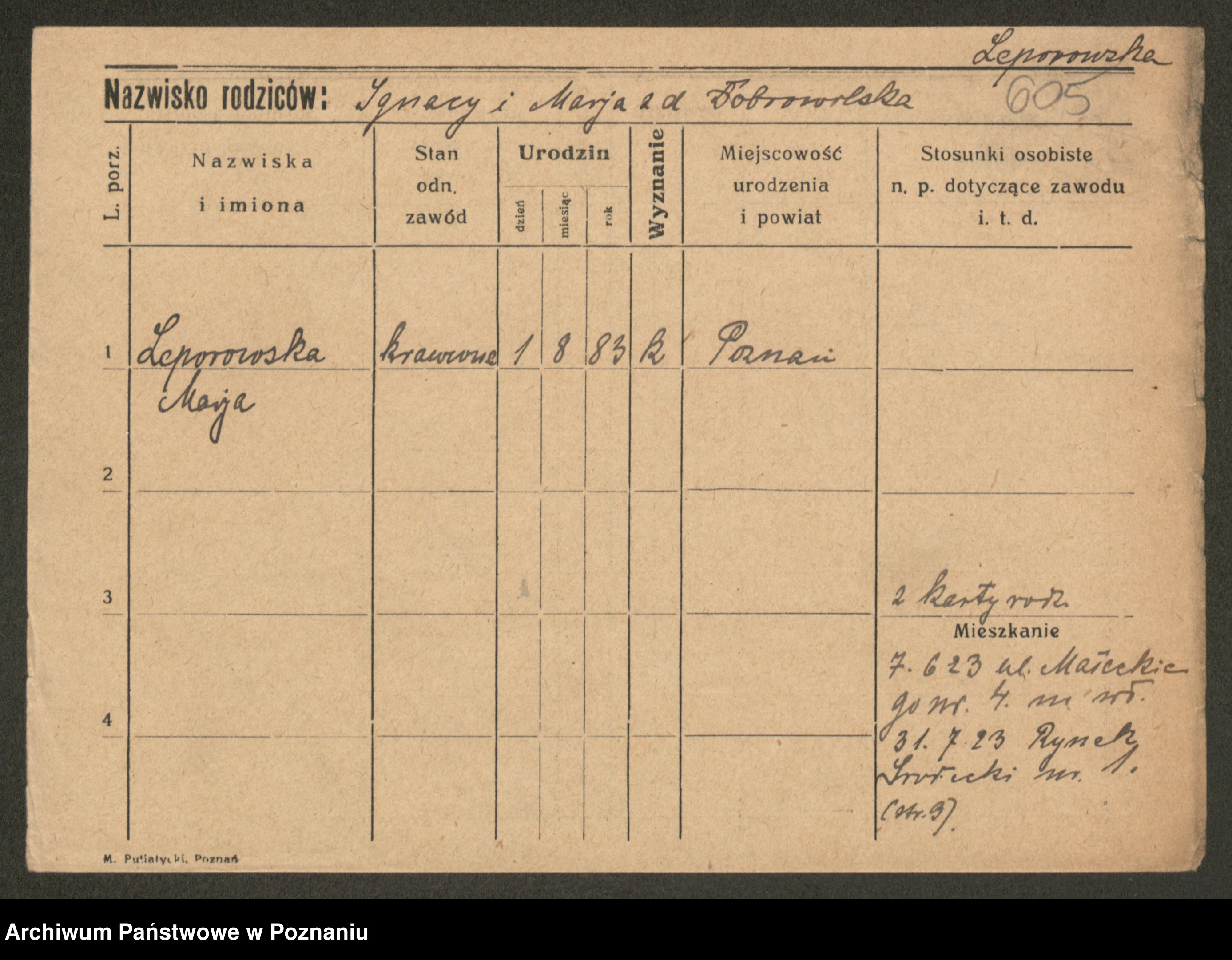 Leonhard z.d. Leśniak, Marja