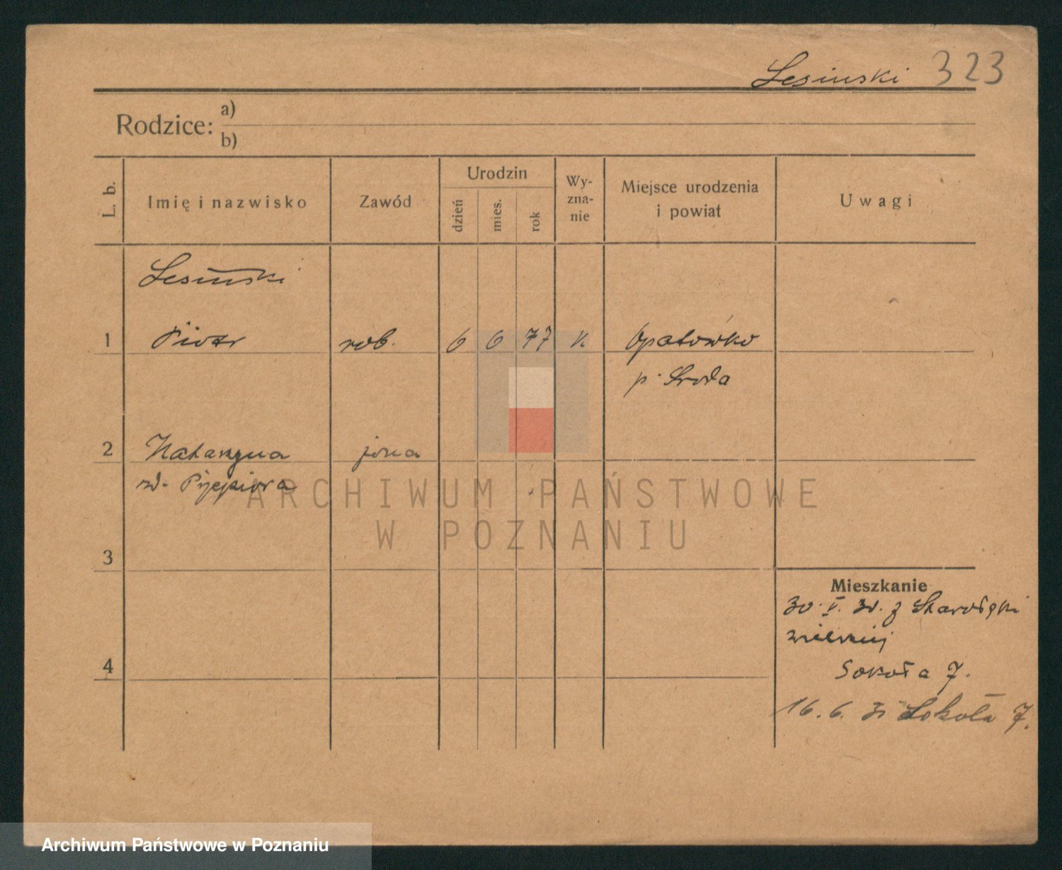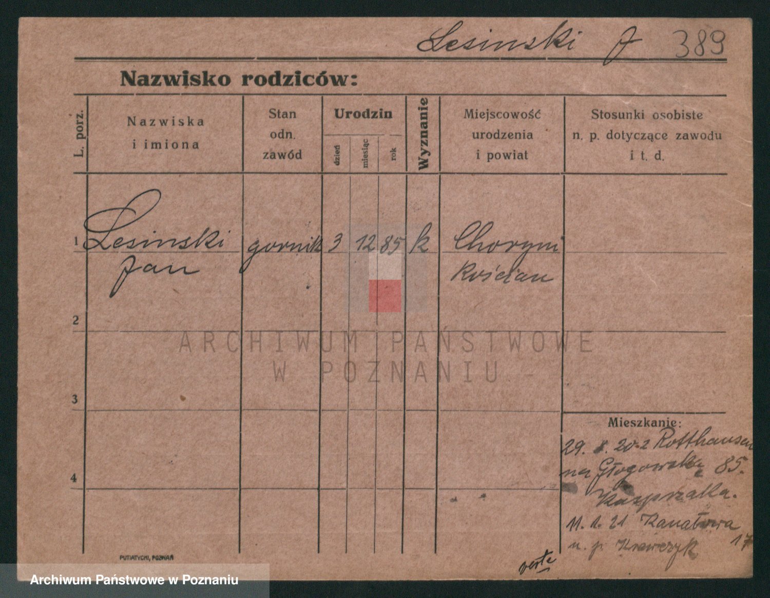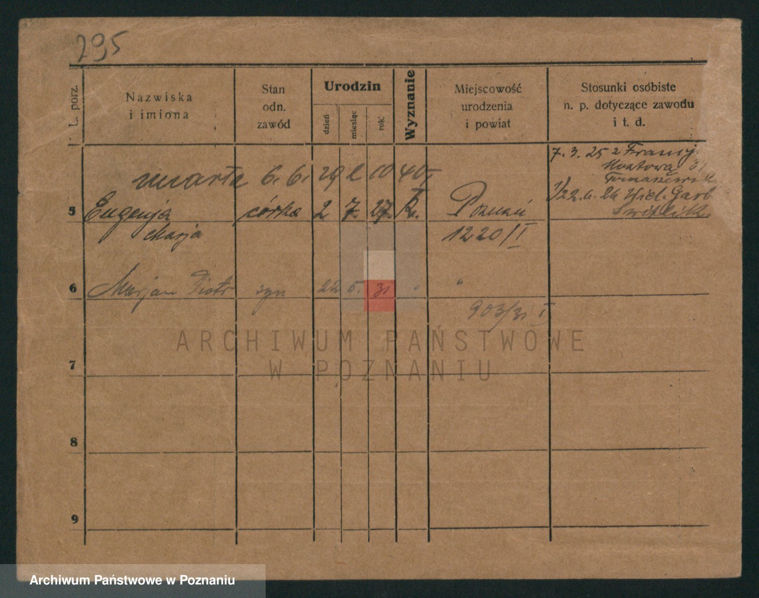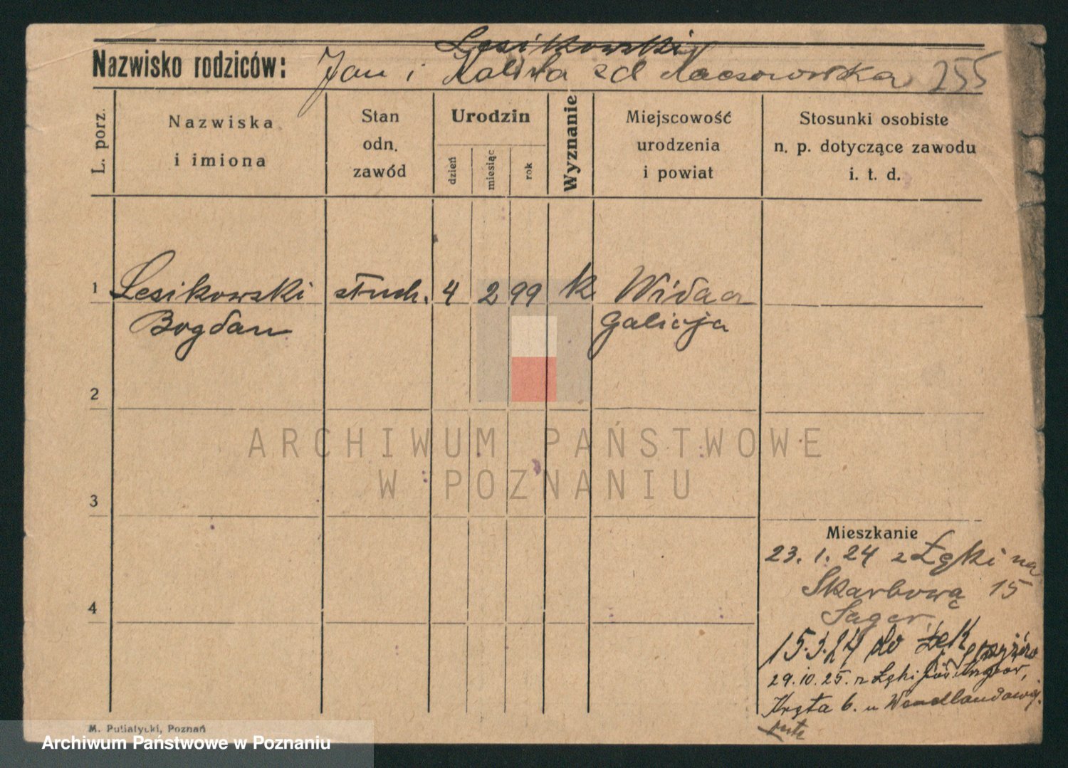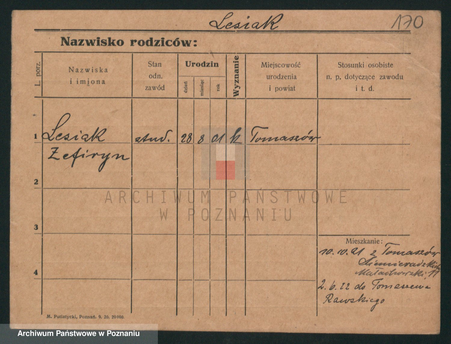 Podgląd karty osobowej dostępny jest po kliknięciu na nazwisko lub ikonkę karty. Można dokonywać powiększenia (ikony na górze) lub przechodzić między kolejnymi skanami (strzałki po bokach).