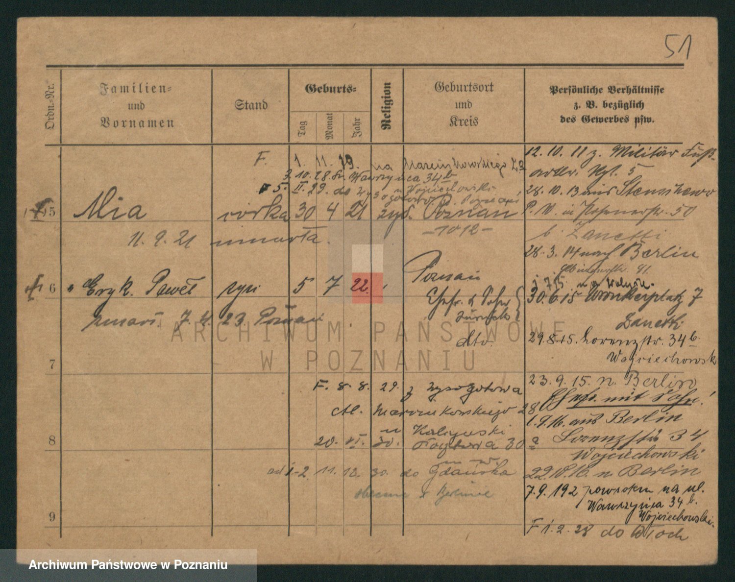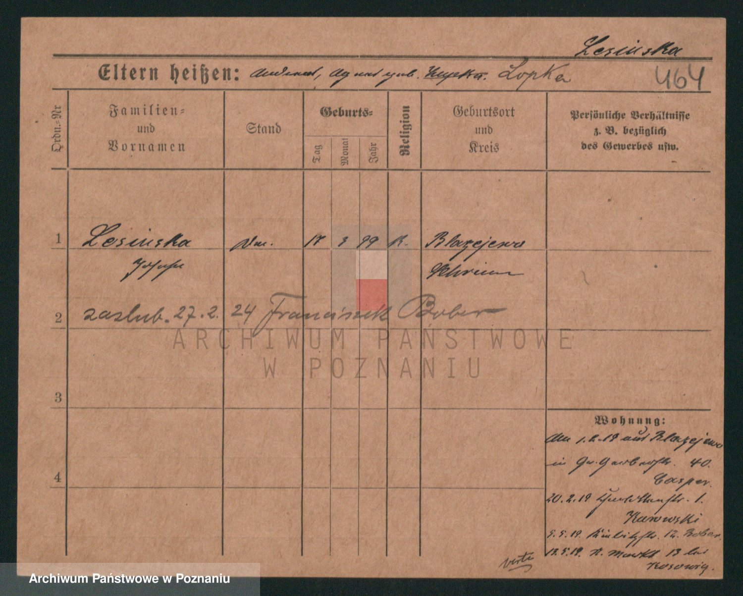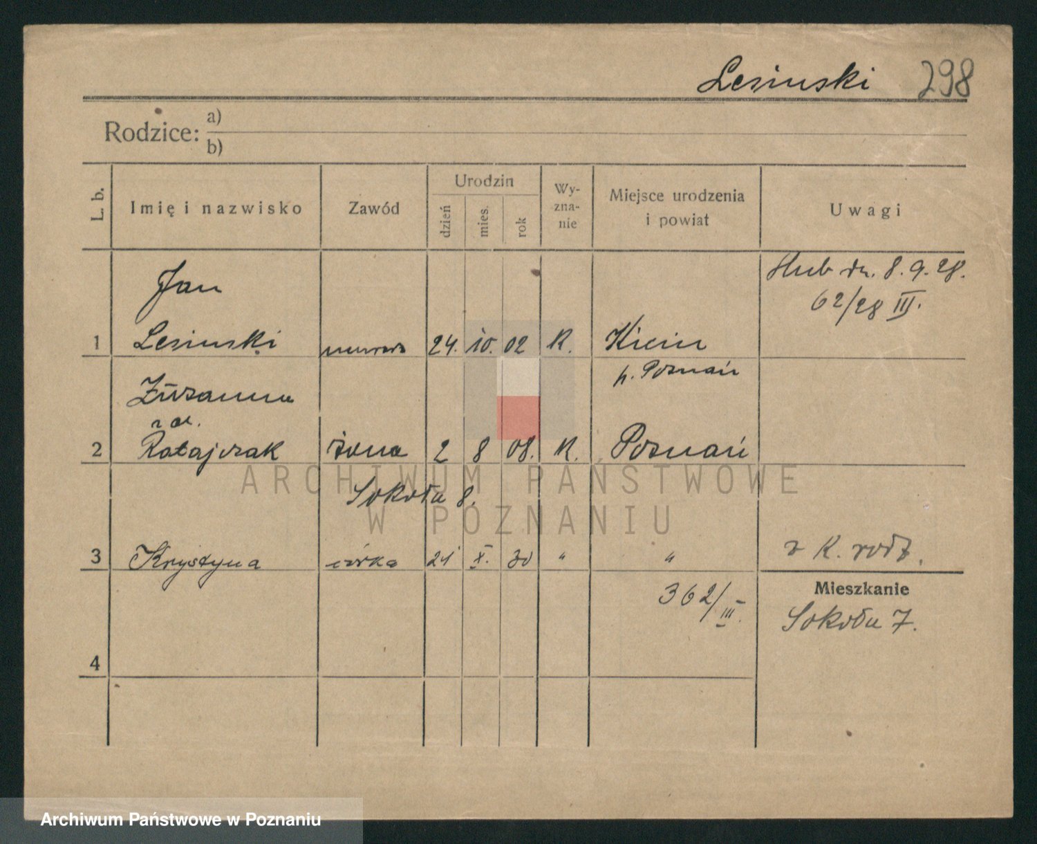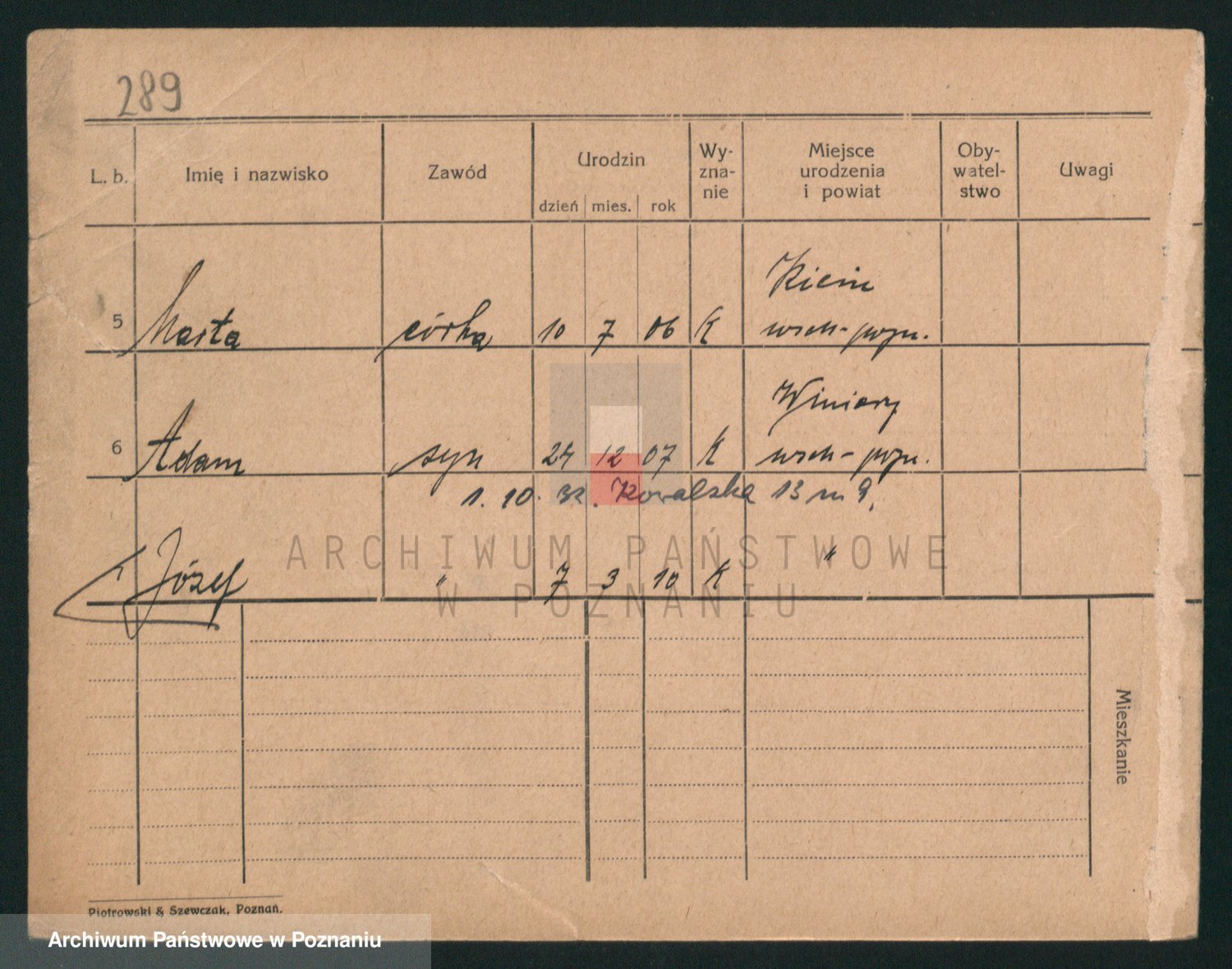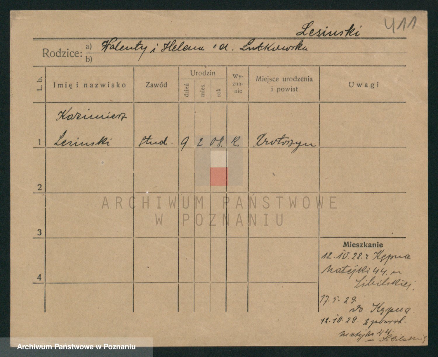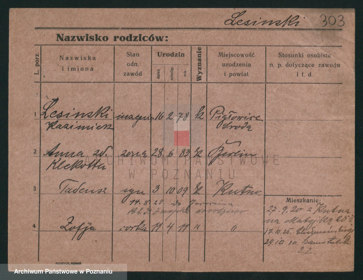 Podgląd karty osobowej dostępny jest po kliknięciu na nazwisko lub ikonkę karty. Można dokonywać powiększenia (ikony na górze) lub przechodzić między kolejnymi skanami (strzałki po bokach).