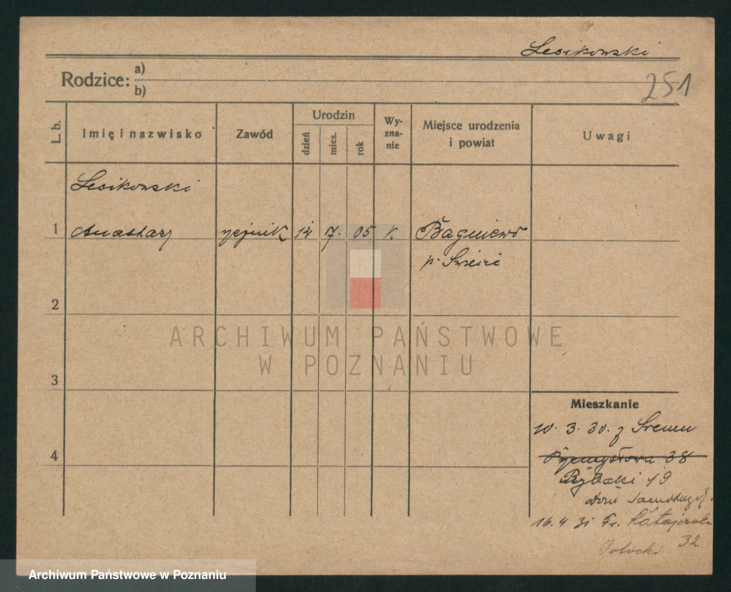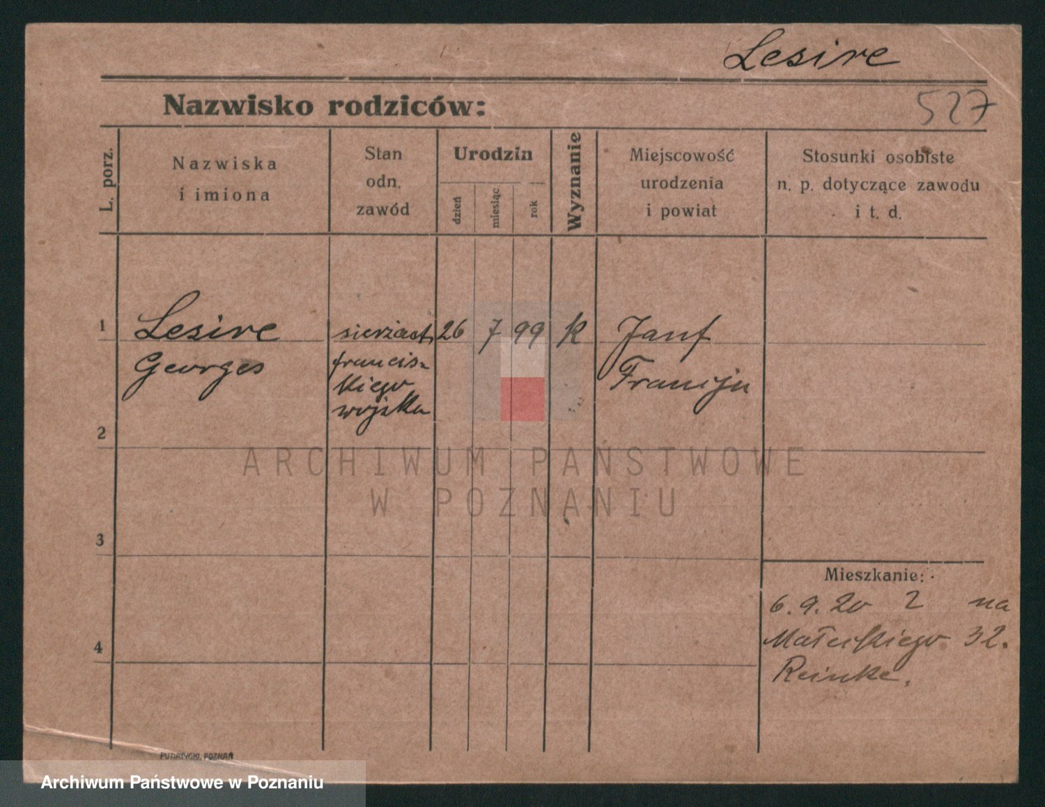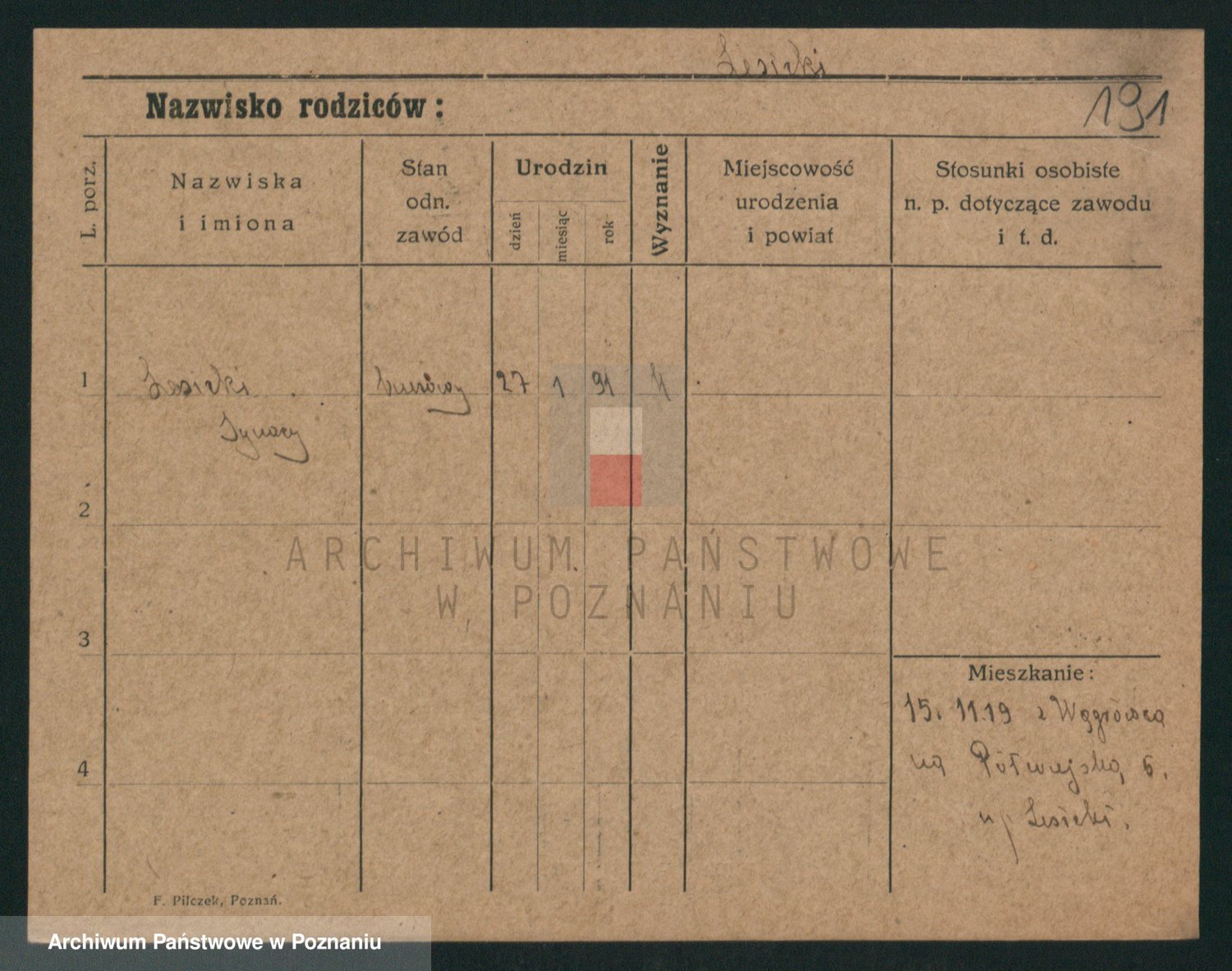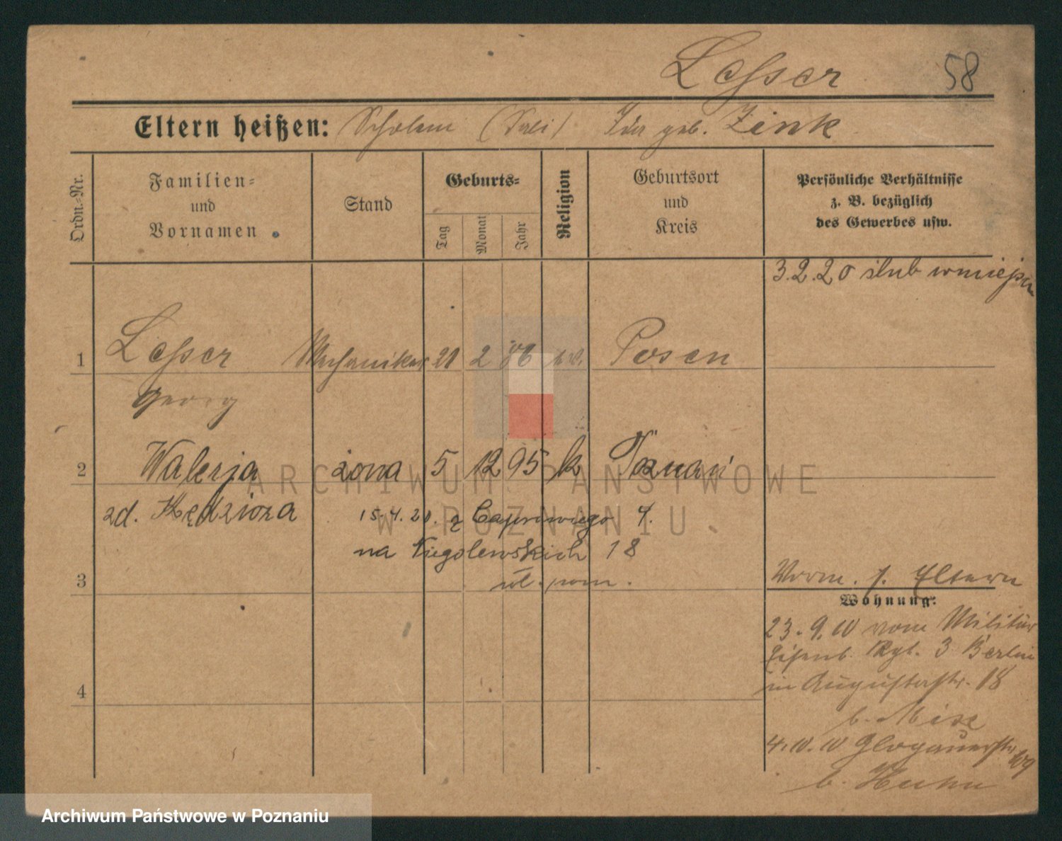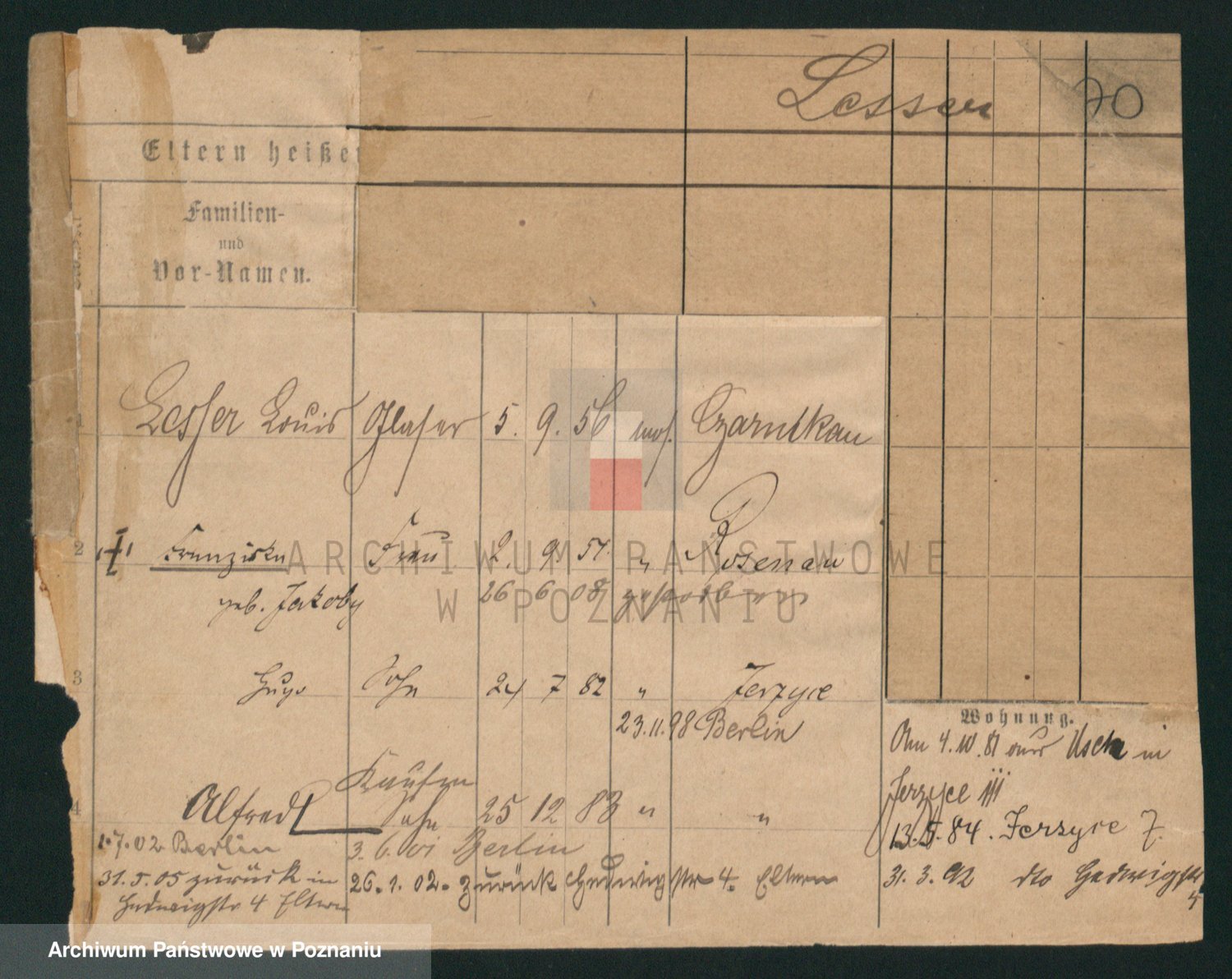 Podgląd karty osobowej dostępny jest po kliknięciu na nazwisko lub ikonkę karty. Można dokonywać powiększenia (ikony na górze) lub przechodzić między kolejnymi skanami (strzałki po bokach).