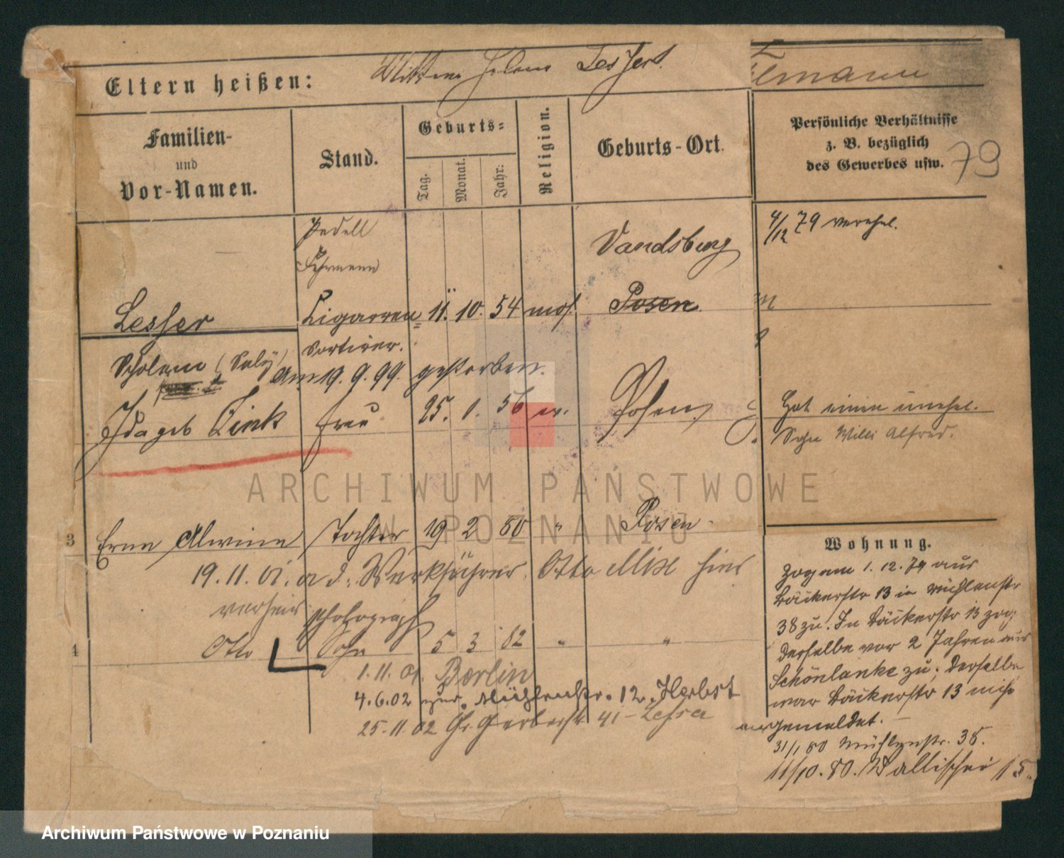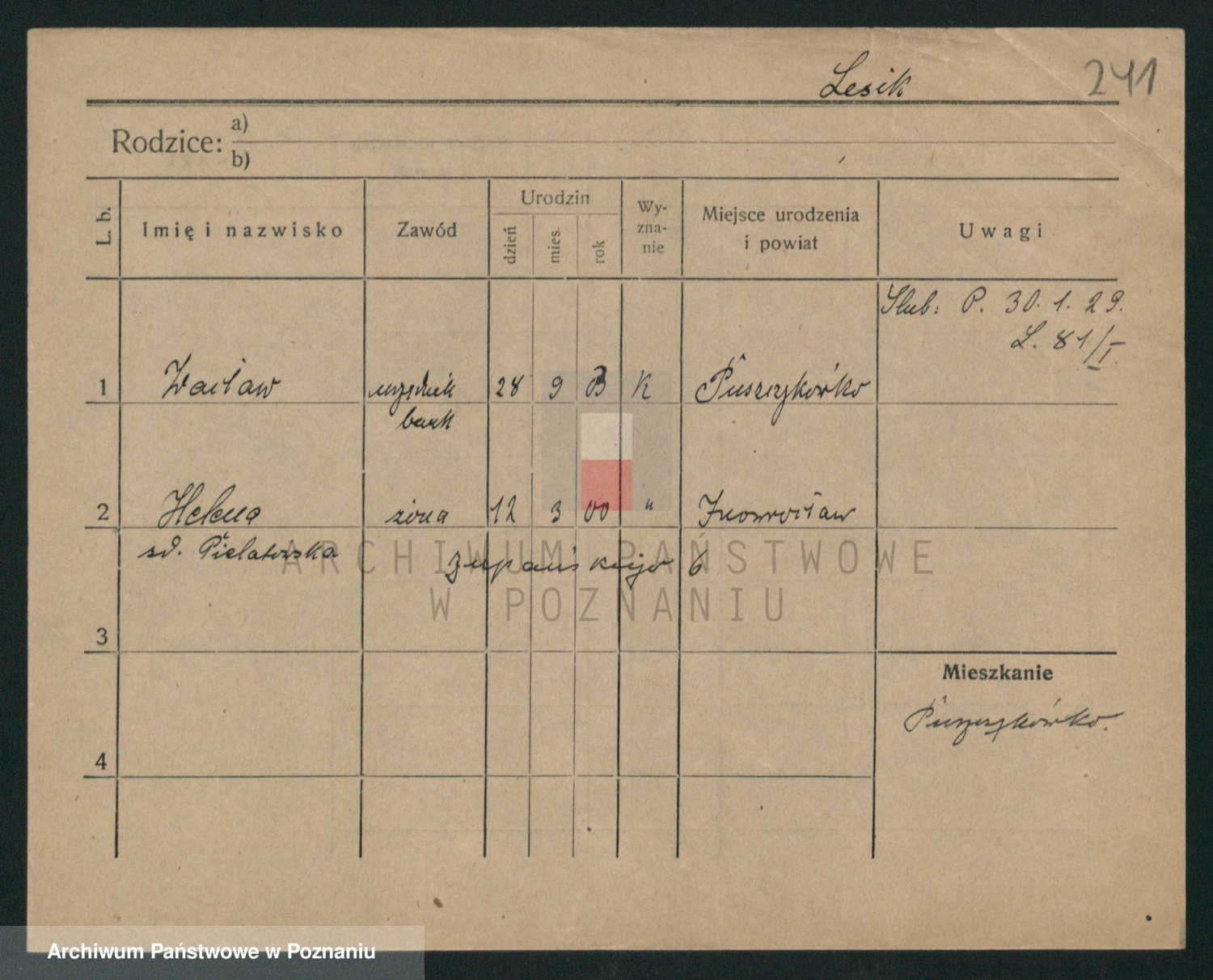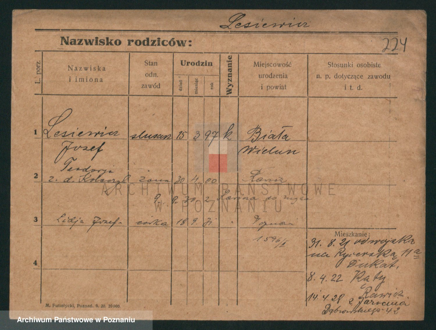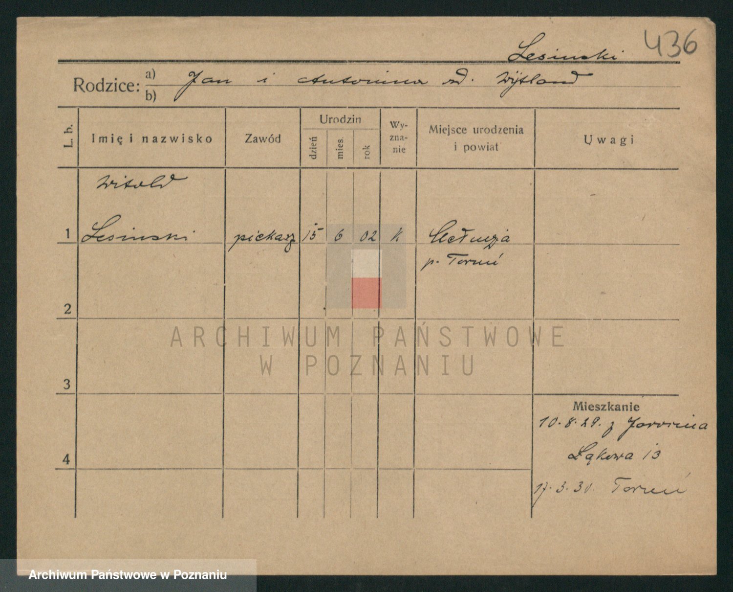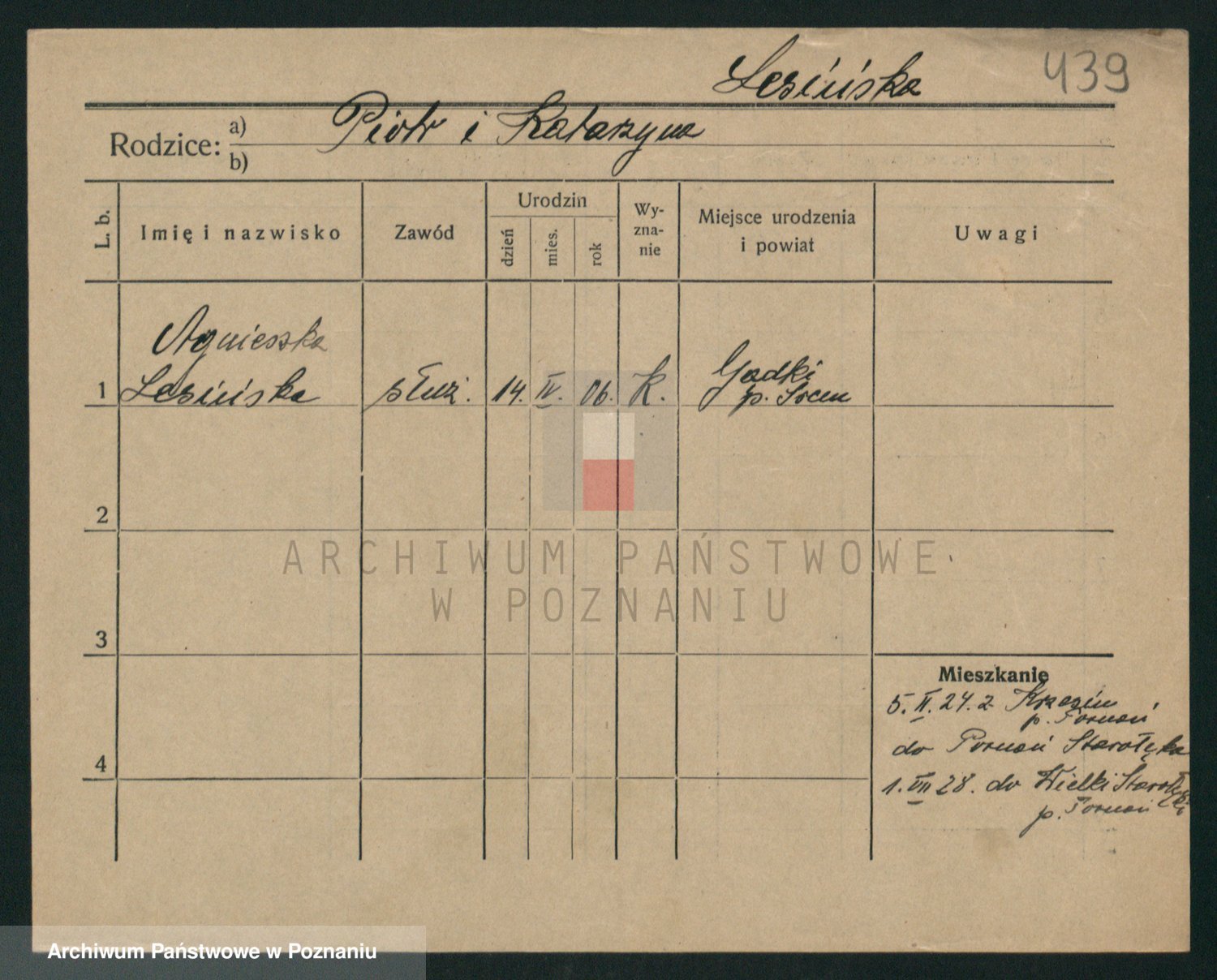 Podgląd karty osobowej dostępny jest po kliknięciu na nazwisko lub ikonkę karty. Można dokonywać powiększenia (ikony na górze) lub przechodzić między kolejnymi skanami (strzałki po bokach).