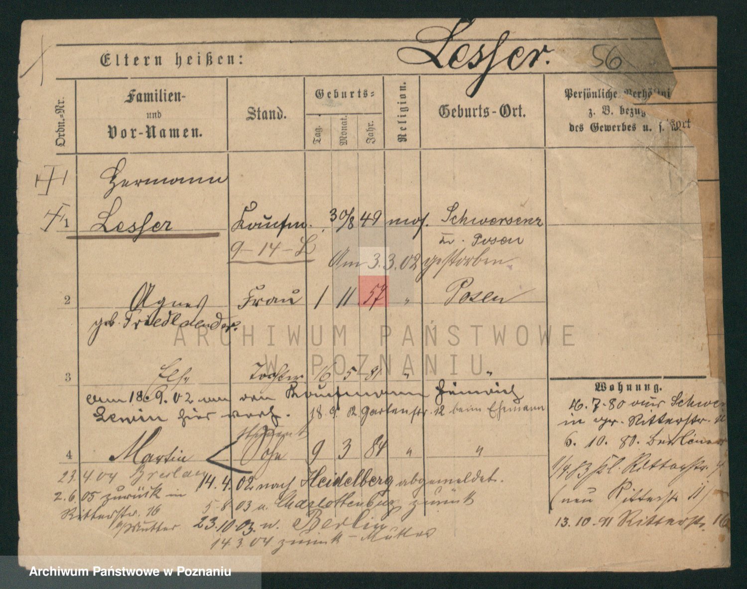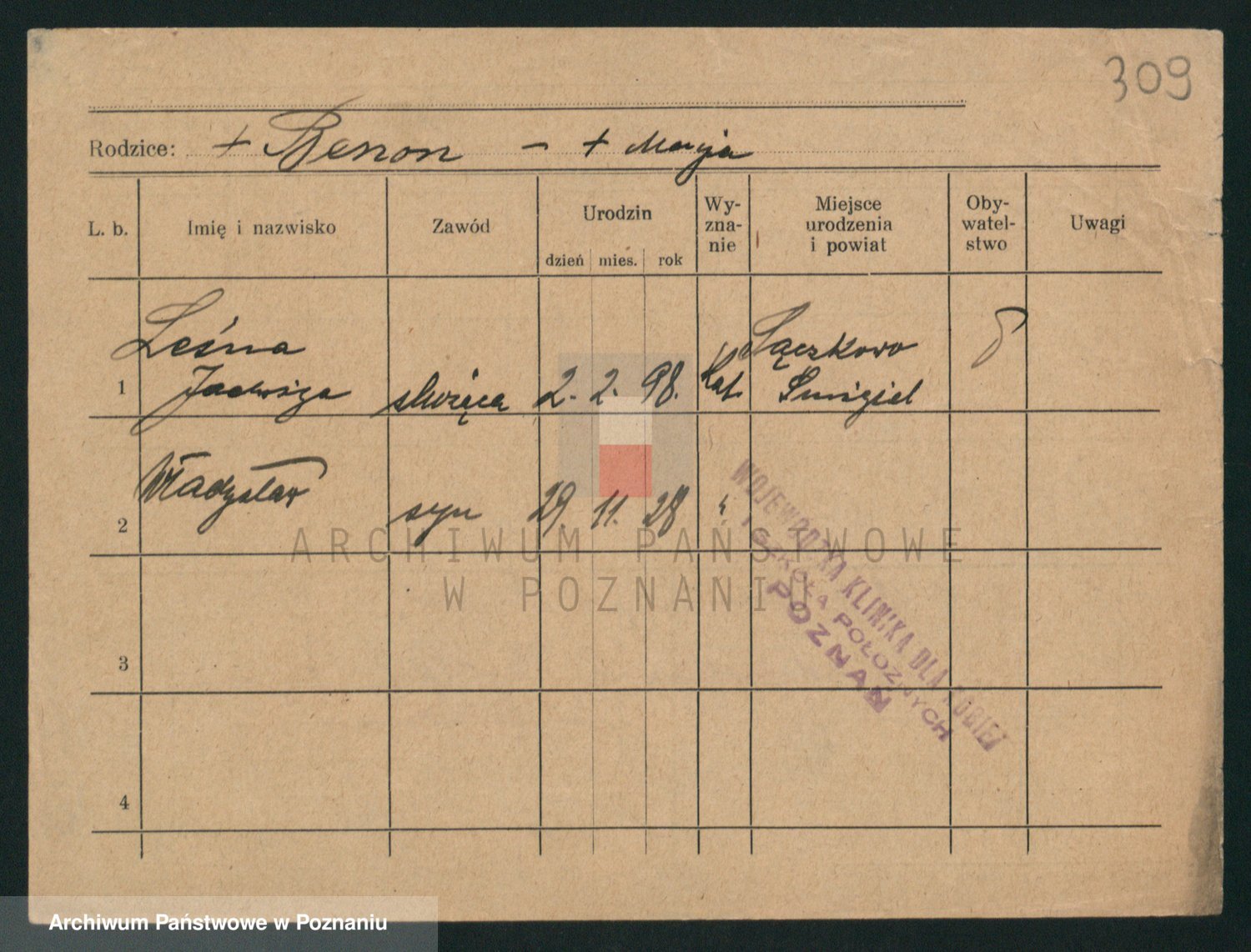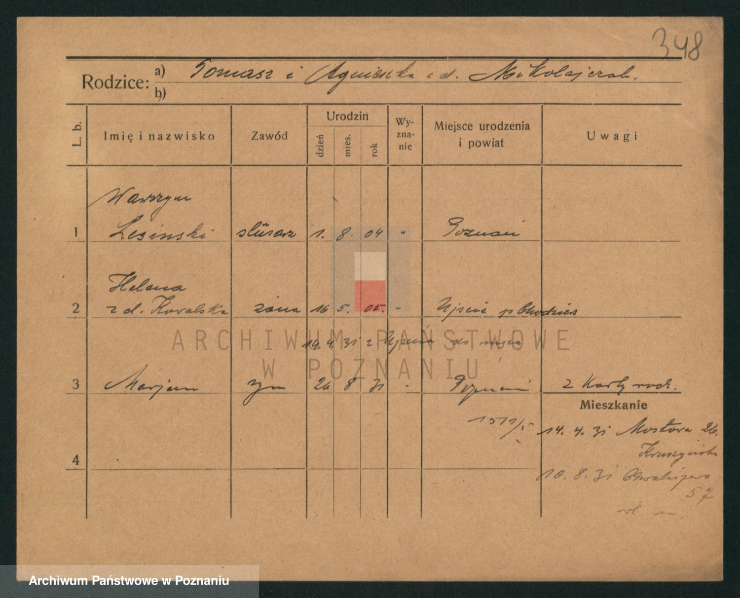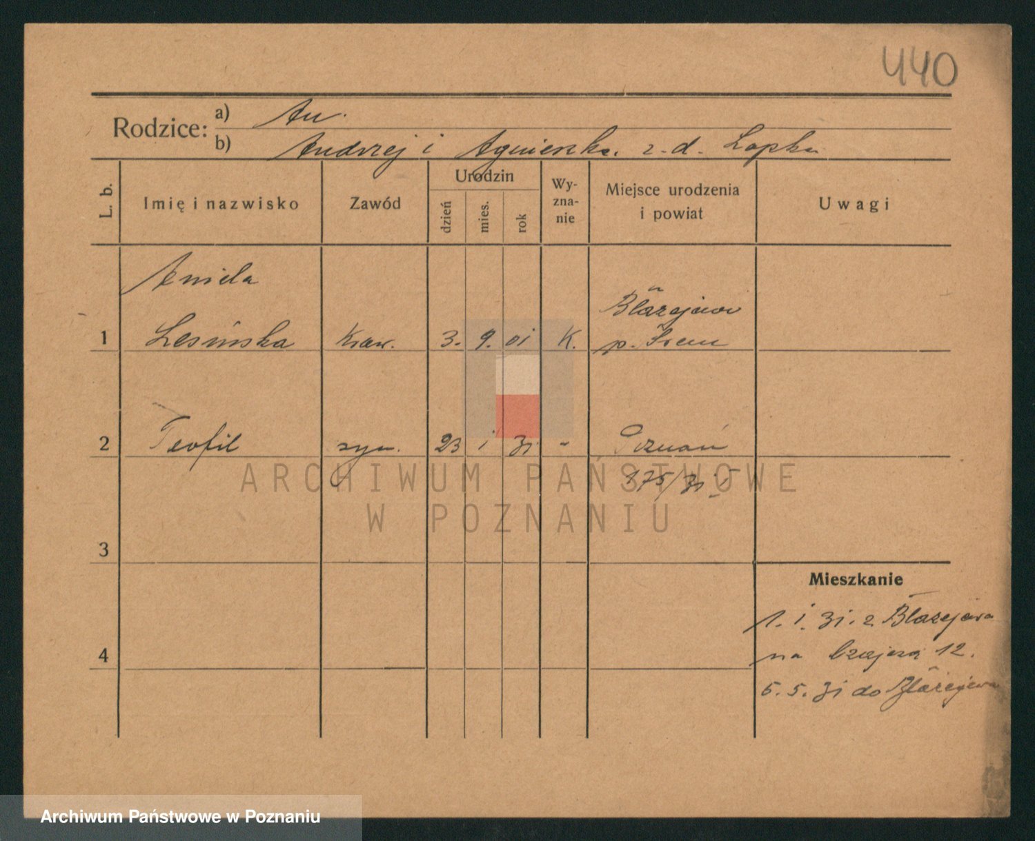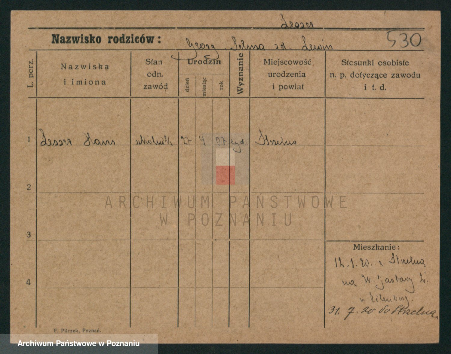 Podgląd karty osobowej dostępny jest po kliknięciu na nazwisko lub ikonkę karty. Można dokonywać powiększenia (ikony na górze) lub przechodzić między kolejnymi skanami (strzałki po bokach).