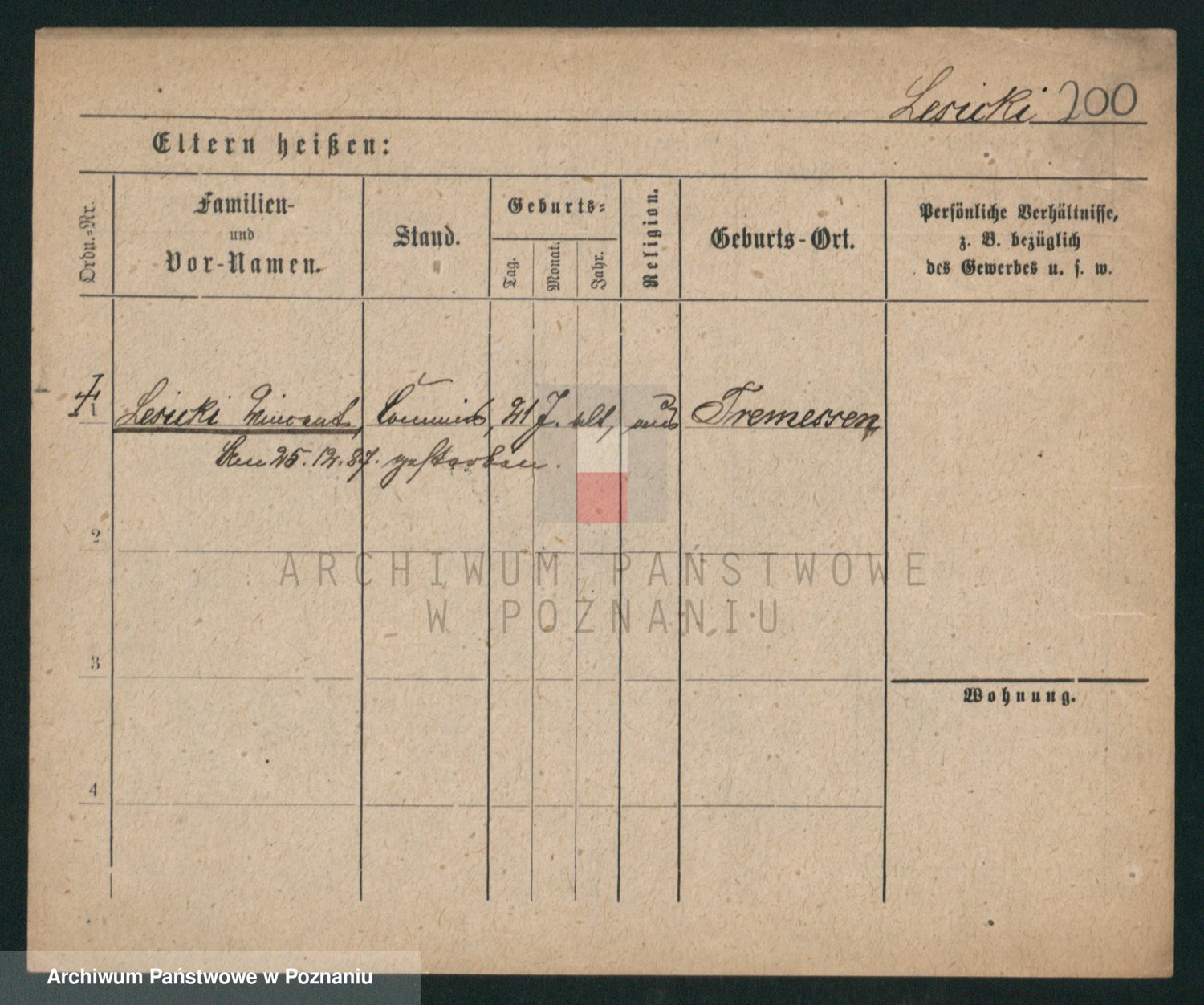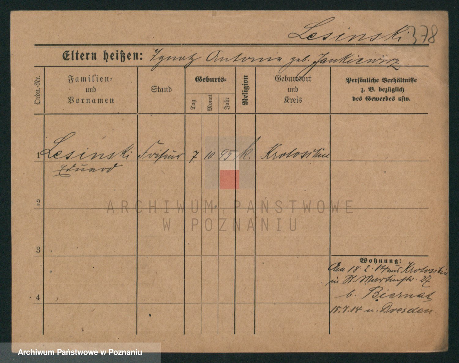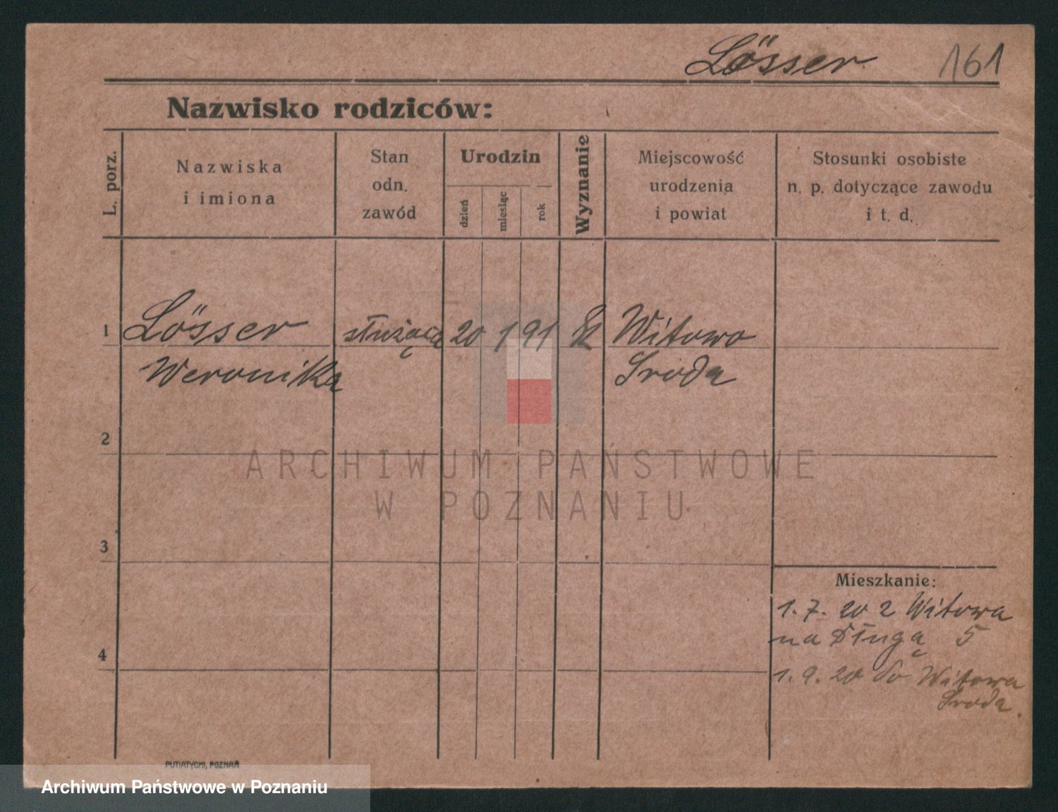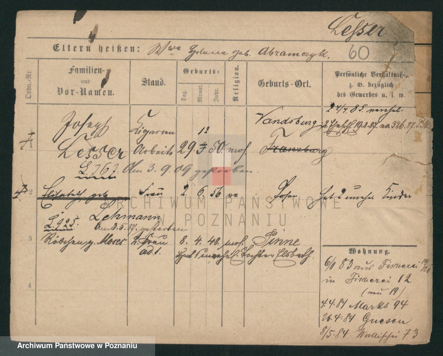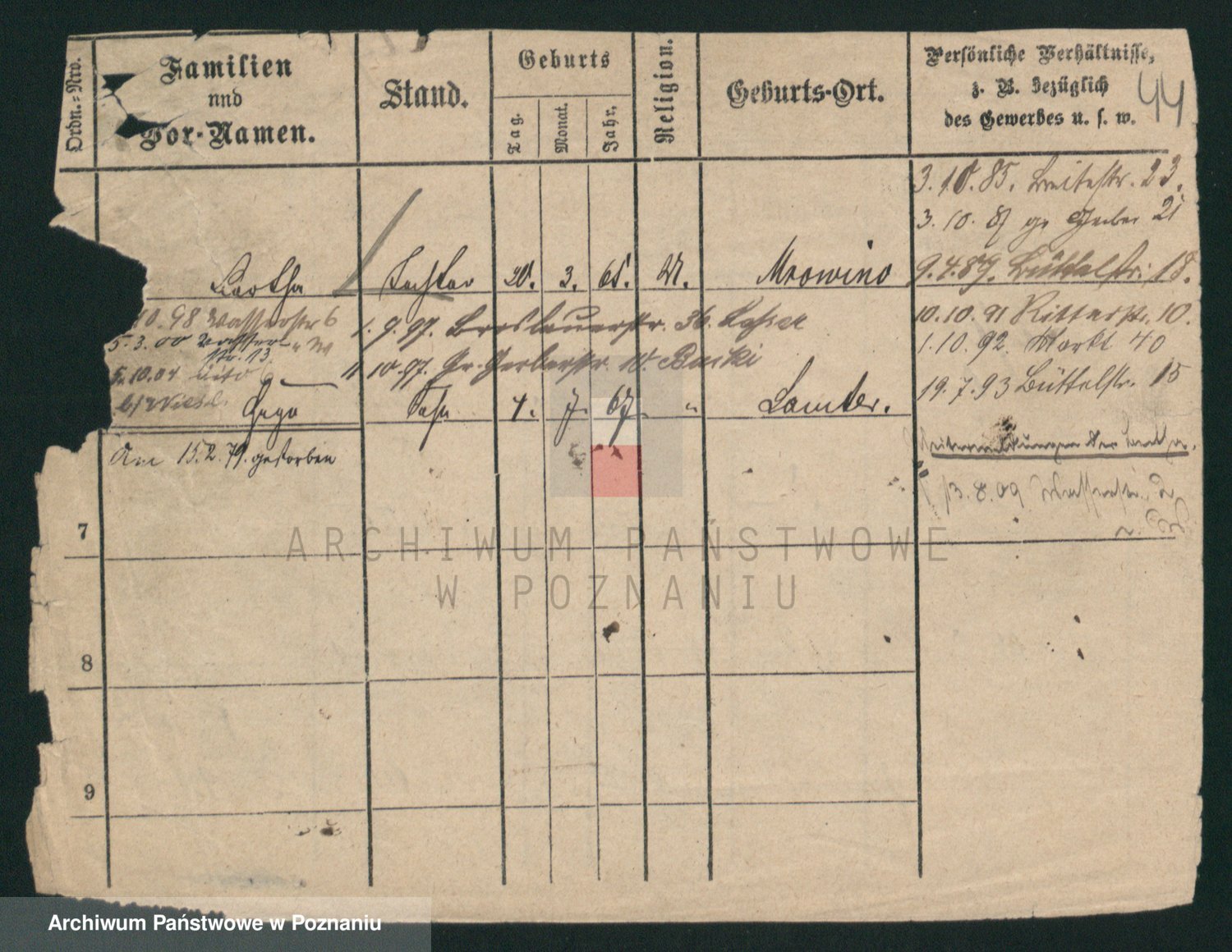 Podgląd karty osobowej dostępny jest po kliknięciu na nazwisko lub ikonkę karty. Można dokonywać powiększenia (ikony na górze) lub przechodzić między kolejnymi skanami (strzałki po bokach).