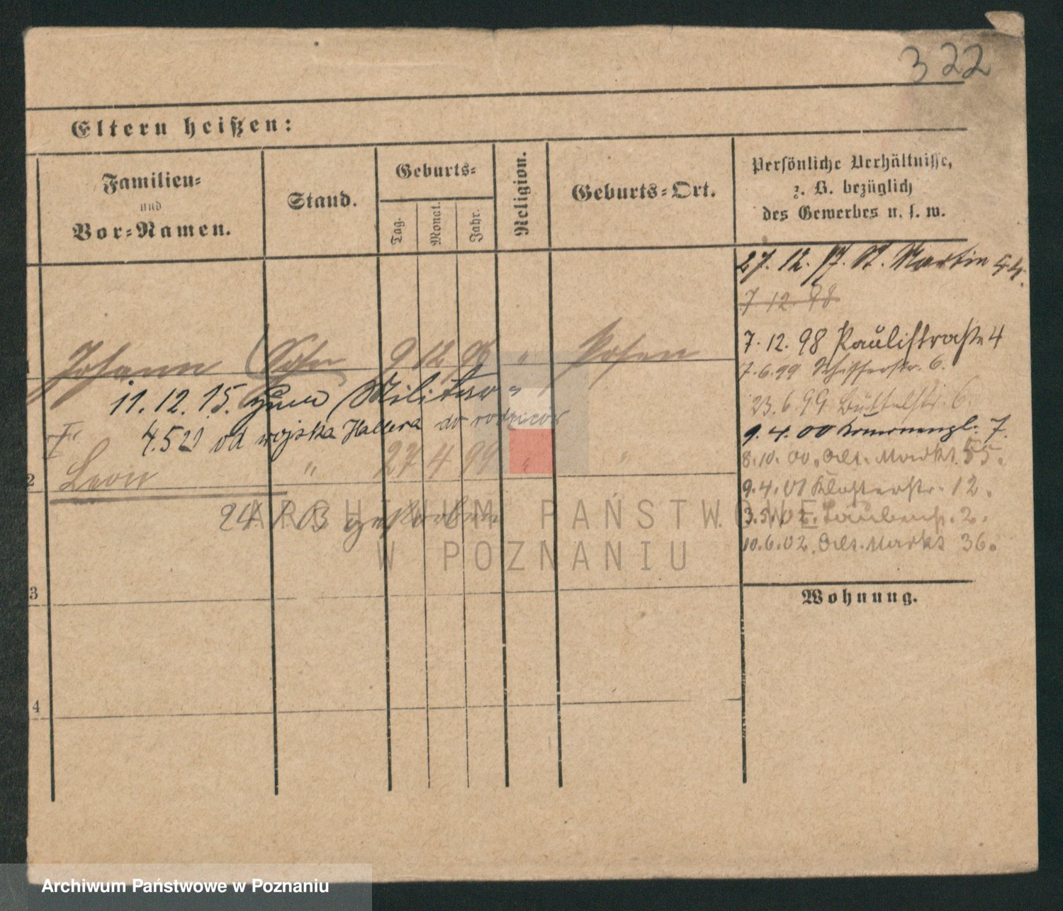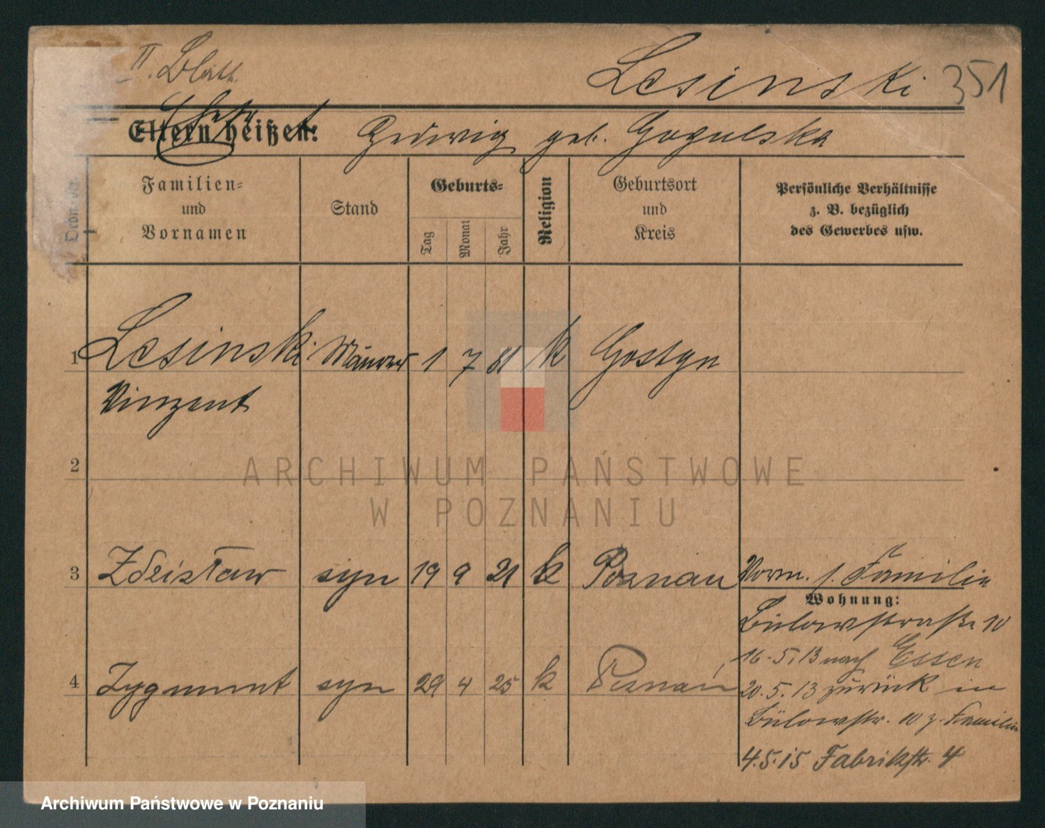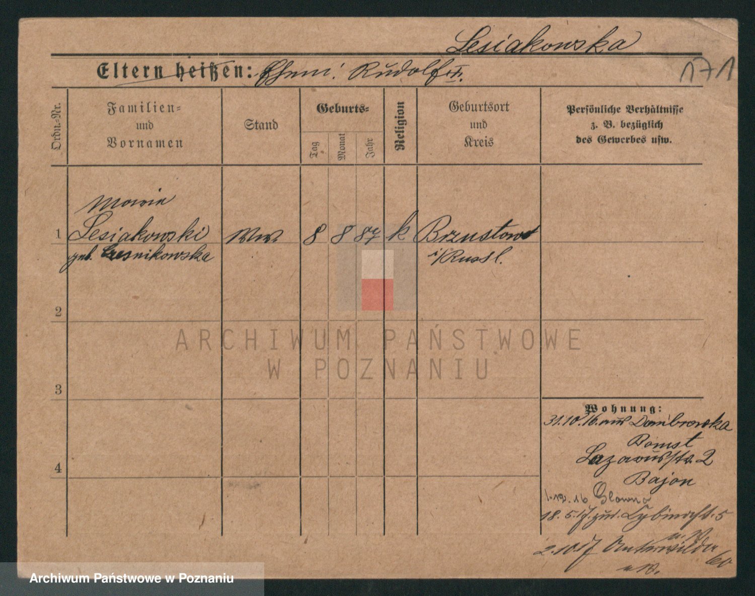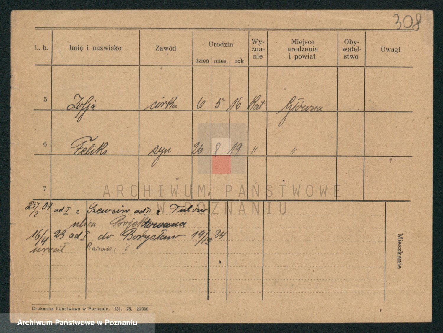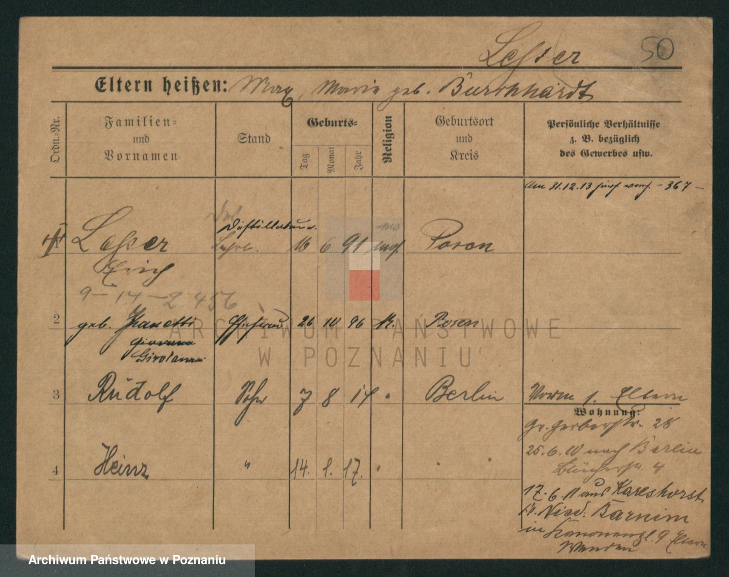 Podgląd karty osobowej dostępny jest po kliknięciu na nazwisko lub ikonkę karty. Można dokonywać powiększenia (ikony na górze) lub przechodzić między kolejnymi skanami (strzałki po bokach).