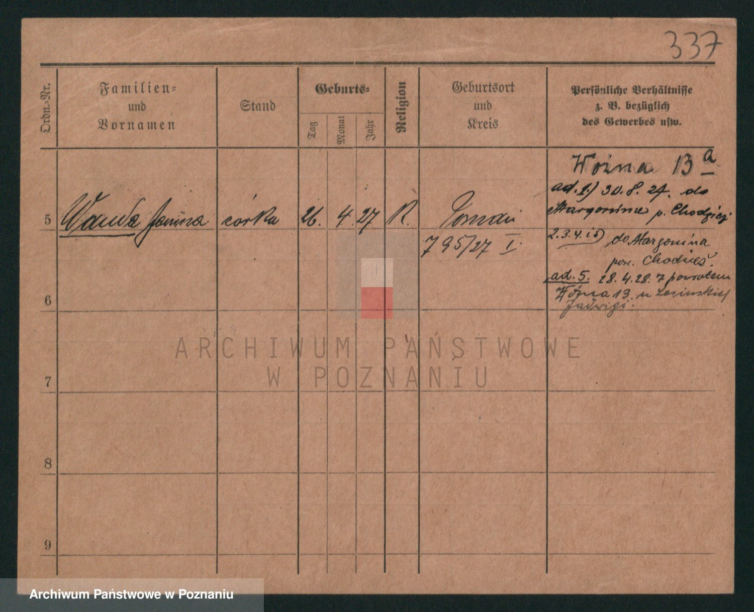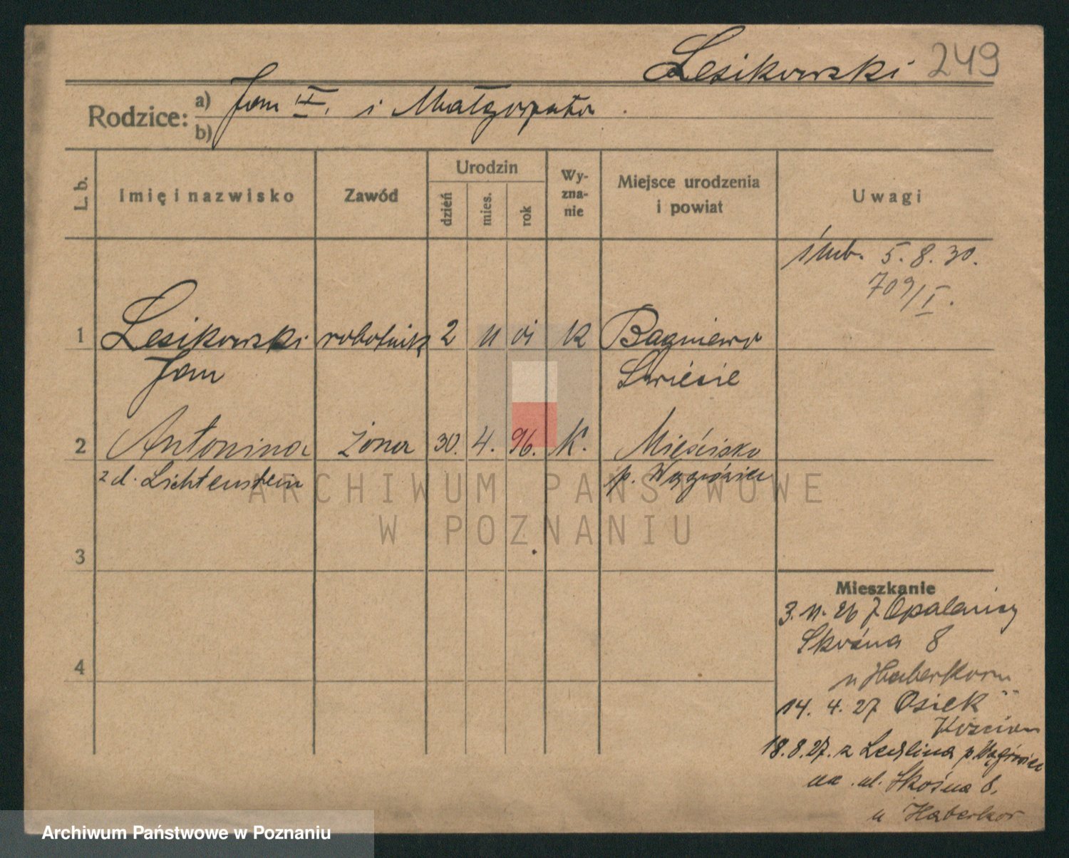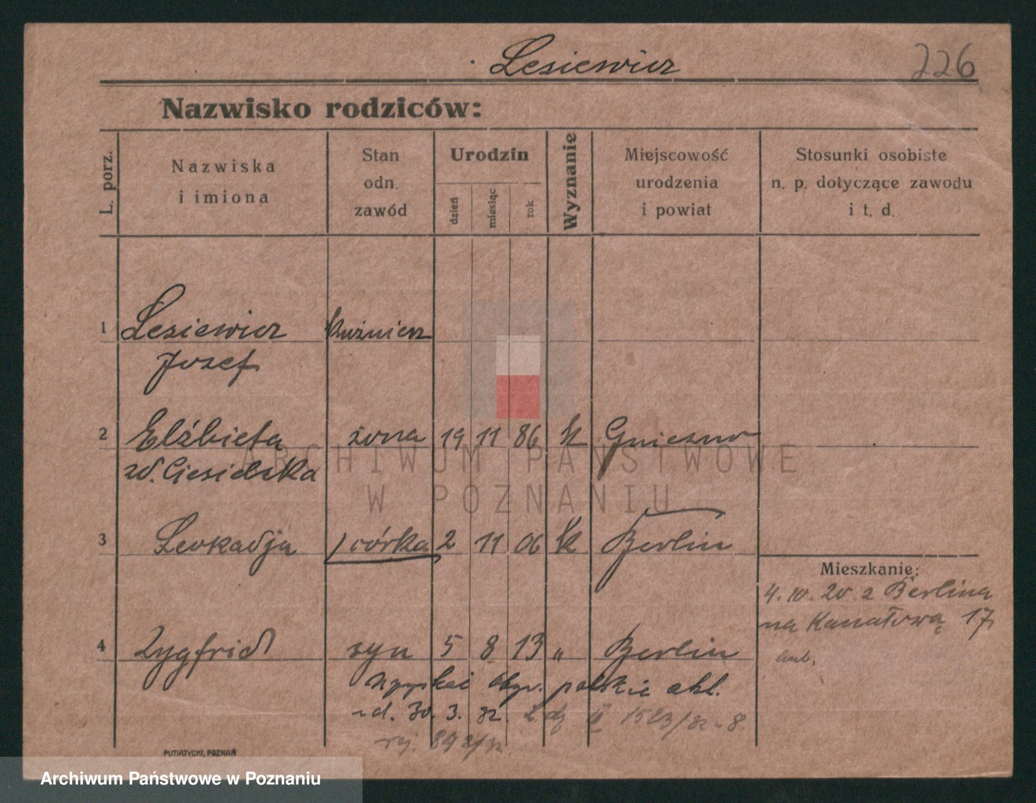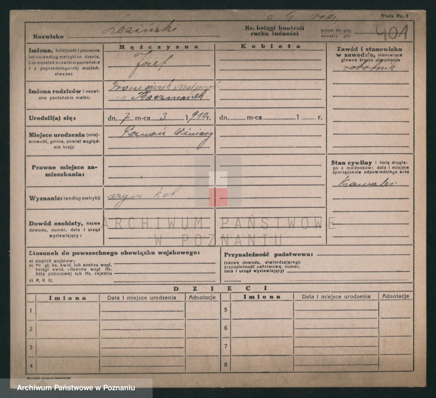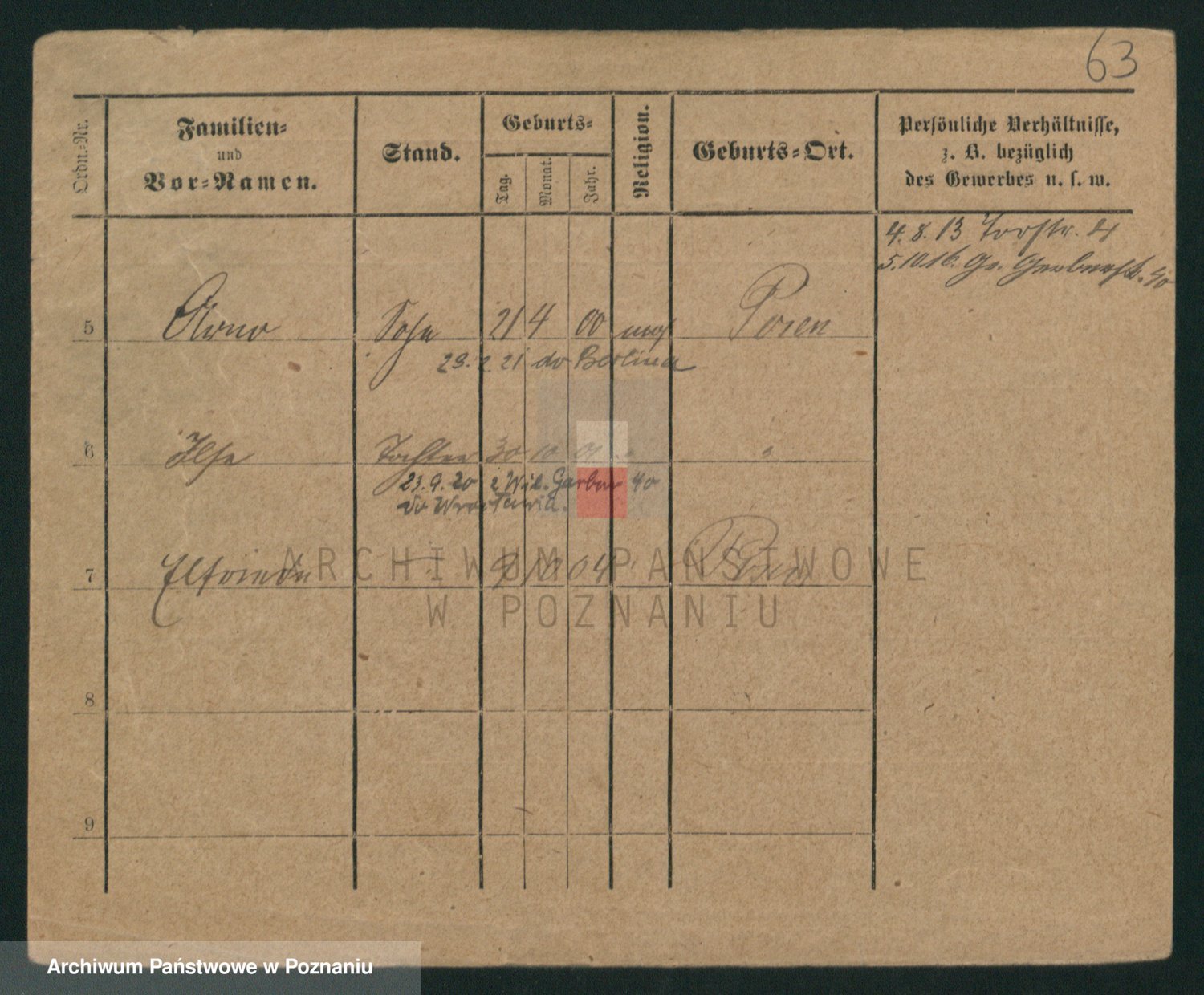 Podgląd karty osobowej dostępny jest po kliknięciu na nazwisko lub ikonkę karty. Można dokonywać powiększenia (ikony na górze) lub przechodzić między kolejnymi skanami (strzałki po bokach).