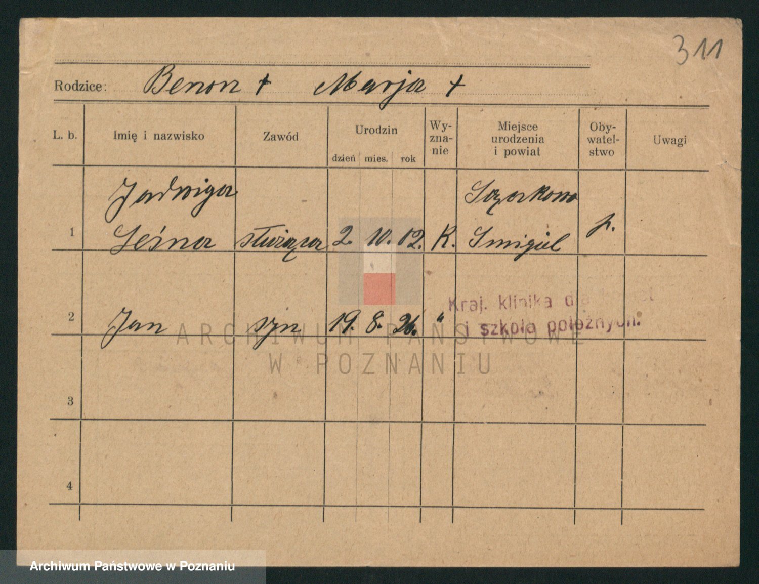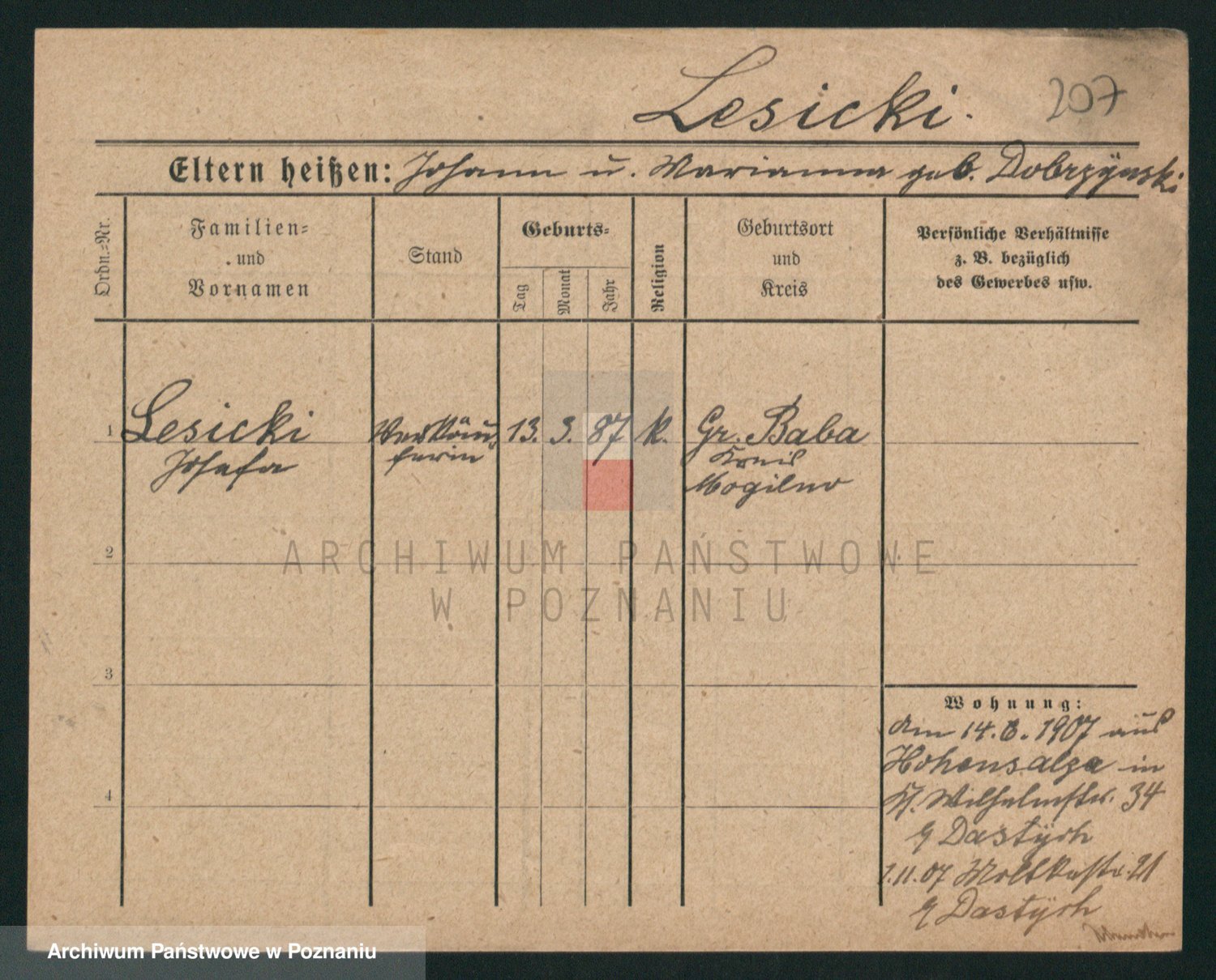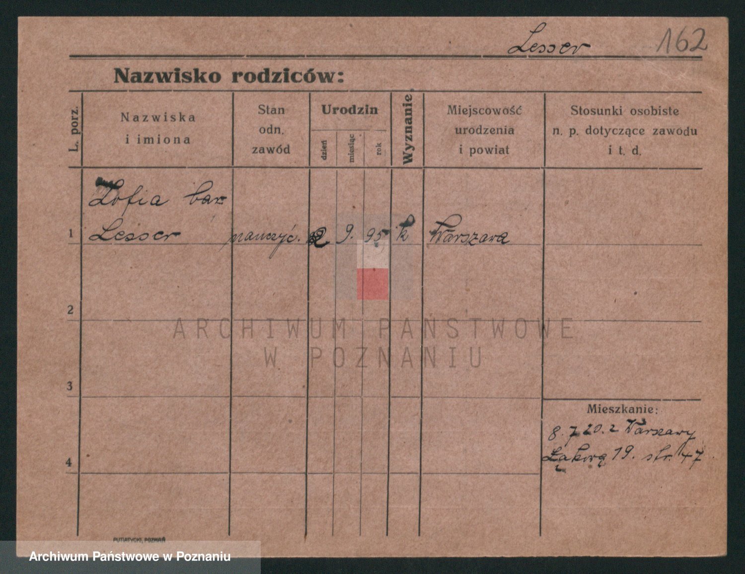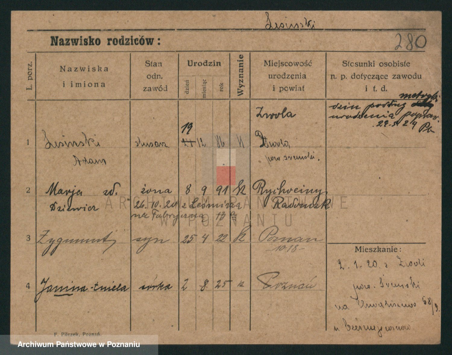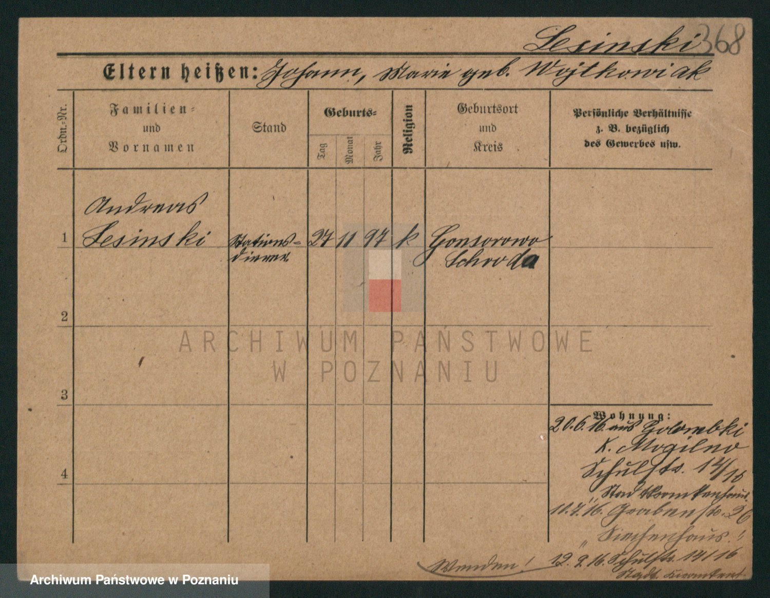 Podgląd karty osobowej dostępny jest po kliknięciu na nazwisko lub ikonkę karty. Można dokonywać powiększenia (ikony na górze) lub przechodzić między kolejnymi skanami (strzałki po bokach).