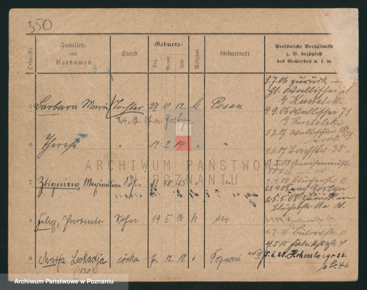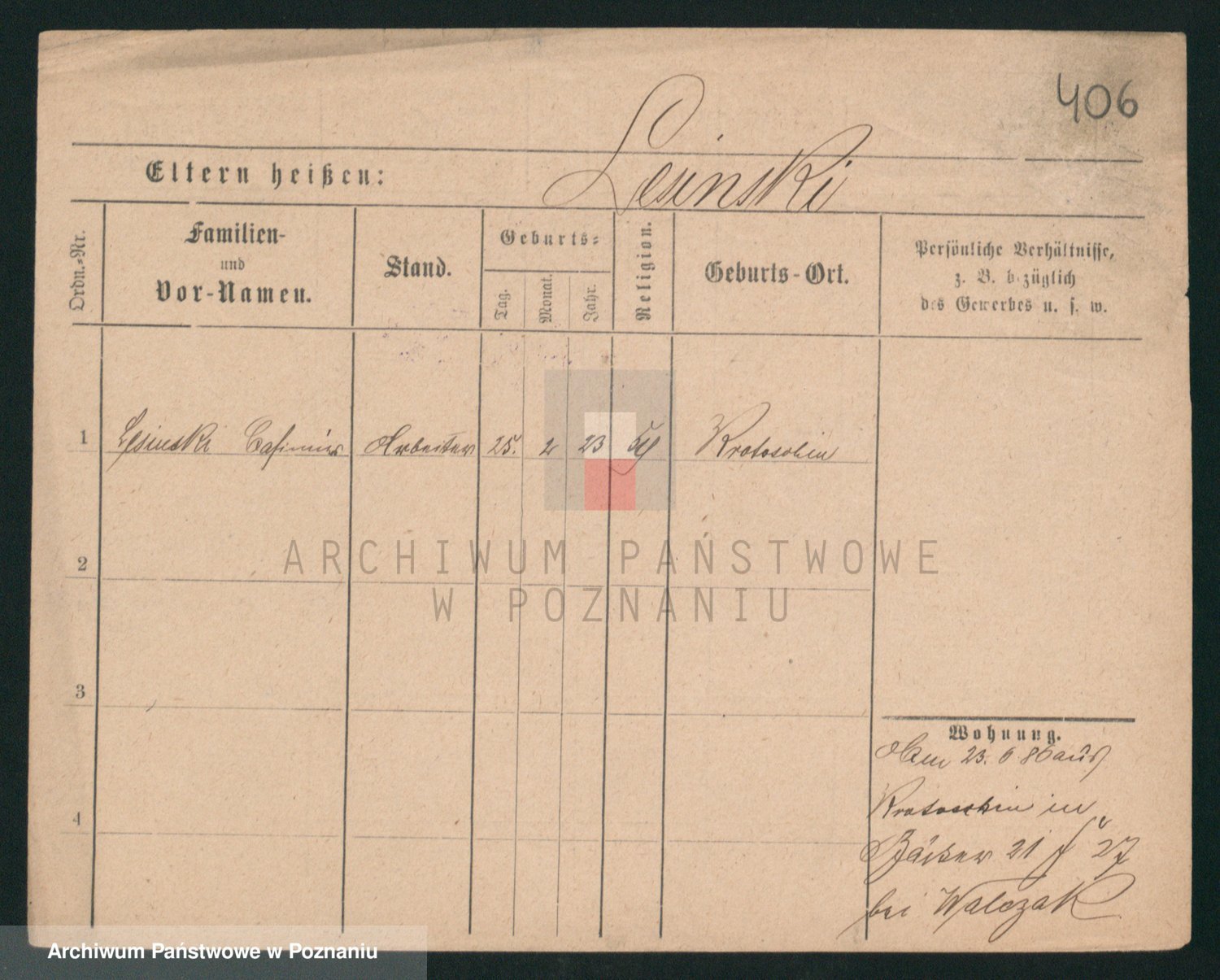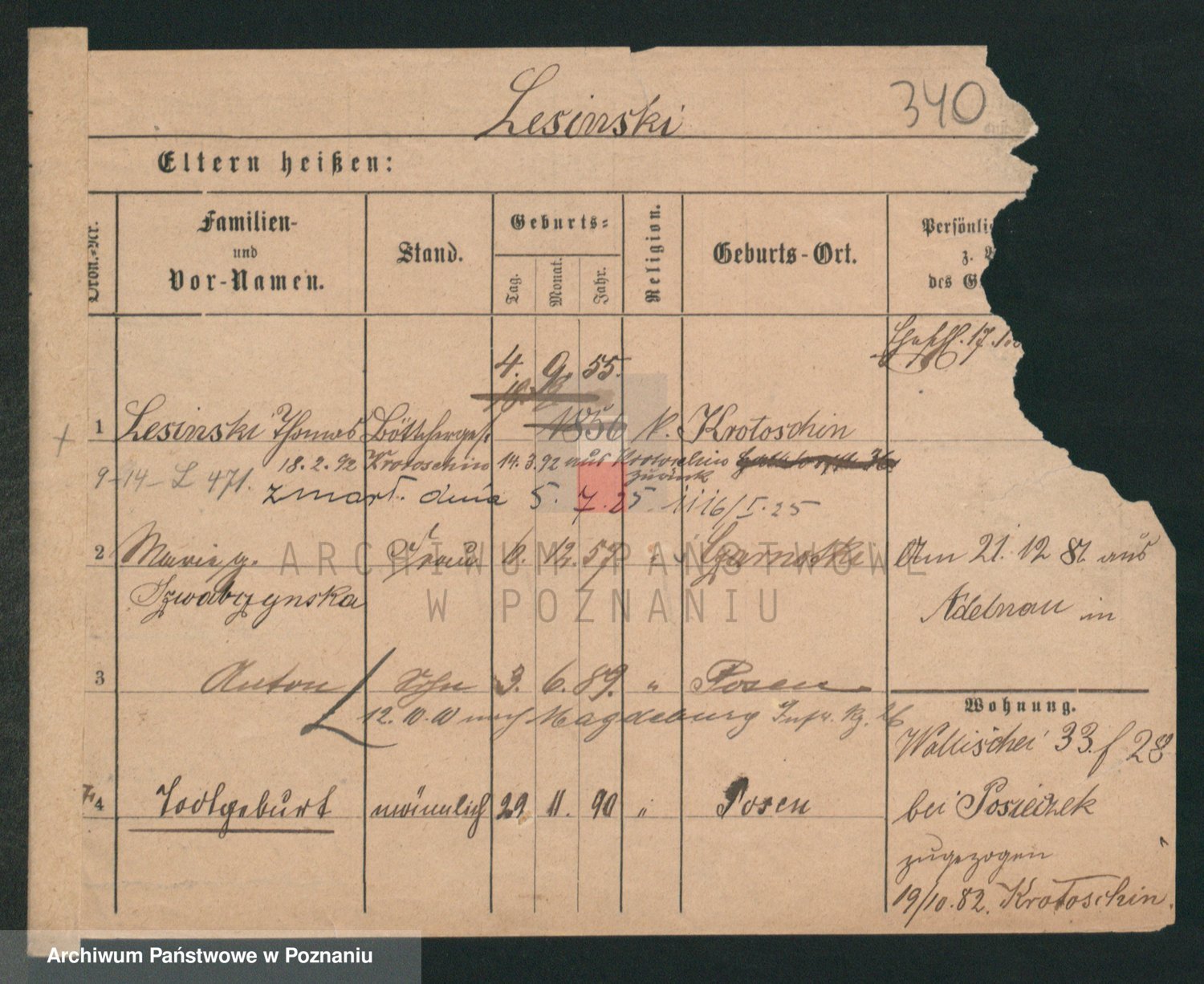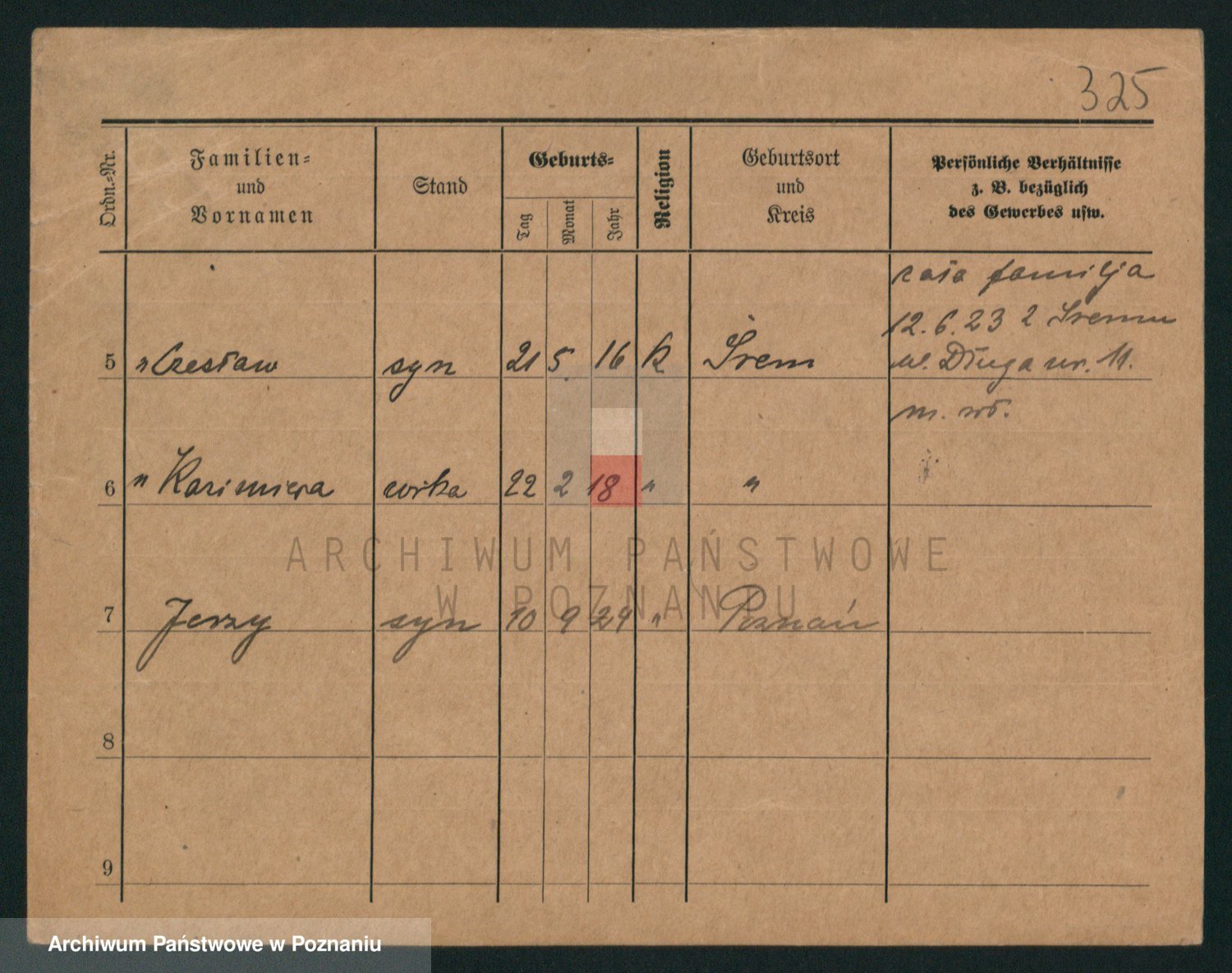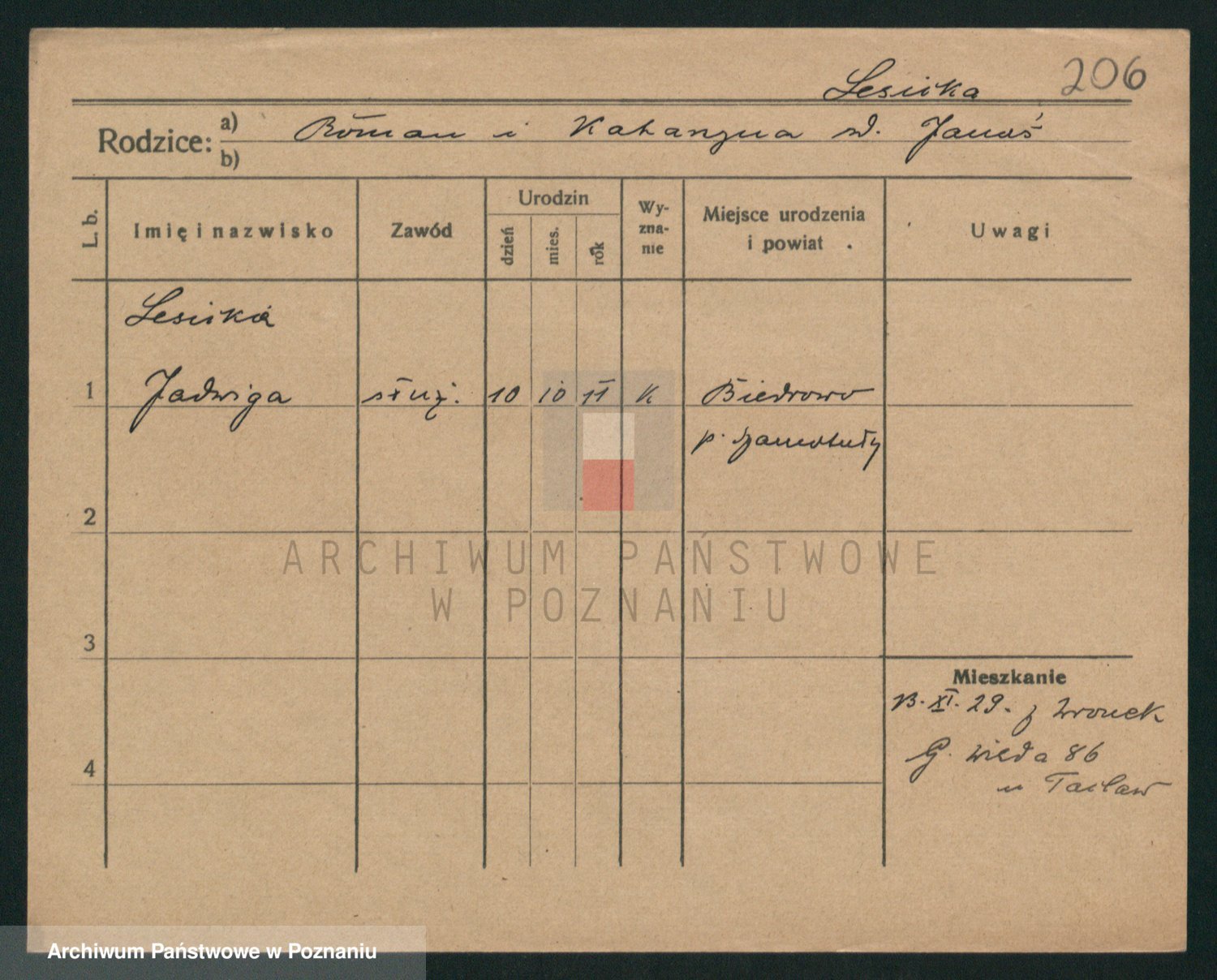 Podgląd karty osobowej dostępny jest po kliknięciu na nazwisko lub ikonkę karty. Można dokonywać powiększenia (ikony na górze) lub przechodzić między kolejnymi skanami (strzałki po bokach).