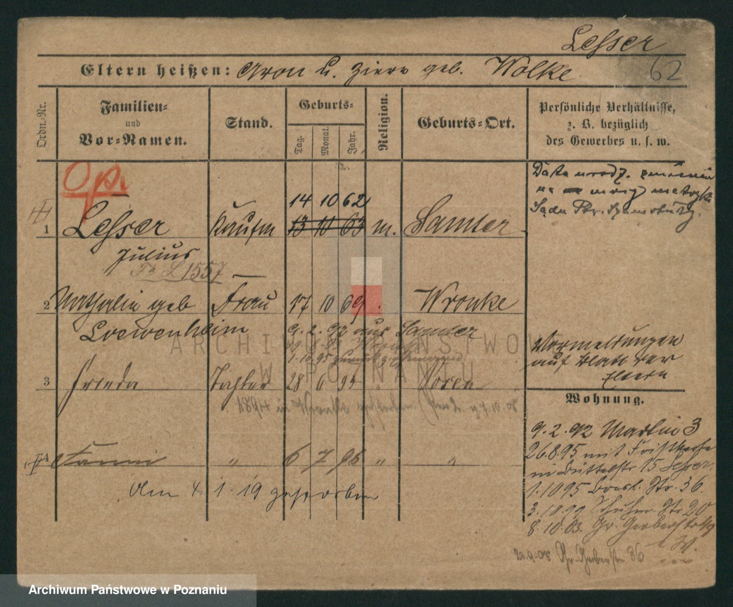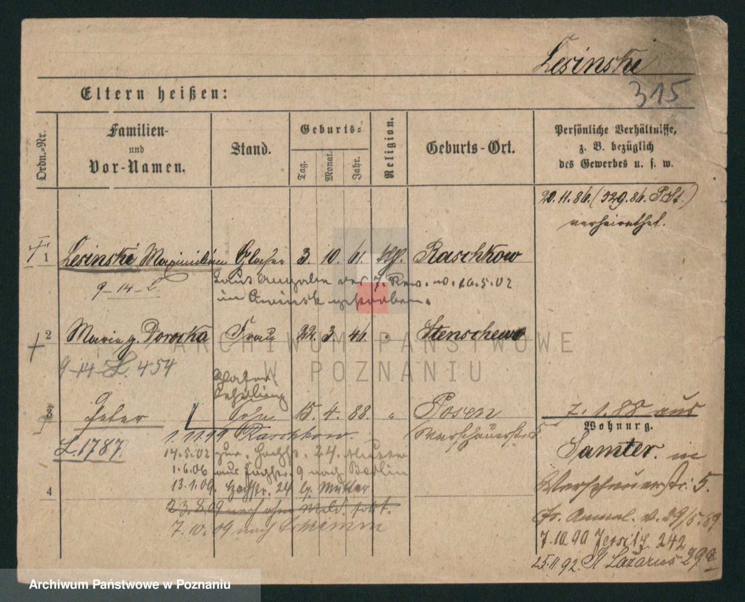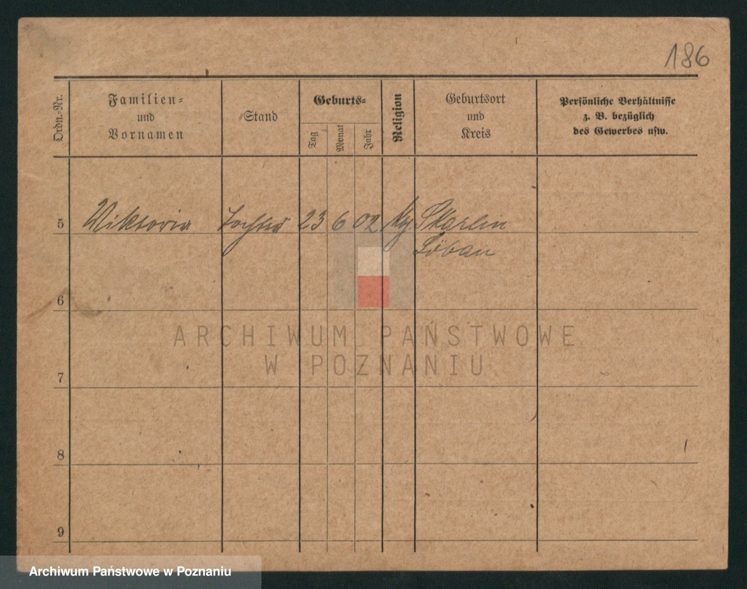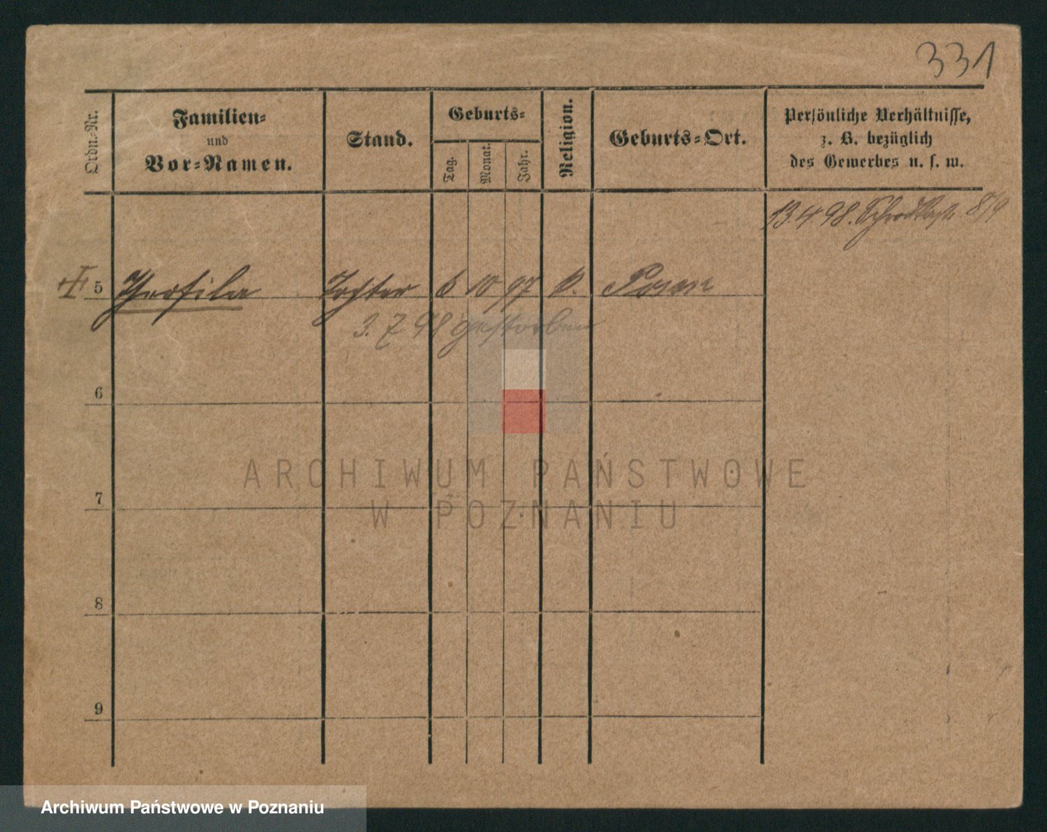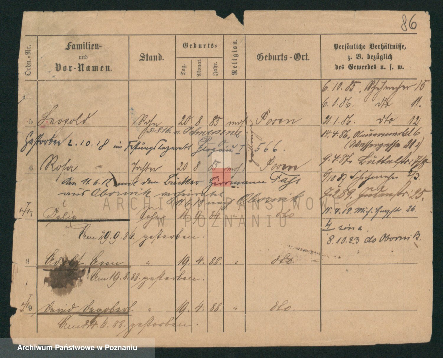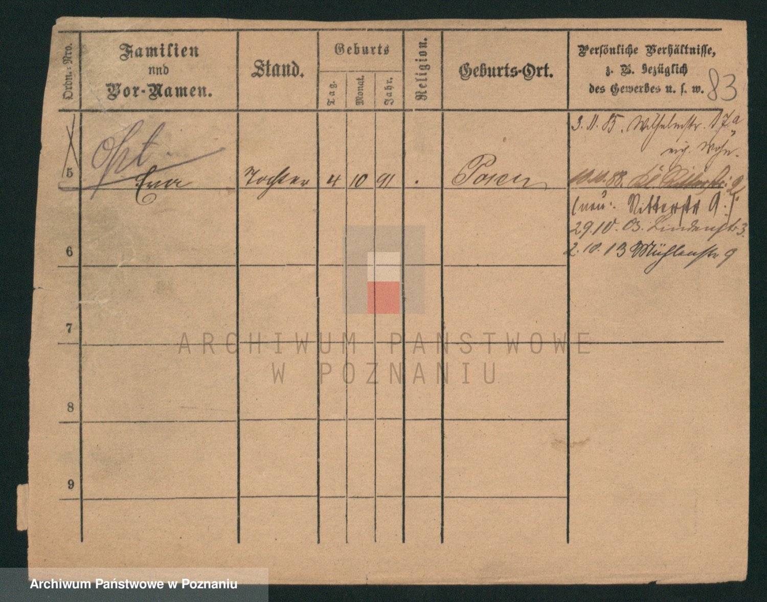 Podgląd karty osobowej dostępny jest po kliknięciu na nazwisko lub ikonkę karty. Można dokonywać powiększenia (ikony na górze) lub przechodzić między kolejnymi skanami (strzałki po bokach).