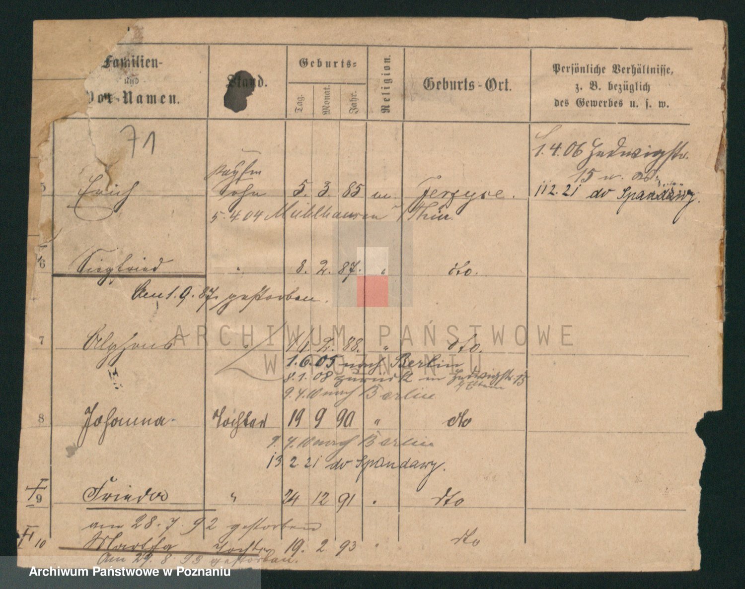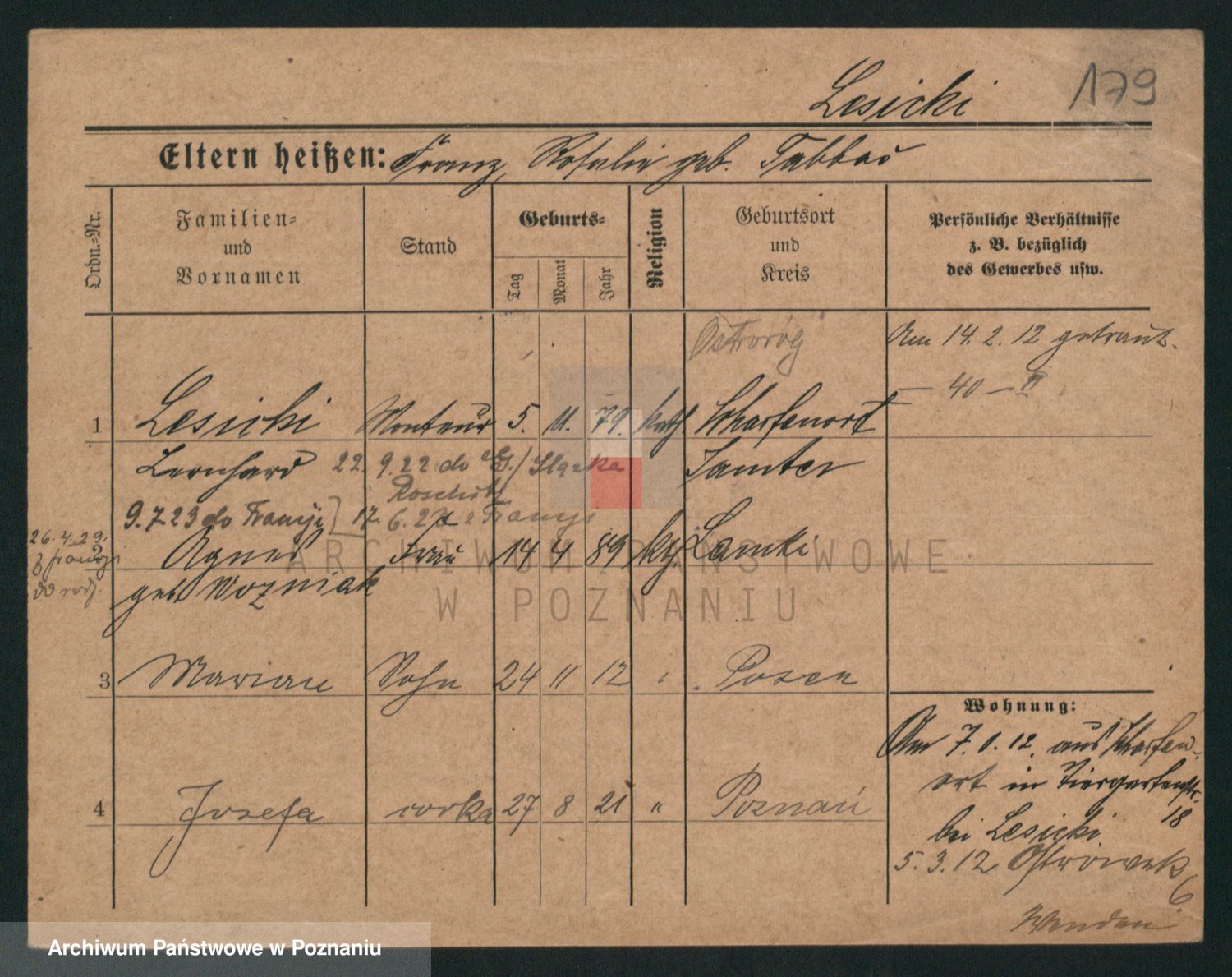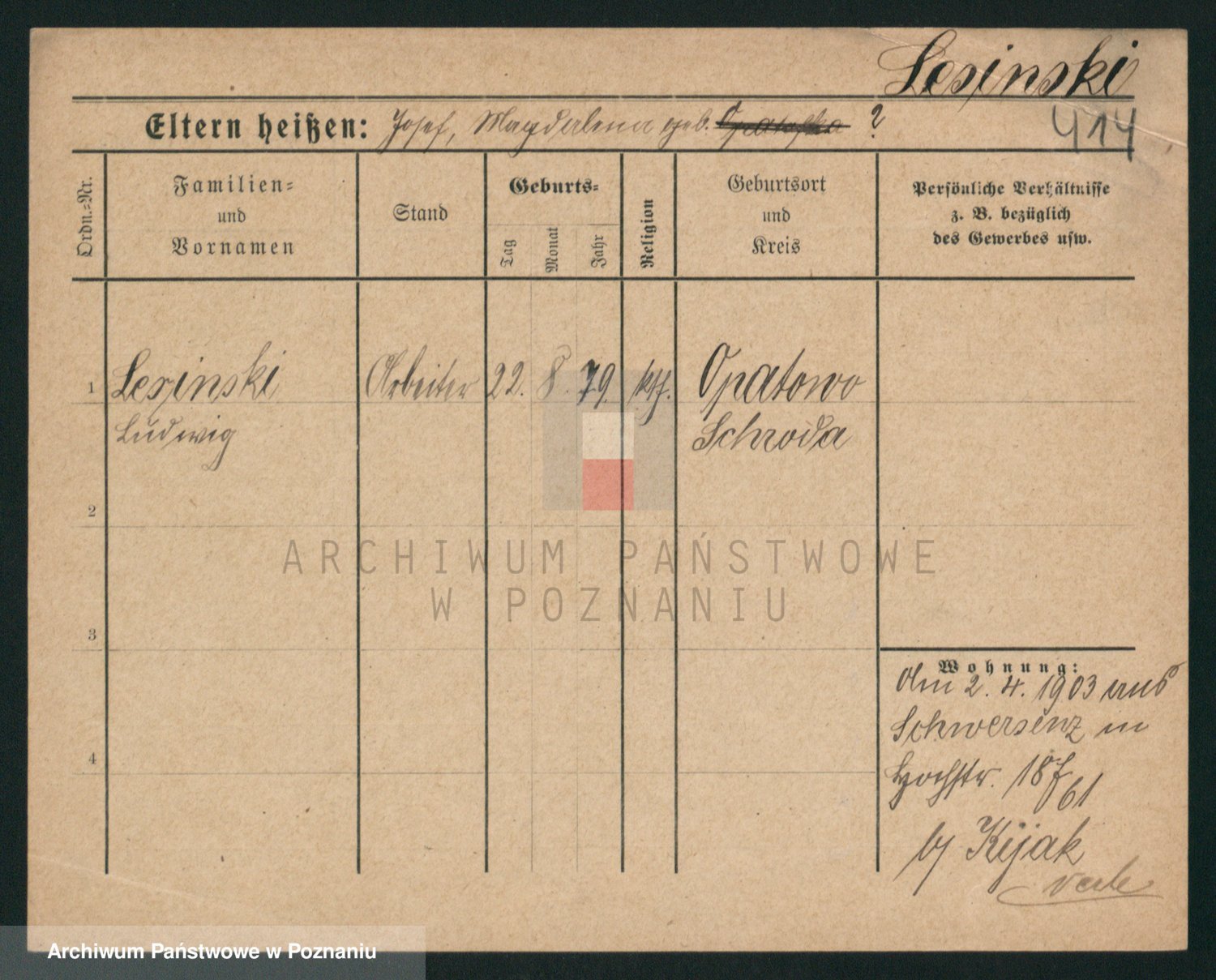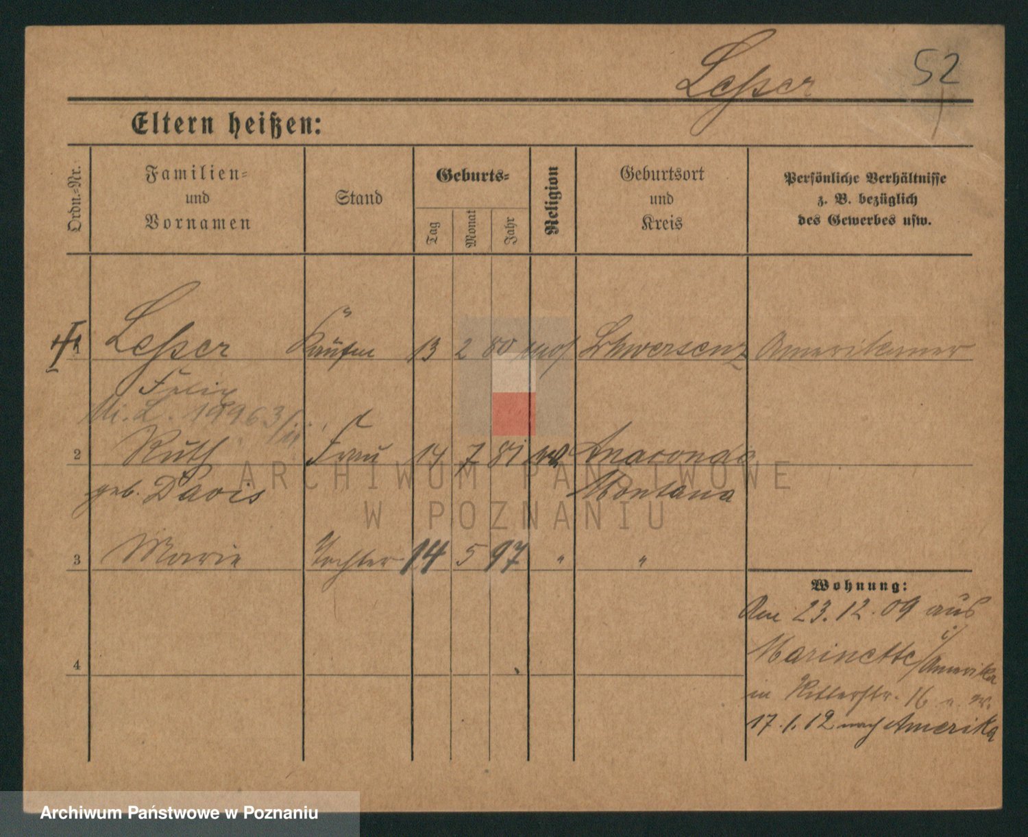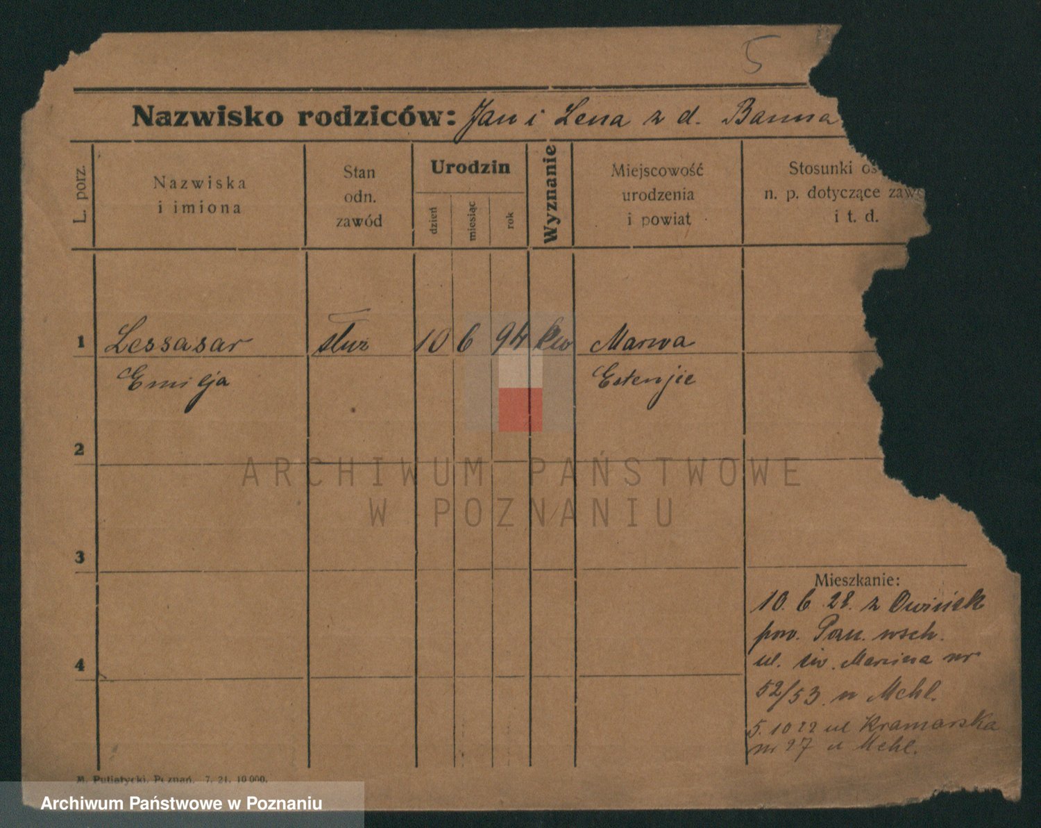 Podgląd karty osobowej dostępny jest po kliknięciu na nazwisko lub ikonkę karty. Można dokonywać powiększenia (ikony na górze) lub przechodzić między kolejnymi skanami (strzałki po bokach).