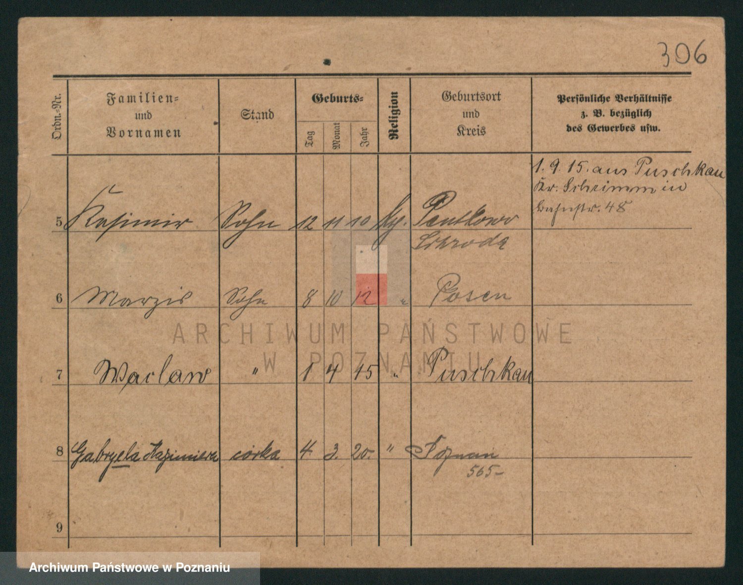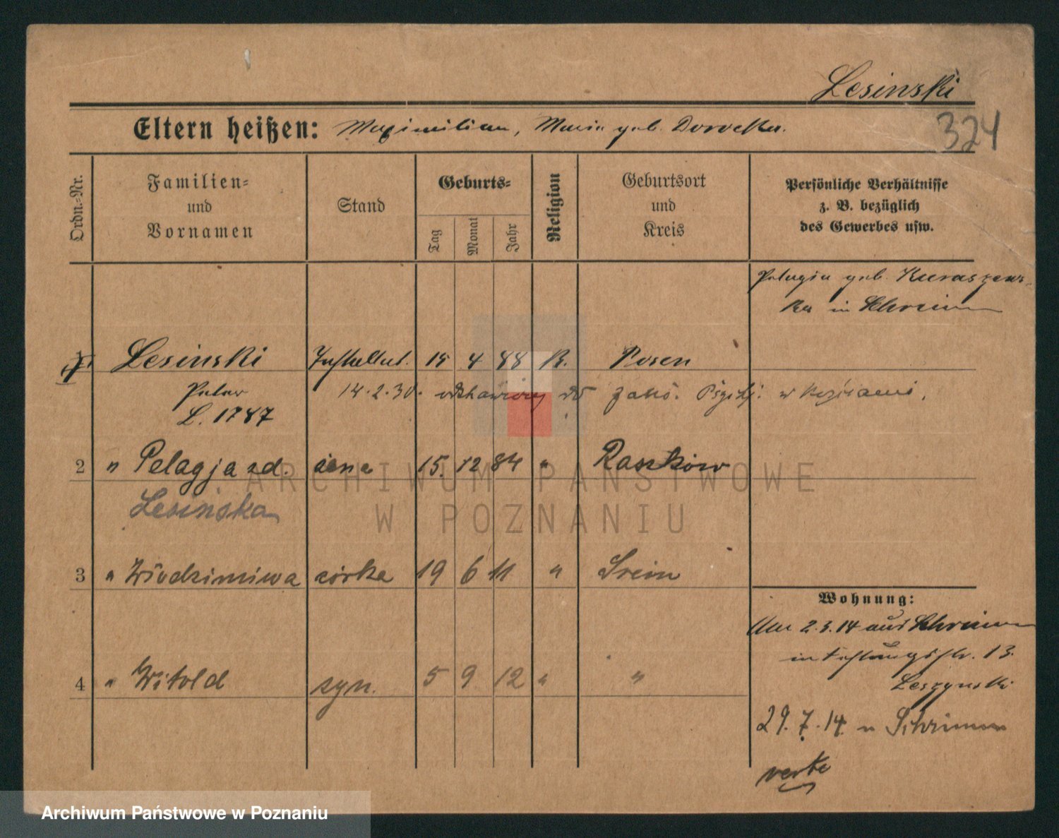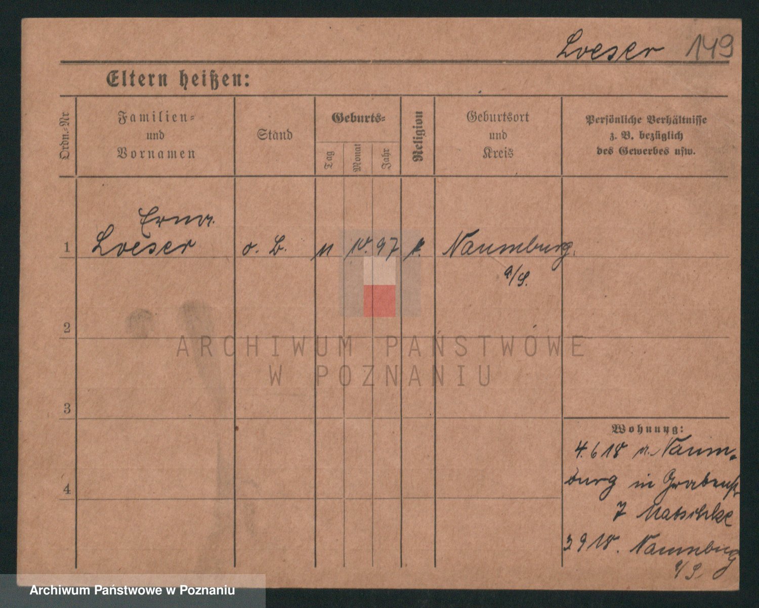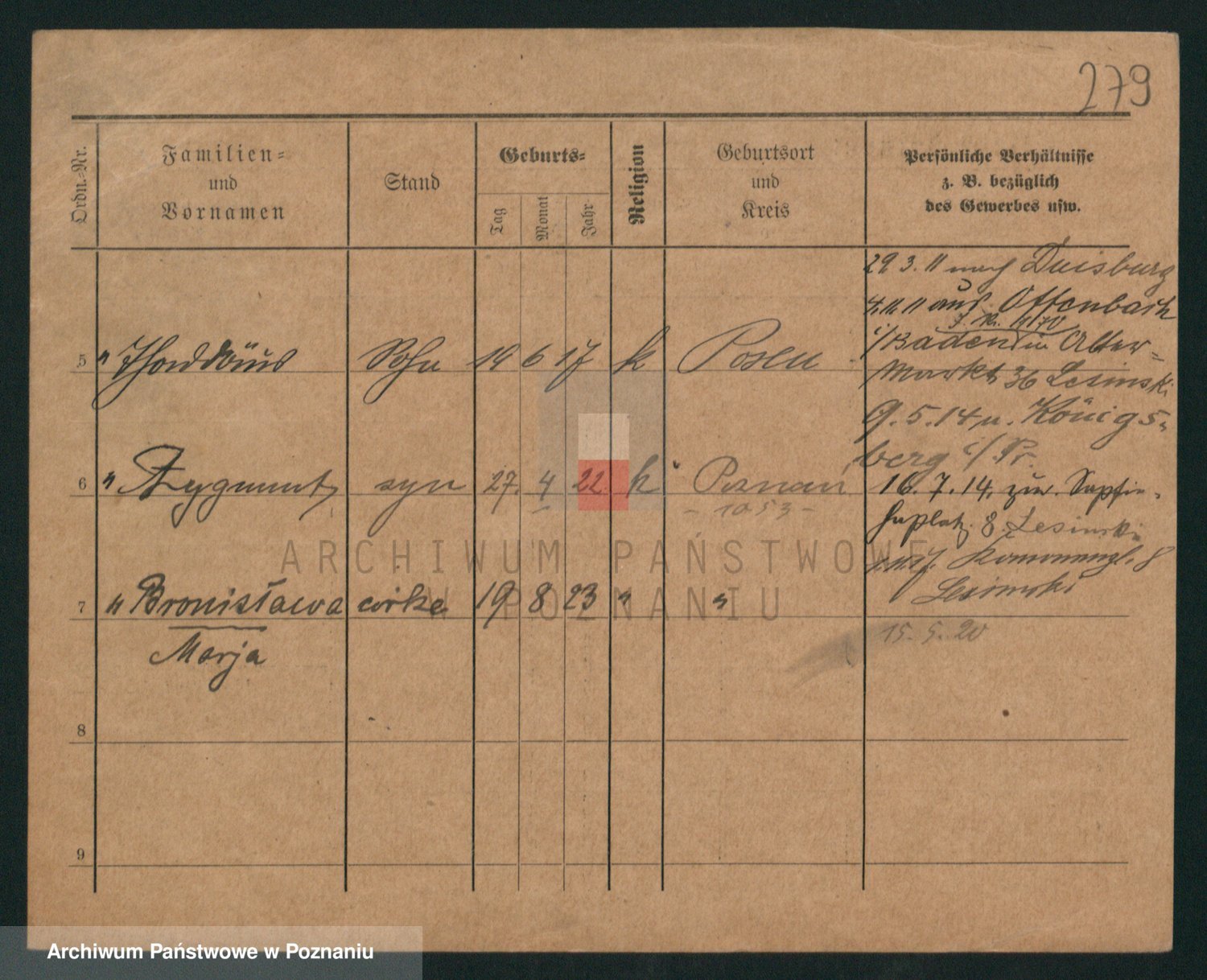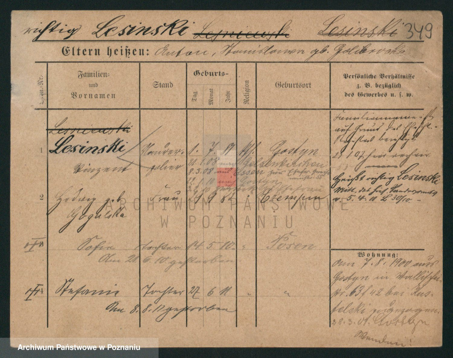 Podgląd karty osobowej dostępny jest po kliknięciu na nazwisko lub ikonkę karty. Można dokonywać powiększenia (ikony na górze) lub przechodzić między kolejnymi skanami (strzałki po bokach).