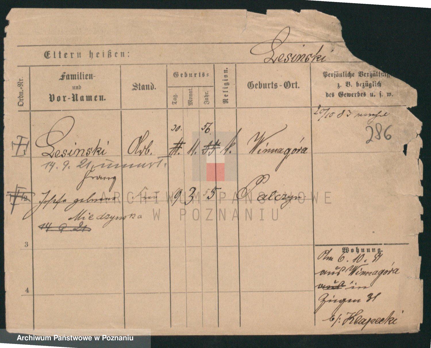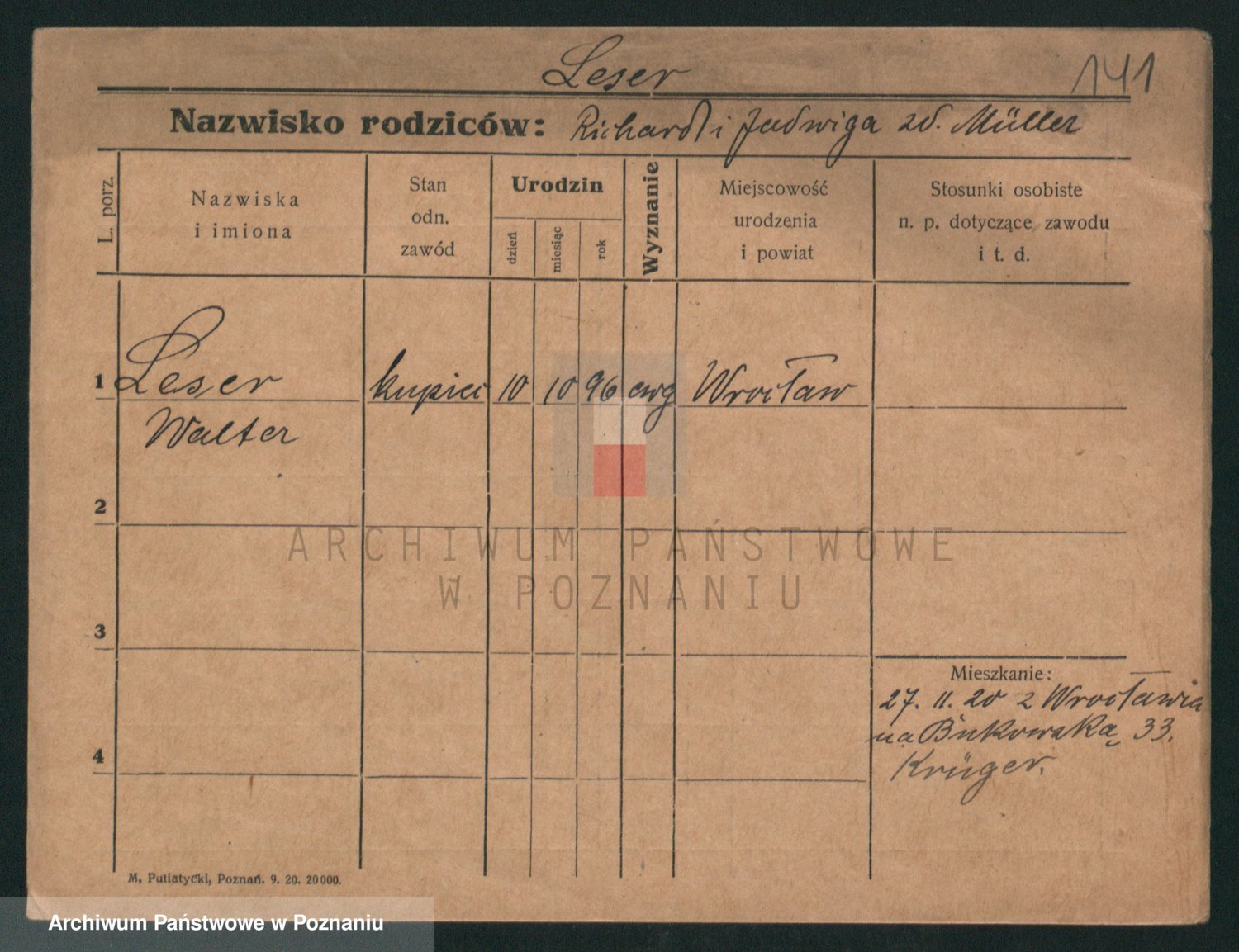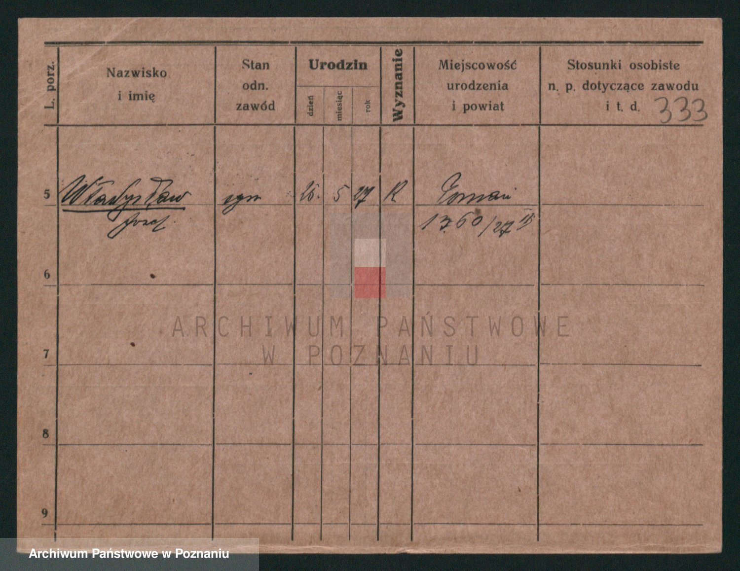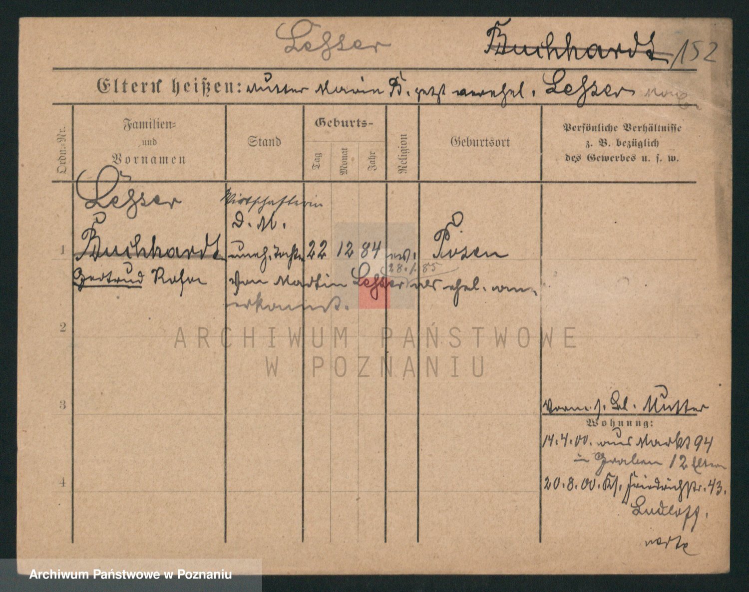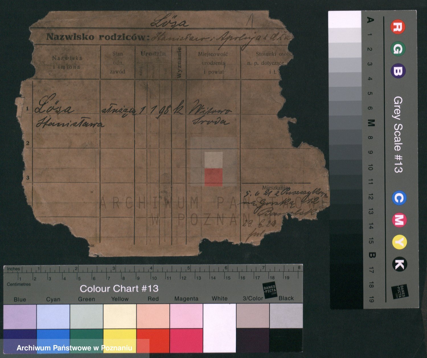Podgląd karty osobowej dostępny jest po kliknięciu na nazwisko lub ikonkę karty. Można dokonywać powiększenia (ikony na górze) lub przechodzić między kolejnymi skanami (strzałki po bokach).