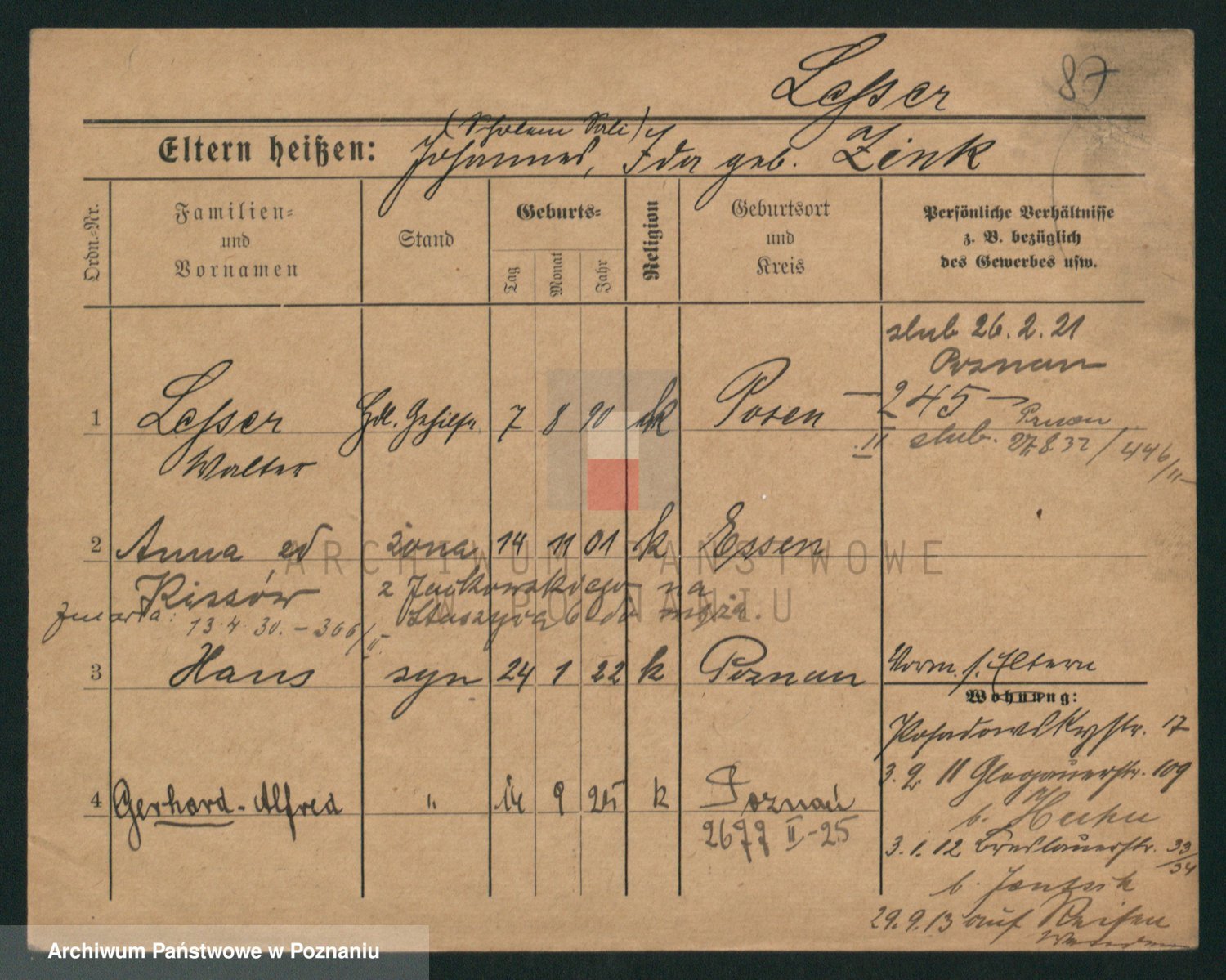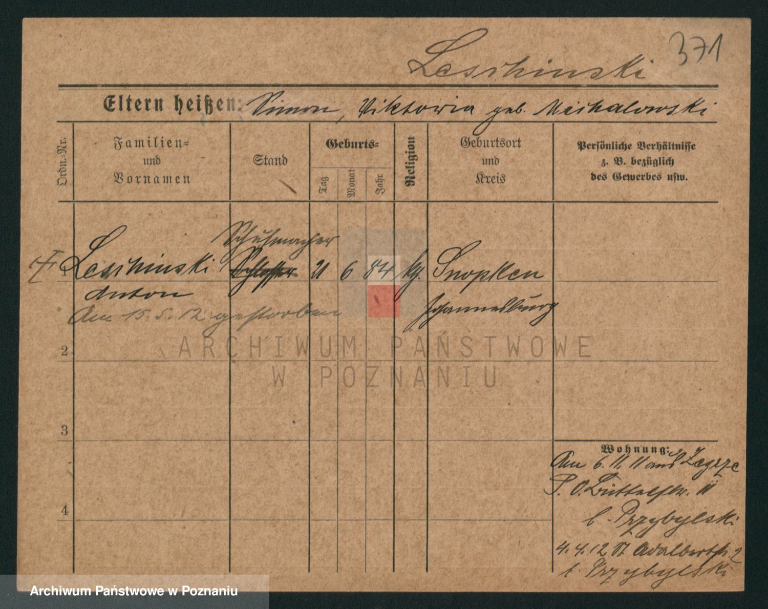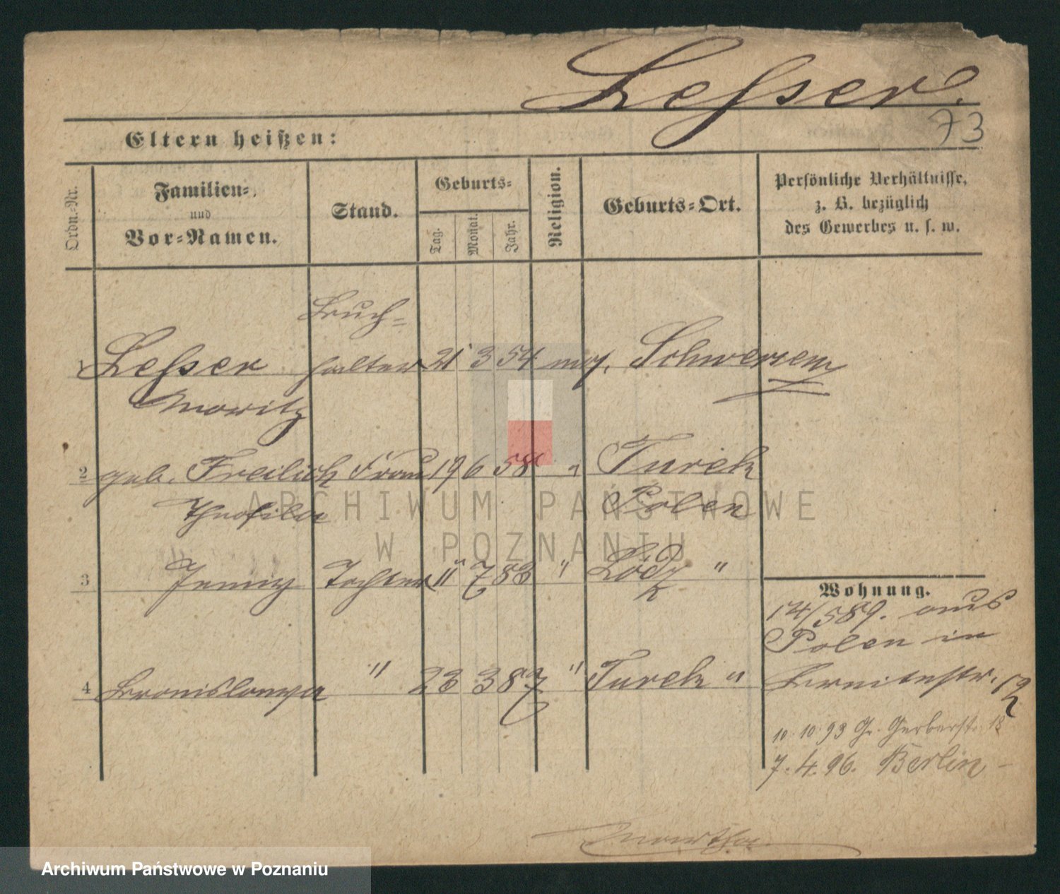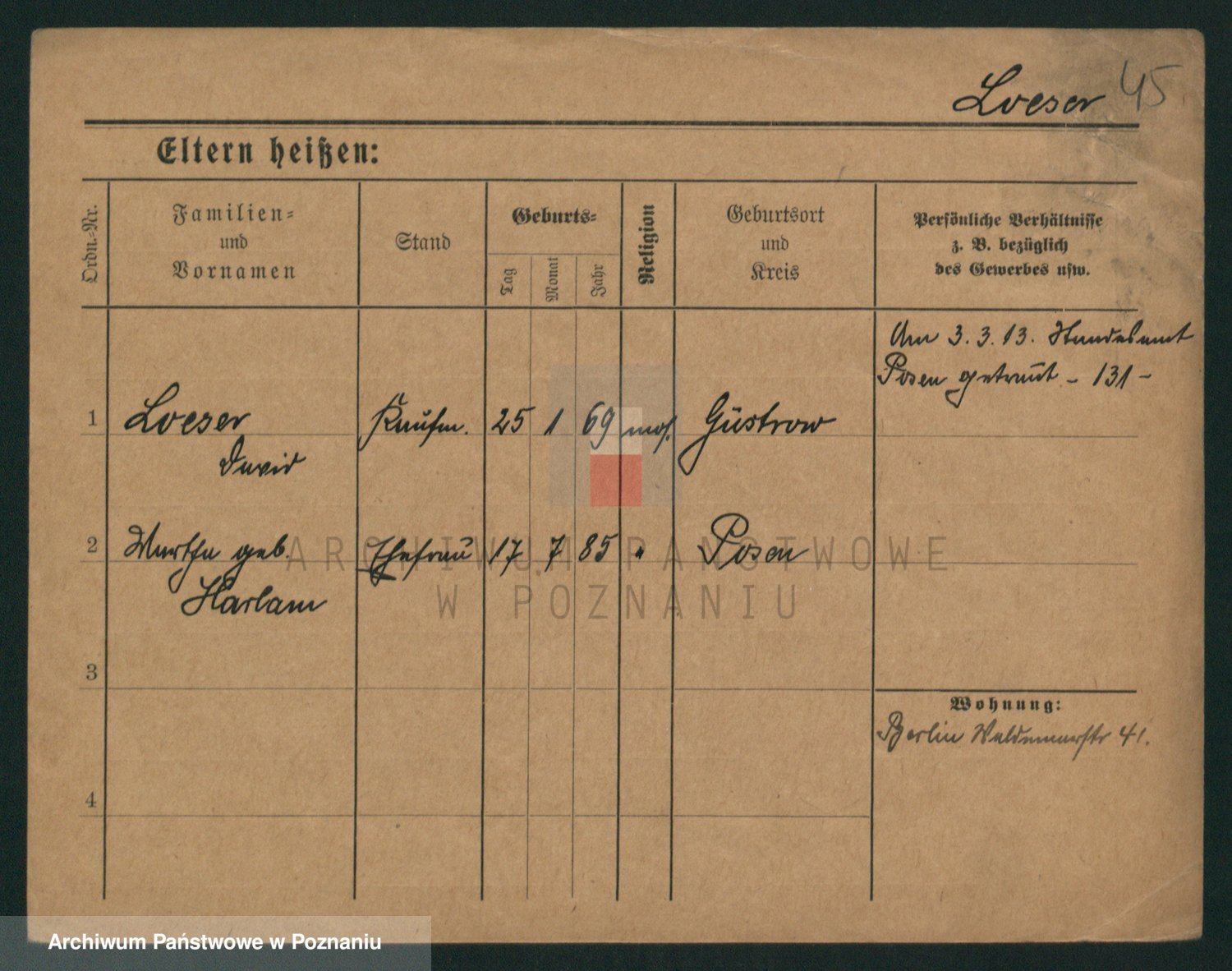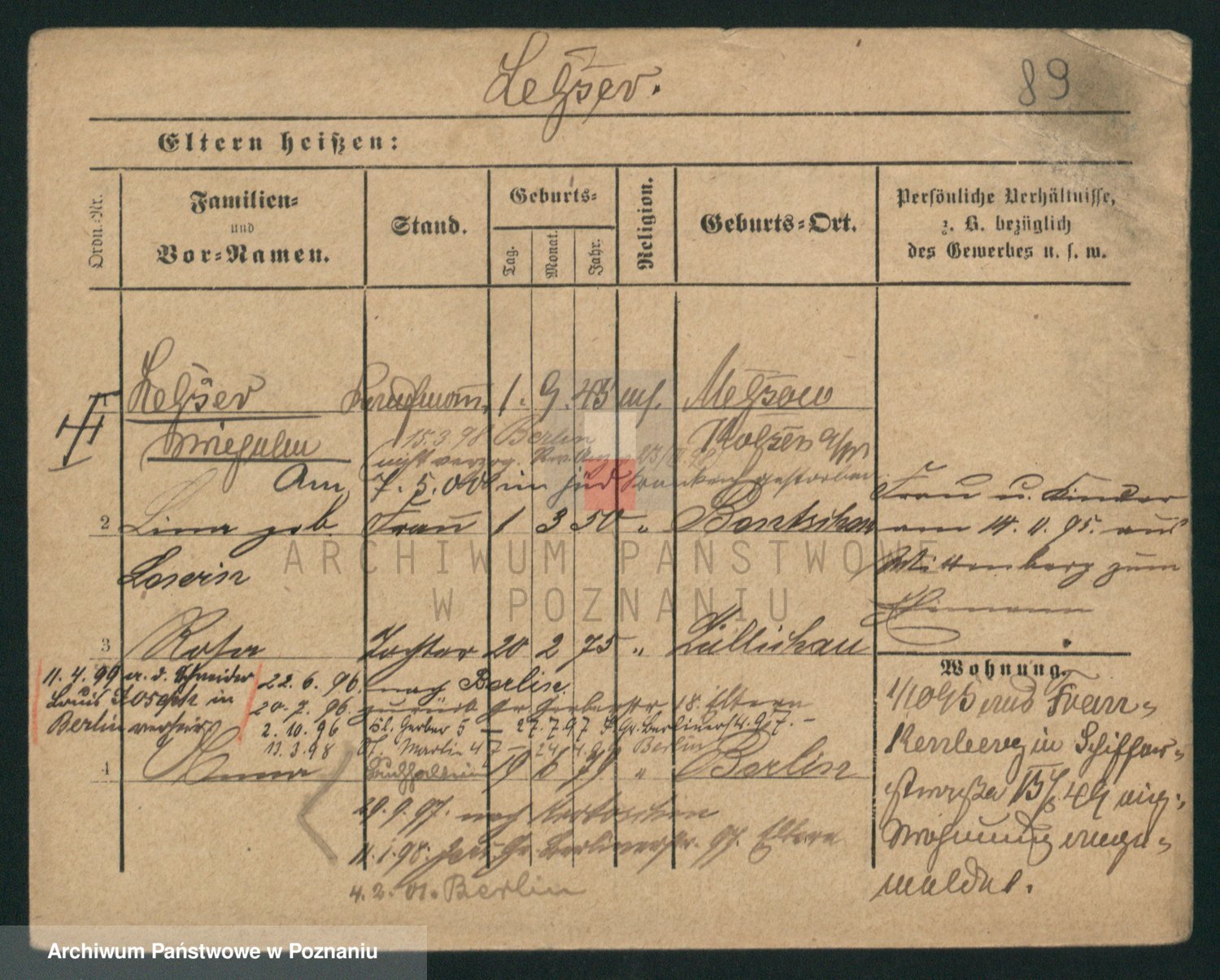 Podgląd karty osobowej dostępny jest po kliknięciu na nazwisko lub ikonkę karty. Można dokonywać powiększenia (ikony na górze) lub przechodzić między kolejnymi skanami (strzałki po bokach).