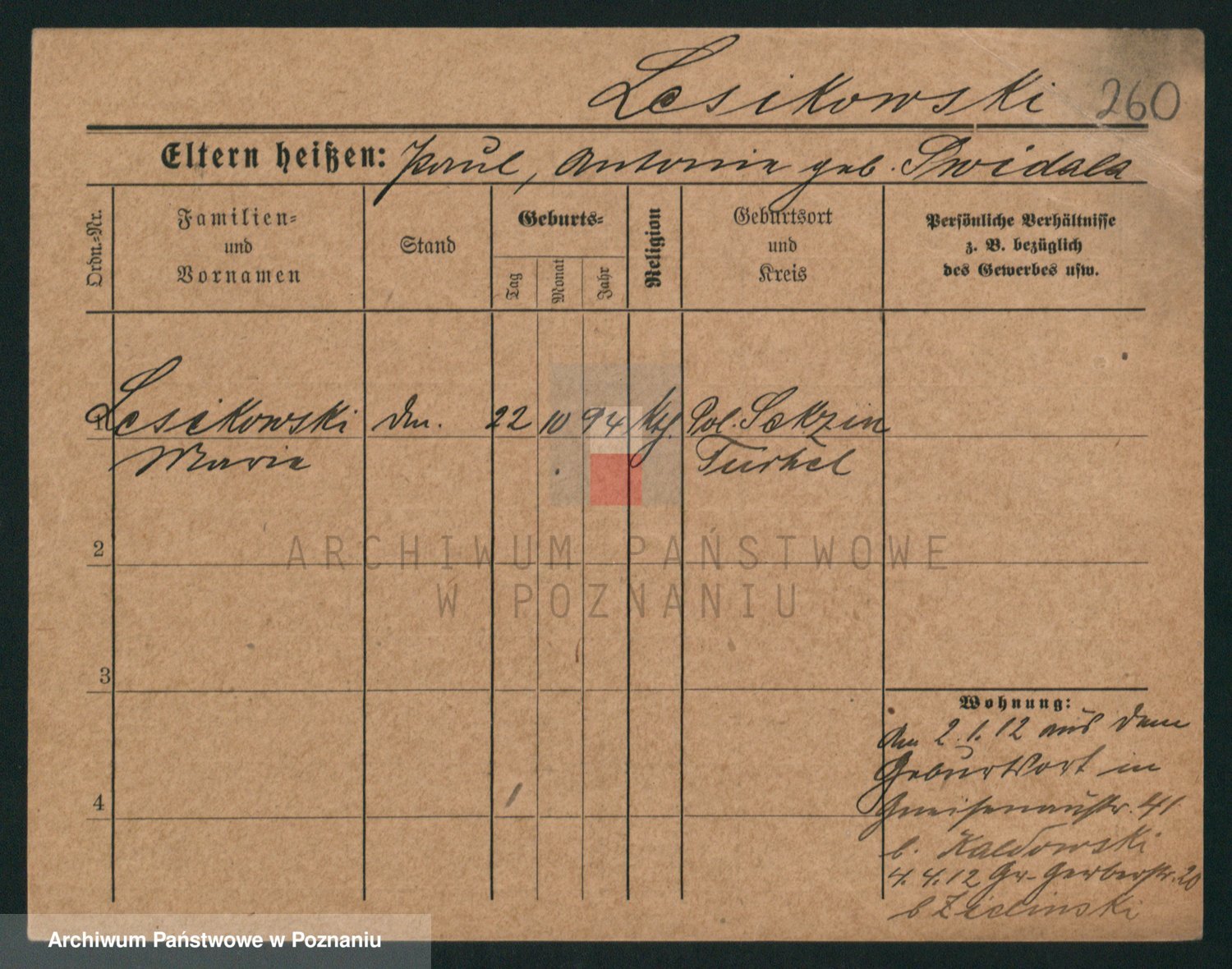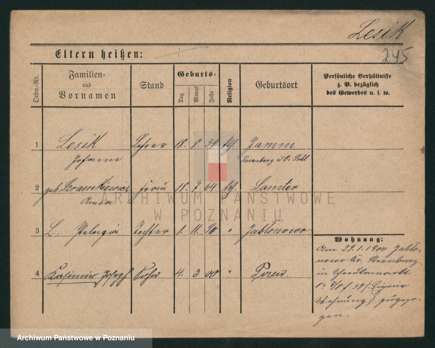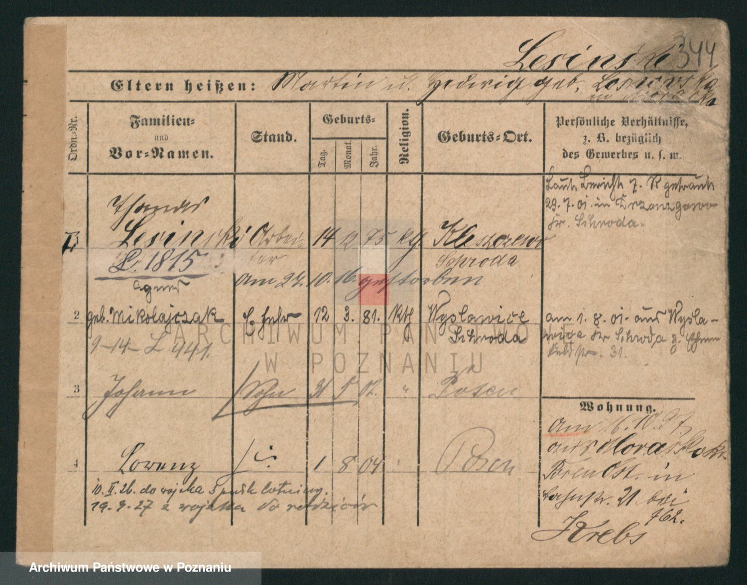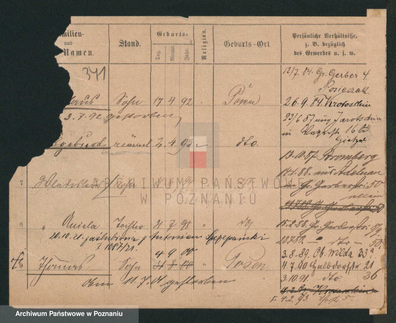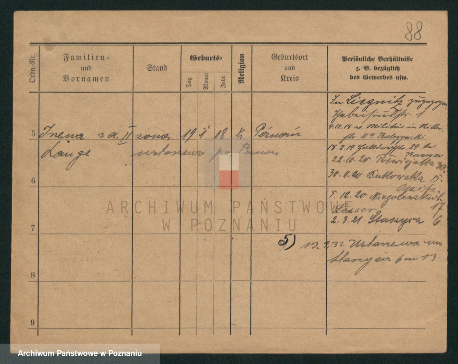 Podgląd karty osobowej dostępny jest po kliknięciu na nazwisko lub ikonkę karty. Można dokonywać powiększenia (ikony na górze) lub przechodzić między kolejnymi skanami (strzałki po bokach).