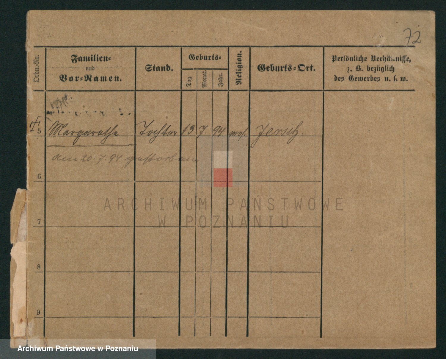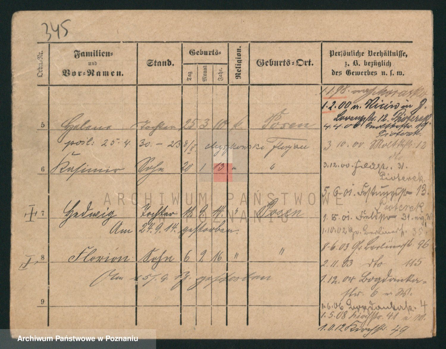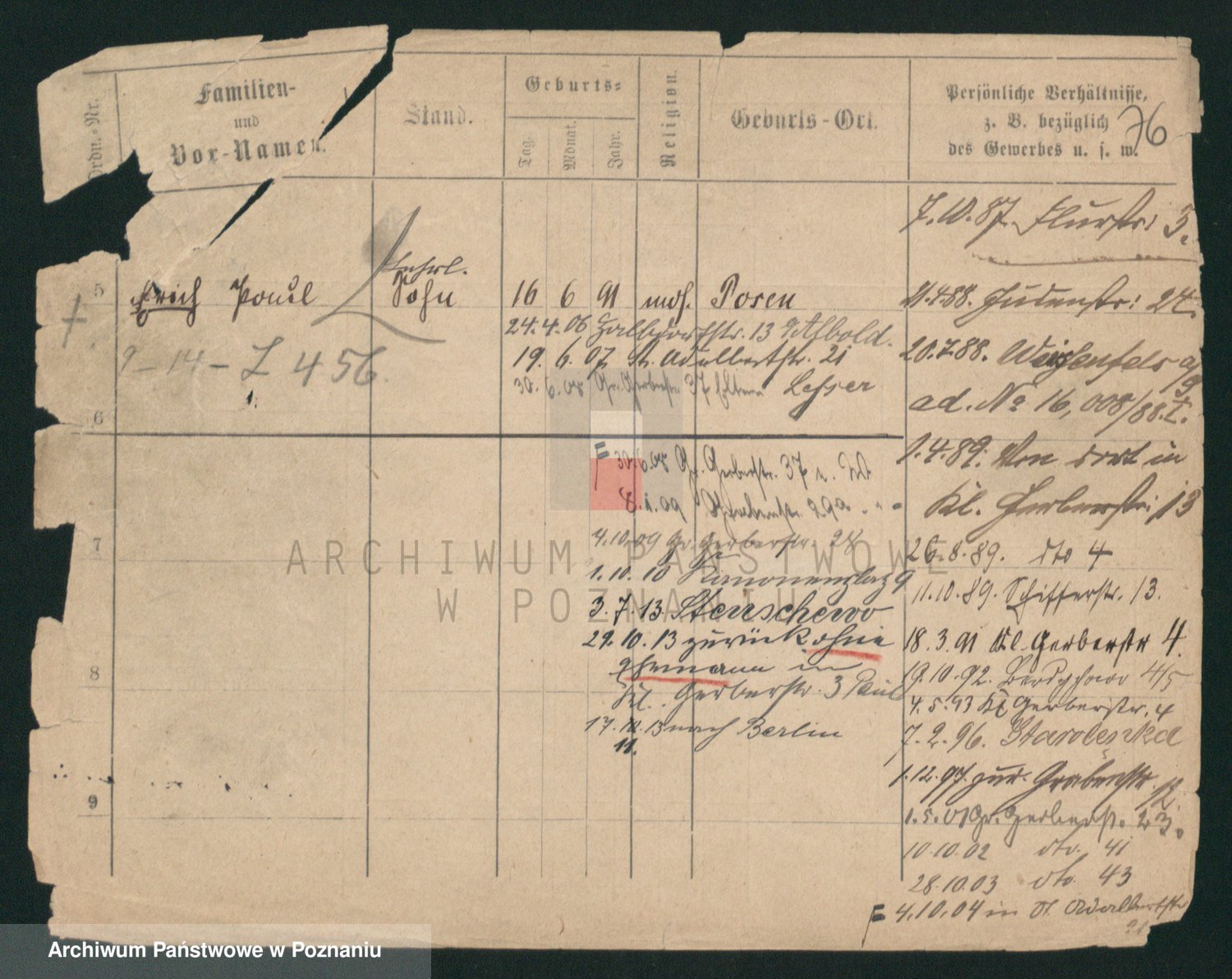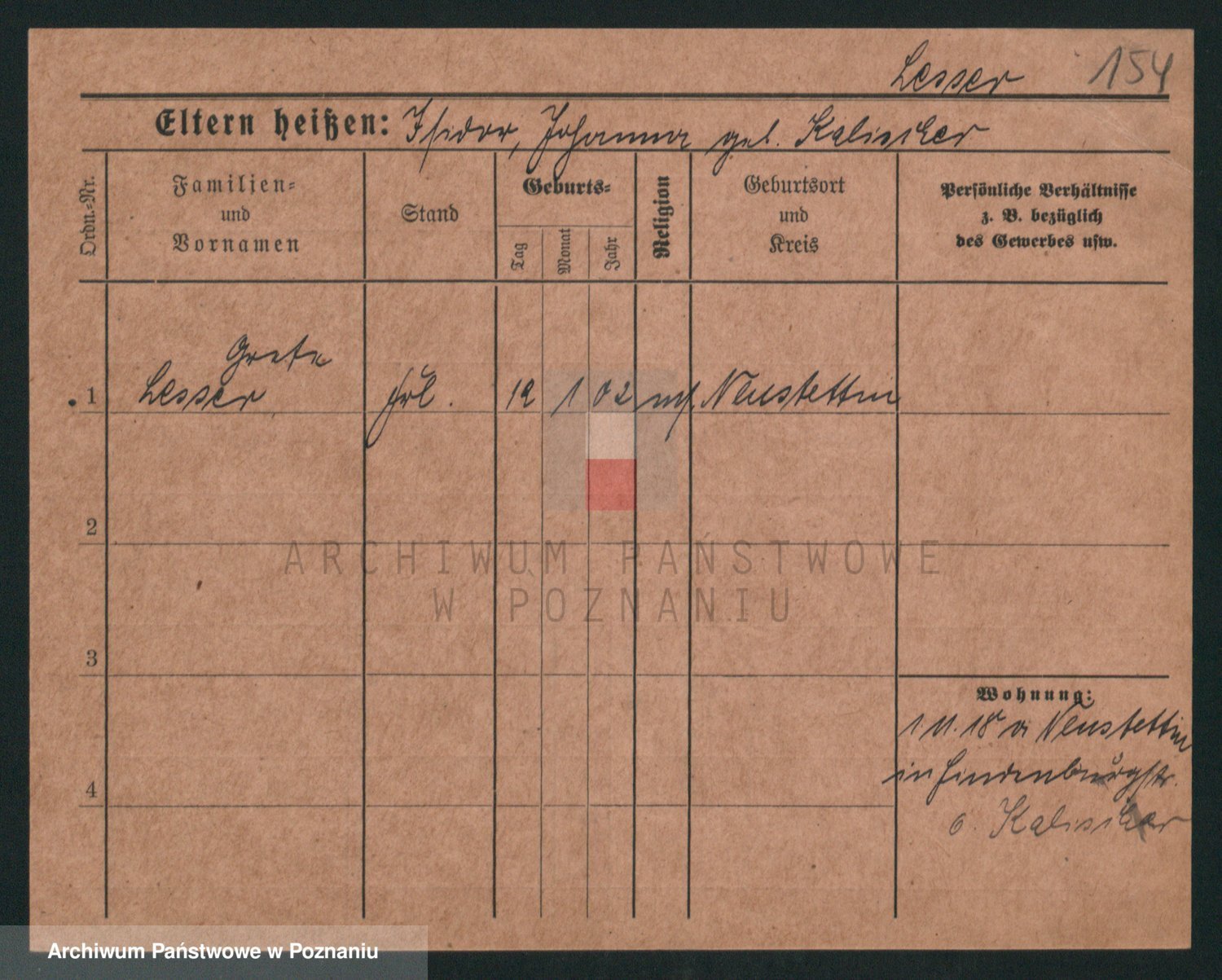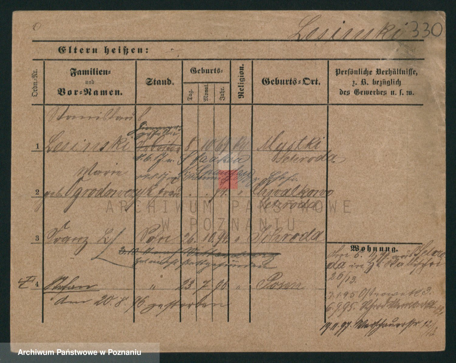 Podgląd karty osobowej dostępny jest po kliknięciu na nazwisko lub ikonkę karty. Można dokonywać powiększenia (ikony na górze) lub przechodzić między kolejnymi skanami (strzałki po bokach).