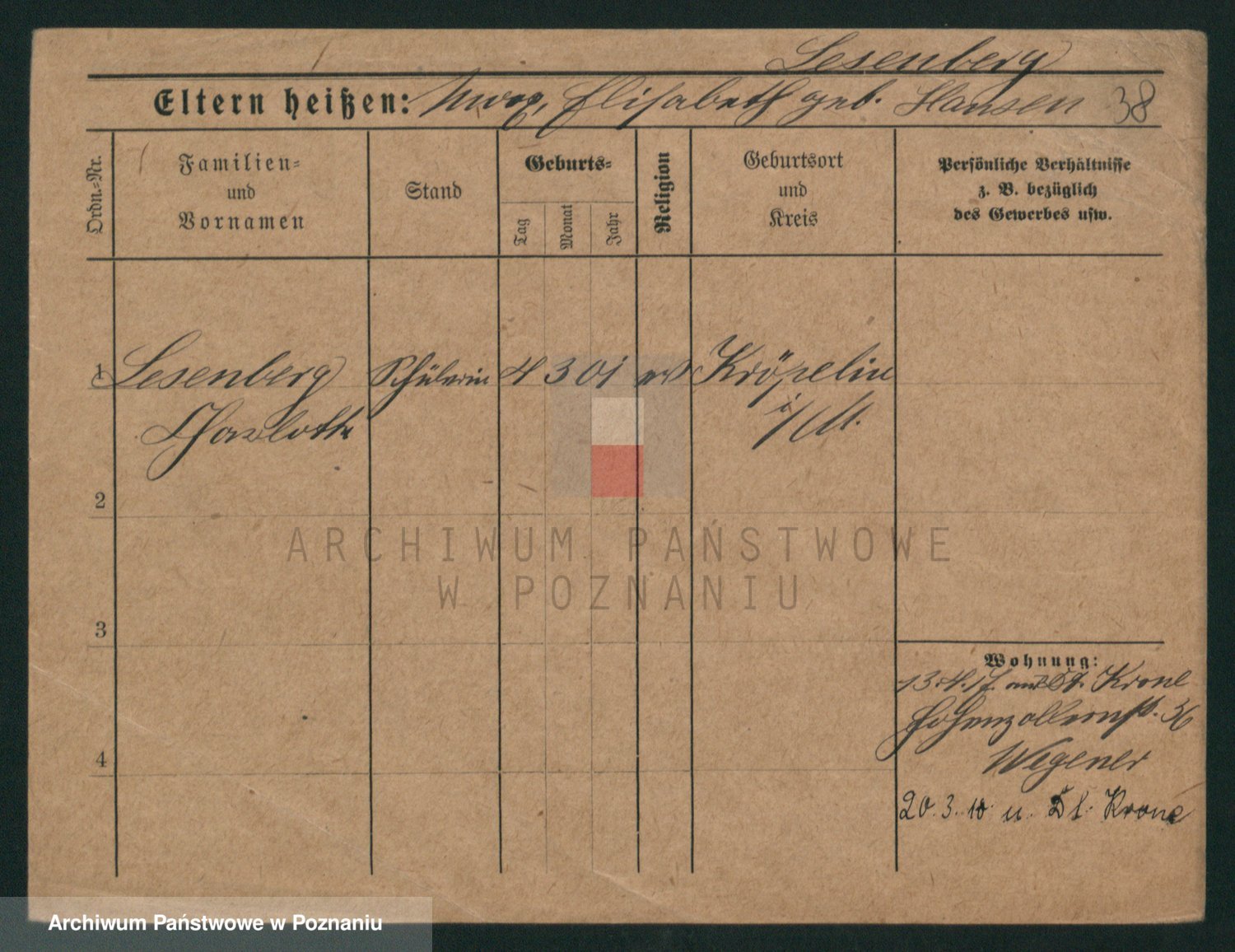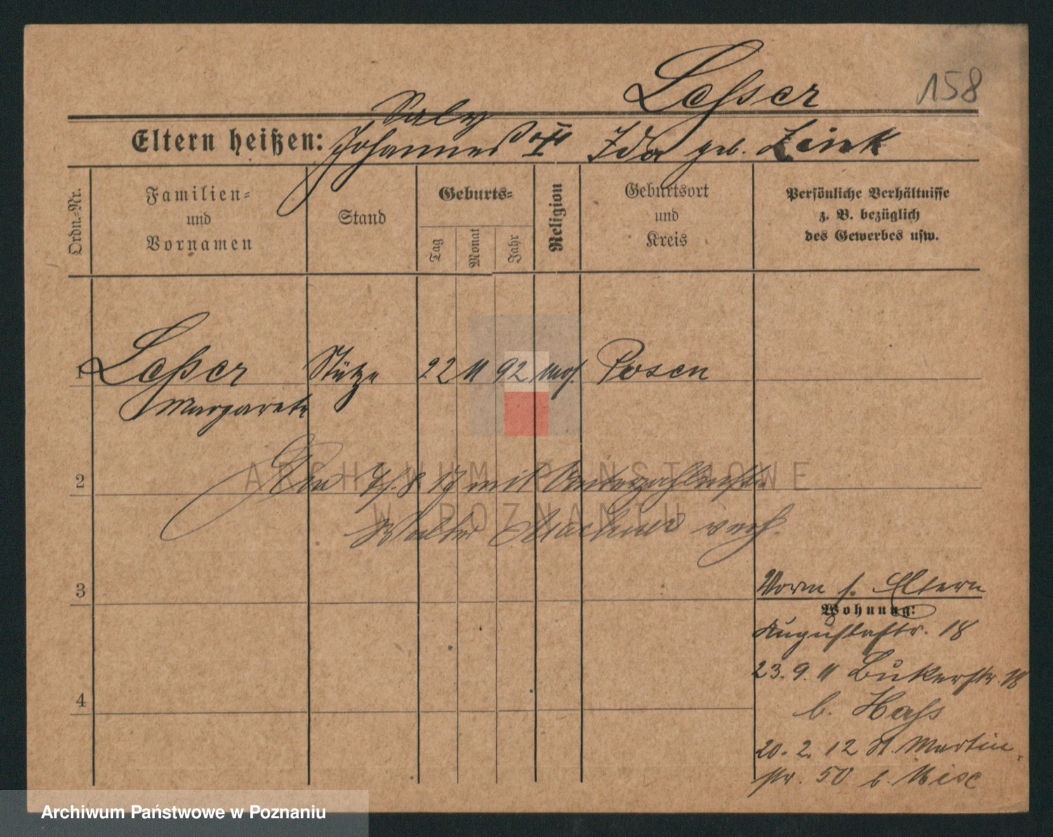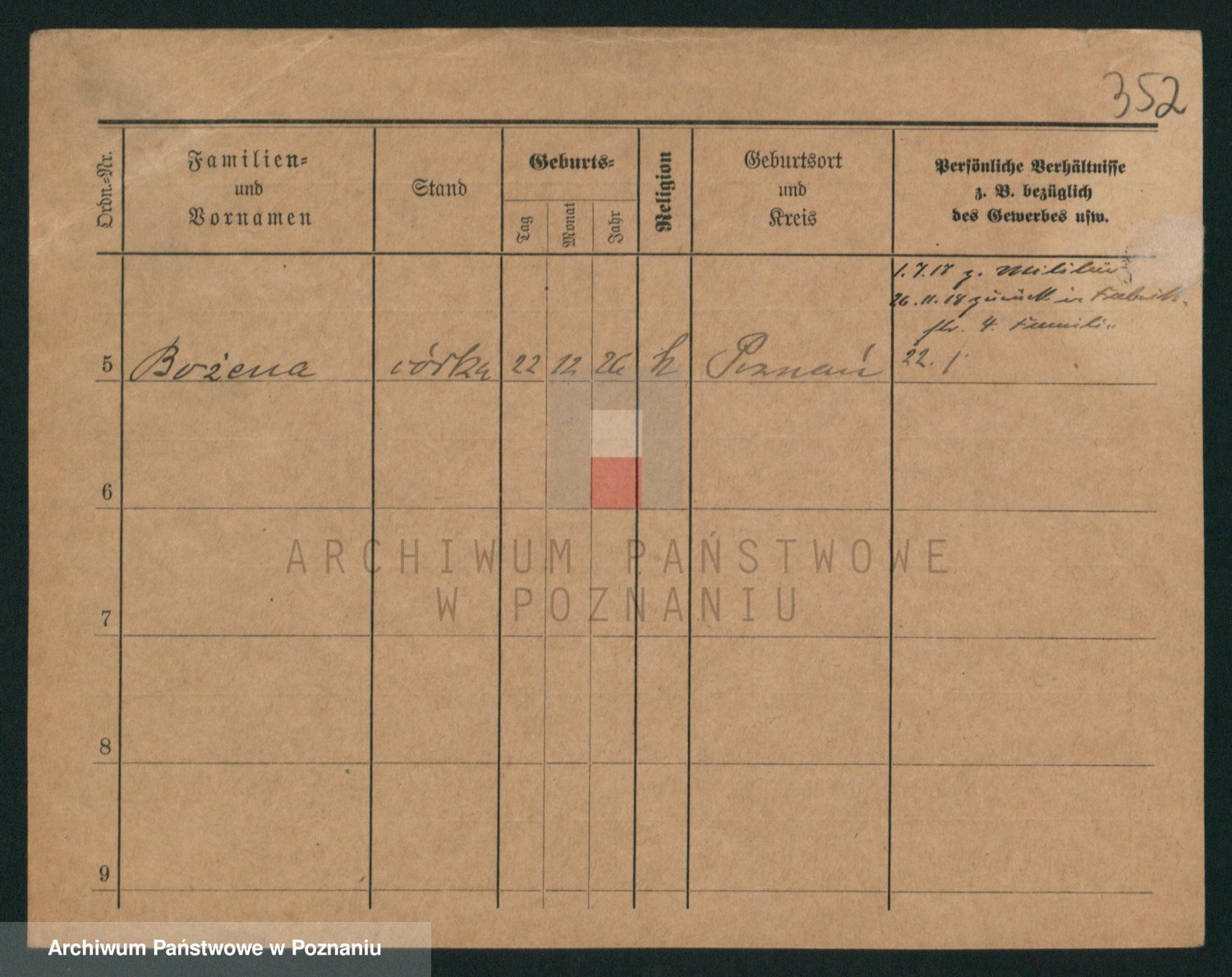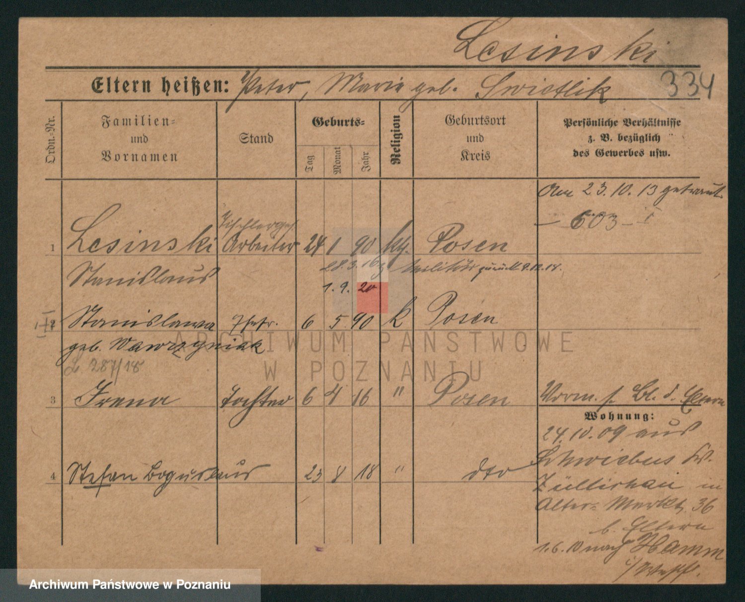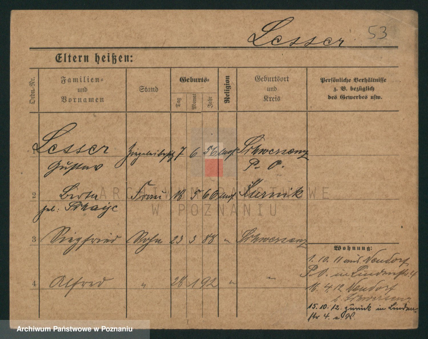 Podgląd karty osobowej dostępny jest po kliknięciu na nazwisko lub ikonkę karty. Można dokonywać powiększenia (ikony na górze) lub przechodzić między kolejnymi skanami (strzałki po bokach).
